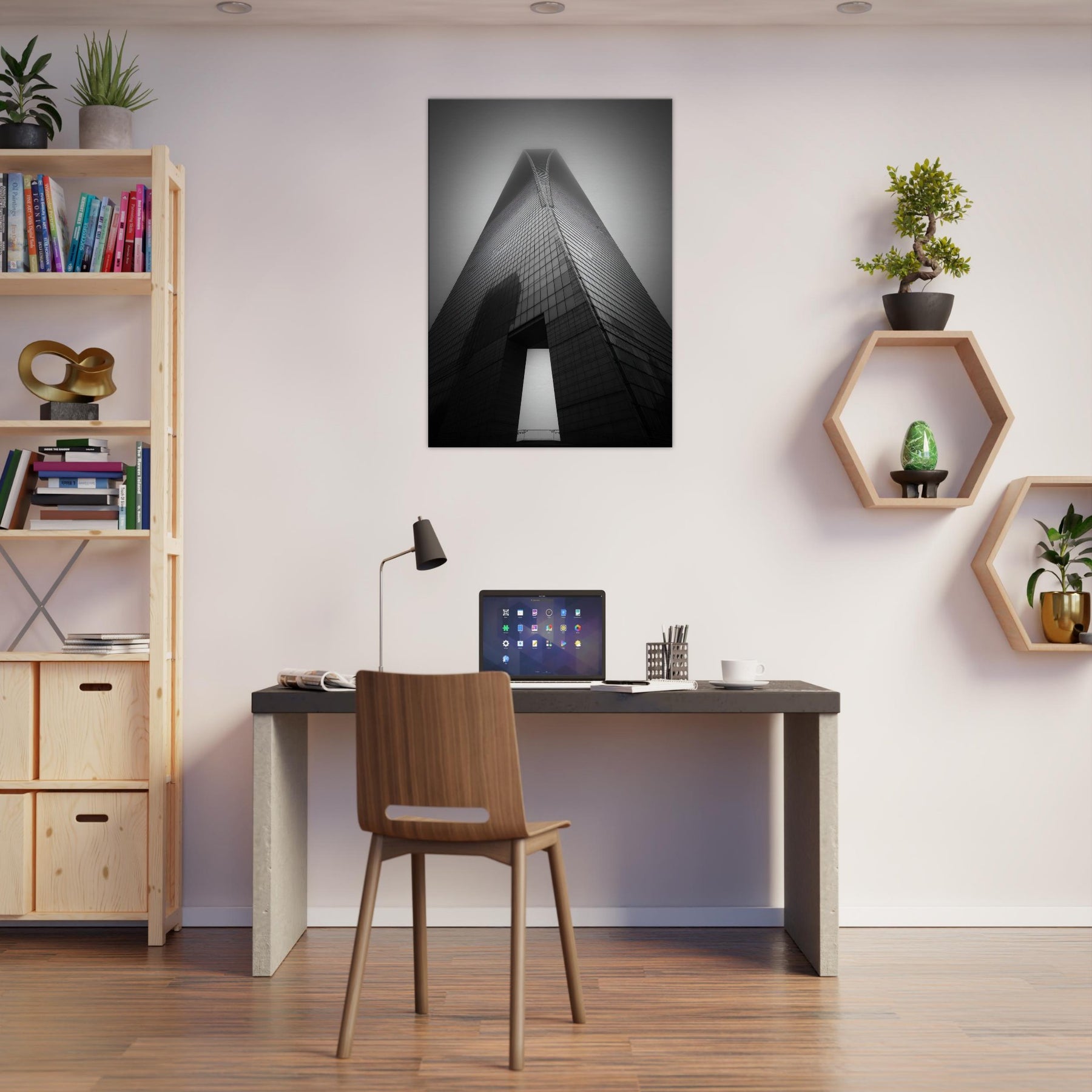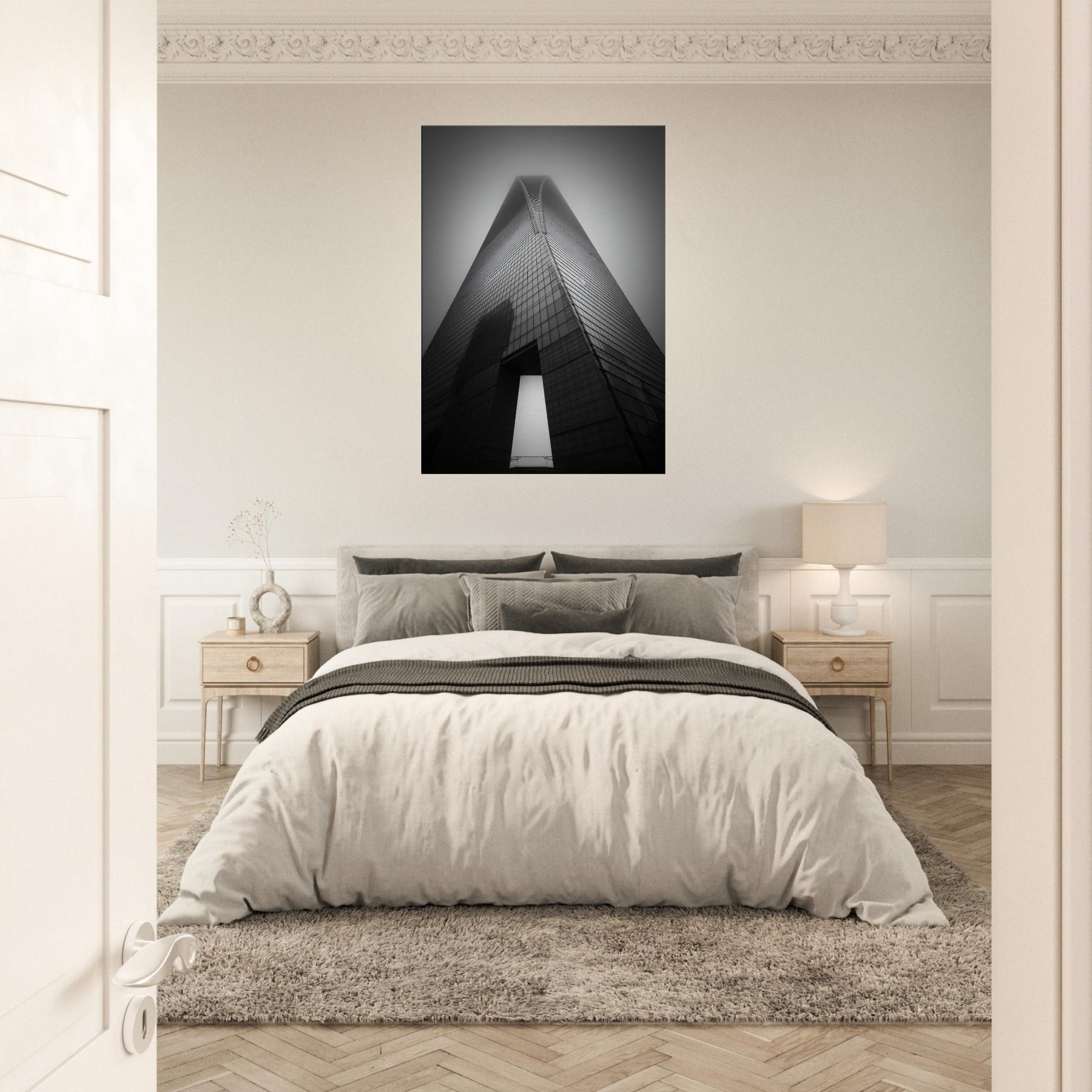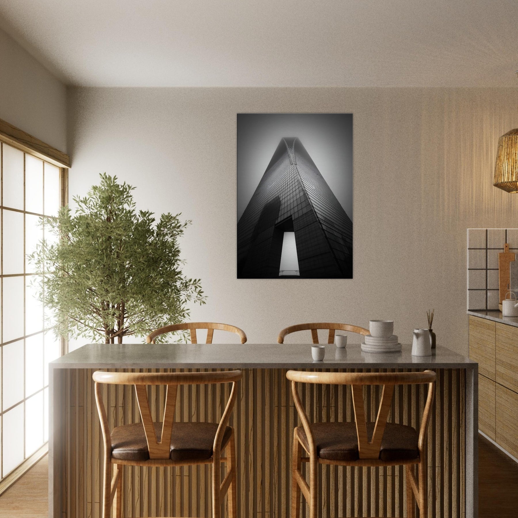 In this monochrome tribute to Shanghai, the tower rises like a quiet chord of steel and glass, a poem in shadow and light. The black and white palette distills the city's architecture into a timeless silhouette, inviting contemplation and a breath of urban quiet into any room. It evokes neon dawns and midnight silhouettes, offering sophistication that pairs with wood, metal, or plush fabrics. Hang it in the living room or study to anchor conversations and infuse the space with cosmopolitan poise.