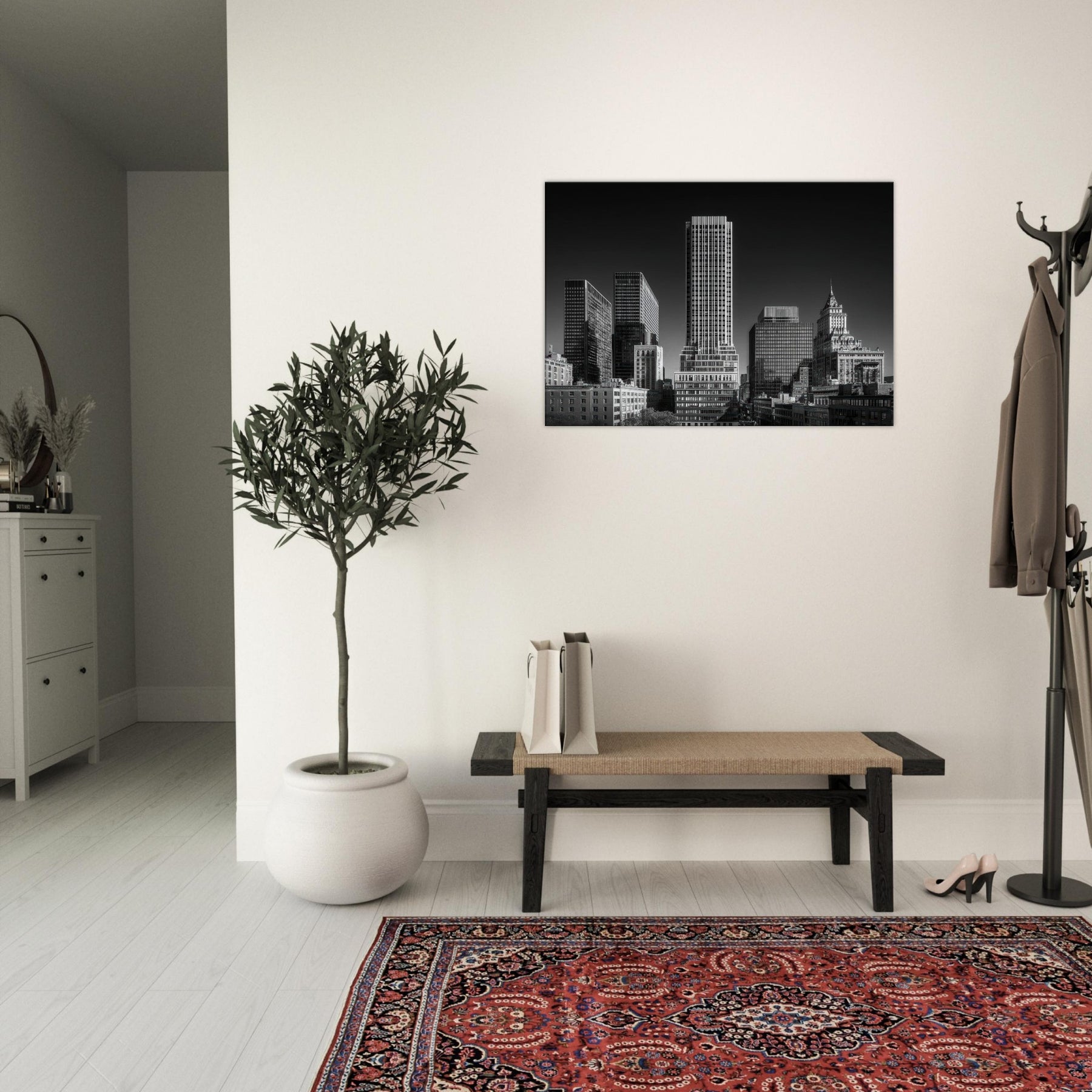Boston stands in monochrome, a quiet procession of glass and stone where light drains into shadow and back again. This black and white cityscape invites a contemplative mood, a canvas for stillness and focus in a living room or study. The tallest tower anchors the room, while the surrounding silhouettes breathe rhythm and memory into your space. Framed in a clean edge, it becomes a daily reminder of urban elegance an atmosphere that sharpens conversation, steadies the gaze, and makes every moment feel deliberate.