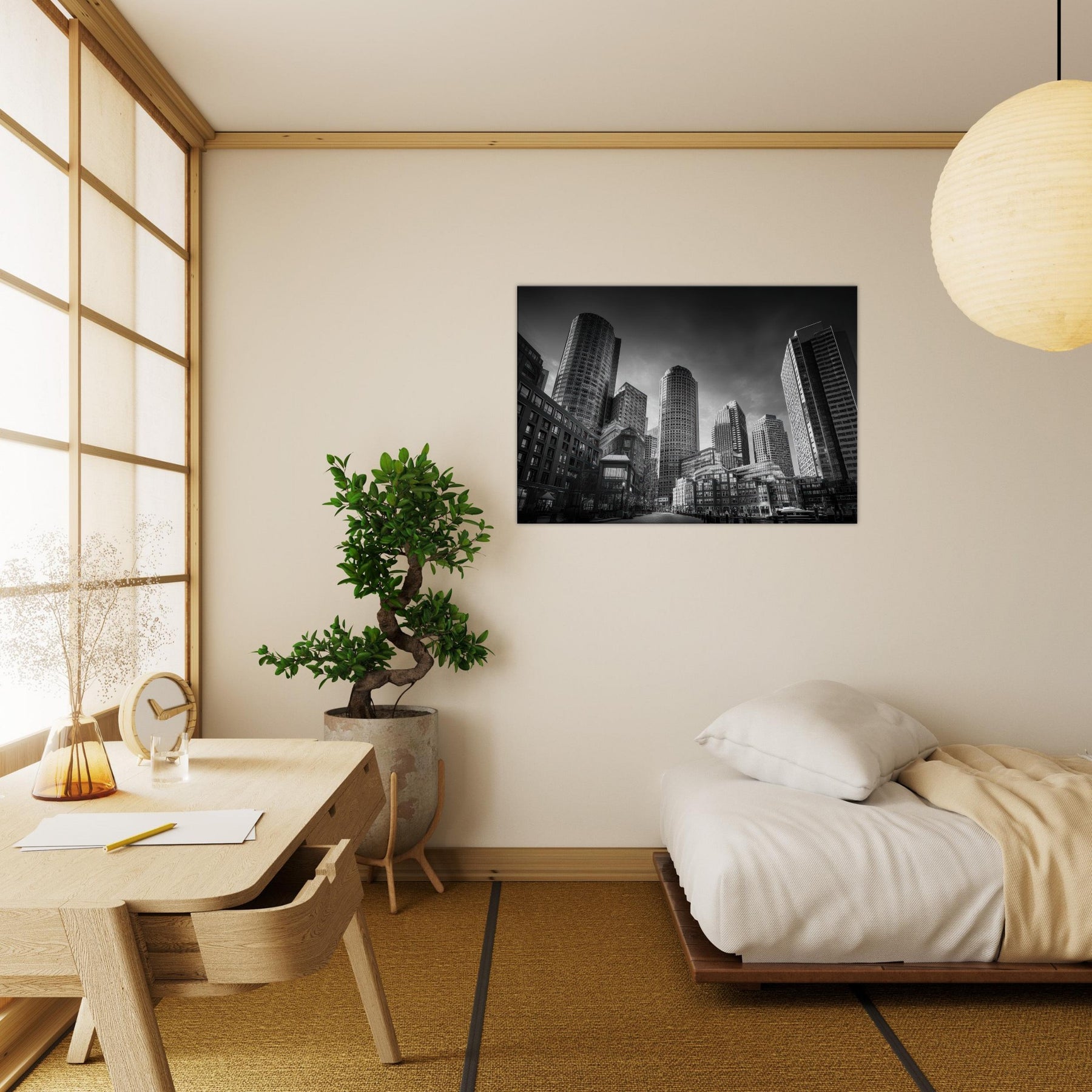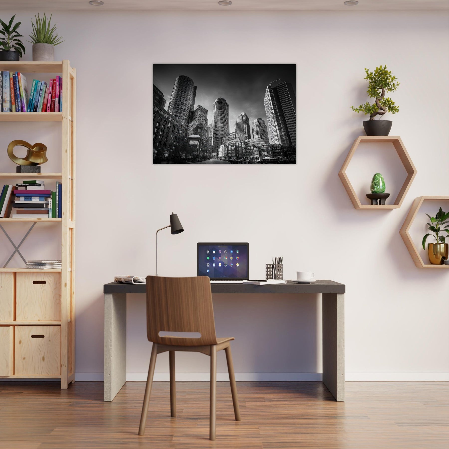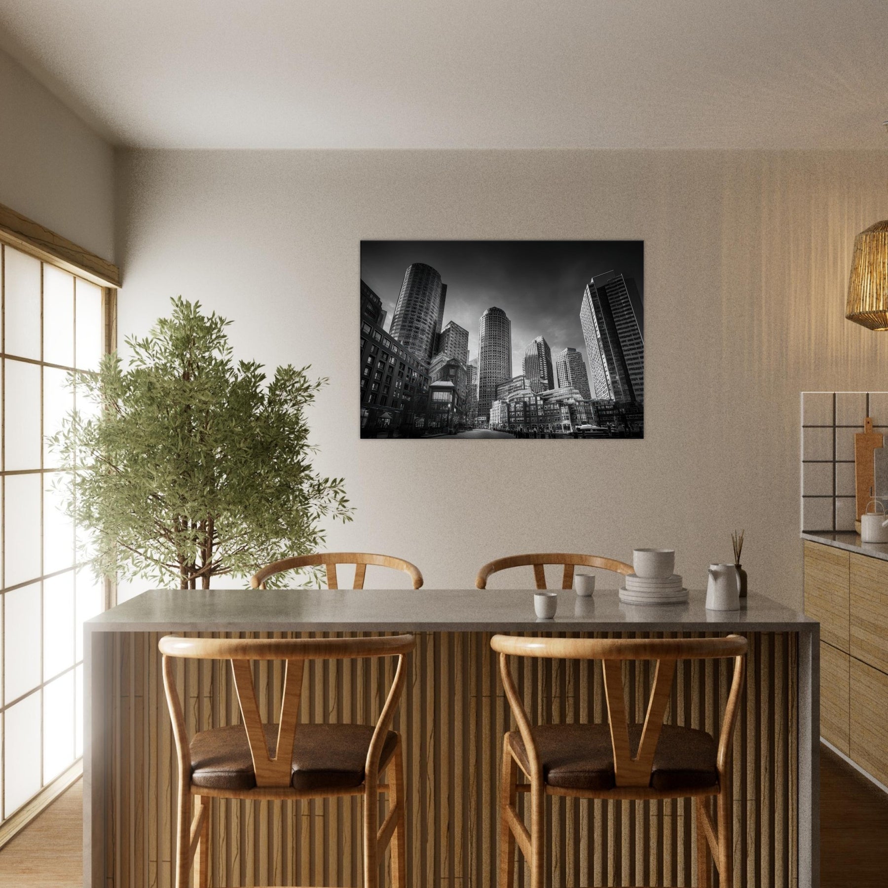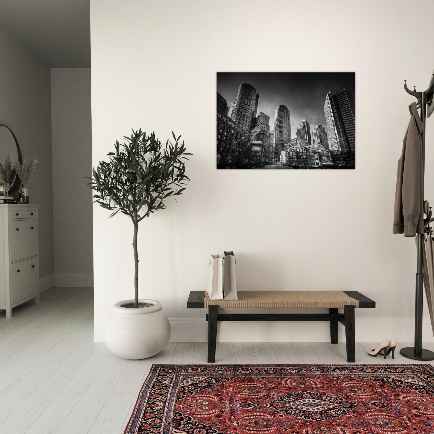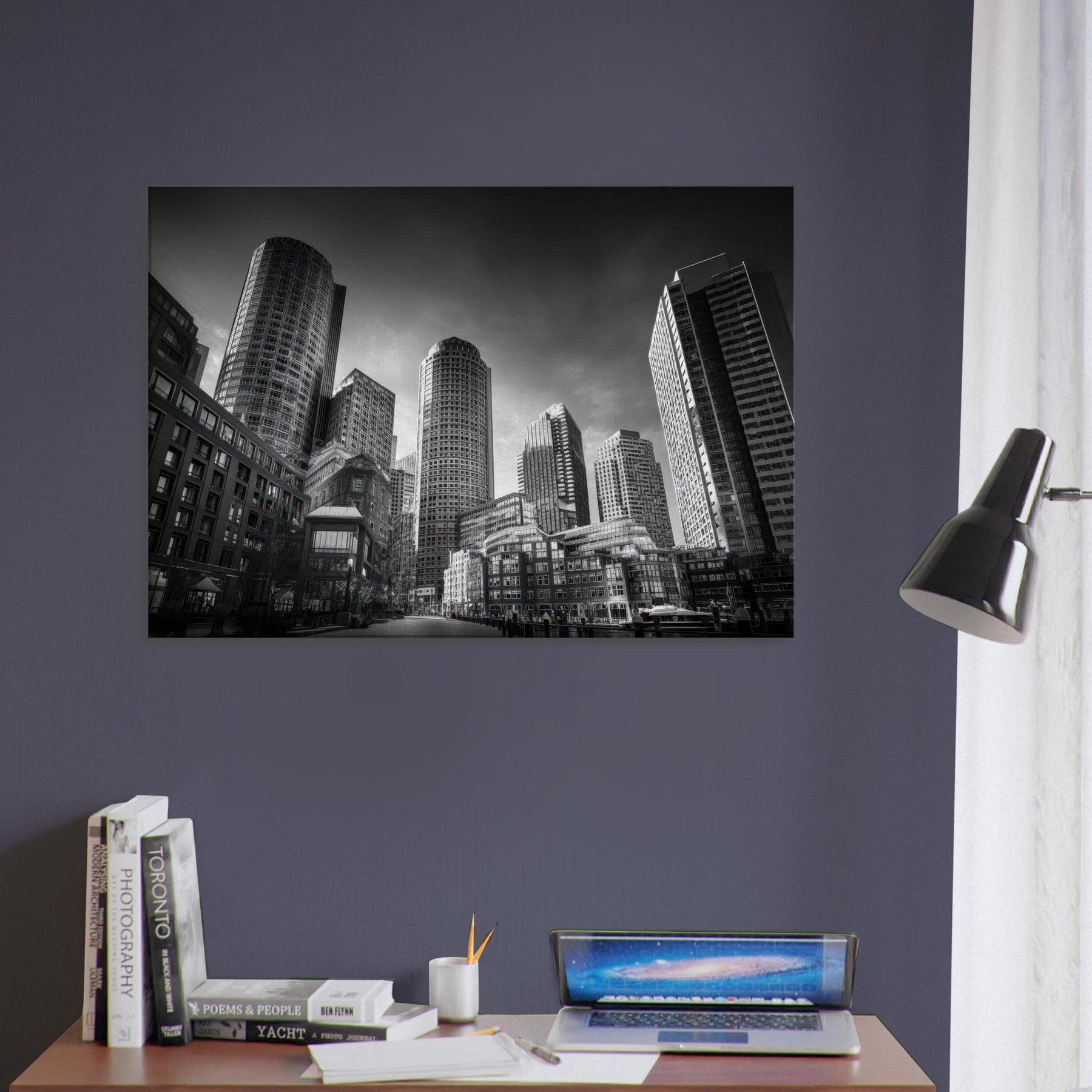 Step into Boston’s urban canvas where glass curves meet steel silhouettes, captured in luminous black and white. This wall art breathes a quiet, cinematic atmosphere a cool breeze along the harbor, the hum of traffic, the glow of dusk on towering facades. It anchors living spaces with a sense of order and depth, inviting reflection and conversation. Perfect for a sleek living room or study, it pairs with jewel tones or minimalist palettes, elevating everyday moments into something quietly monumental.