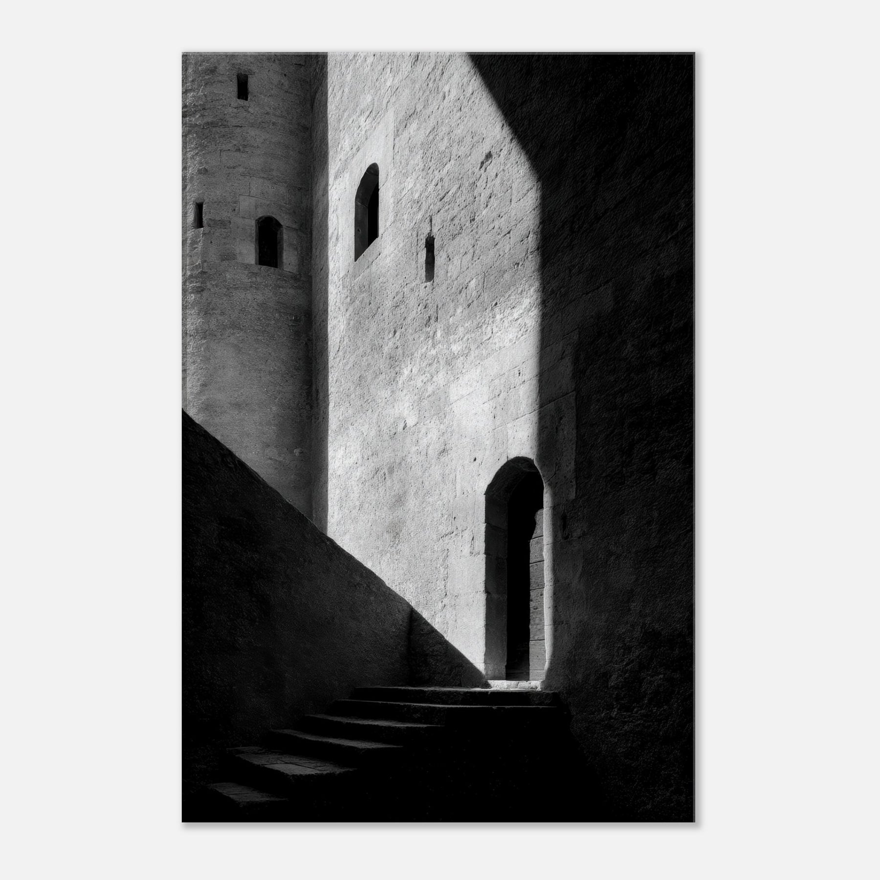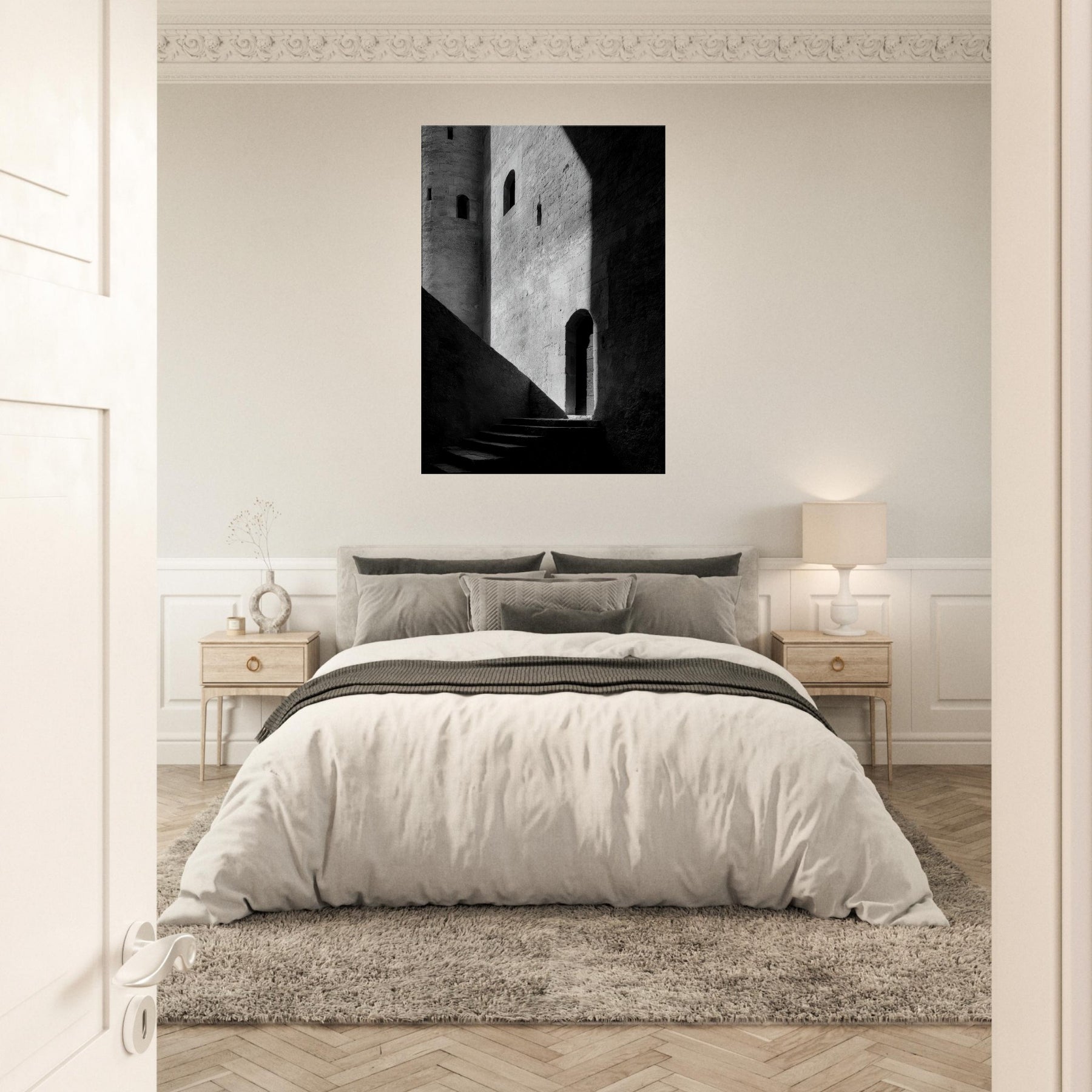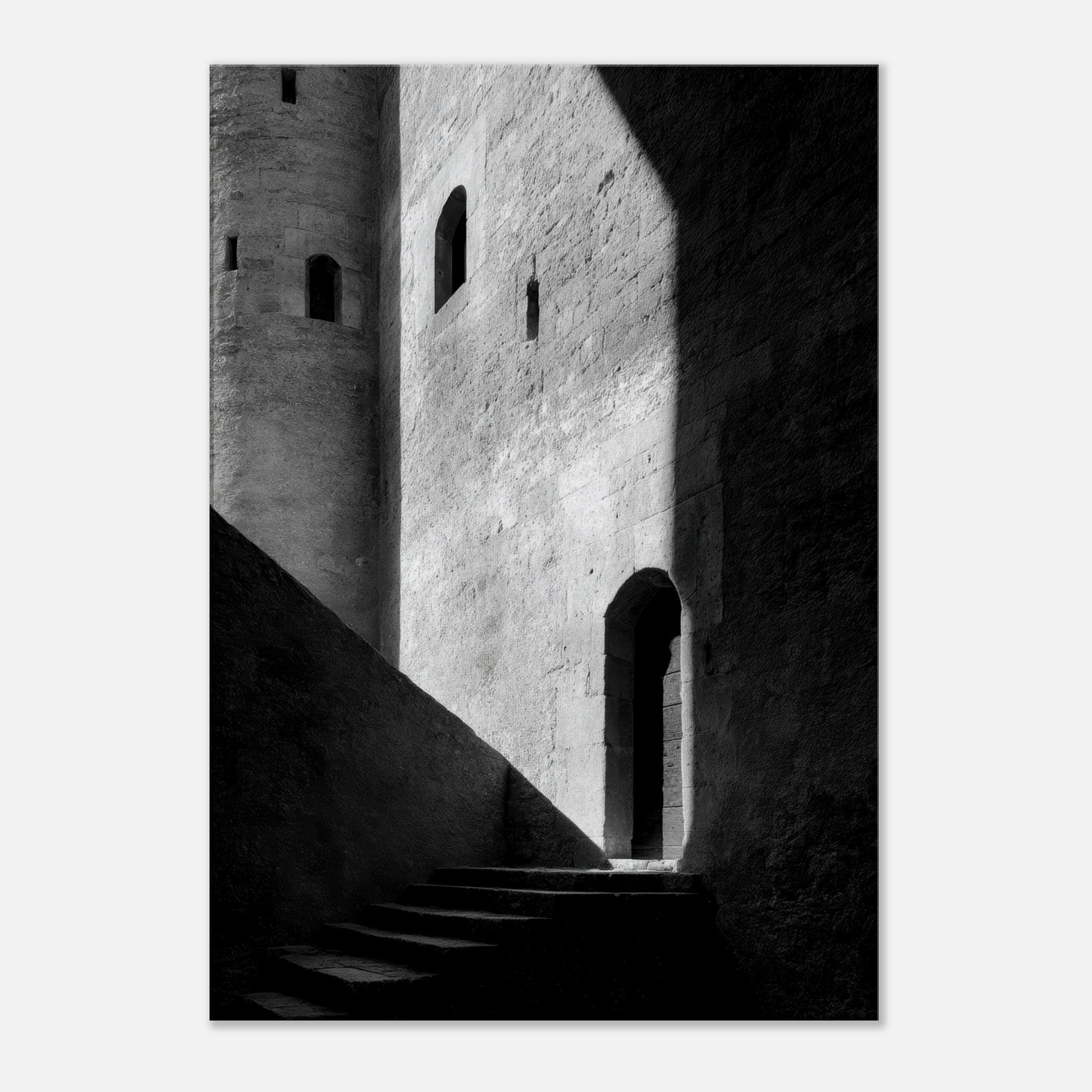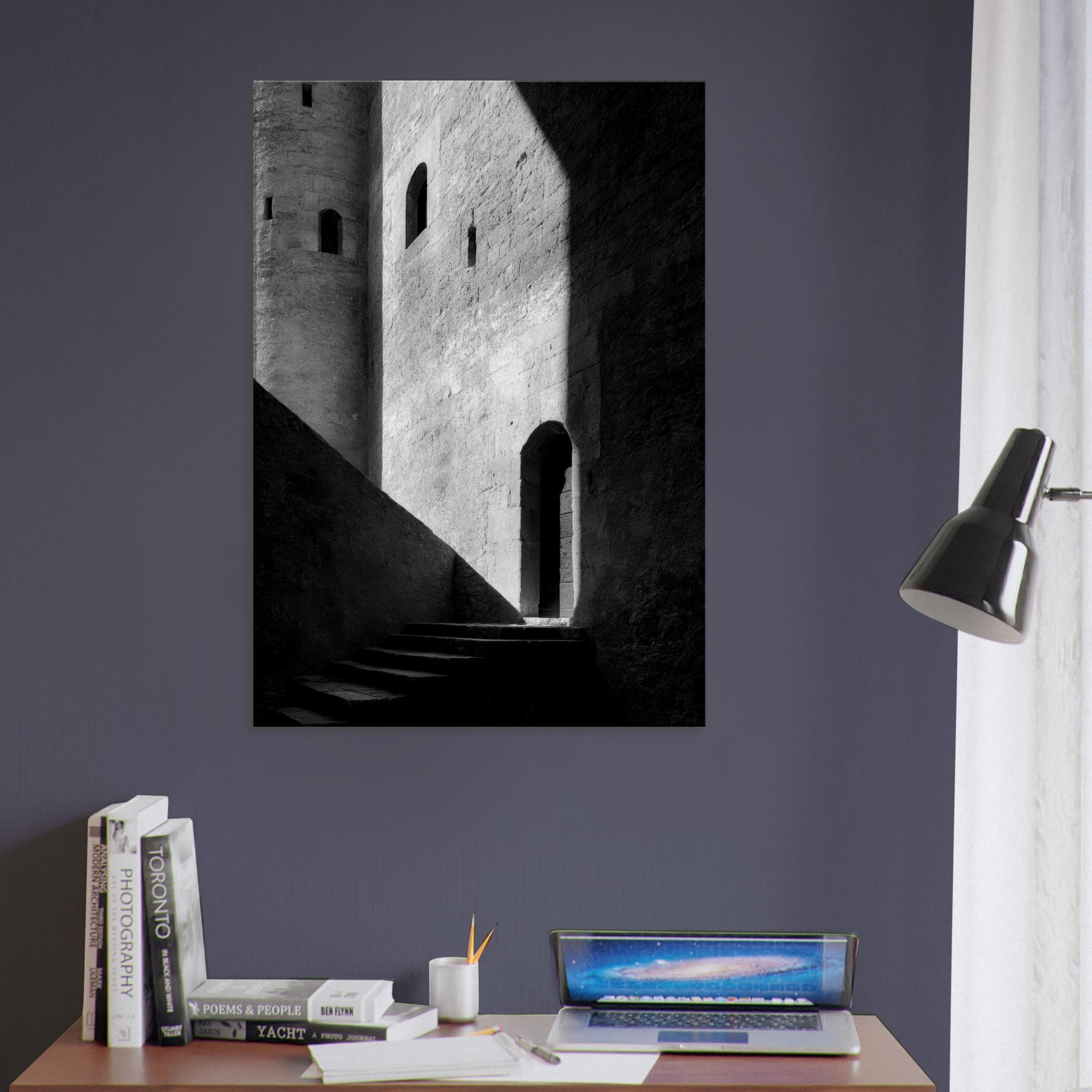 Let the stark geometry of a Medieval Castle wash your room in quiet grandeur. This black and white scene locks time in shadow and light, where ancient stone angles cradle soft daylight and deep shade. The crisp contrast invites contemplation, turning hallways into whispers and staircases into quiet pathways. Hung above a sofa or beside a desk, it breathes a restrained drama that heightens focus, elevates texture, and adds a timeless anchor to any living space.