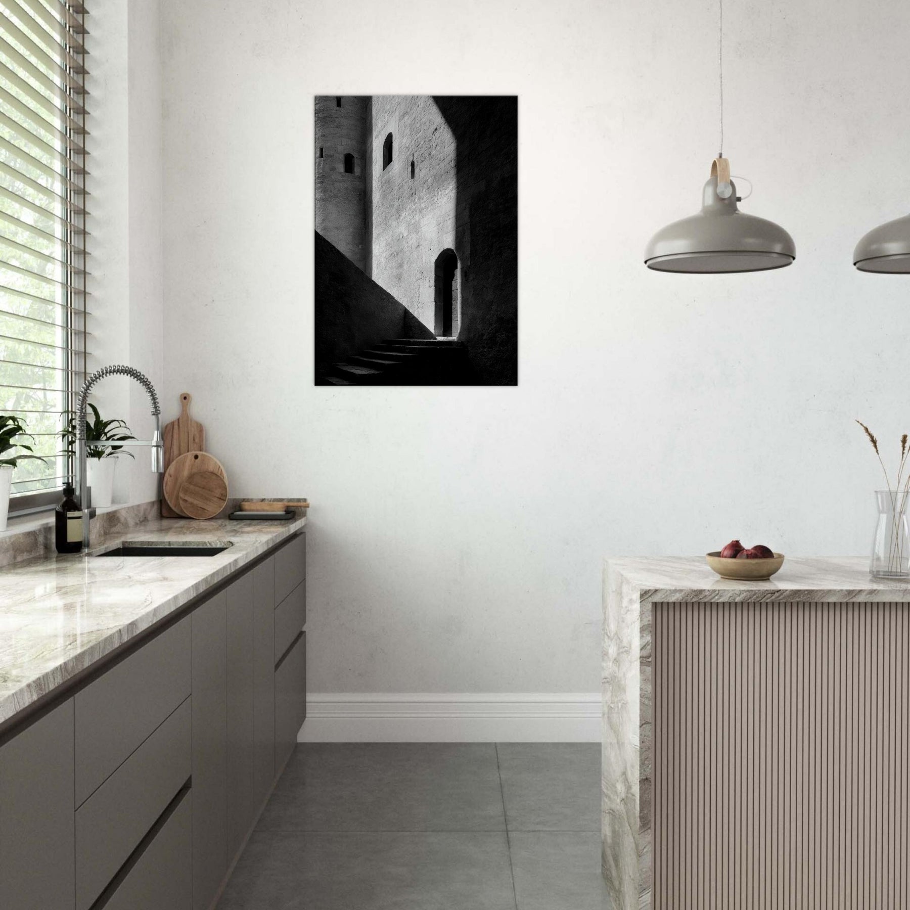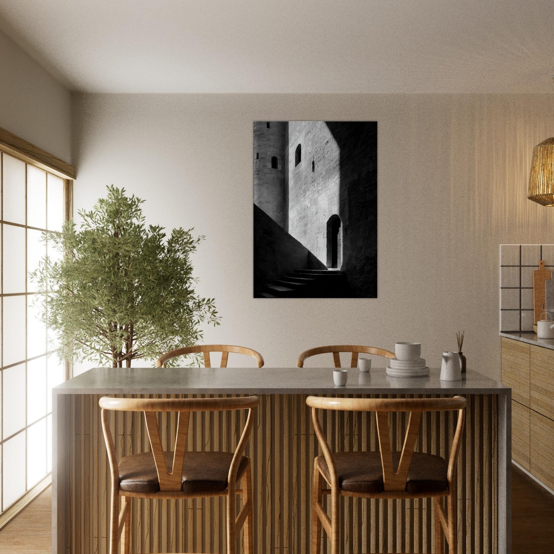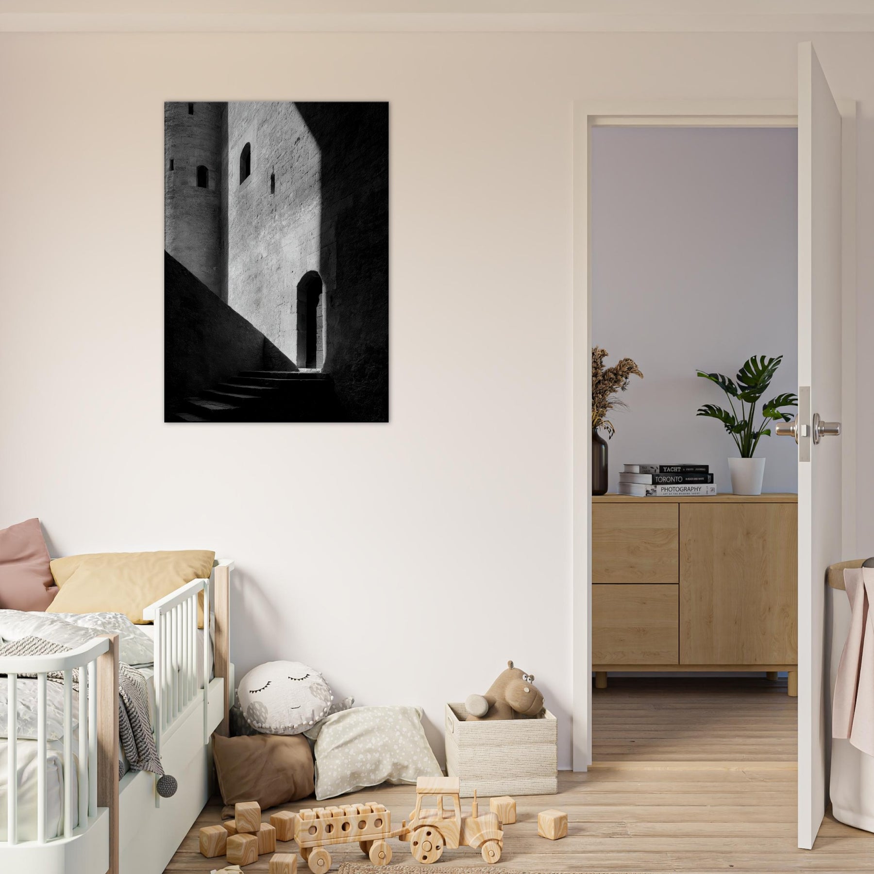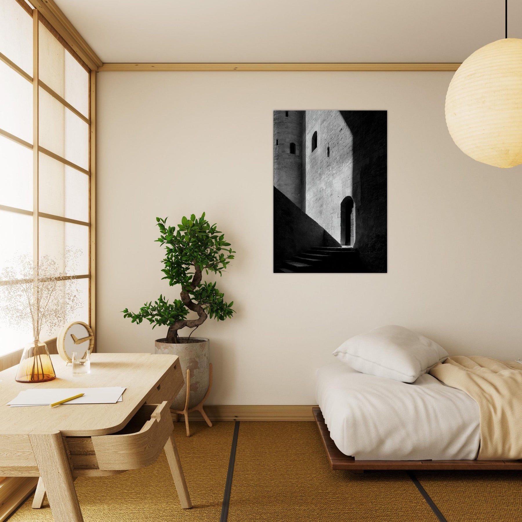 Let the stark geometry of a Medieval Castle wash your room in quiet grandeur. This black and white scene locks time in shadow and light, where ancient stone angles cradle soft daylight and deep shade. The crisp contrast invites contemplation, turning hallways into whispers and staircases into quiet pathways. Hung above a sofa or beside a desk, it breathes a restrained drama that heightens focus, elevates texture, and adds a timeless anchor to any living space.