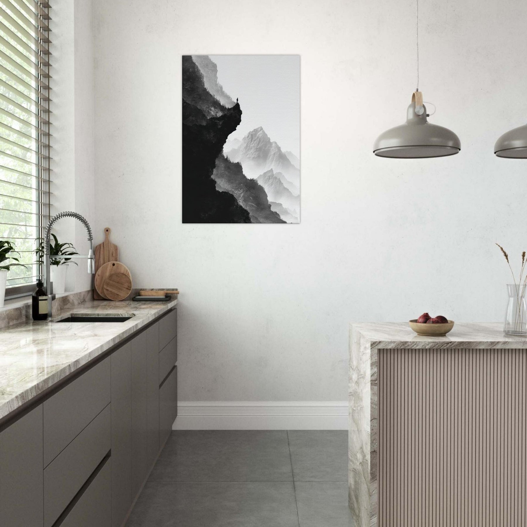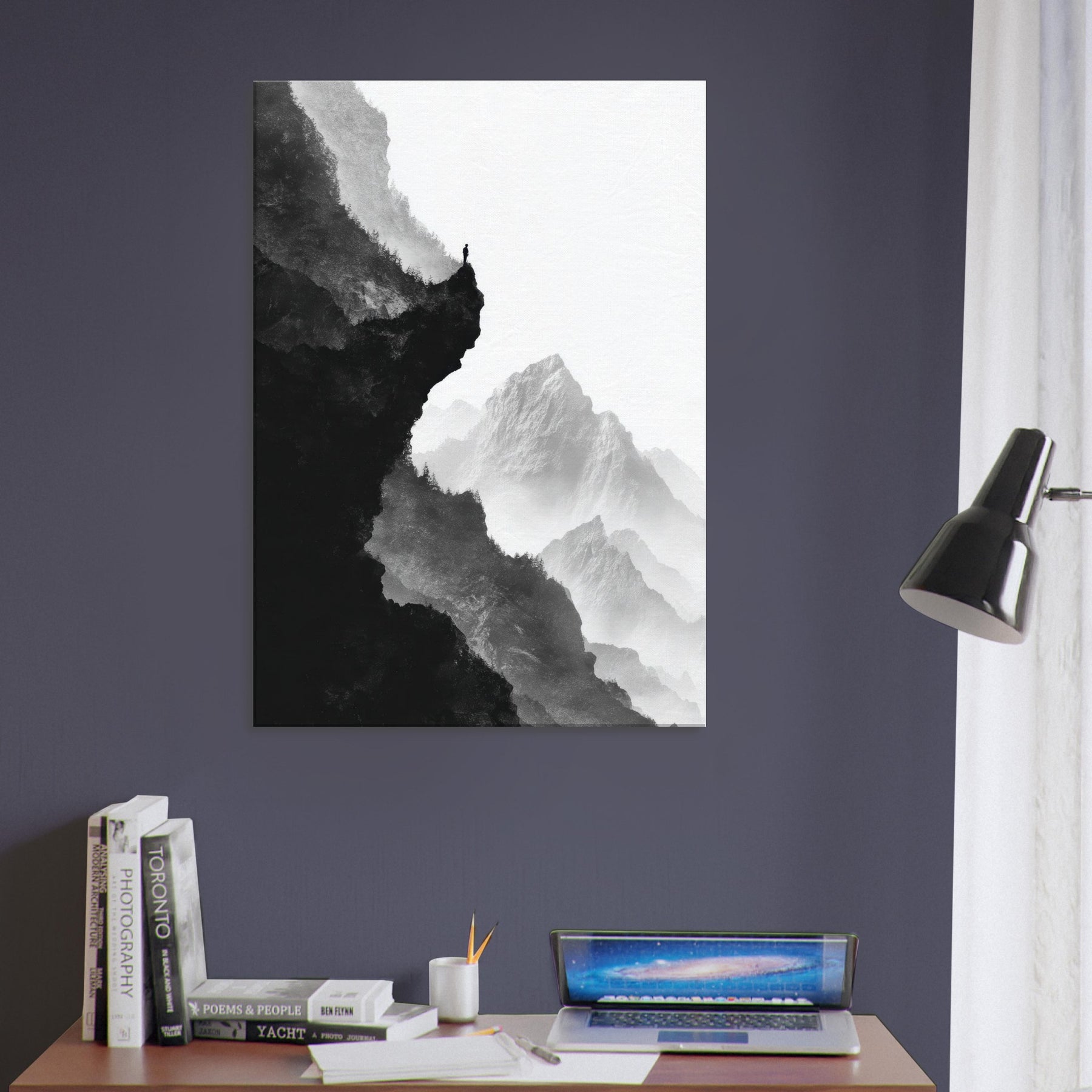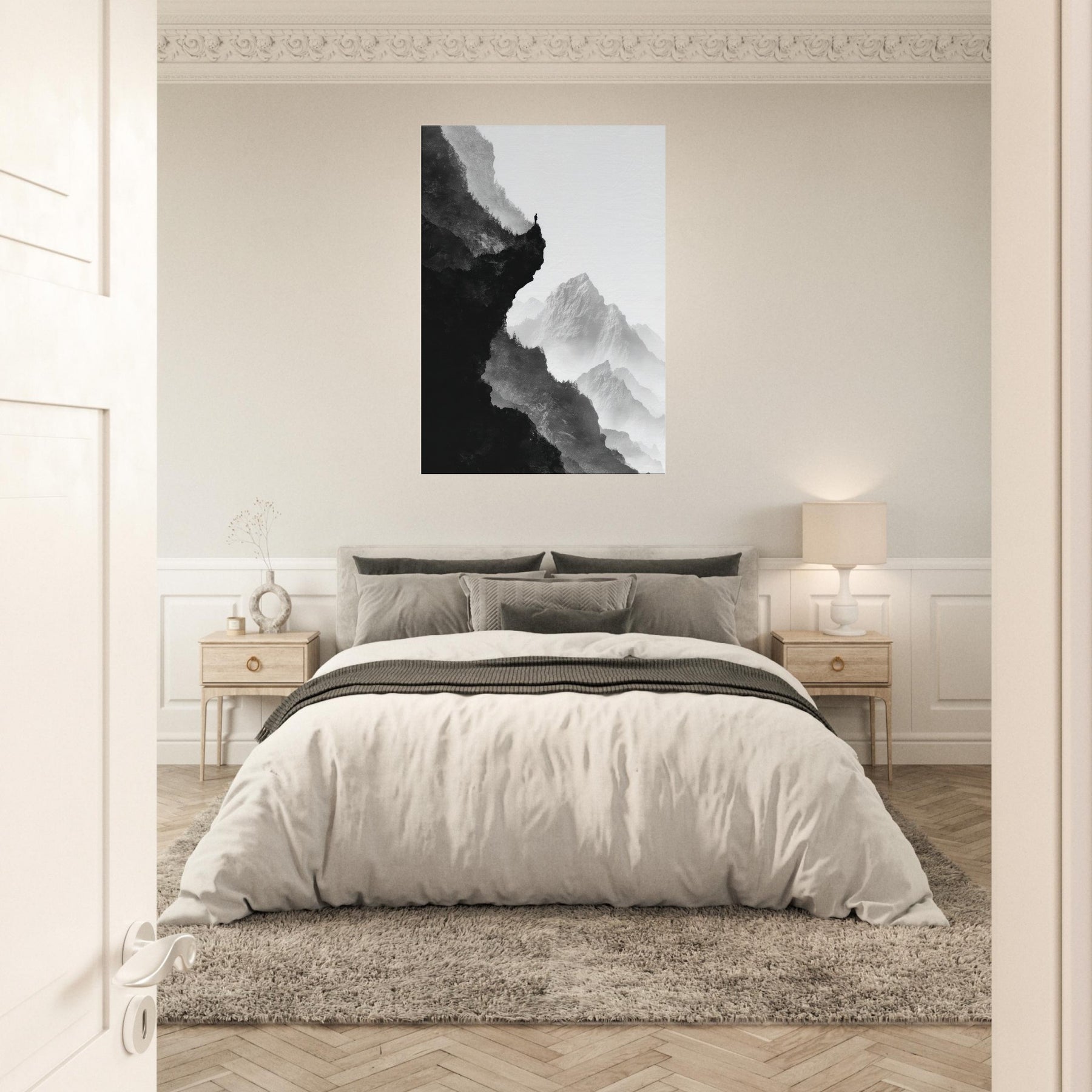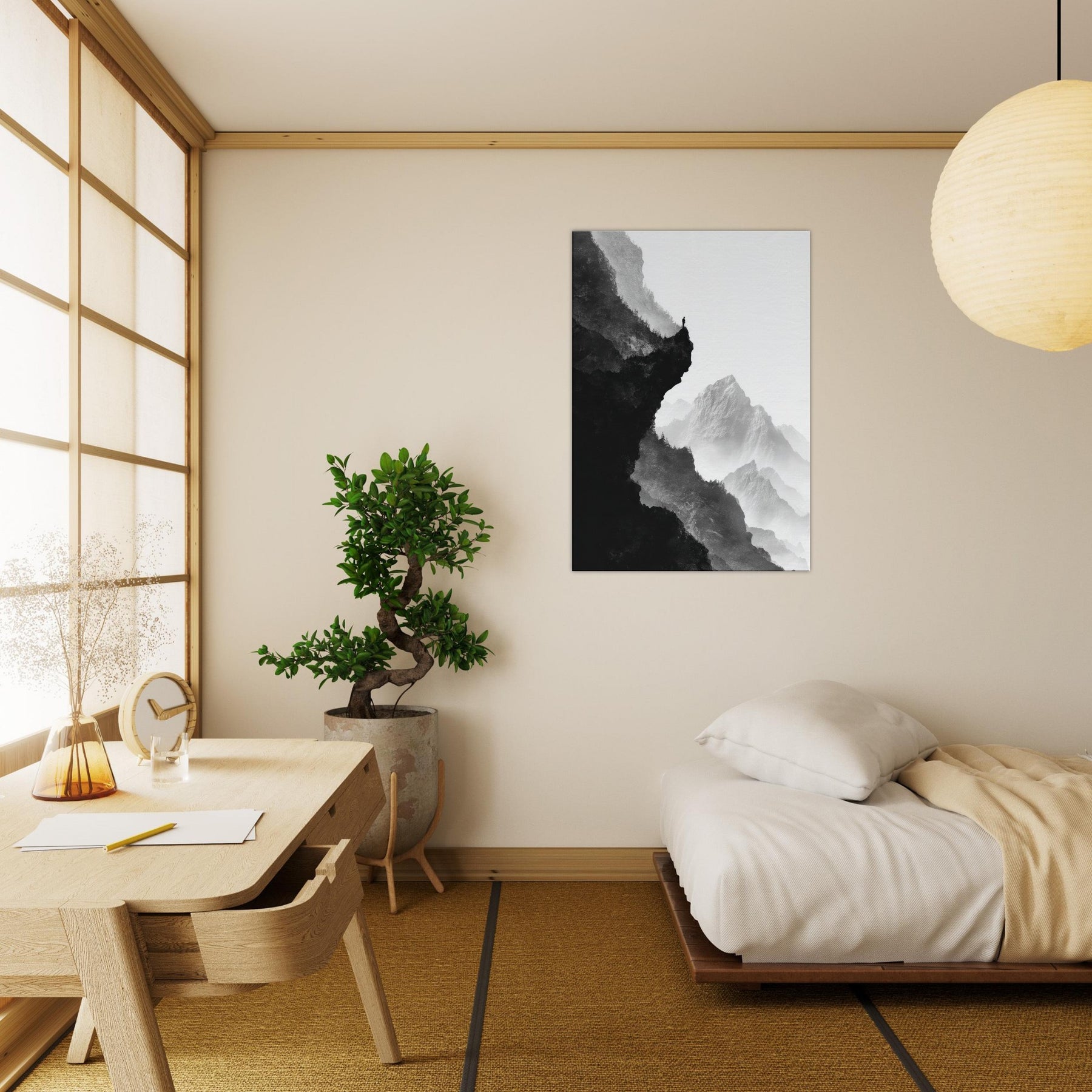 Great Wall Silhouette renders a lone figure against a vast, unforgiving ascent of rock and mist. In stark black and white, the image breathes quiet drama, inviting contemplation of distance, time, and human scale. The piece anchors a room with refined contrast, turning bare walls into a horizon of memory and aspiration. Hang it over a sofa or desk to evoke a retreat into high places where light threads through shadow and architecture becomes a gentle, suspended echo of history.