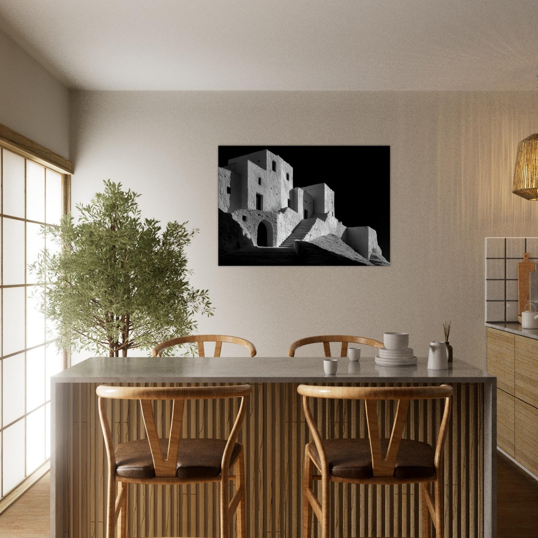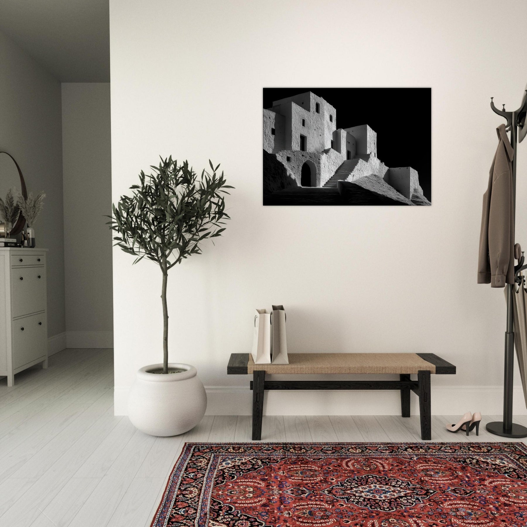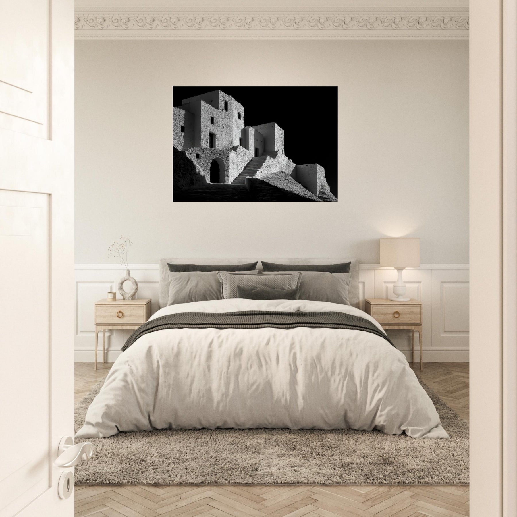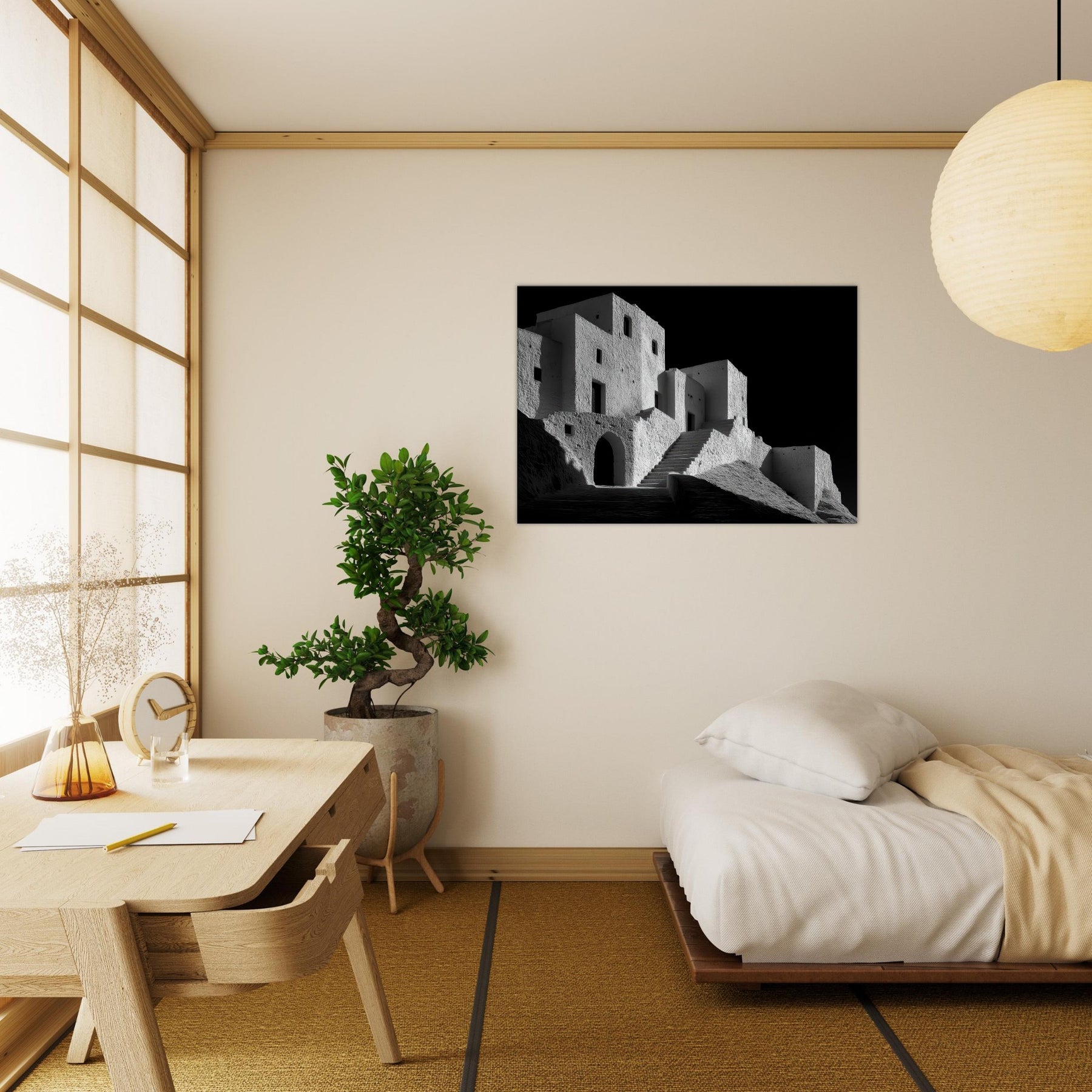 Immerse your space in the quiet authority of a Fortress rendered in stark black and white. The textured walls and sweeping stairways invite the eye to wander, while the deep shadows cradle the scene in timeless mystery. This wall art breathes calm precision into a living room or study, casting a sculptural atmosphere that feels both monumental and intimate. The Fortress becomes a memory of strength cool, contemplative, and infinitely adaptable to modern interiors.