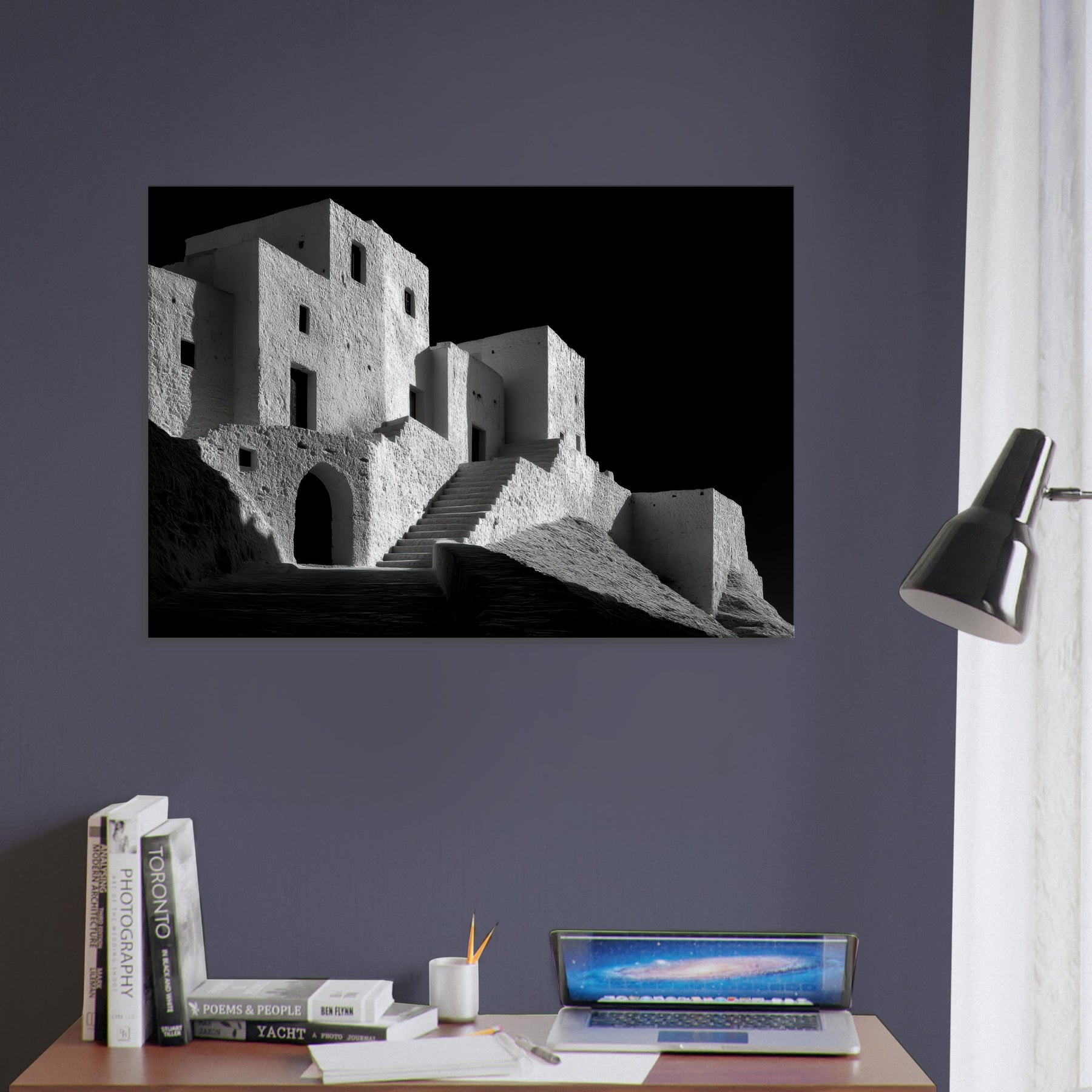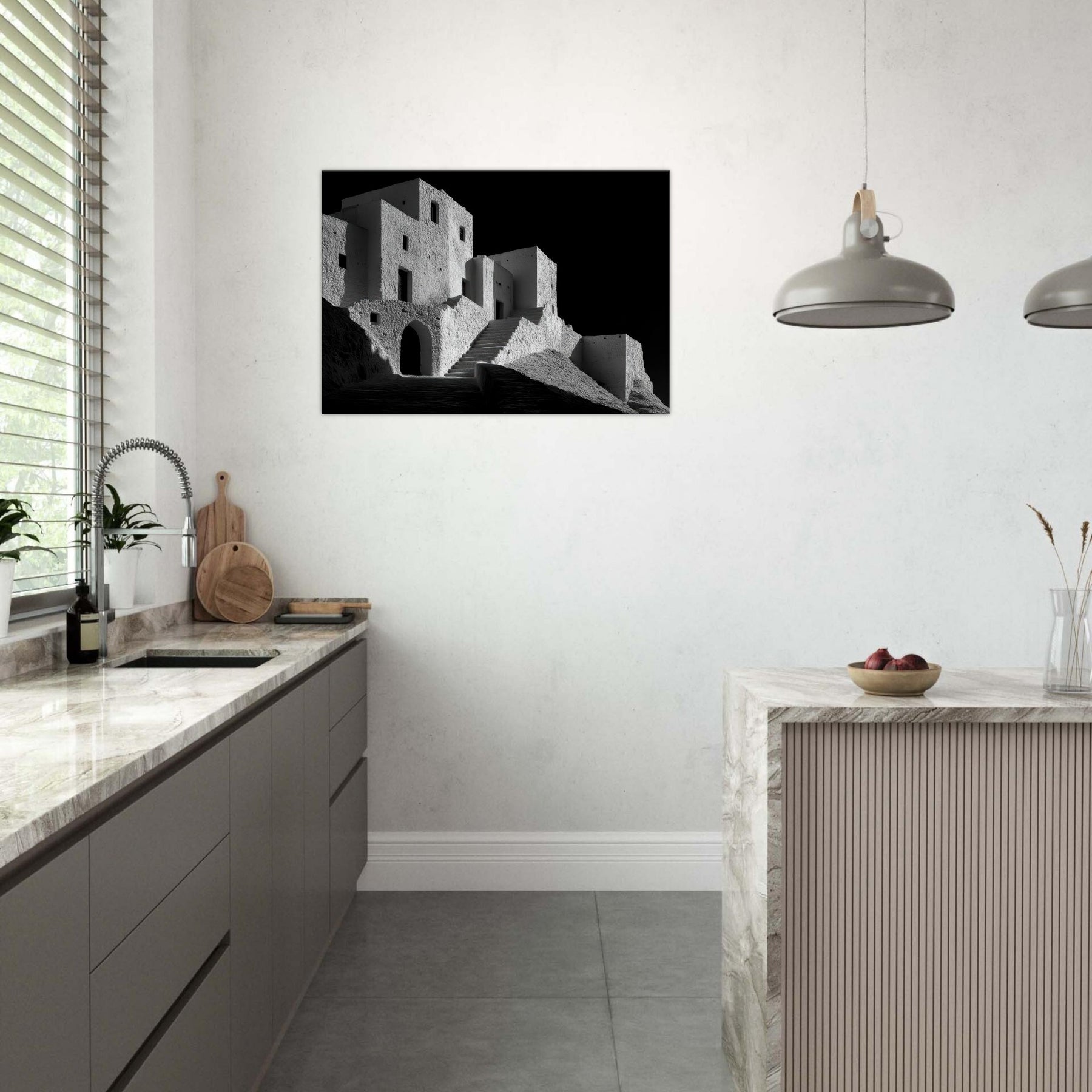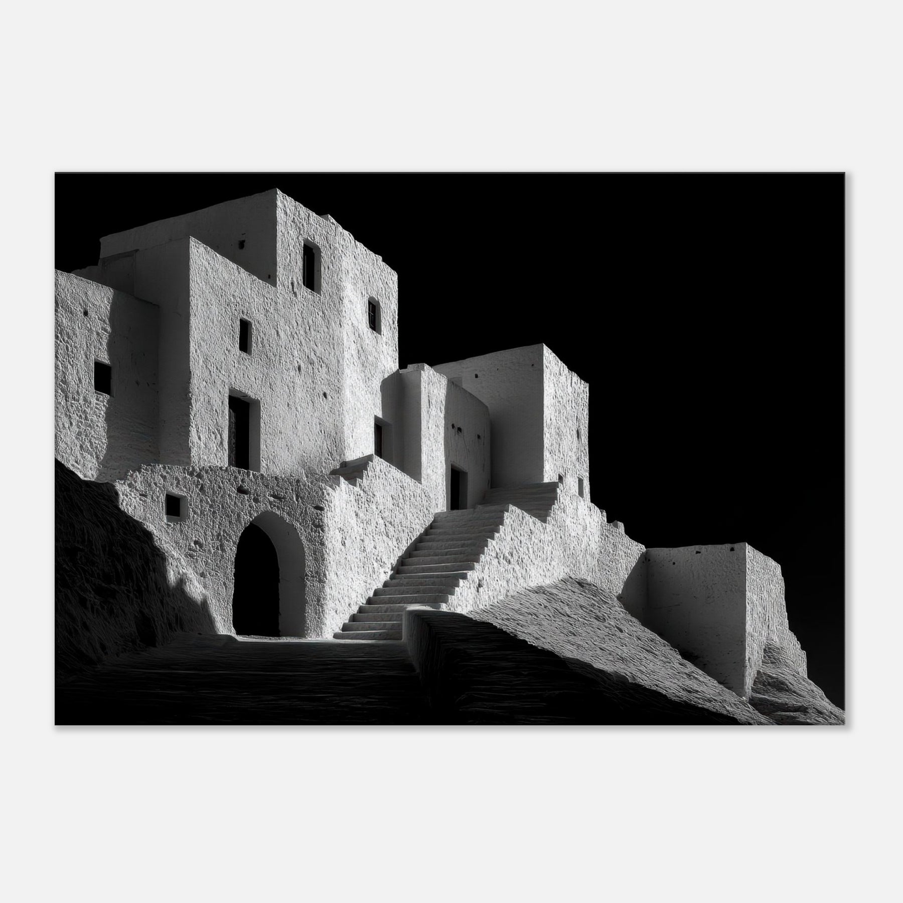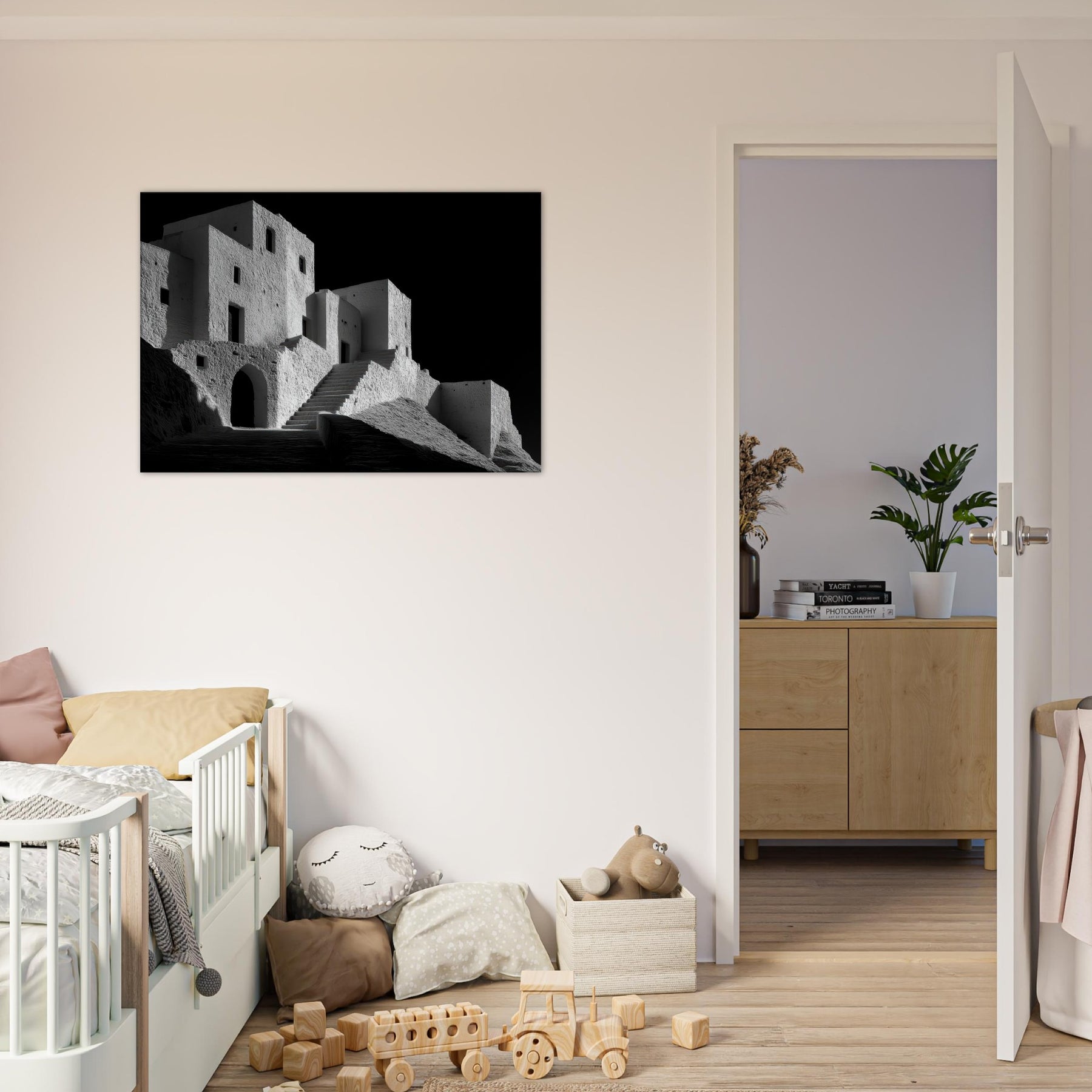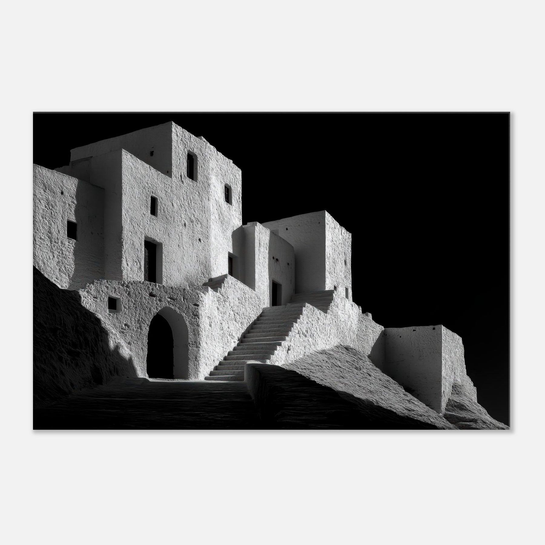 Immerse your space in the quiet authority of a Fortress rendered in stark black and white. The textured walls and sweeping stairways invite the eye to wander, while the deep shadows cradle the scene in timeless mystery. This wall art breathes calm precision into a living room or study, casting a sculptural atmosphere that feels both monumental and intimate. The Fortress becomes a memory of strength cool, contemplative, and infinitely adaptable to modern interiors.