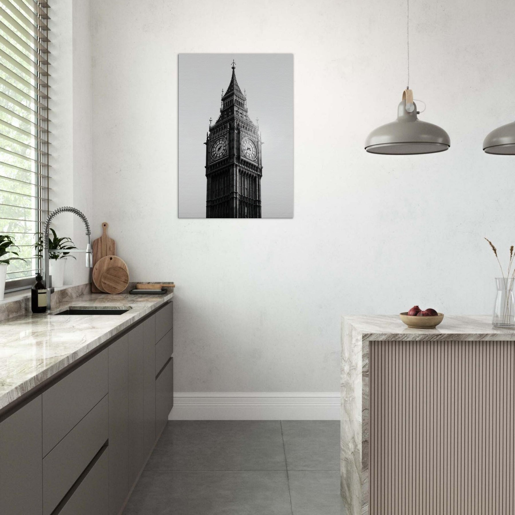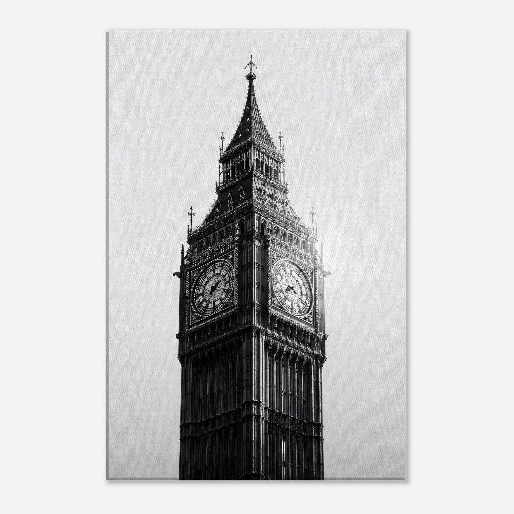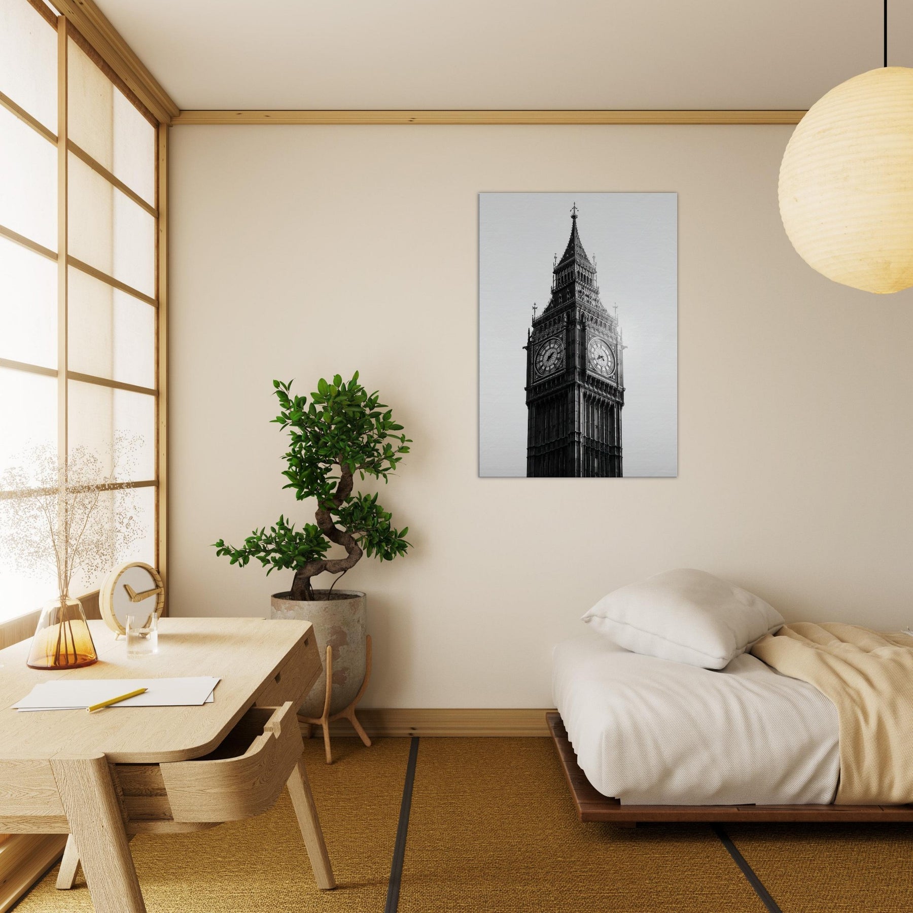 A bold, monochrome of Big Ben that invites quiet reflection. The black and white lines trace the tower’s intricate Gothic details, while the soft gradation of light evokes London’s timeless fog and twilight. This piece breathes a sense of scale and memory into any room, pairing architectural precision with human warmth. Hang it where you want a refined focal point and an everyday reminder of endurance, rhythm, and city steeped atmosphere.