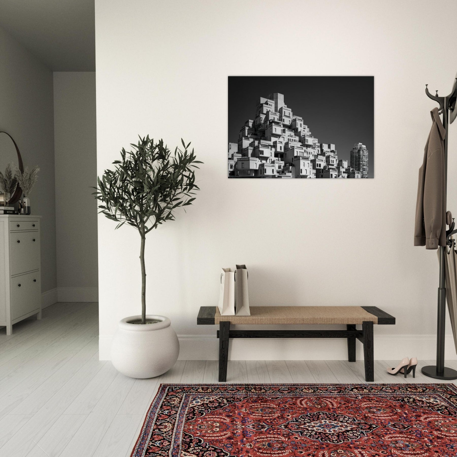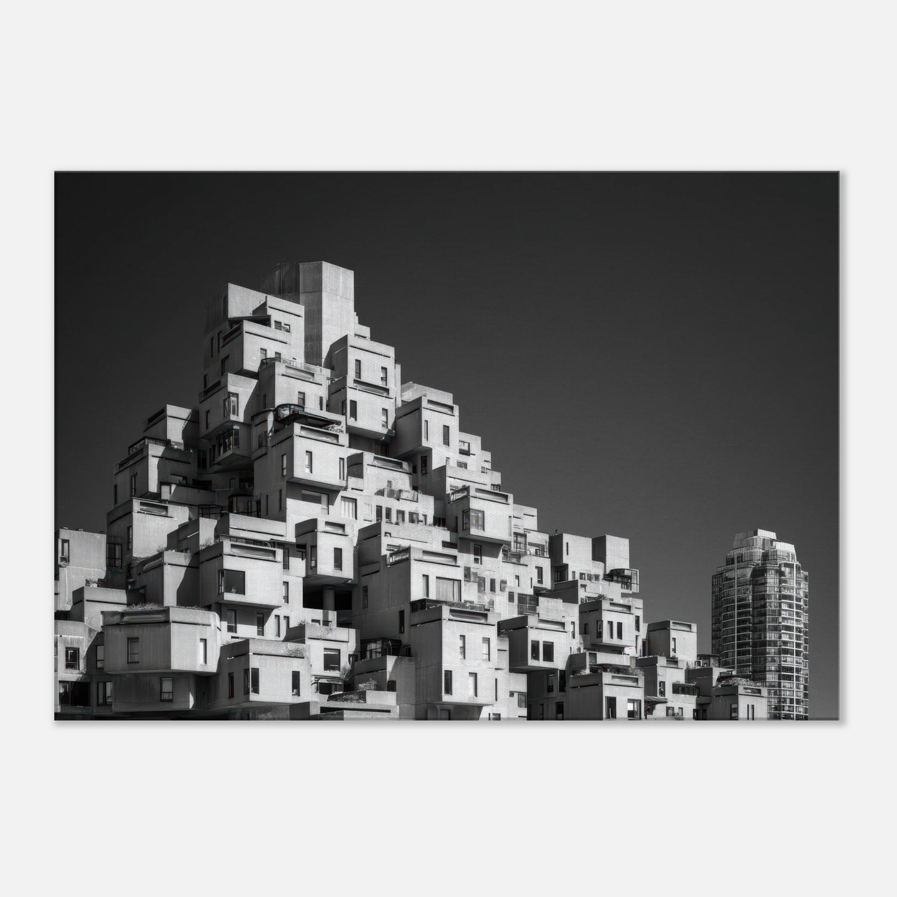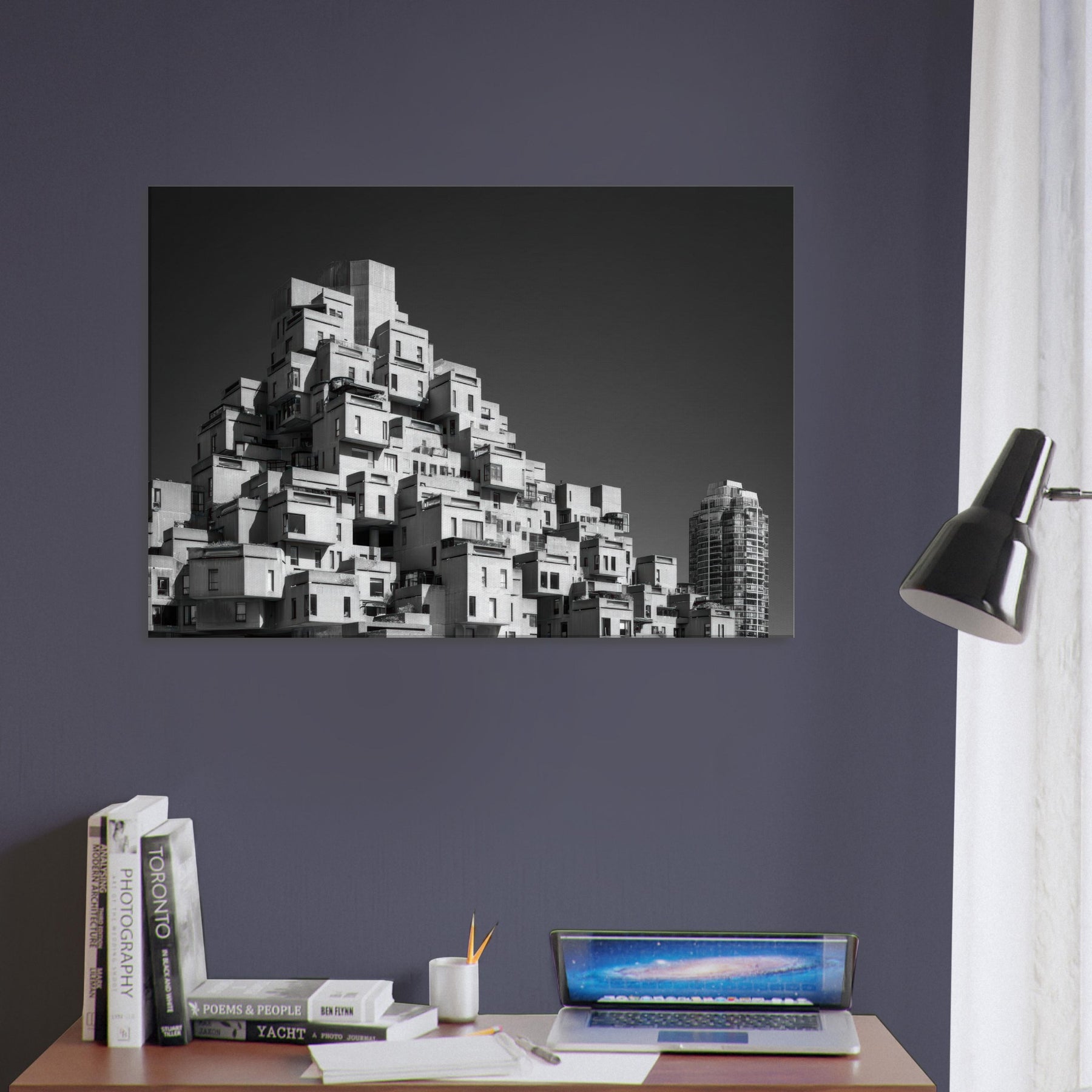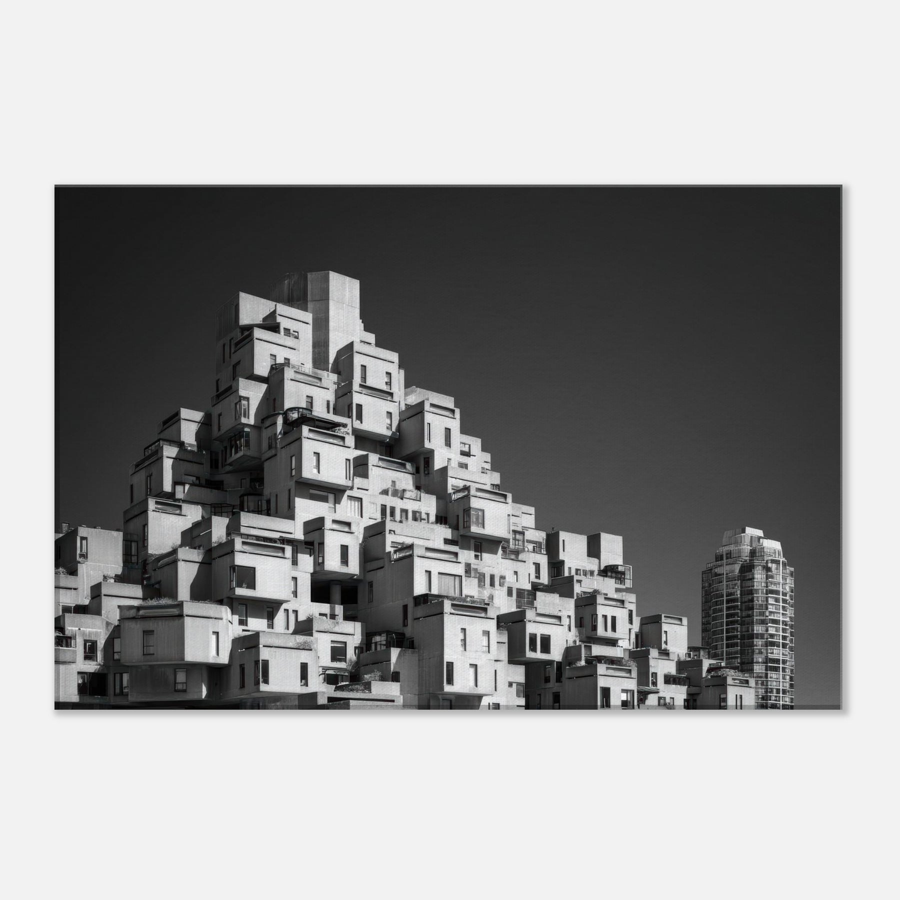 Montreal unfolds as a sculptural cityscape in stark relief a whisper of architecture and light. This black and white composition invites quiet contemplation, where each blocky form suggests memory and motion in equal measure. Hang it in a living room or study to anchor the space with urban grace, echoing Montreal’s rhythm while calming the day with precise contrast and a timeless, architectural poetry.