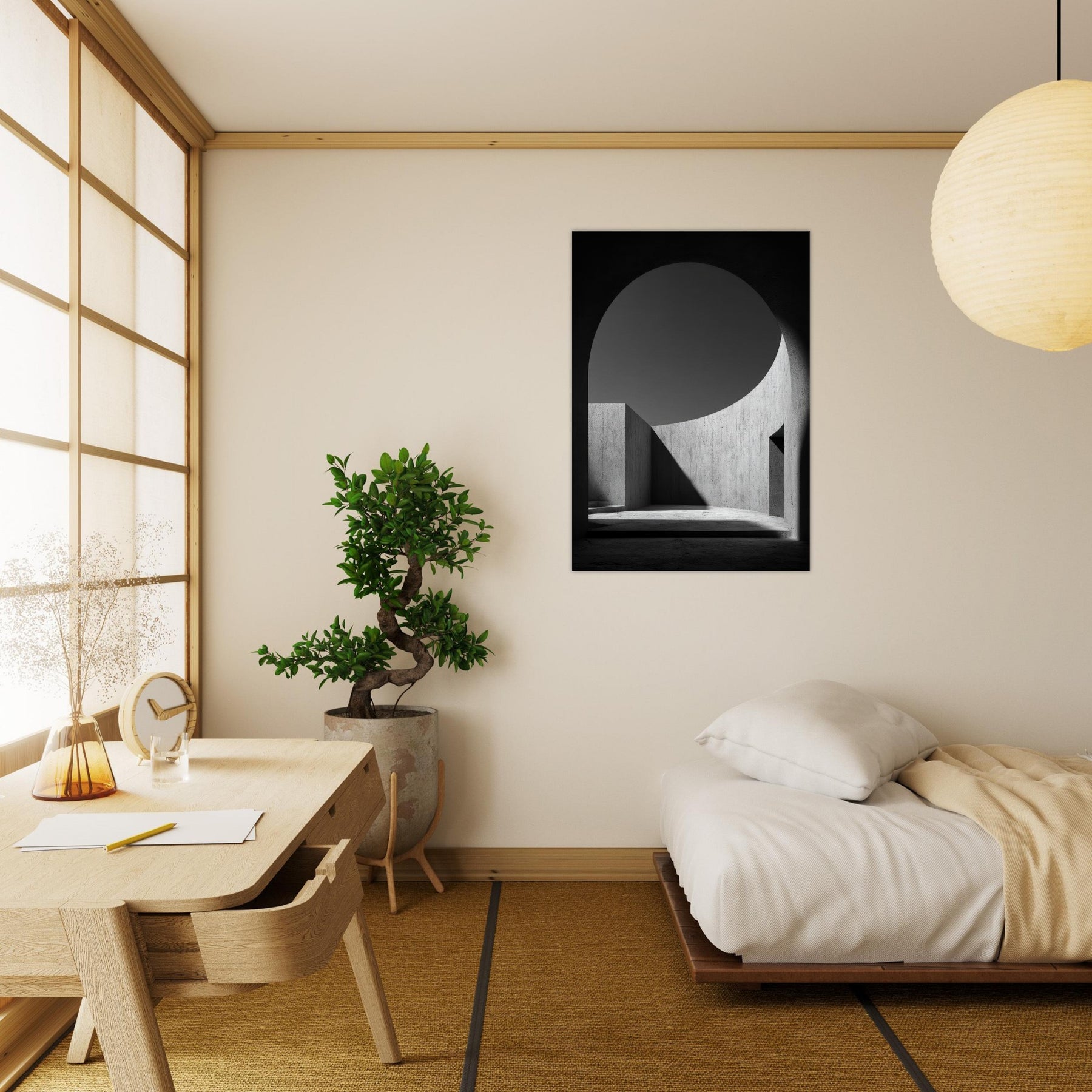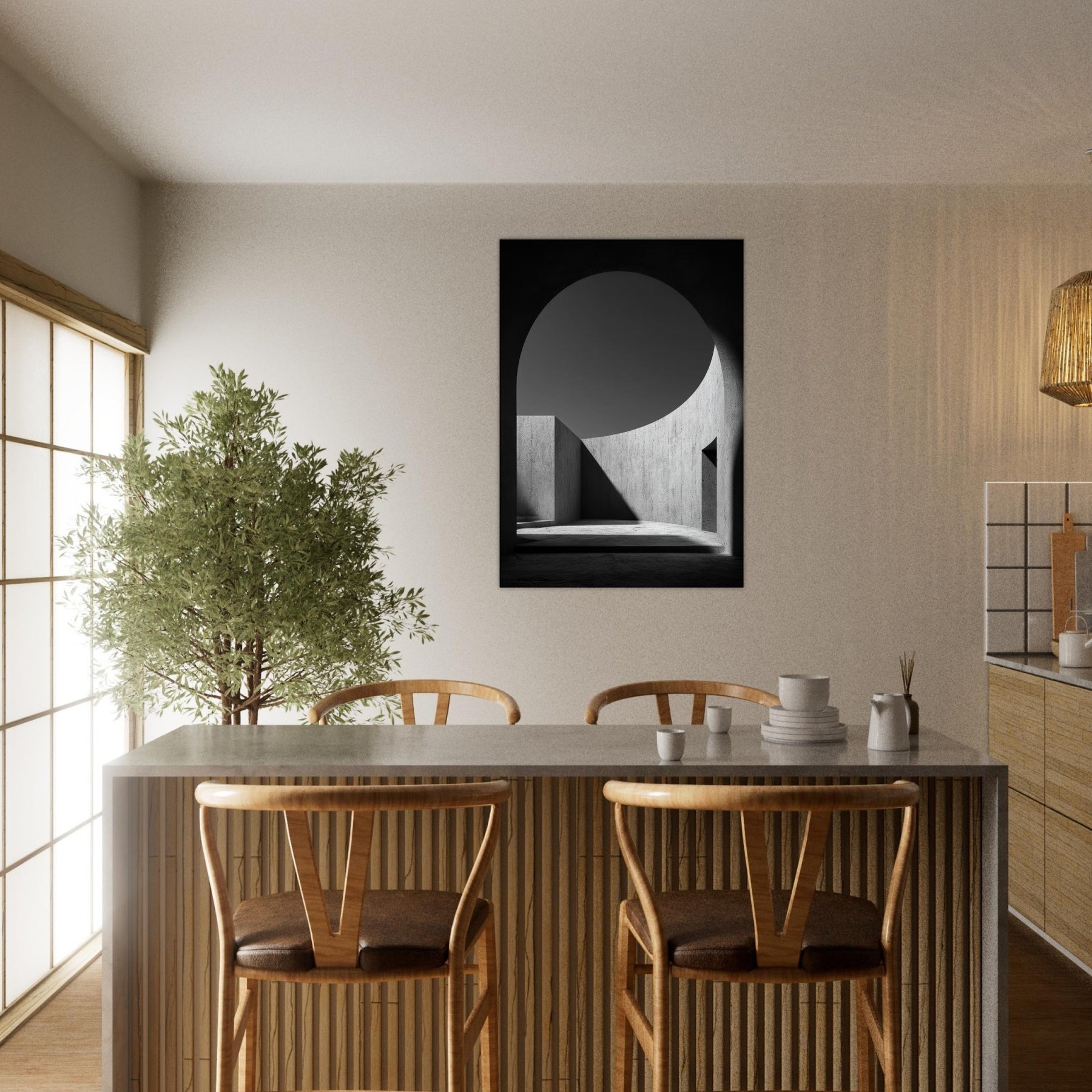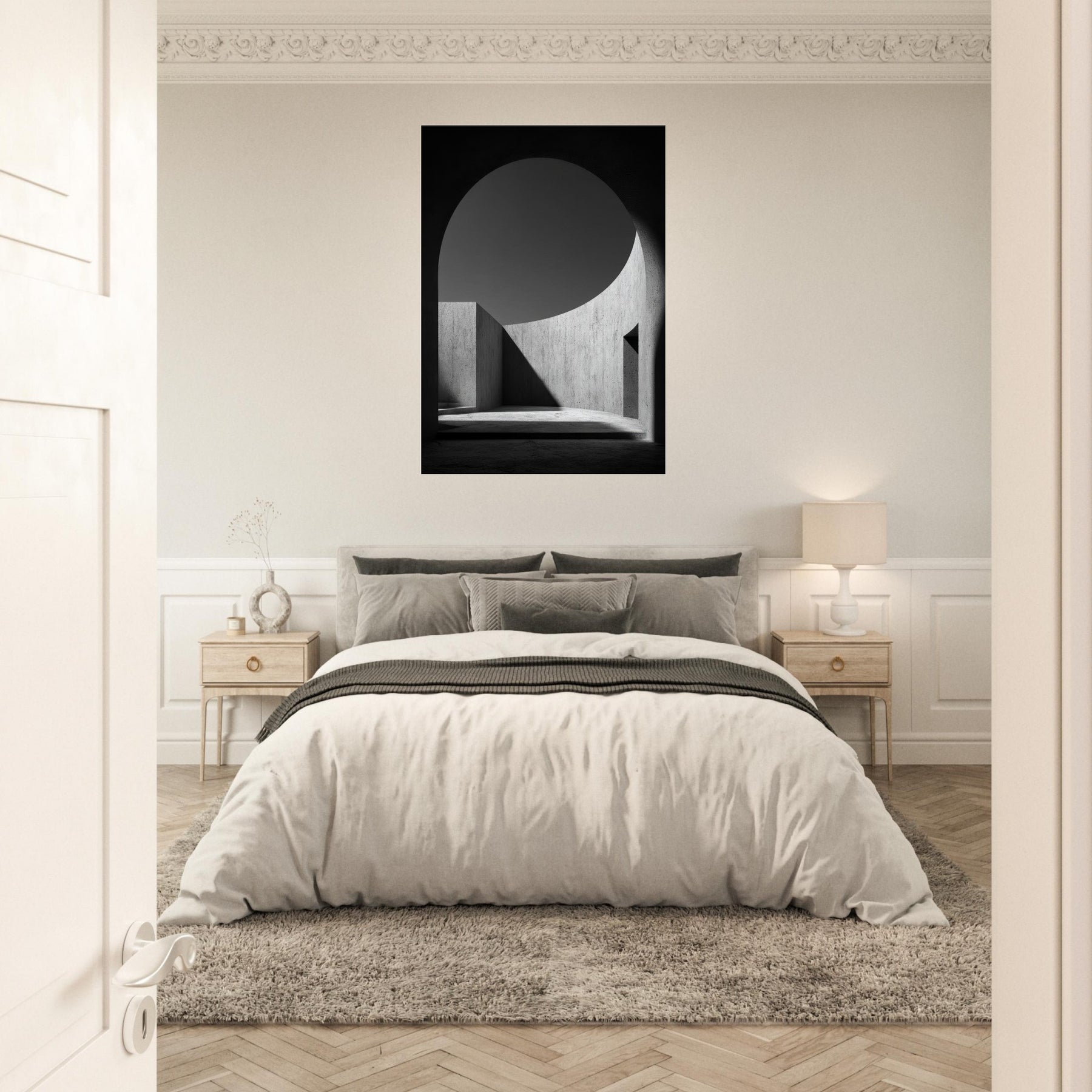 Moon Gate unfolds in stark, graceful geometry a contemplative study of archways and concrete light. In black and white, the soft gradients and stark shadows invite calm, letting rooms breathe and the mind wander toward distant avenues of the city. This Moon Gate wall art nourishes a modern living space with architectural poetry, a quiet drama above conversation or a midnight coffee. Hang it where natural daylight can kiss its curves, and watch the room’s tempo slow to a thoughtful rhythm.