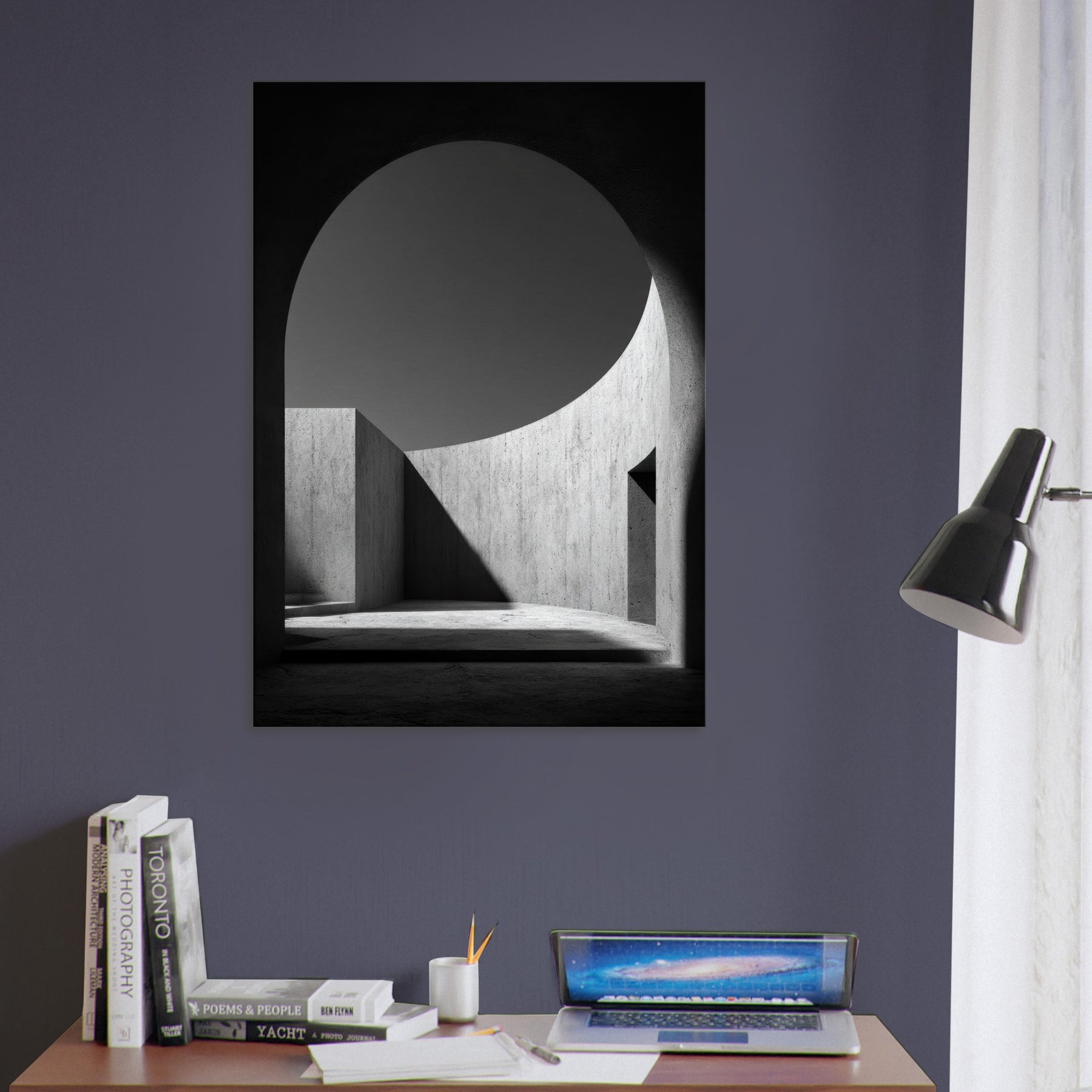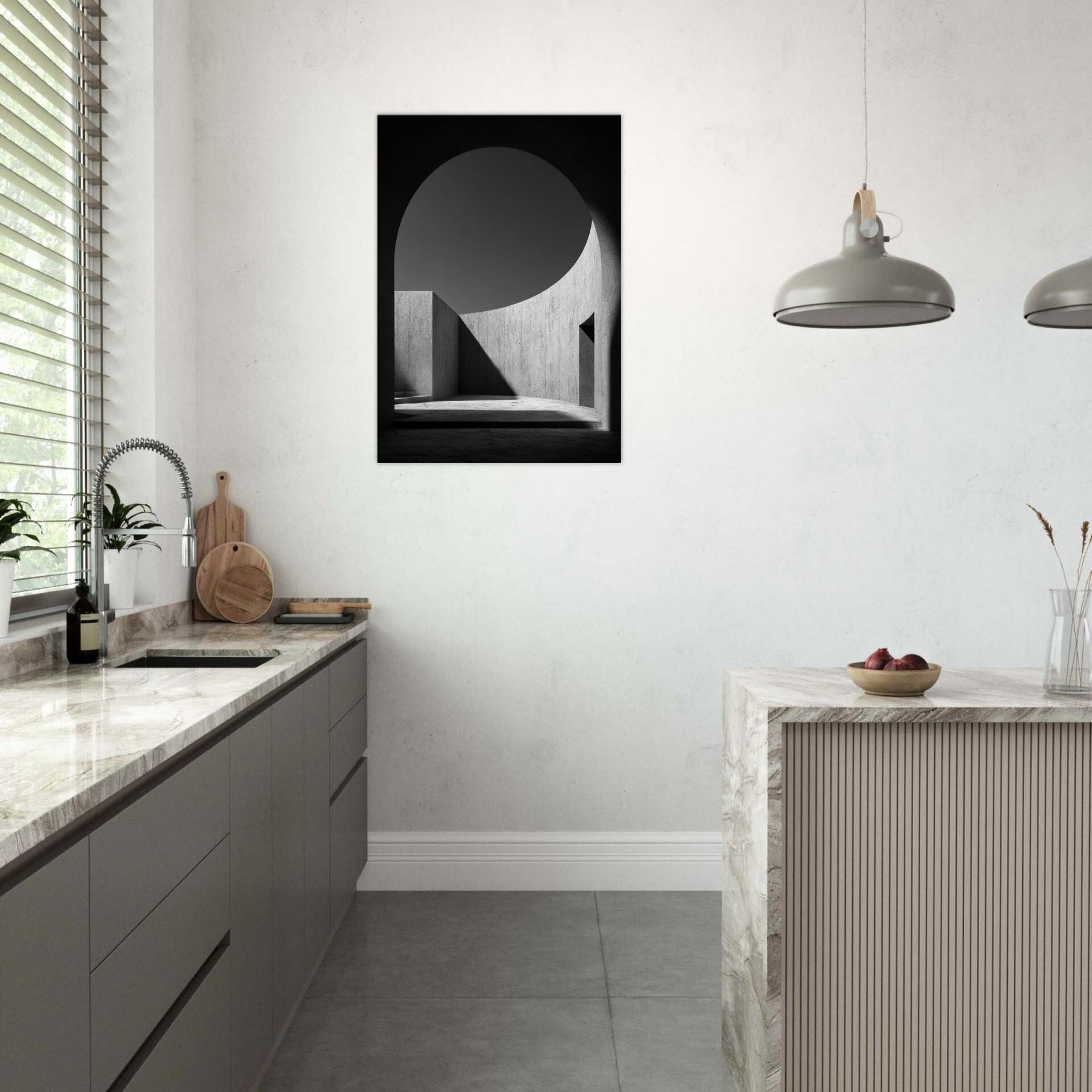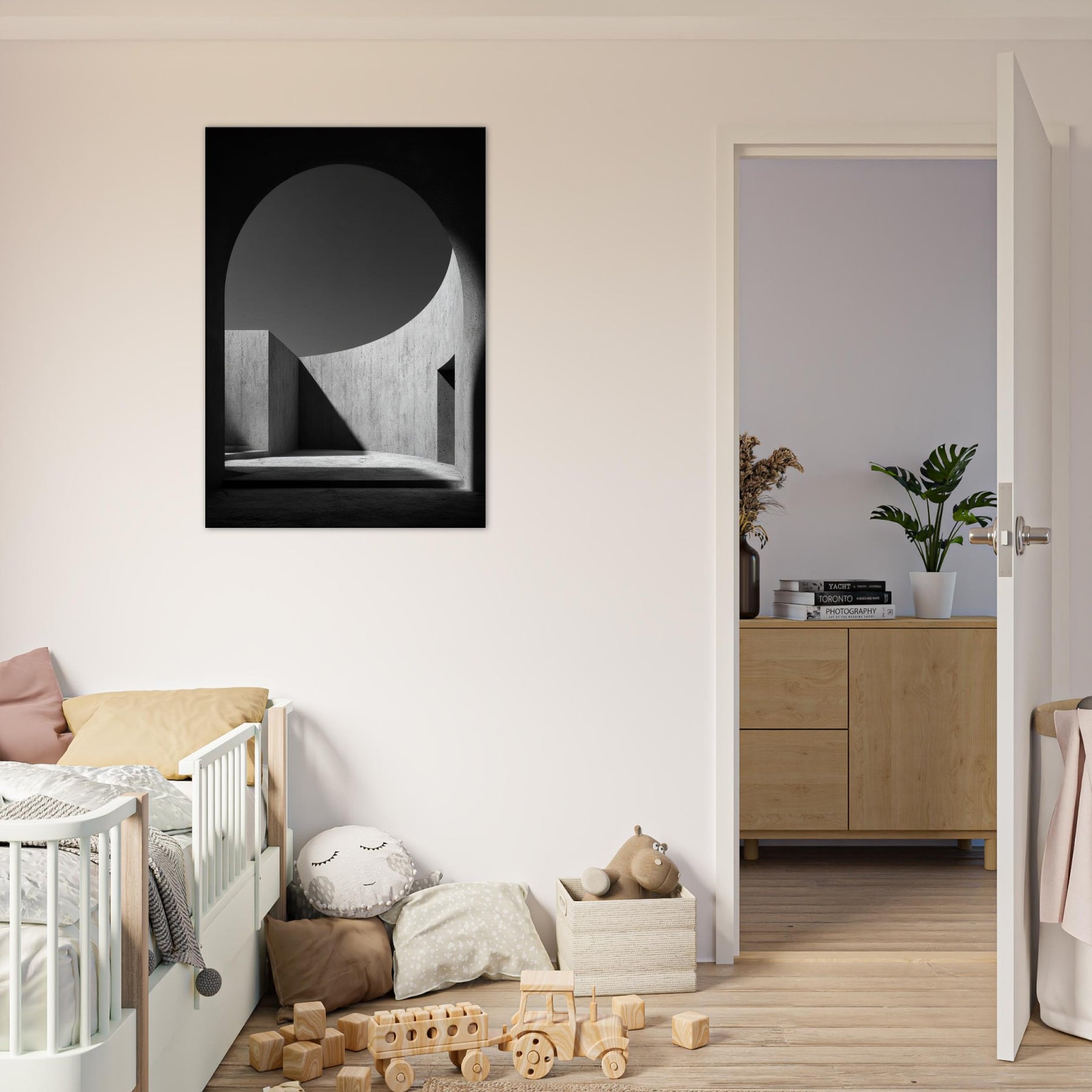 Moon Gate unfolds in stark, graceful geometry a contemplative study of archways and concrete light. In black and white, the soft gradients and stark shadows invite calm, letting rooms breathe and the mind wander toward distant avenues of the city. This Moon Gate wall art nourishes a modern living space with architectural poetry, a quiet drama above conversation or a midnight coffee. Hang it where natural daylight can kiss its curves, and watch the room’s tempo slow to a thoughtful rhythm.