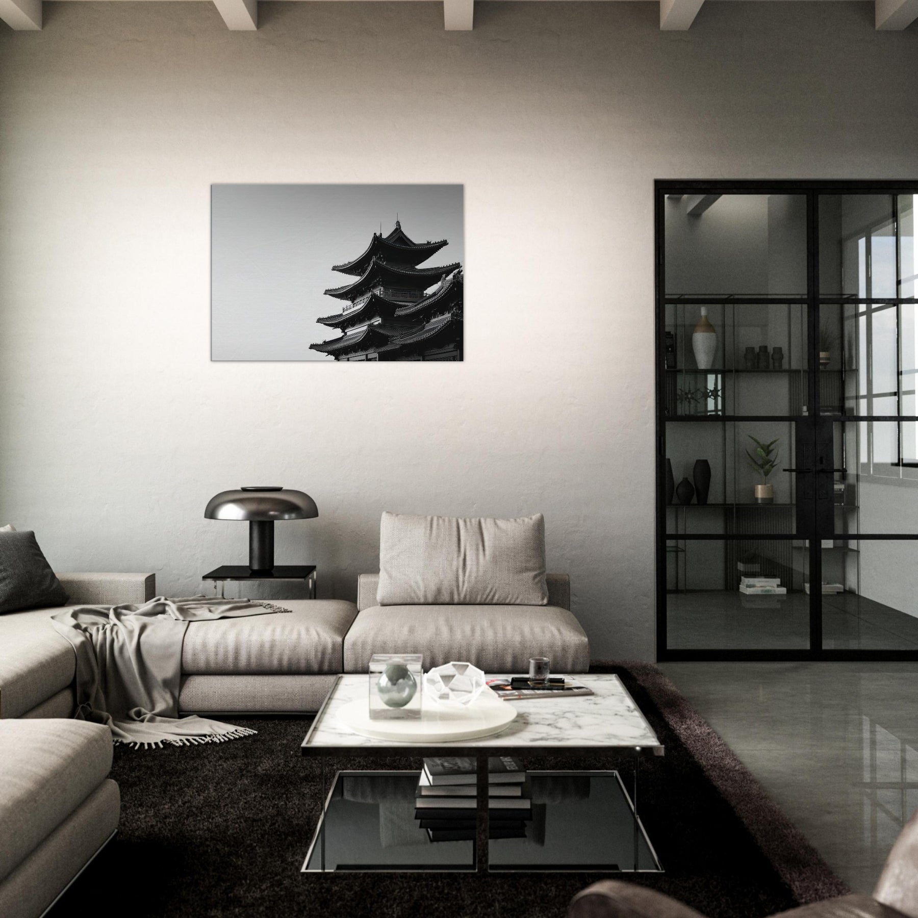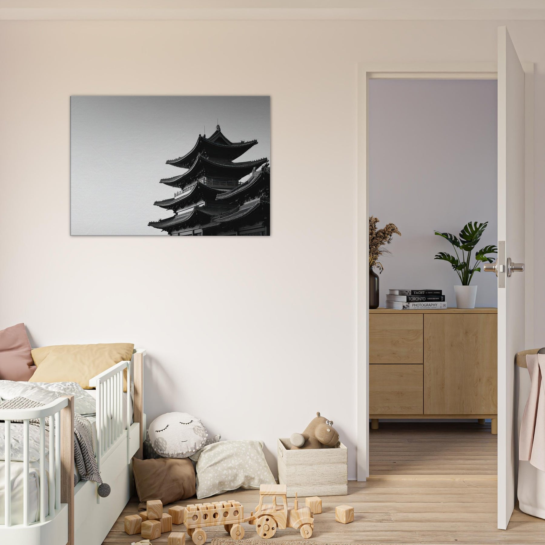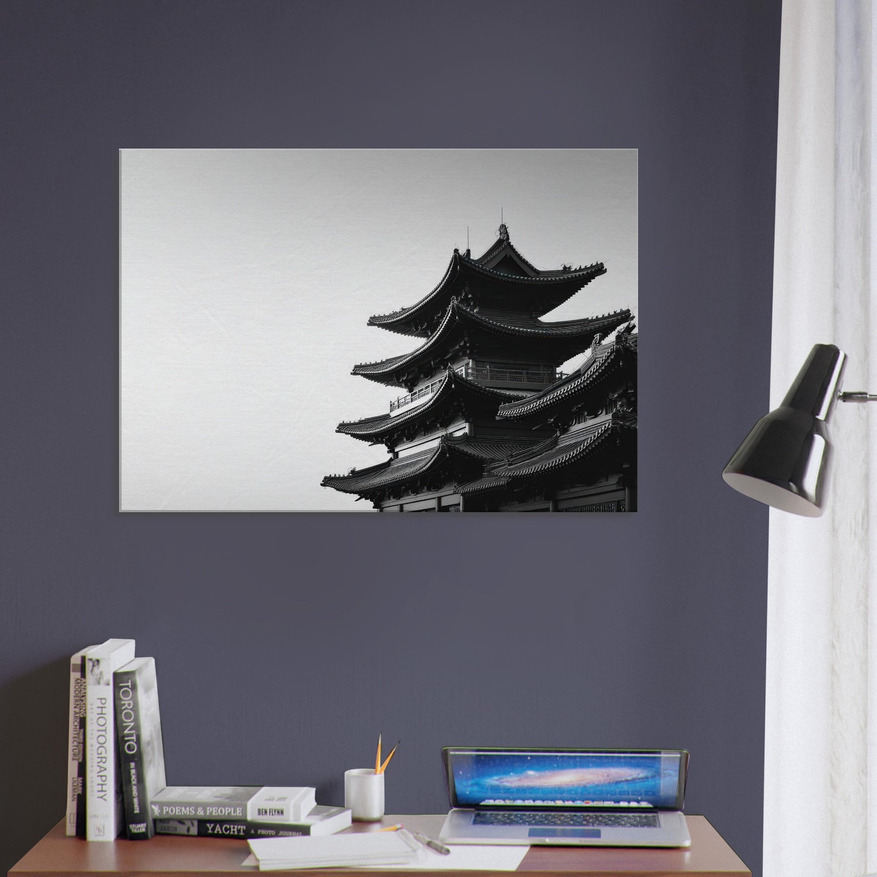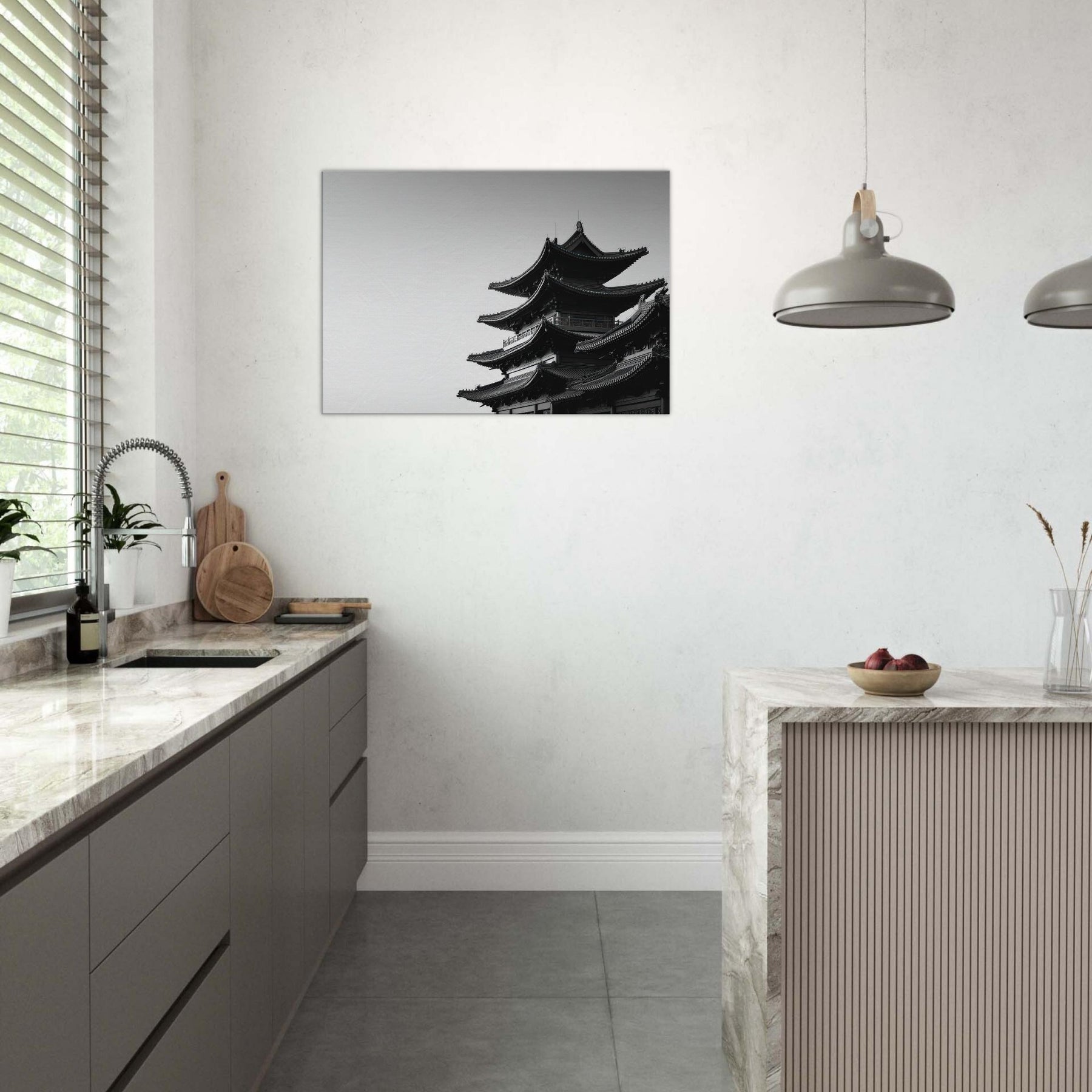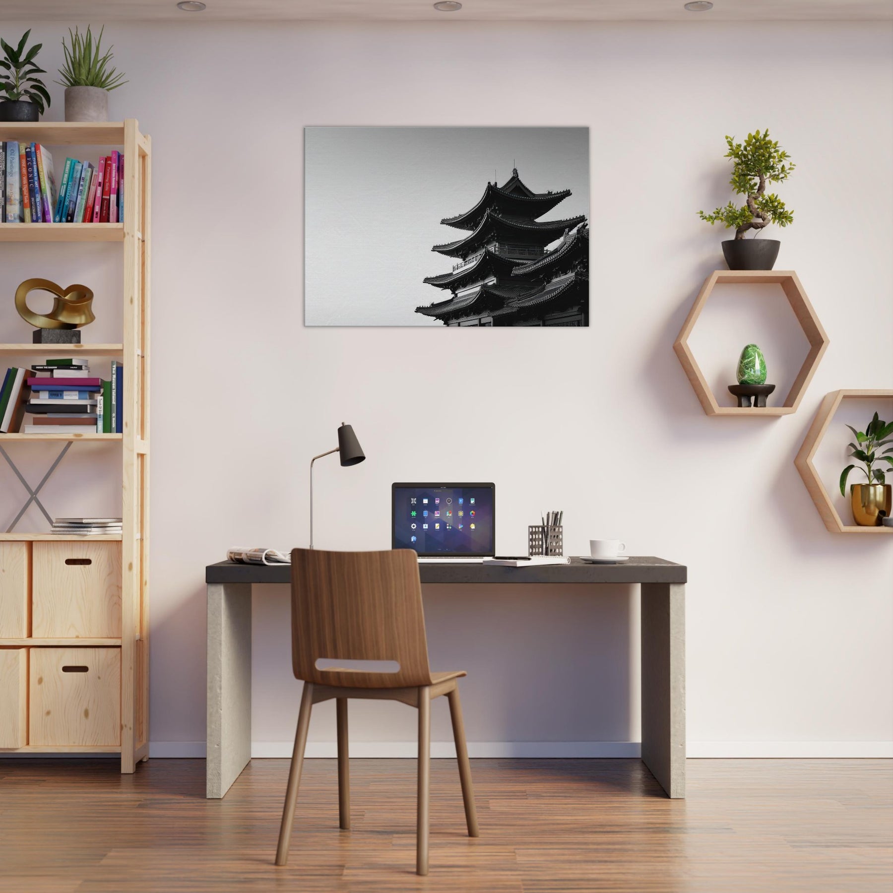 Immerse your space in the quiet drama of the Pagoda Roofline, rendered in stark black and white. This architectural silhouette invites contemplation, its curved eaves tracing a rhythm of calm against a pale, open page. The piece breathes balance into living rooms and hallways, pairing the warmth of wood tones with the cool precision of ink, casting gentle shadows that change with the light. A timeless accent for city lovers seeking serenity amid urban energy.