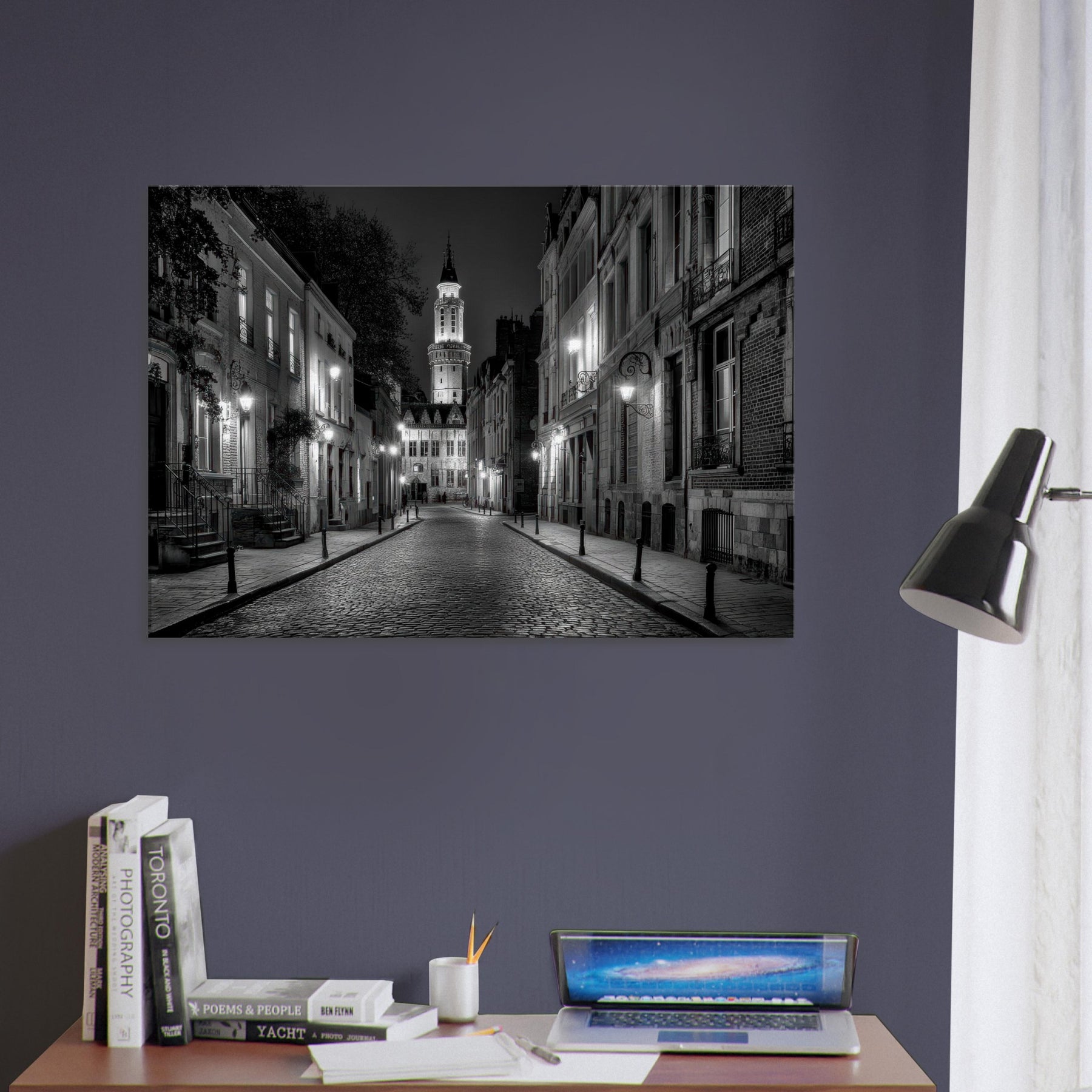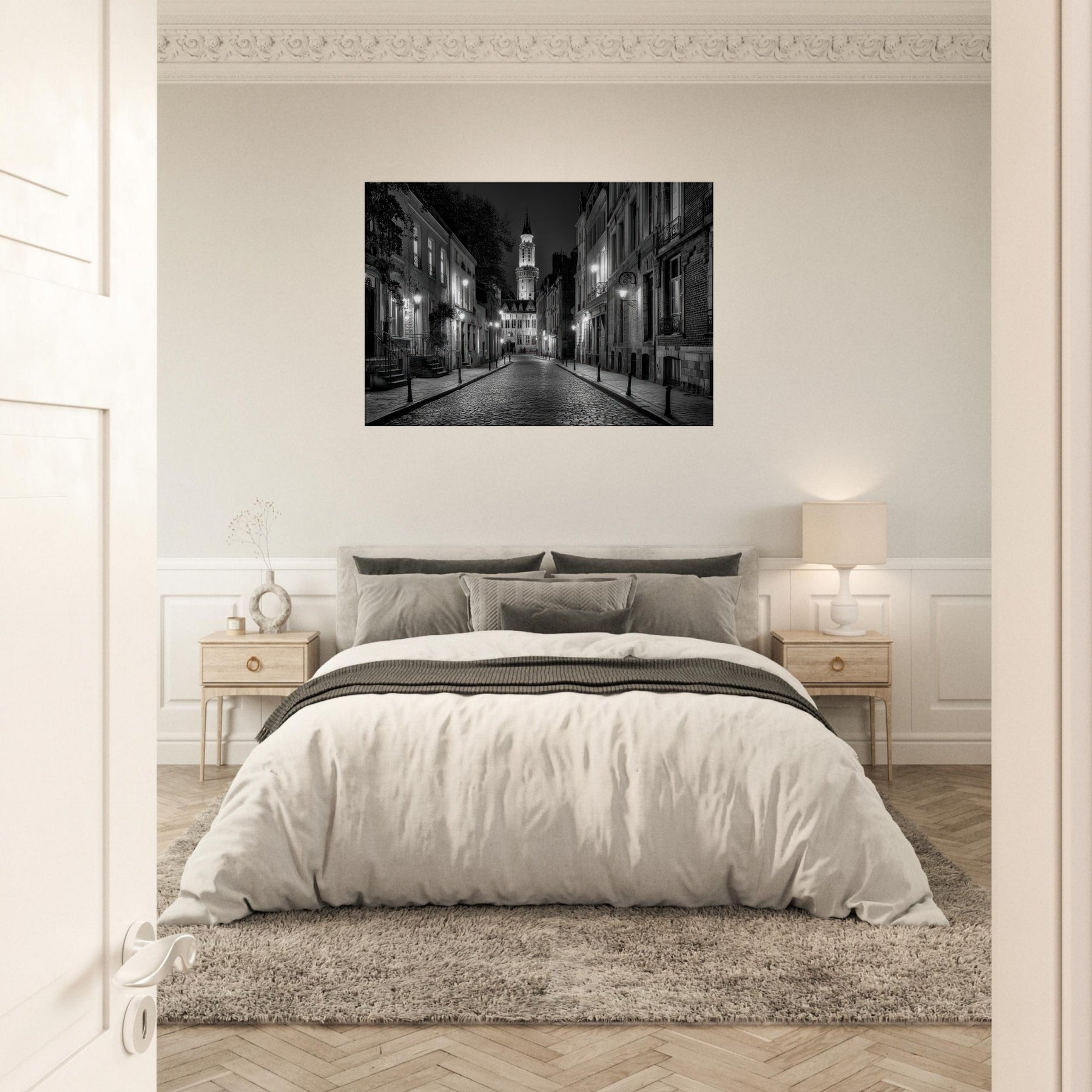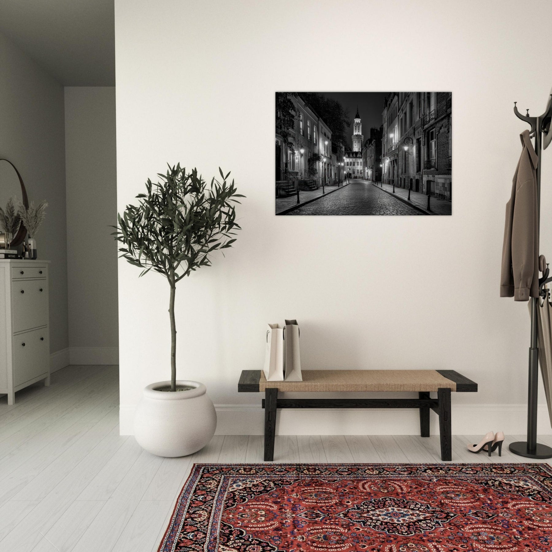 European Streets unfold in monochrome, where antique façades glow under streetlamps and rain kissed cobbles reflect a quiet cinema of light. This black and white study captures the hush between footsteps and distant bells, inviting a serene mood into your living space. The contrast and texture speak of history and distance, while the composition frames a timeless city walk as a living artwork you can inhabit. Hang it in a dining nook or study to spark reflection, conversation, and refined urban atmosphere daily.