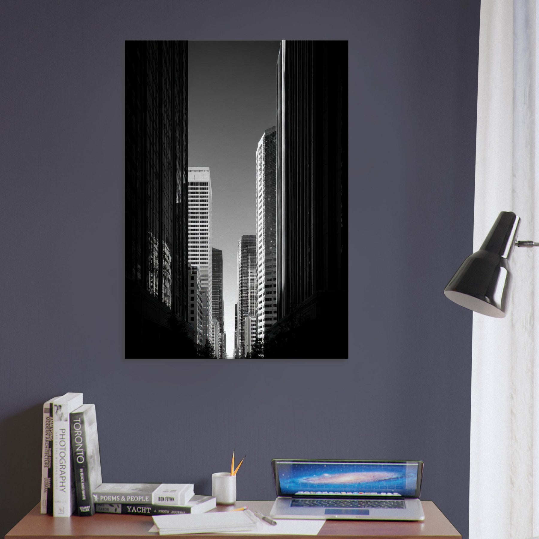 Vancouver emerges as a quiet, monumental breath in black and white. The photograph draws you between canyon like streets where sun gleams on steel and glass, then recedes into deep shadows that feel like a whisper. This iconic urban study brings a cool elegance to any living space, pairing crisp lines with a soft, contemplative mood. Perfect above a sofa or console, it lends spacious calm, modern sophistication, and a subtle, city sourced poetry to everyday moments in Vancouver.