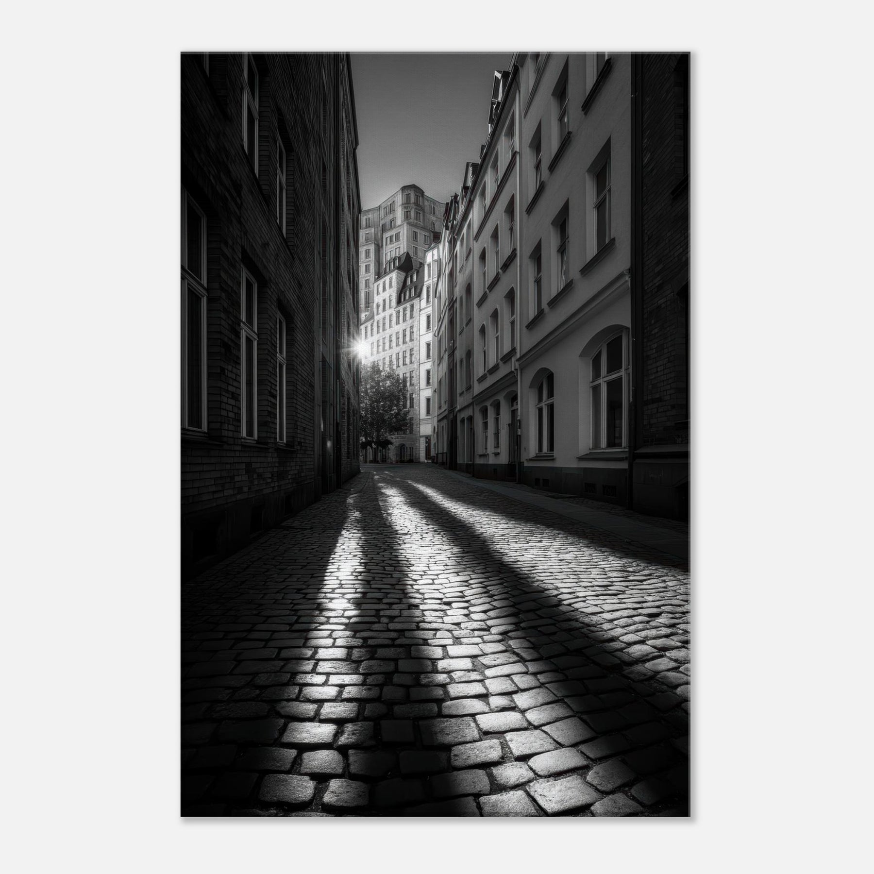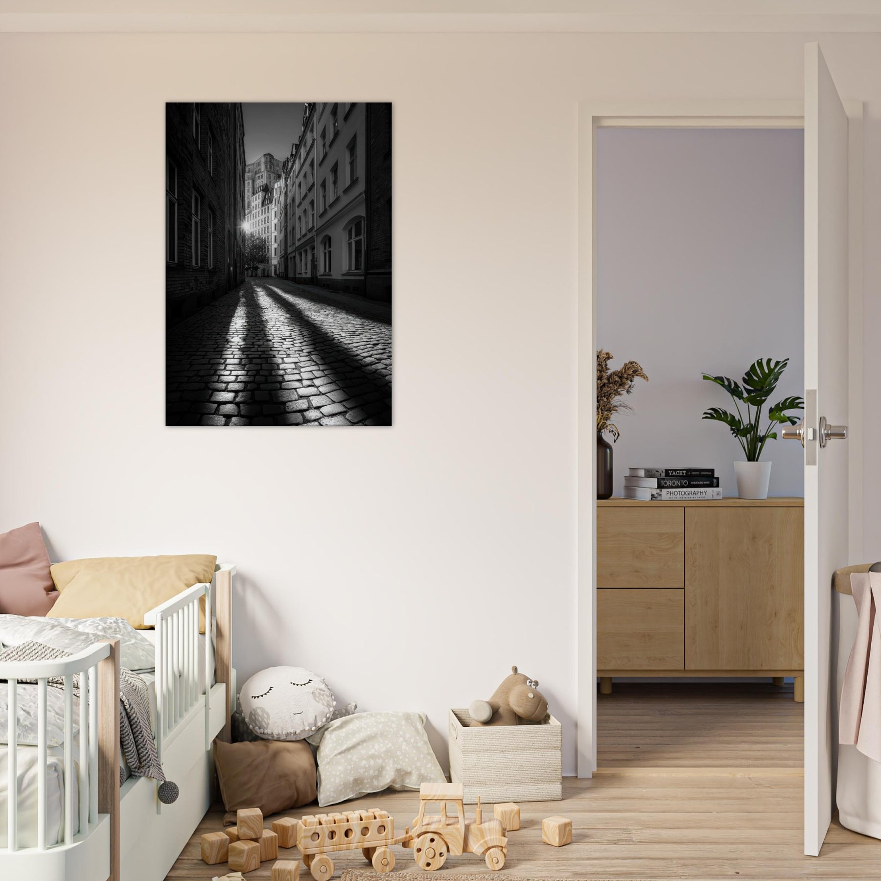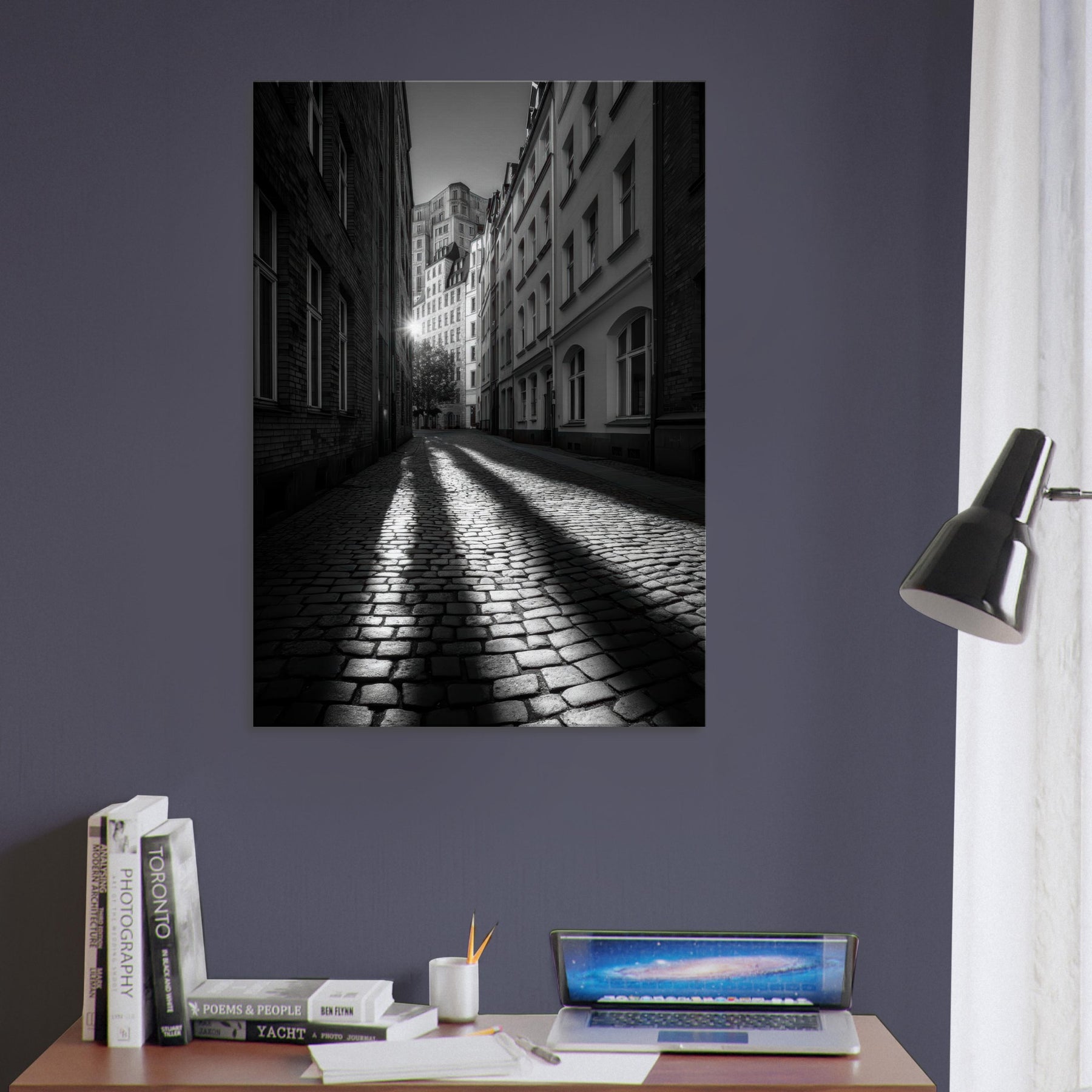 European Streets unfold in monochrome, where narrow lanes reflect the pulse of the city. This photograph invites quiet contemplation, the sun's last rays tracing cobblestones and lifting architectural silhouettes into timeless dialogue. It warms a living space with a cinematic stillness, turning hallways into intimate avenues and walls into a window to distant places. Let the soft contrasts and shadows guide conversation, as urban memory and modern design meet in one elegant, evocative composition.
