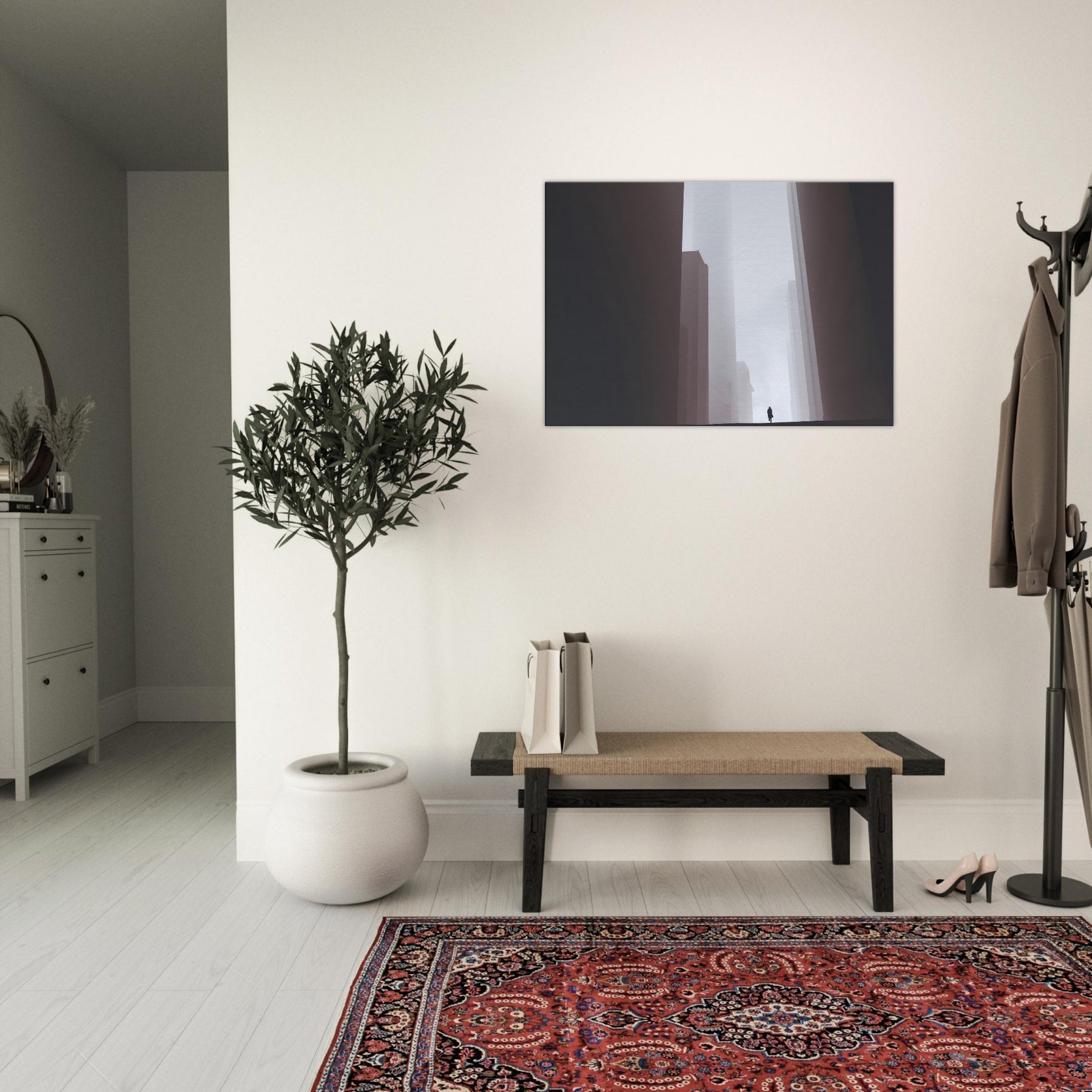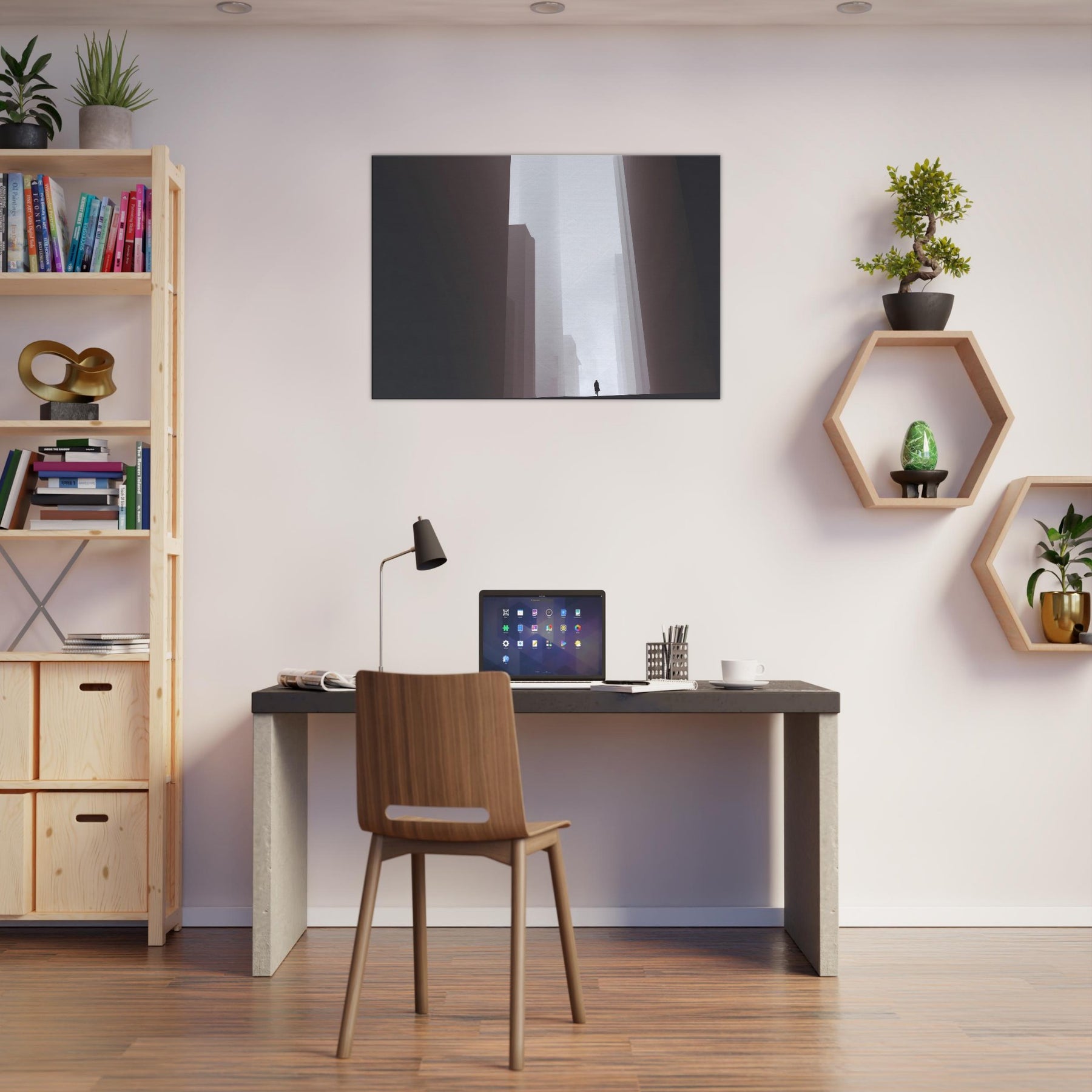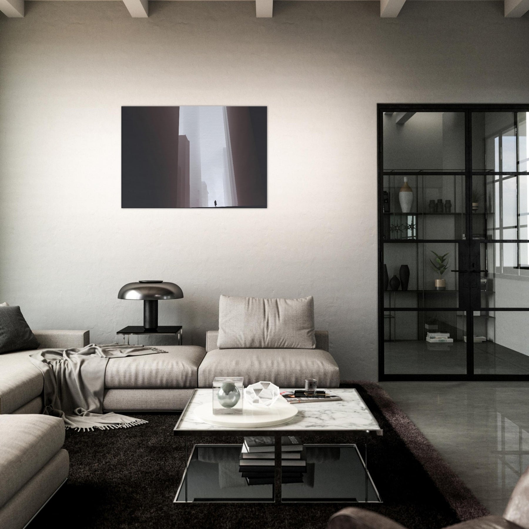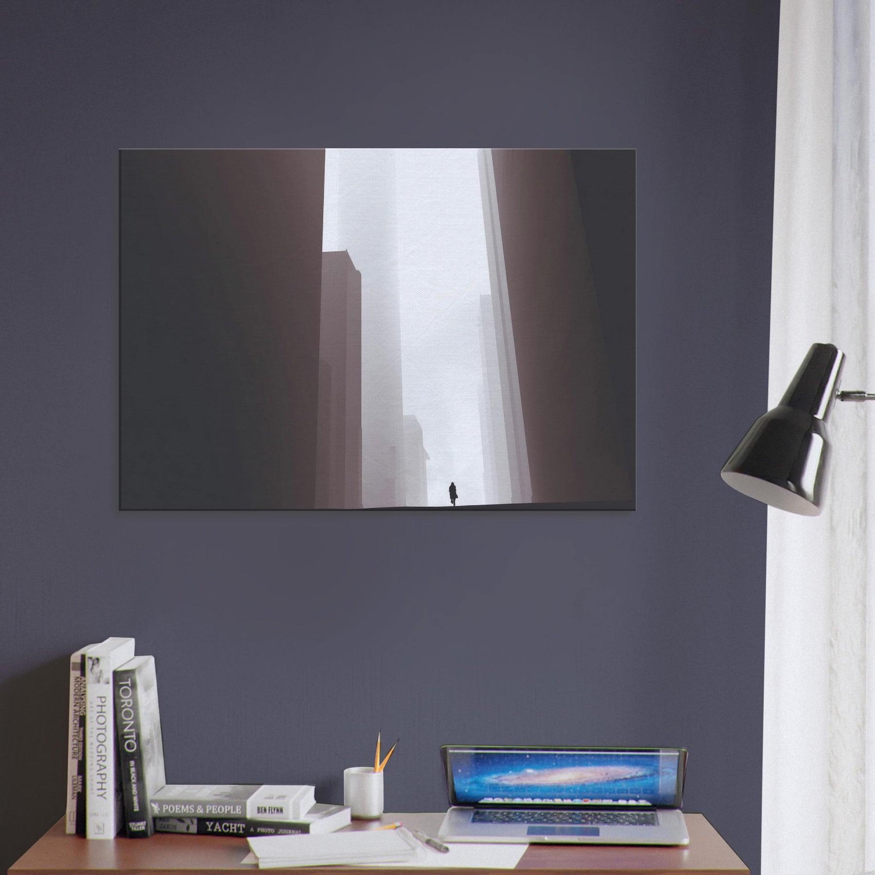 Alley Perspective invites the eye to drift through softened towers and pale light, where minimal forms become a quiet conversation between walls. The image hums with stillness: cool air, distant traffic, and a hush of dawn brushing the edges of concrete. Its generous negative space slows time, turning a hallway or living room into a contemplative courtyard of light. Printed in muted tones, it pairs gracefully with warm wood or cool metal, elevating modern spaces with urban serenity and a poetic distance that invites mindful reflection.