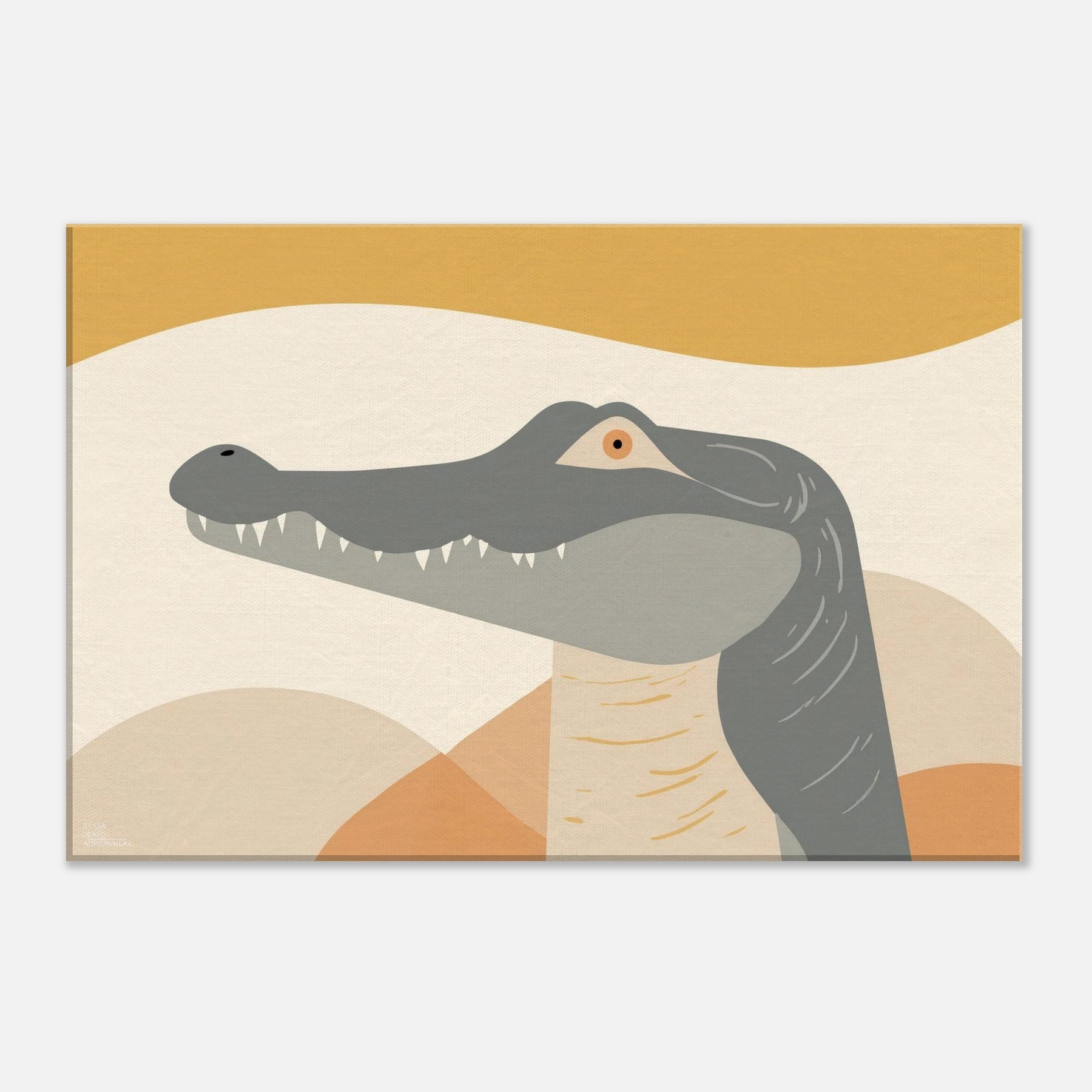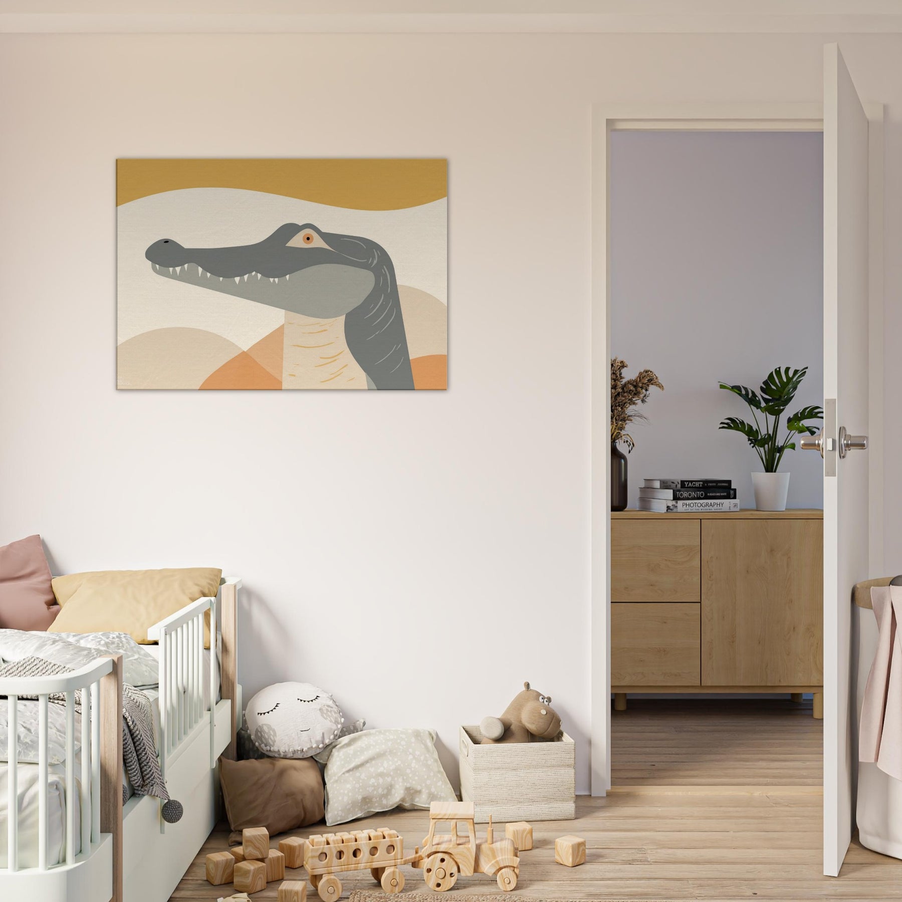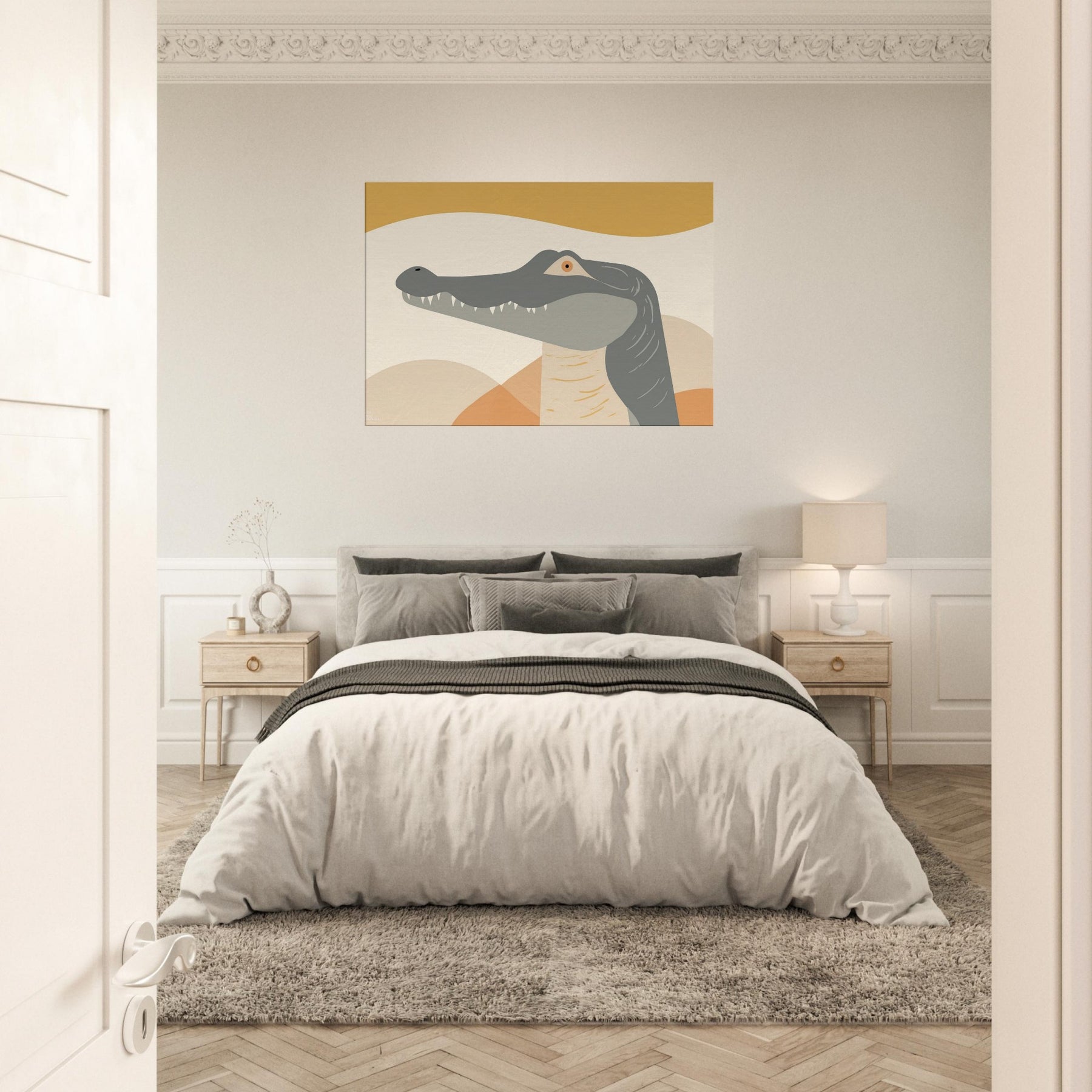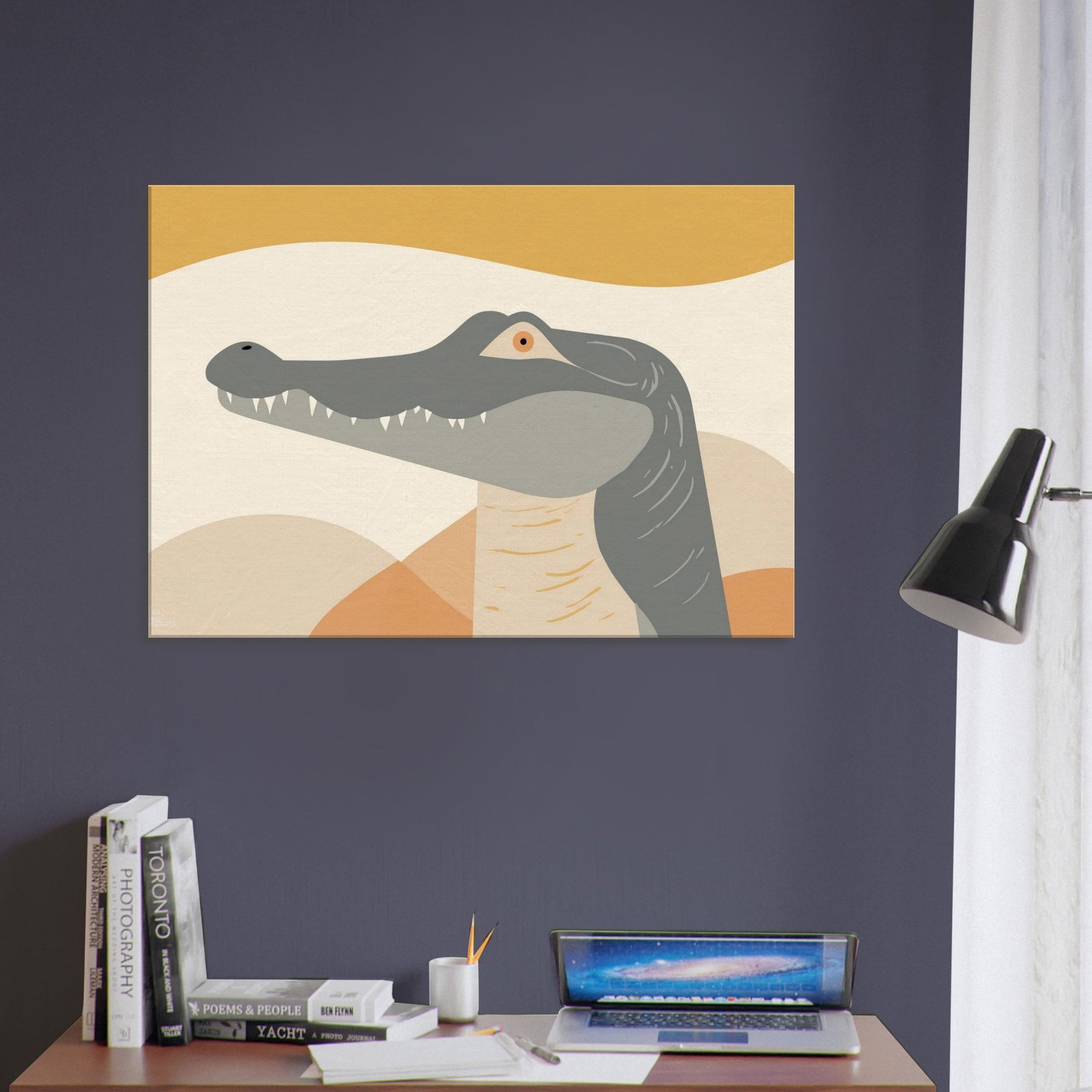 Quietly confident and essential, this minimalist Alligator captures a moment of calm before the day begins. Its pared back silhouette glides across a honeyed, sunlit backdrop, inviting soft, meditative light to linger in the room. The restrained palette sand, slate, and light terracotta complements warm woods and cool neutrals alike, adding a sculptural focal point without shouting. Perfect for a living room or study, it lends a sense of poised wilderness, inviting slow admiration and a touch of playful sophistication to everyday spaces.