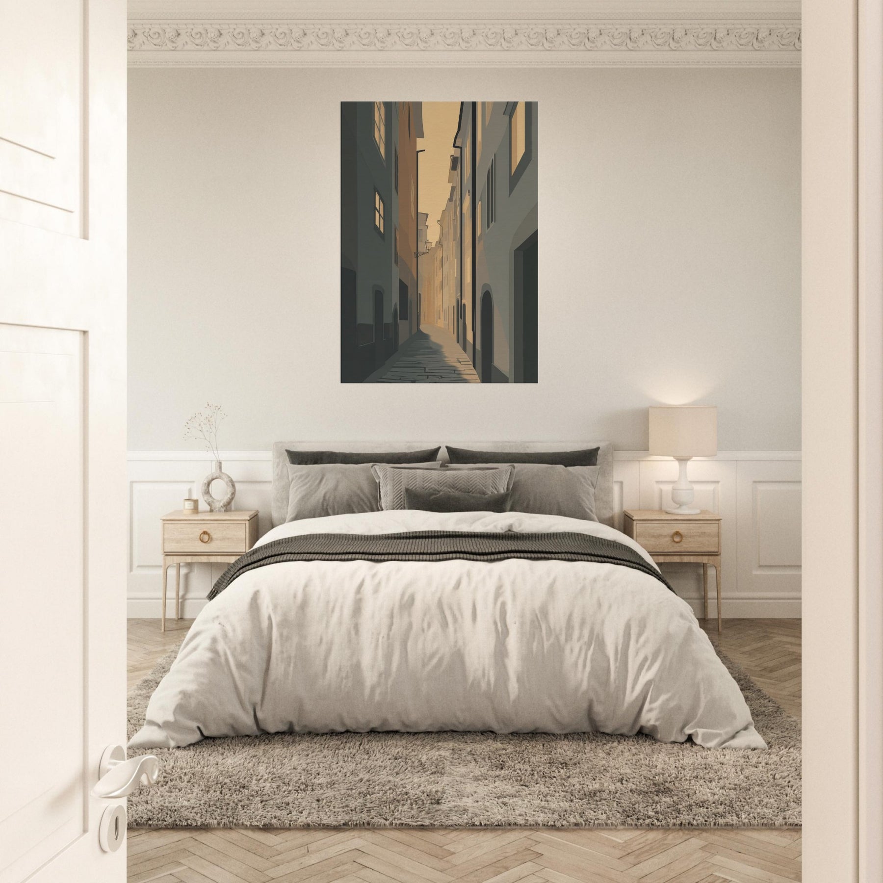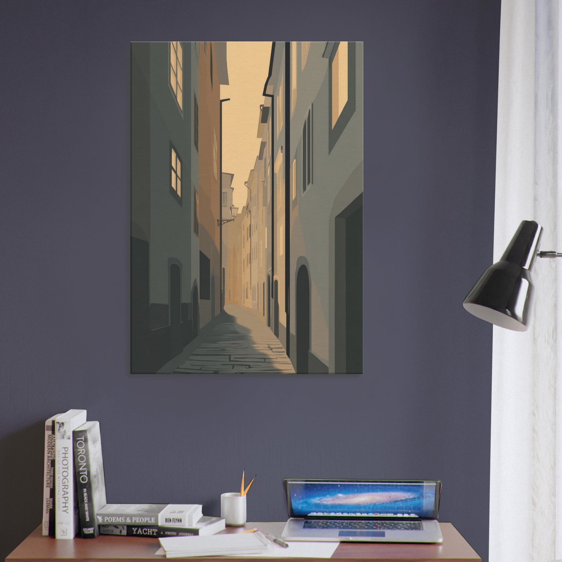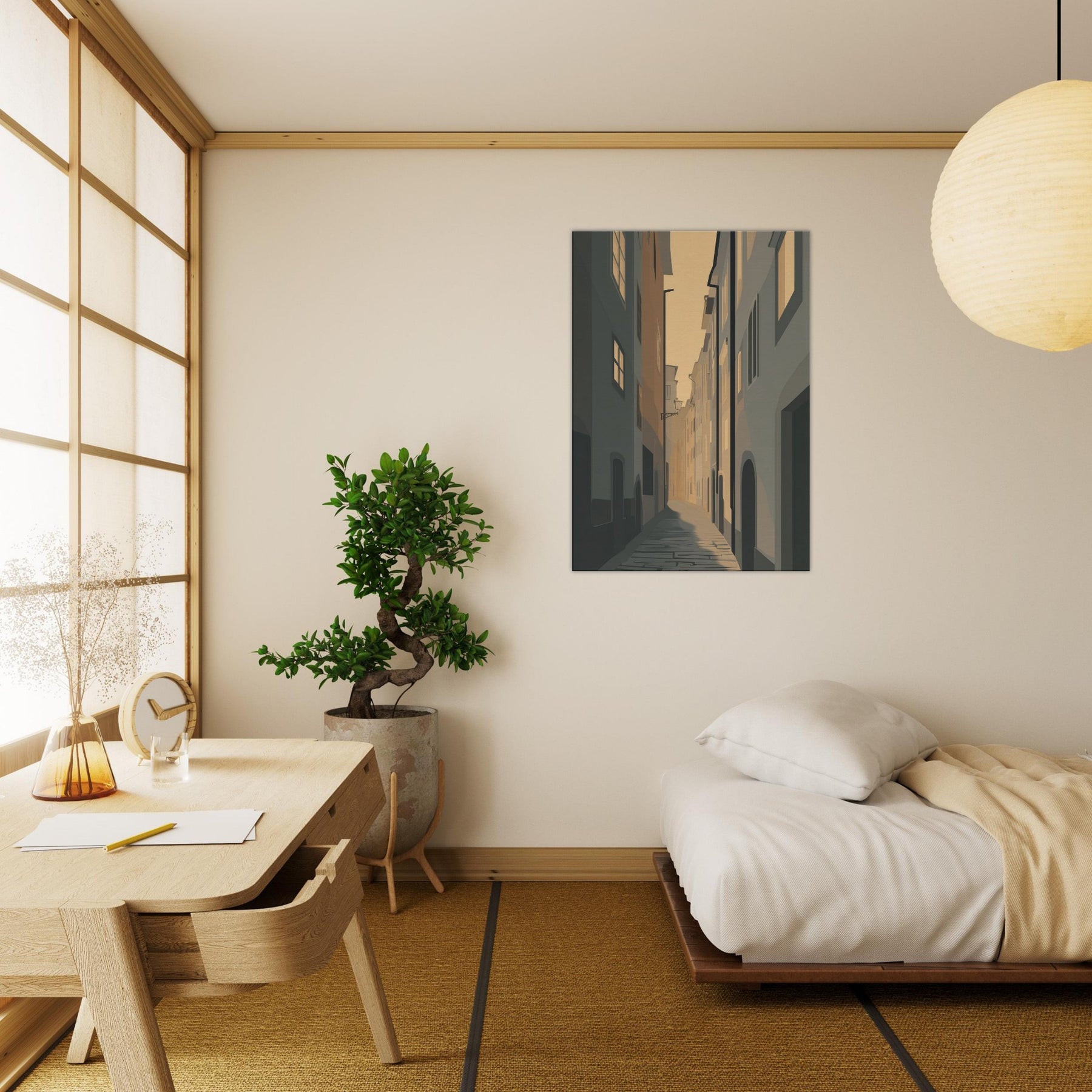 European Streets unfolds as a quiet corridor of light: slender façades, soft shadows, and warm, sunlit gaps that invite you to breathe. The minimalist lines pare away distraction, turning an everyday alley into a meditative moment. In your living space, this scene becomes a calm waypoint evoking evening strolls, coffee scented air, and the distant chime of a door. Pair it with neutral palettes and clean furnishings to elevate the room with city charm and architectural grace.