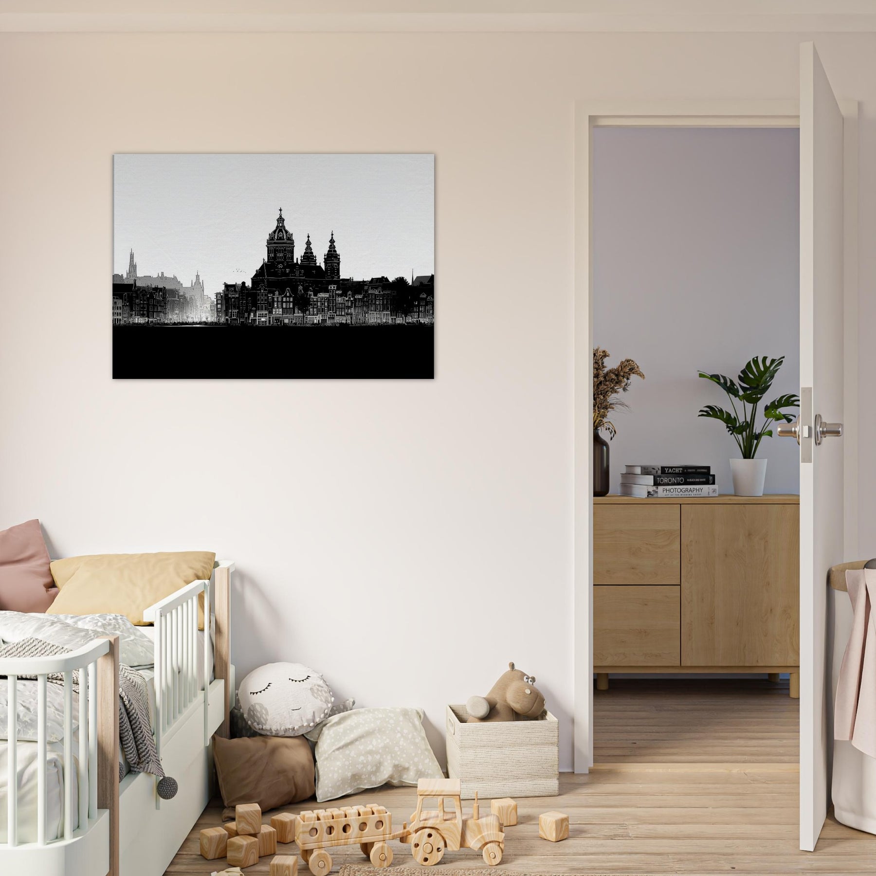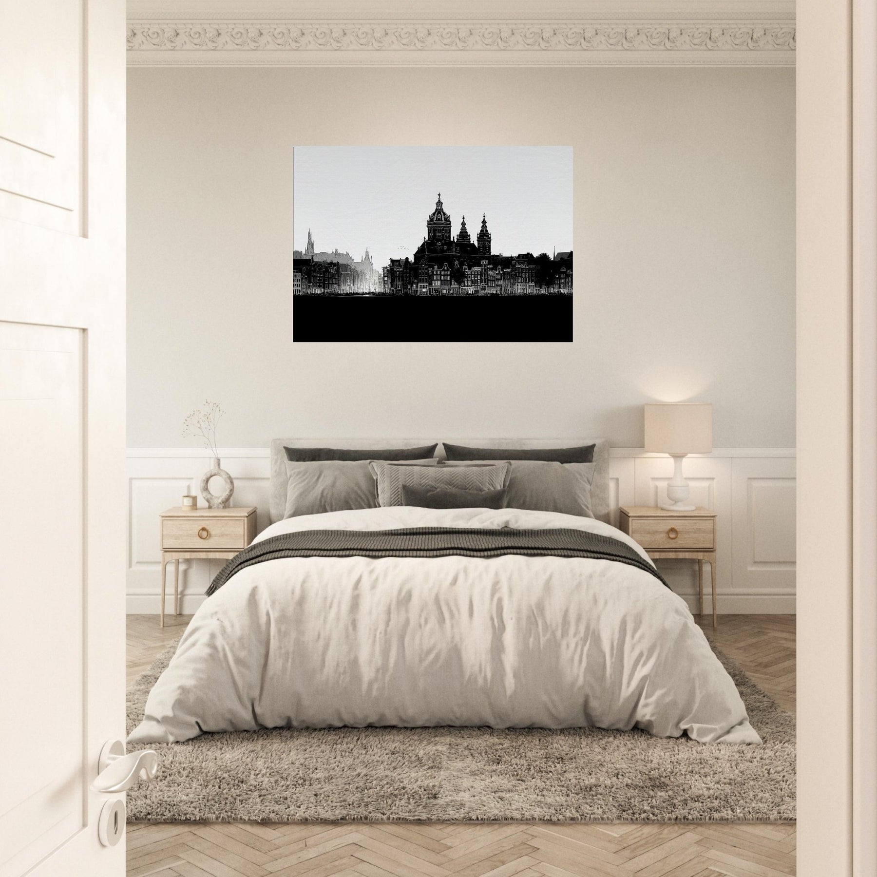 The art breathes with a refined stillness, turning any room into a harbor of calm where evenings soften and conversations drift like a canal breeze. Hang it in a living room or study to anchor your space with urban poetry and timeless clarity, a daily invitation to wonder.