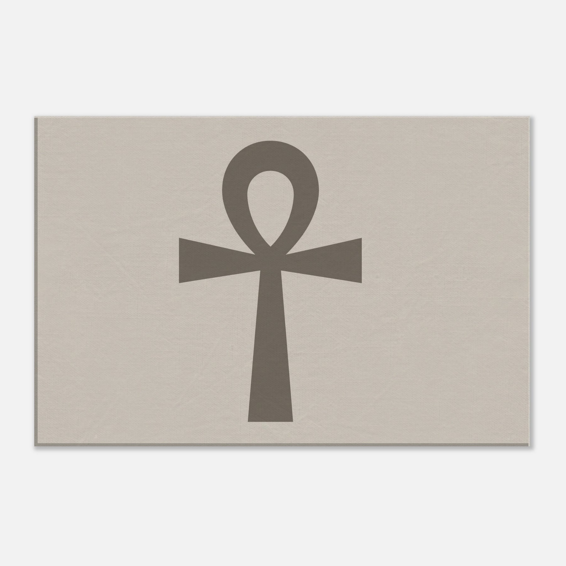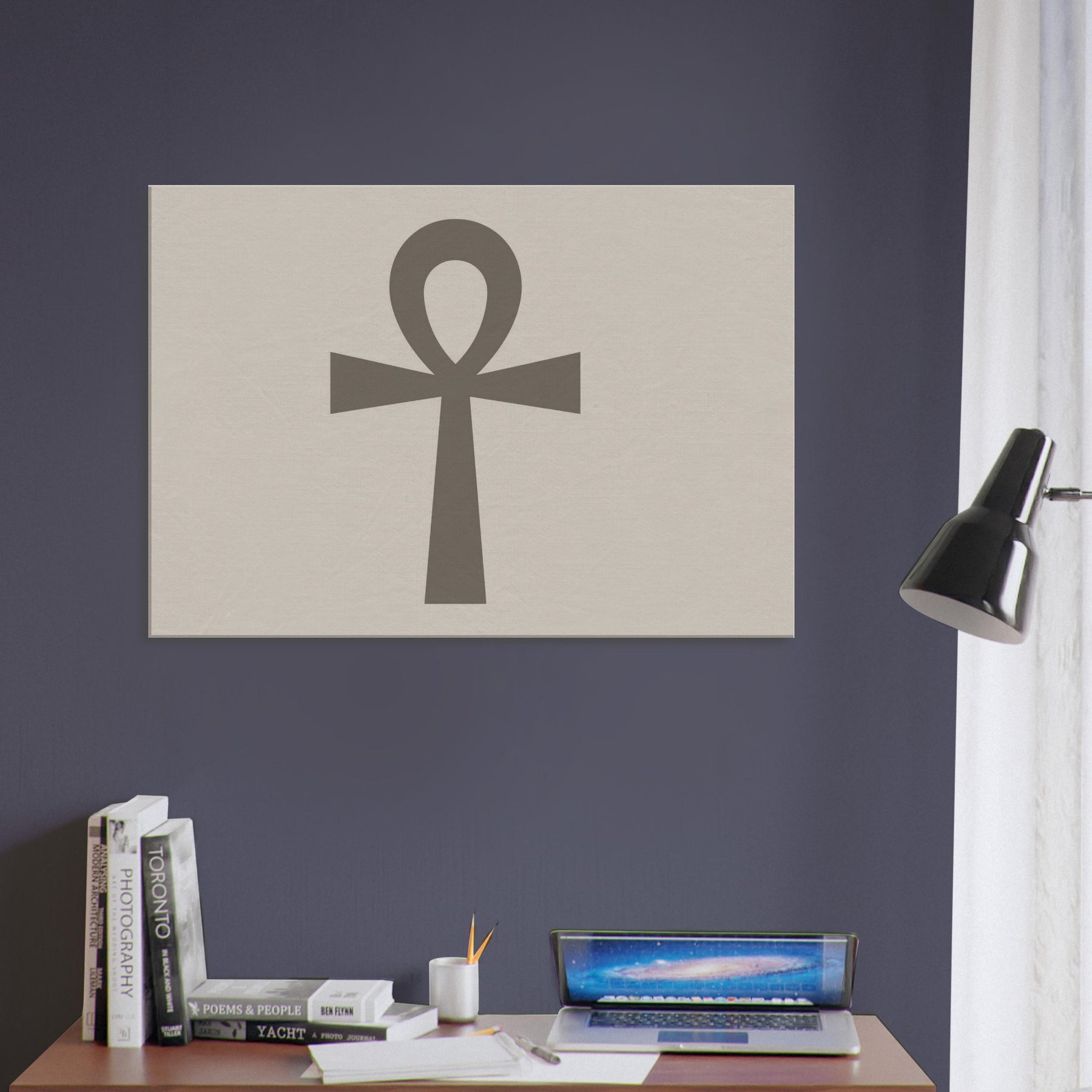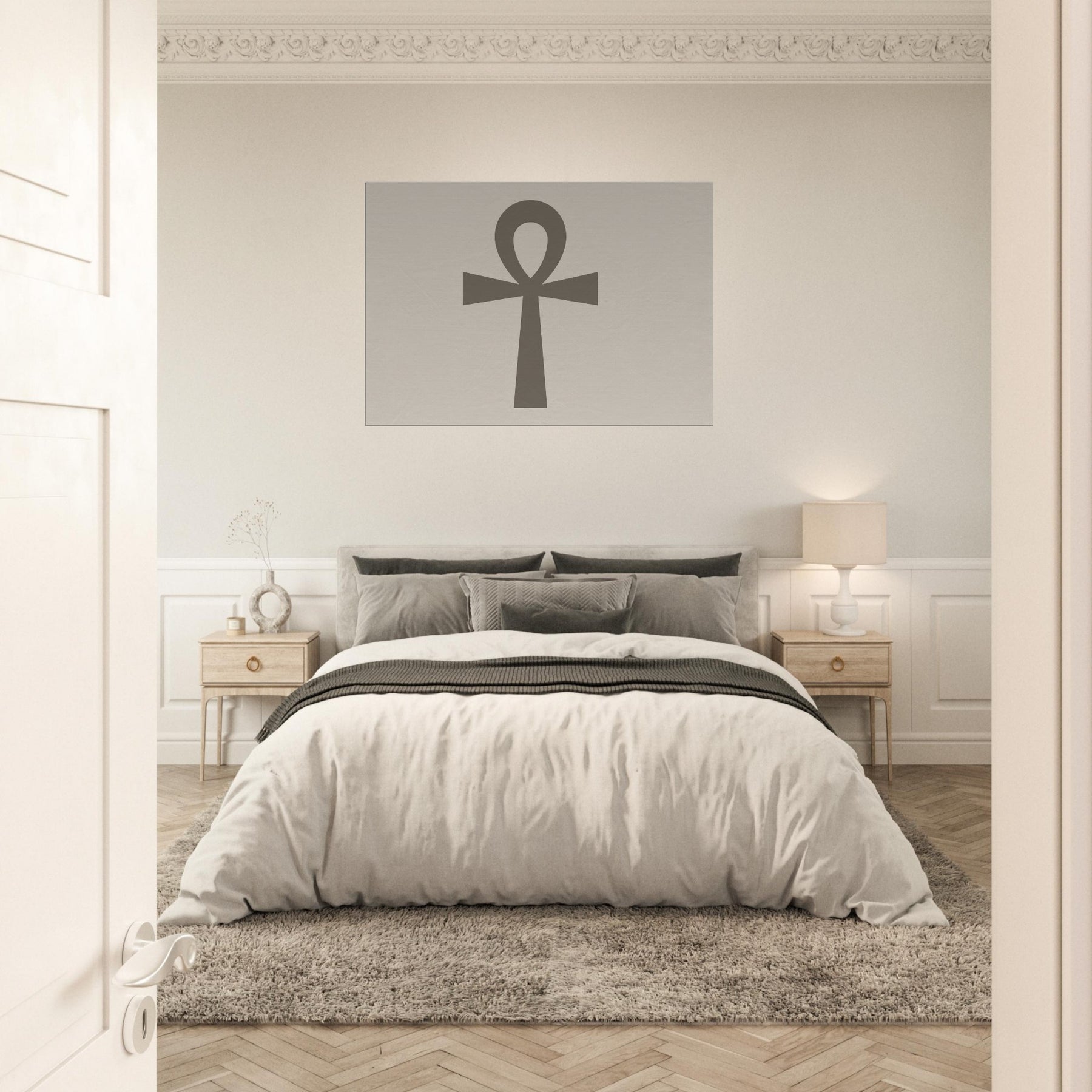 Bathed in warm, neutral light, this minimalist Ankh exudes calm and resilience. The restrained geometry a rounded loop, a slender shaft, and a delicate crossbar draws the eye inward, inviting contemplation rather than noise. Its soft taupe silhouette against a creamy field creates a serene horizon in any living space, layering texture and meaning without crowding the room. The symbol of life and endurance becomes a subtle focal point, turning a hallway, bedroom, or study into a sanctuary of quiet, mystical presence.