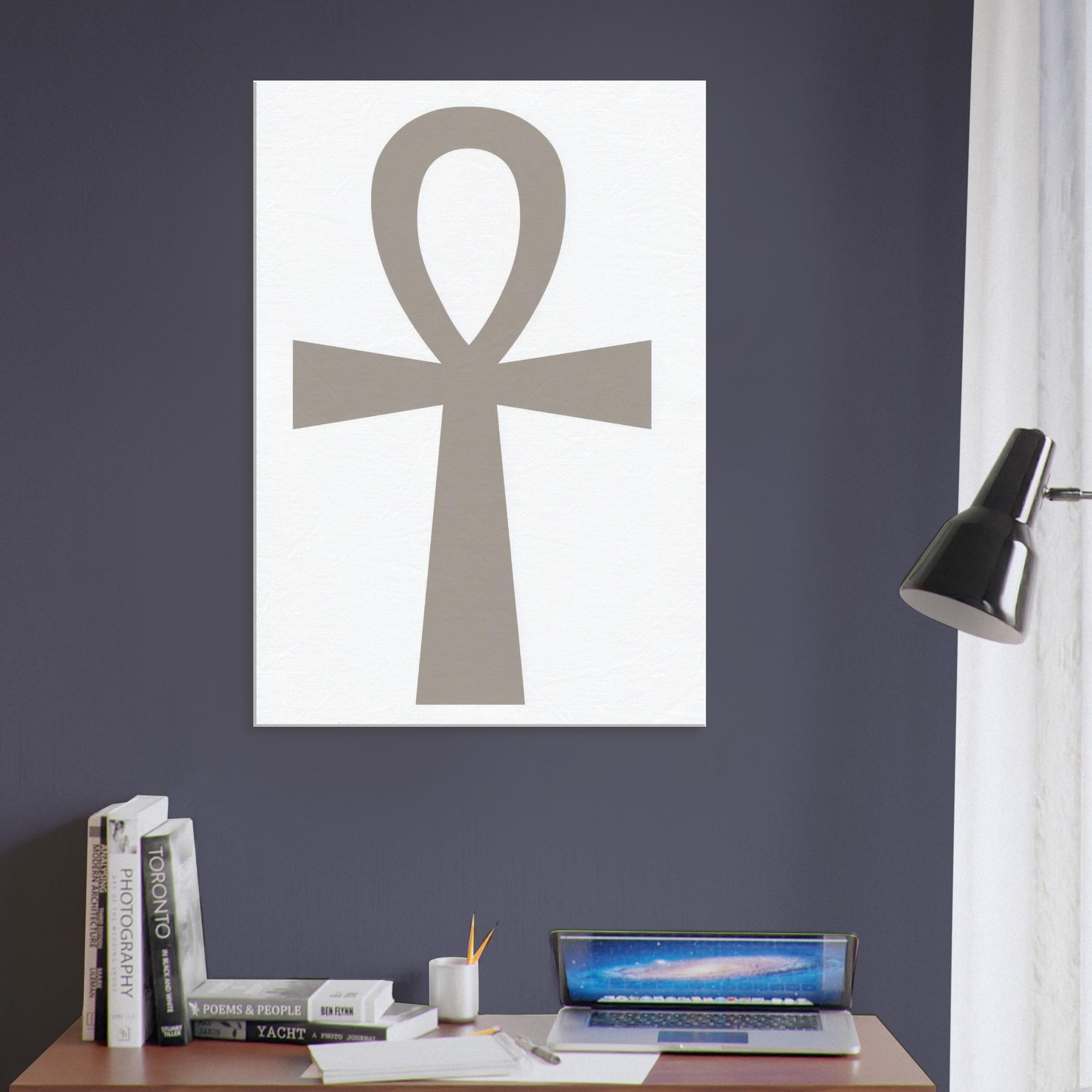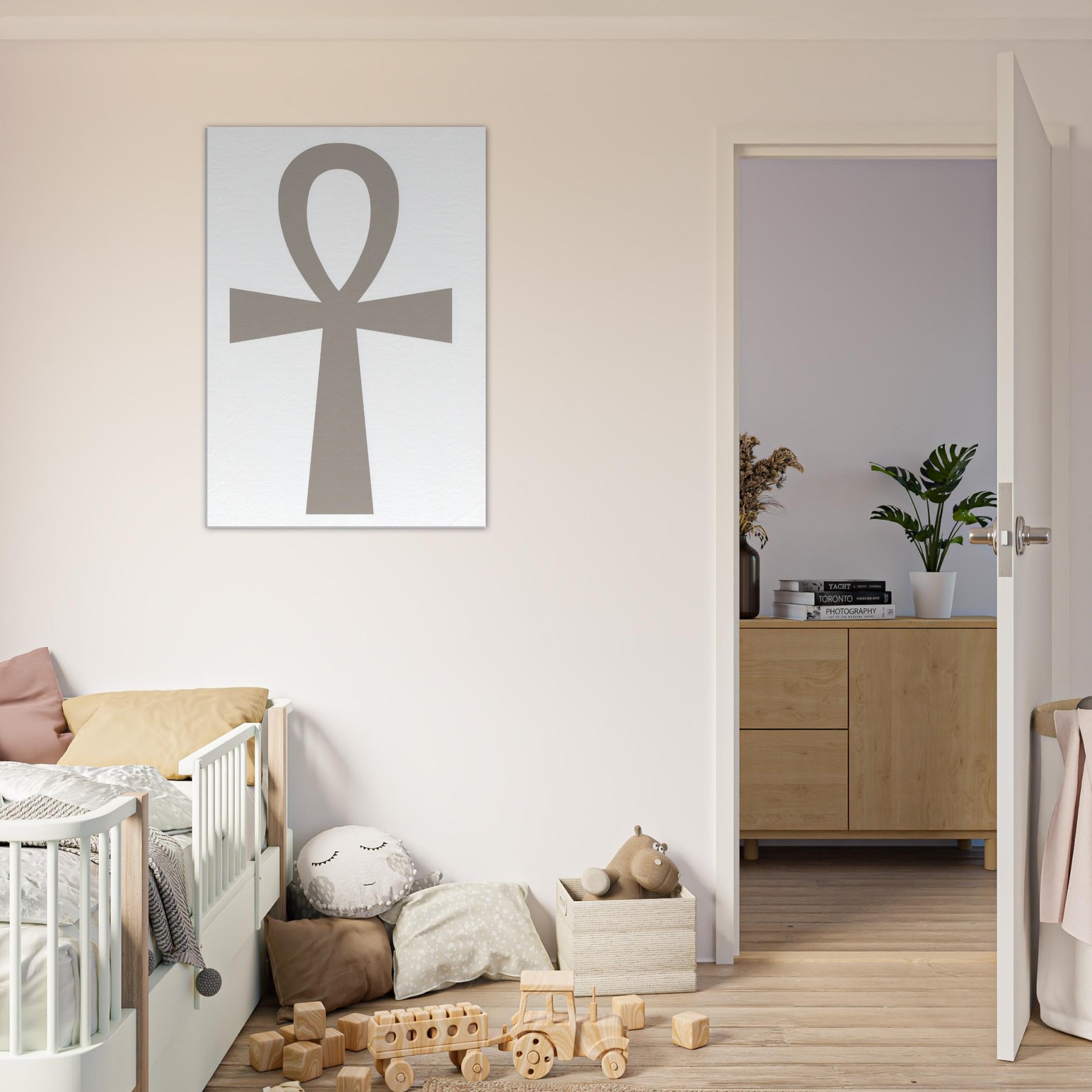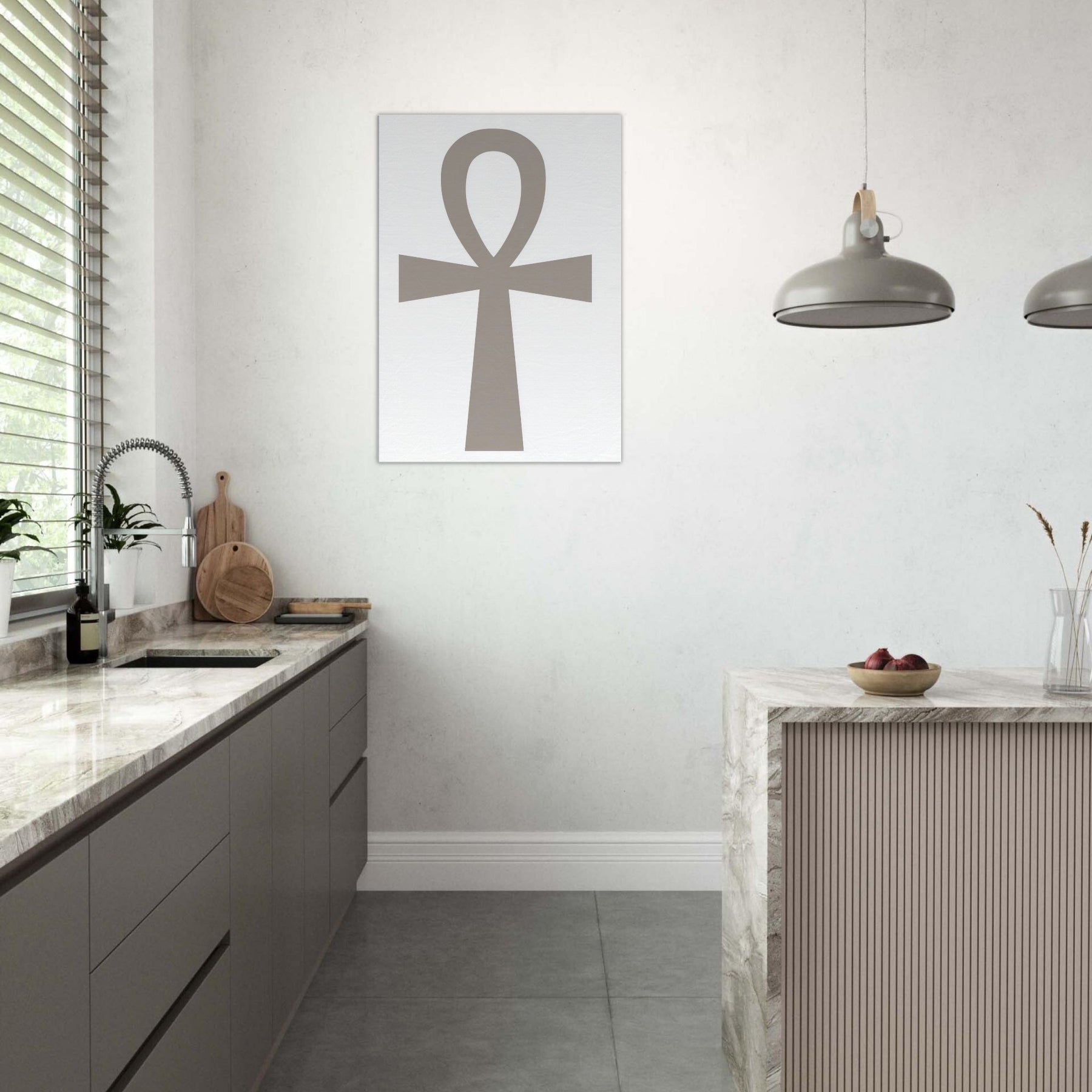 Ankh whispers across a clean field of white a minimalist silhouette that feels ancient and contemporary at once. The soft taupe form rests with quiet gravity, its loop and cross balancing negative space like a poised breath you hang on your wall. In a sunlit nook or a dimly lit living room, the piece infuses the air with a subtle, meditative presence an invitation to pause, reflect, and breathe. This artwork brings calm to a space, anchoring the mood with timeless mystique and refined, serene elegance.