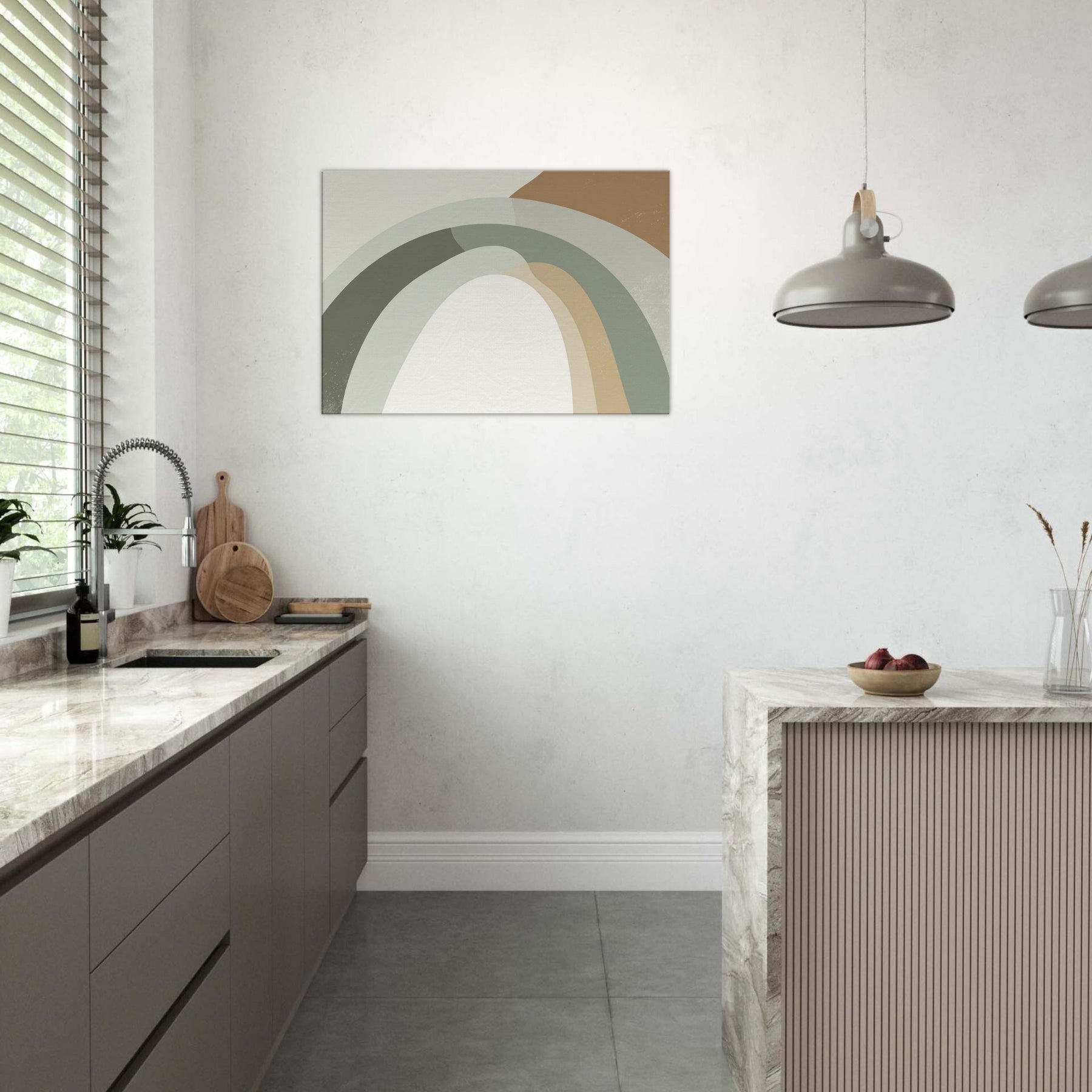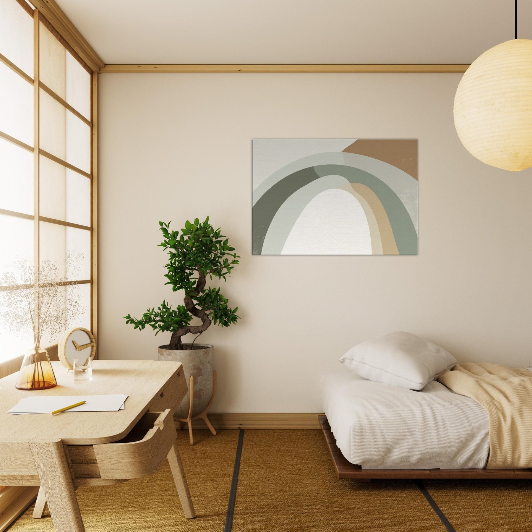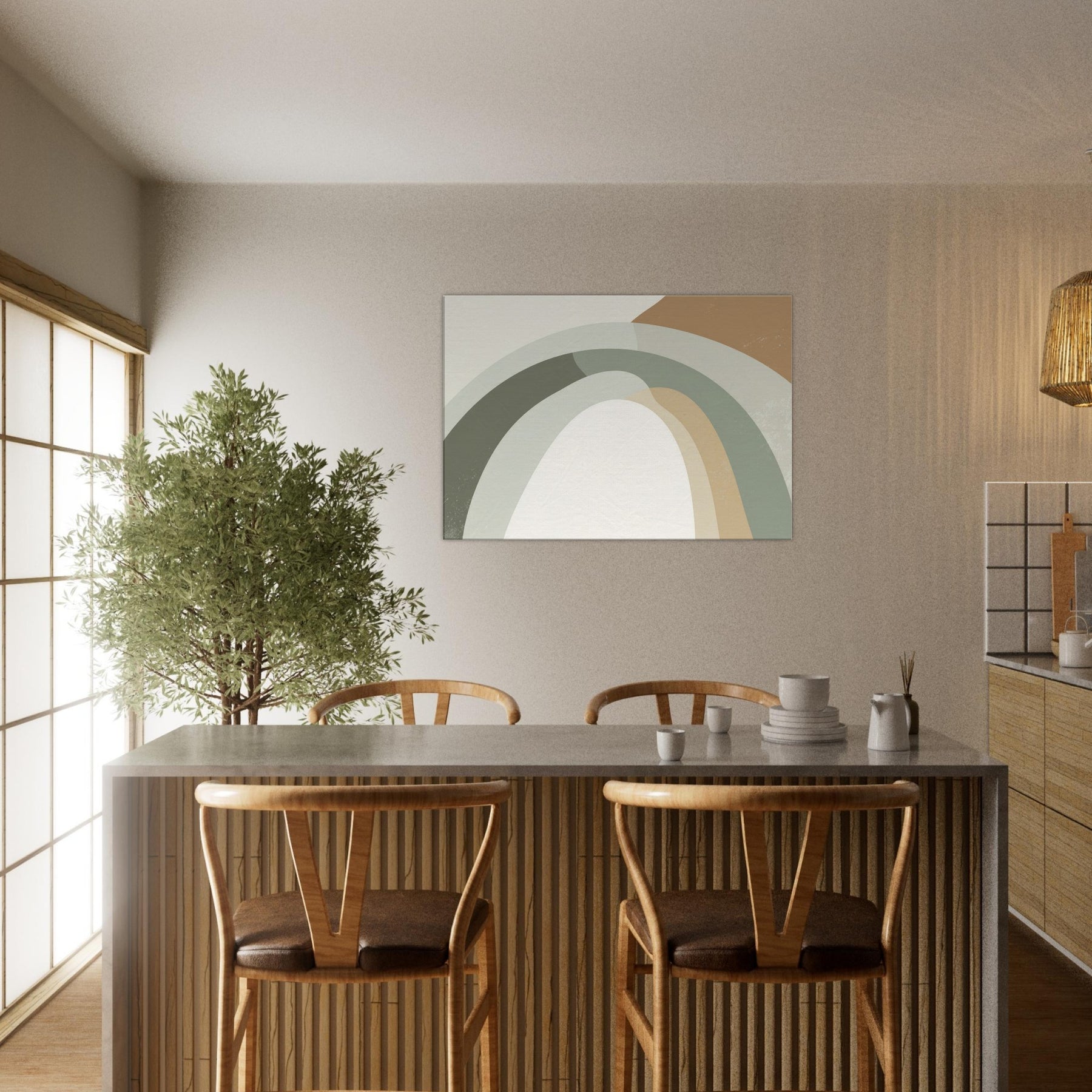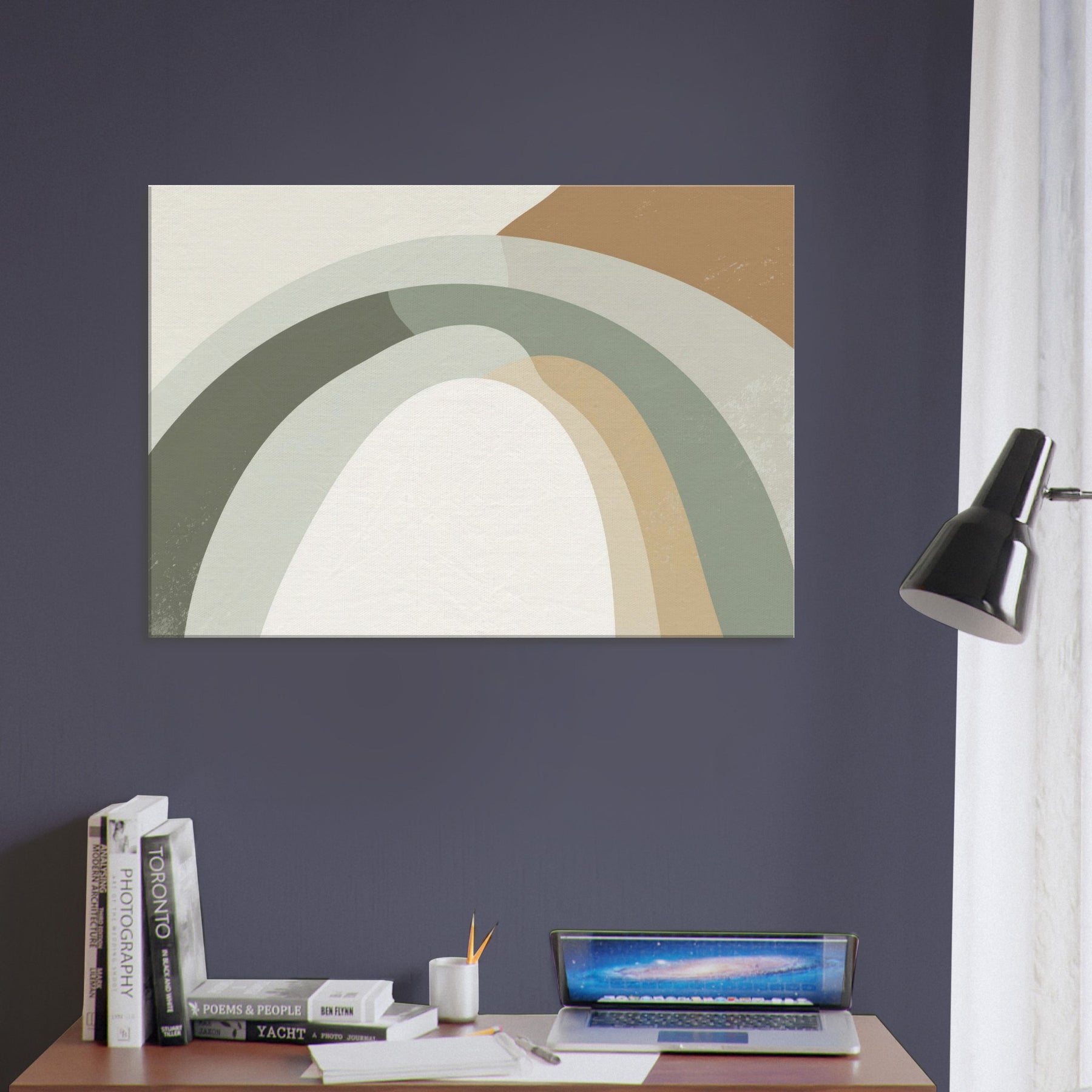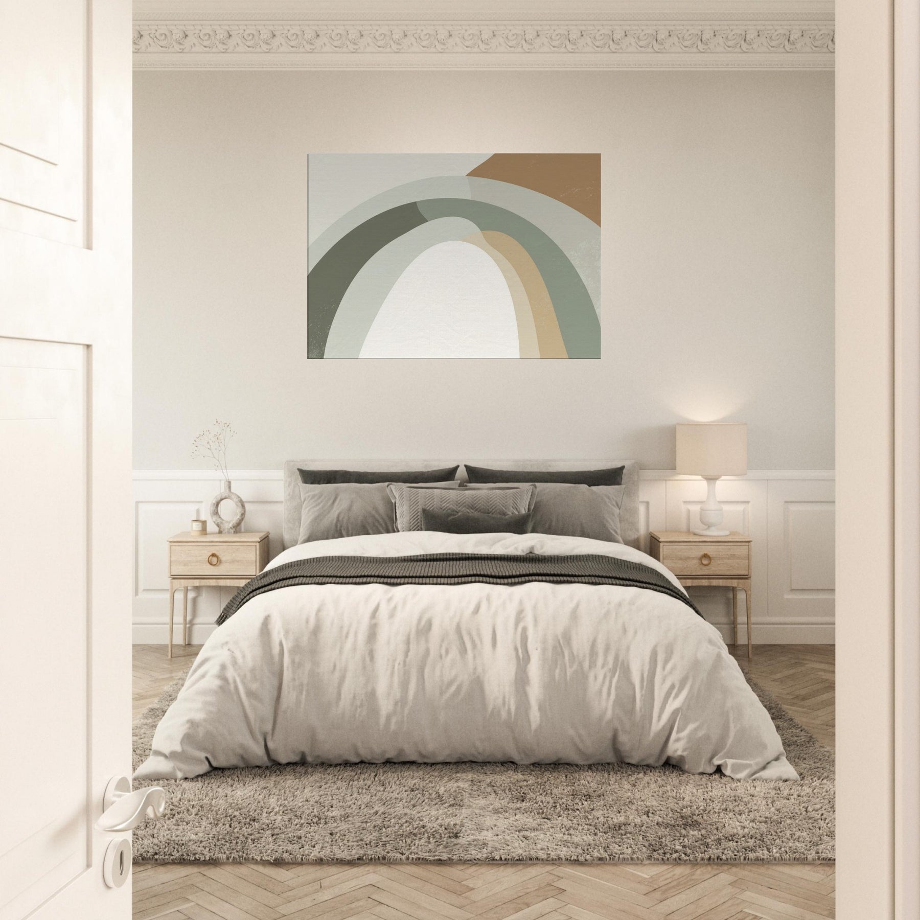 Arches Composition invites a quiet pause, where soft, interlocking curves cradle light and shadow. In this minimalist study, the Primary Subject unfolds as gentle arcs that echo the human silhouettes without explicit detail, evoking faces and bodies in a single, serene gesture. The palette muted ochre, sage, and cream imbues walls with warmth and restraint, turning any living space into a contemplative retreat. A subtle texture and generous negative space invite you to breathe and glean new meaning from the calm rhythm above your sofa or bed.