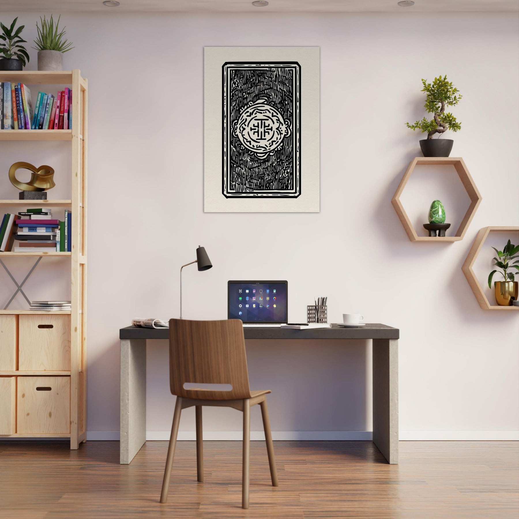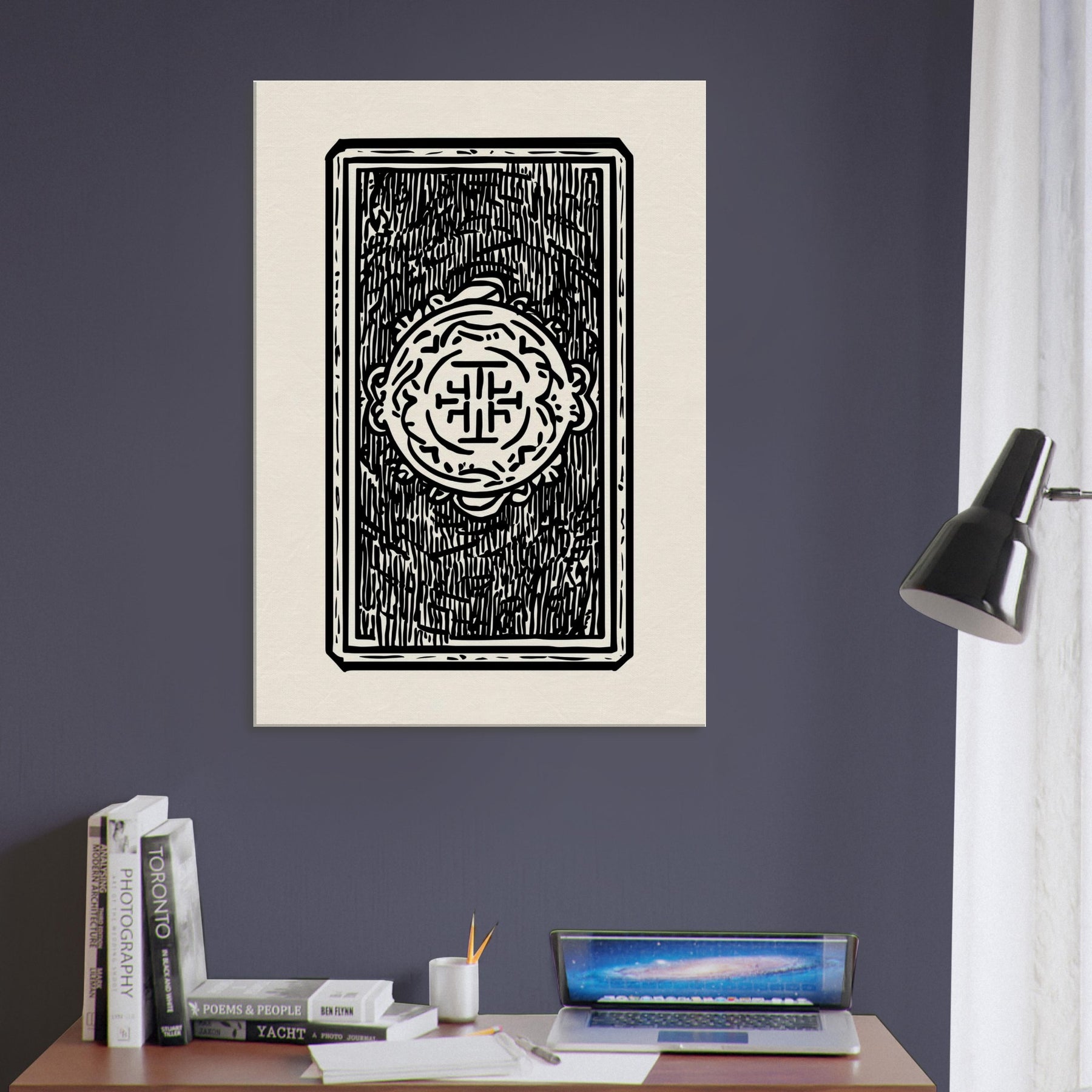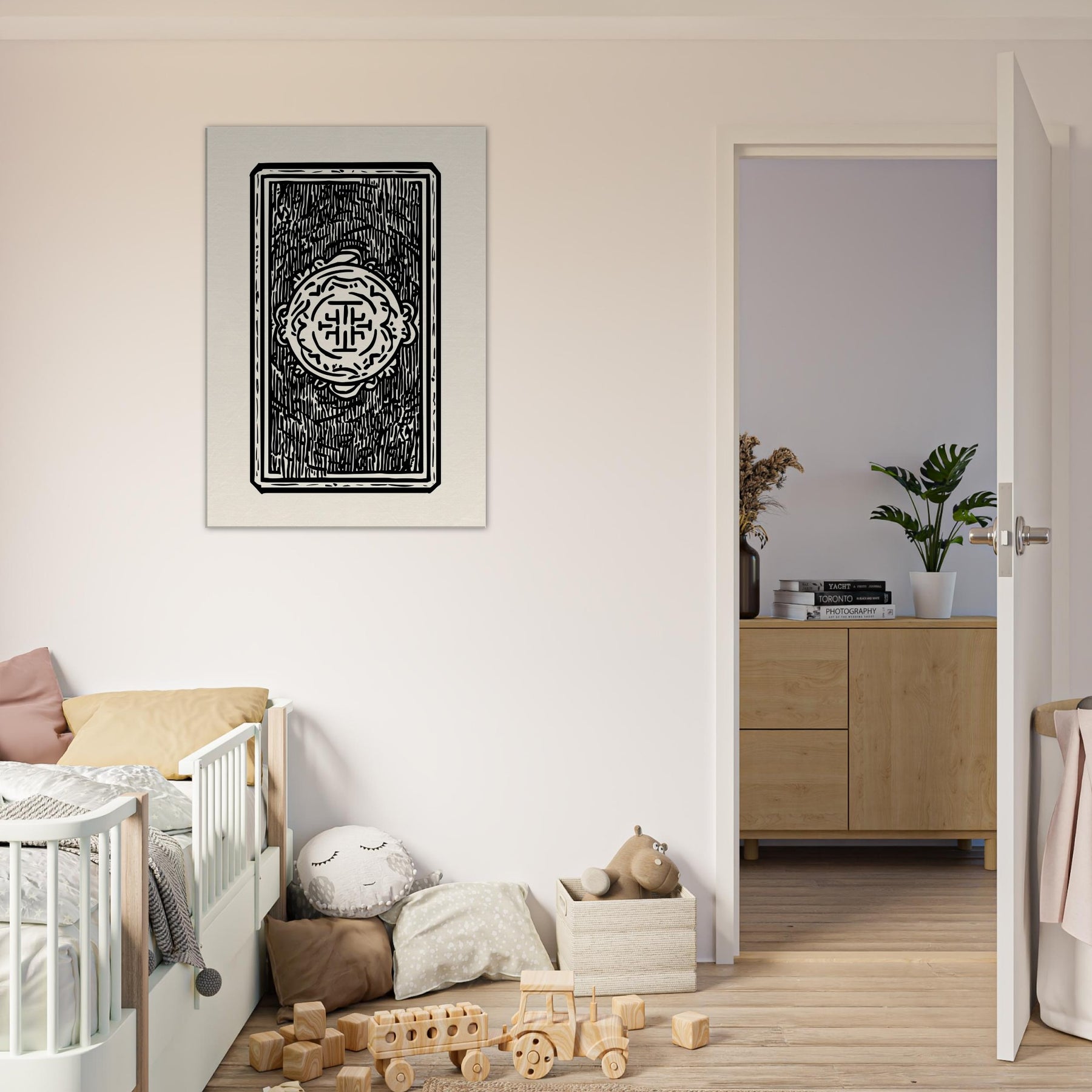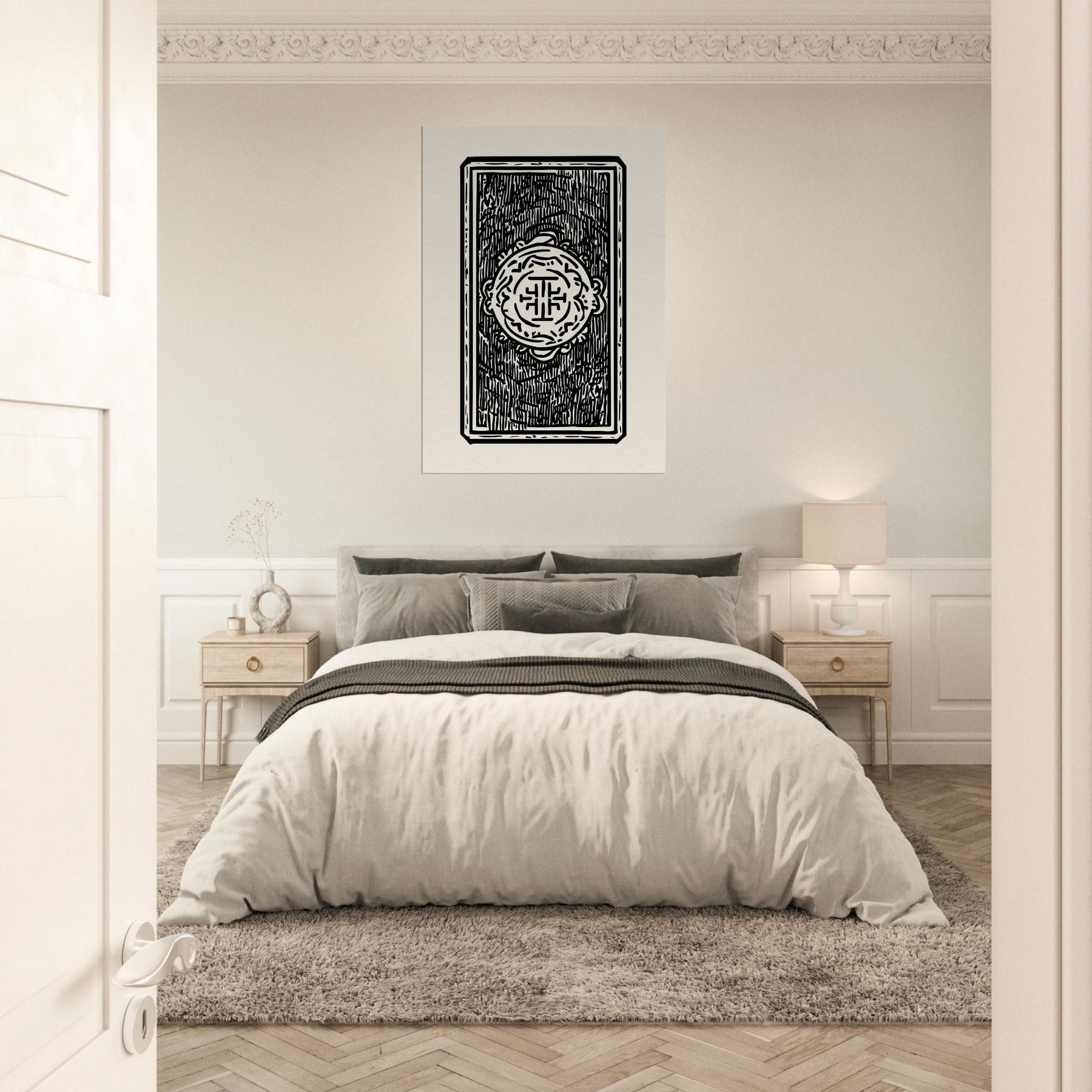 Like a quiet spell captured in ink, this Tarot Cards study unfolds with clean lines and confident contrast. The minimalist line art invites the viewer to lean in, tracing the symbols as if reading a whispered message from a moonlit deck. In a softly lit living room or study, the black on cream composition casts a calm, meditative glow, turning walls into a sanctuary where every glance invites reflection. It's an intimate, enigmatic presence that heightens atmosphere without shouting.