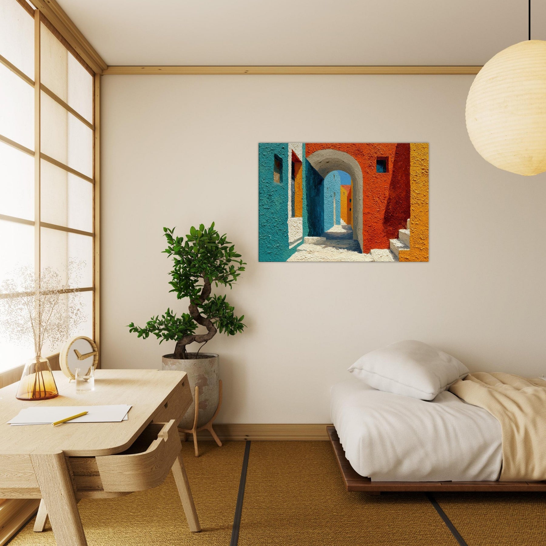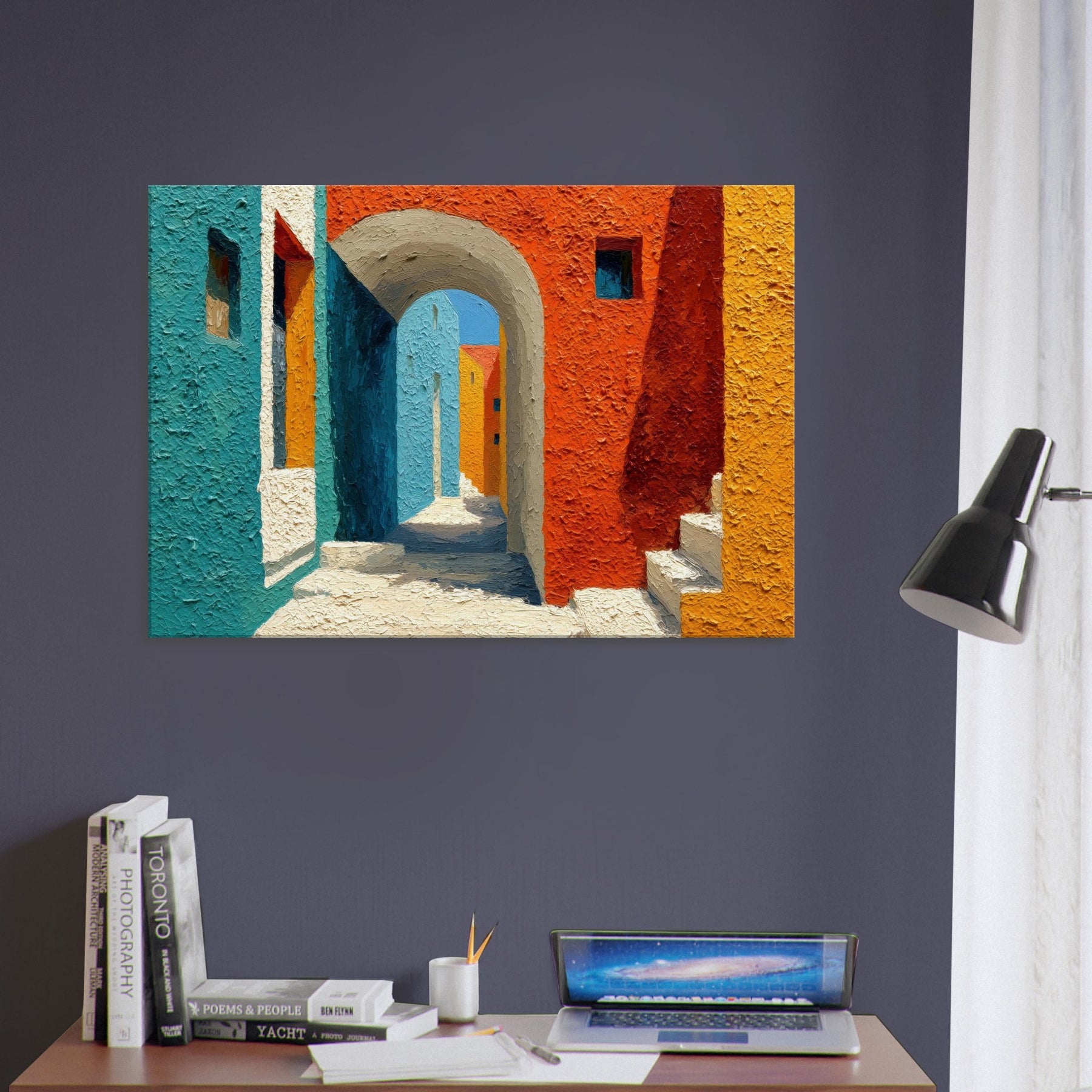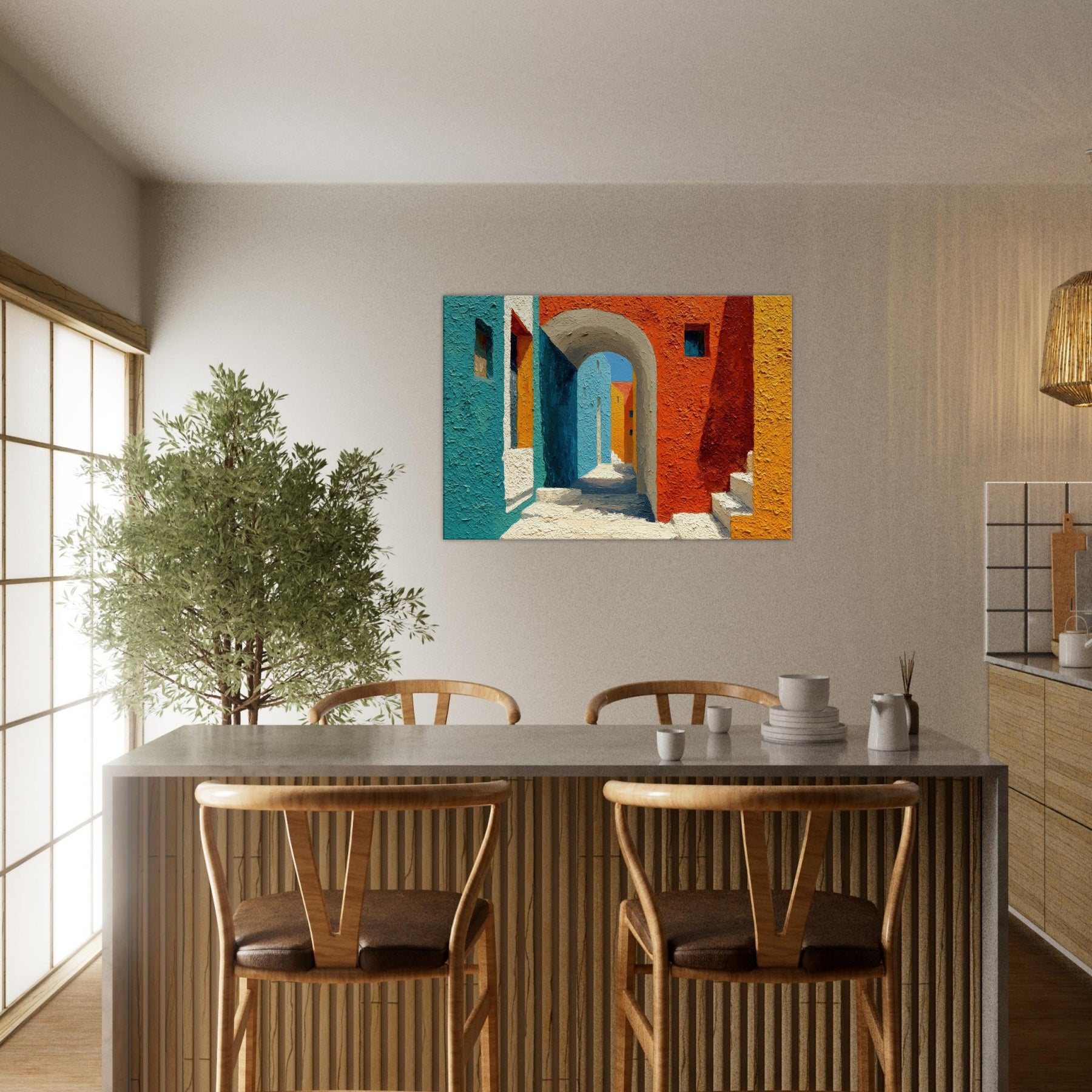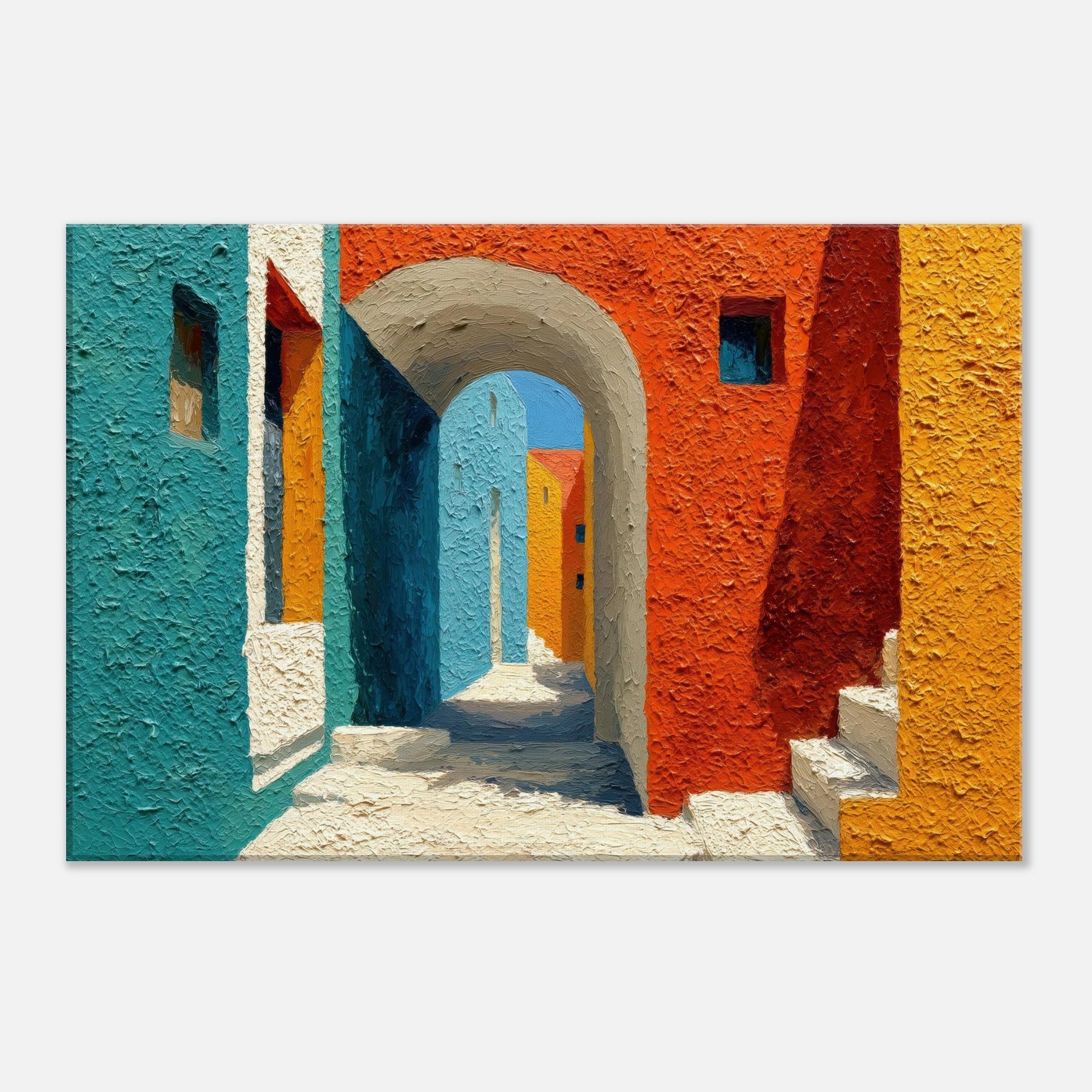 Let the Archway lead your gaze into a sun drenched corridor where teal, cobalt, and terracotta meet. This piece stitches cityscapes into a soft, architectural dream, inviting quiet, contemplative breaths between walls of color. The textured surface catches light as if the street itself were breathing; you’ll feel the warmth of midday and the cool shadow beyond the arch. Hang it in a living room or foyer to awaken conversations, spark imagination, and turn everyday passages into a living, luminous moment.