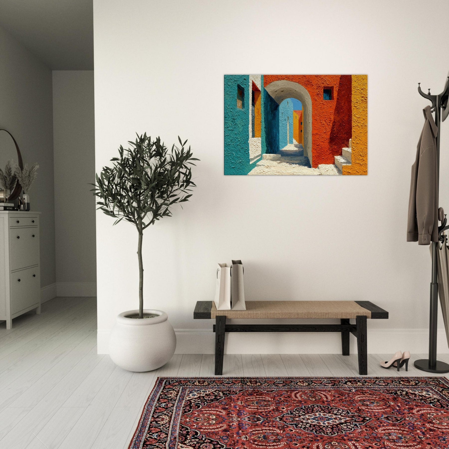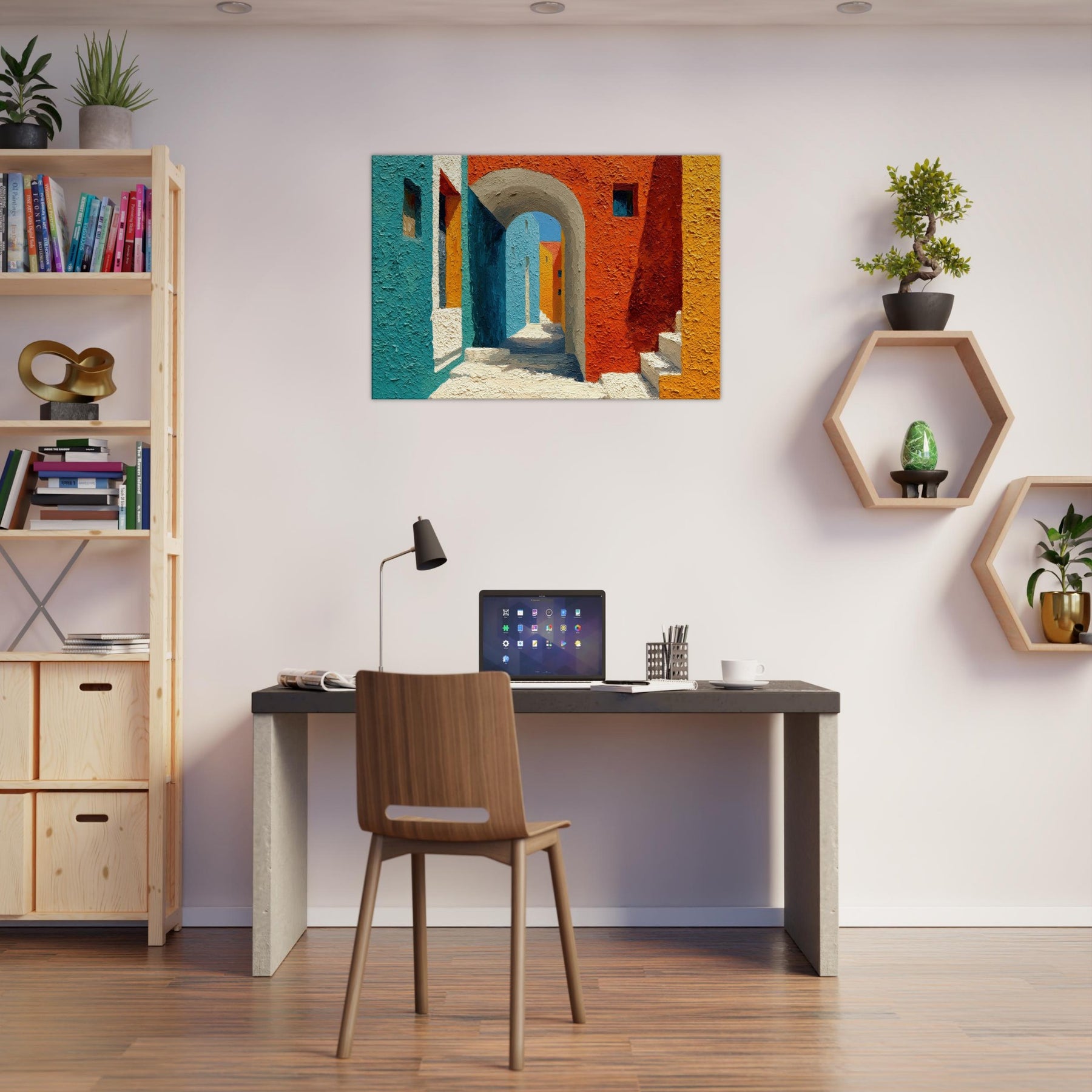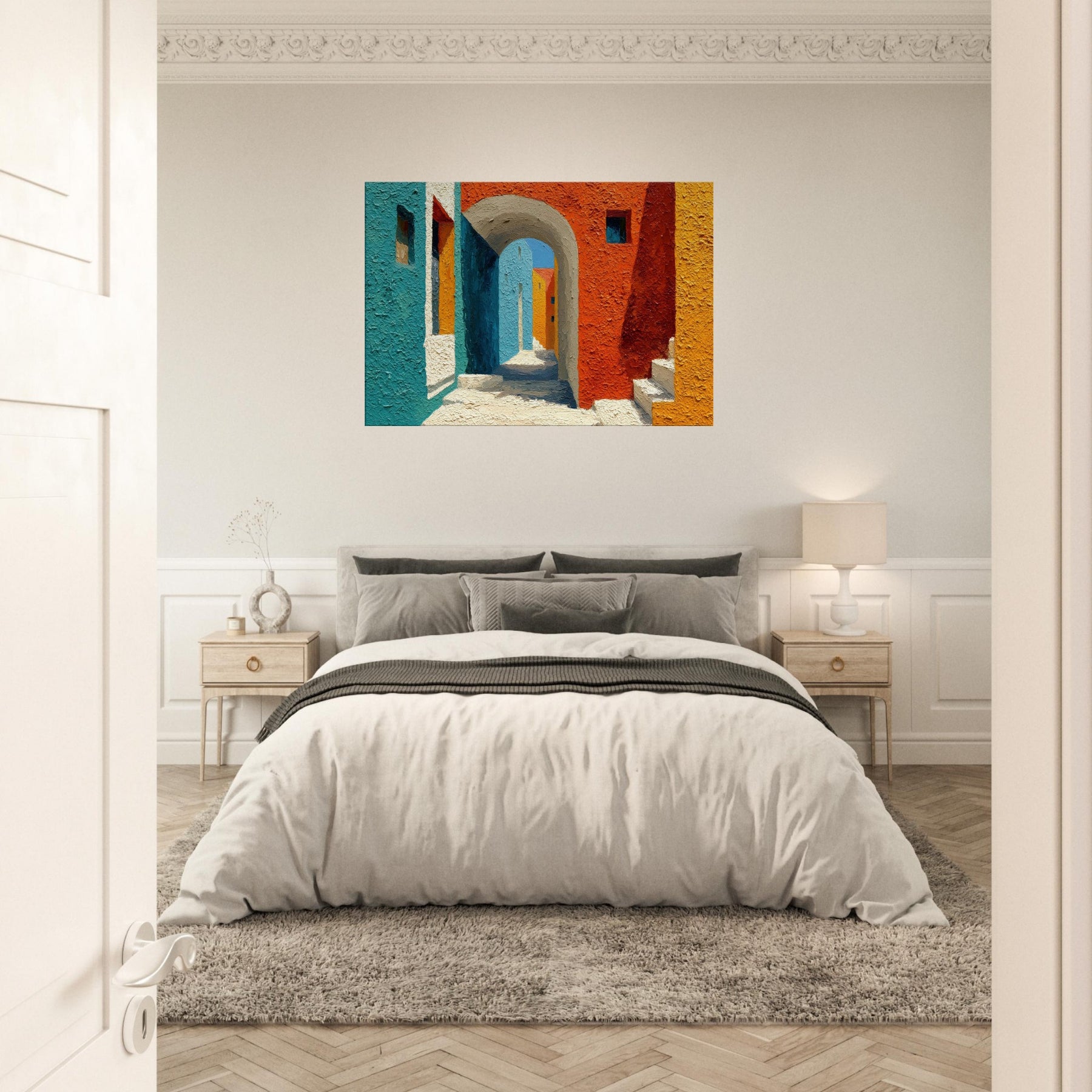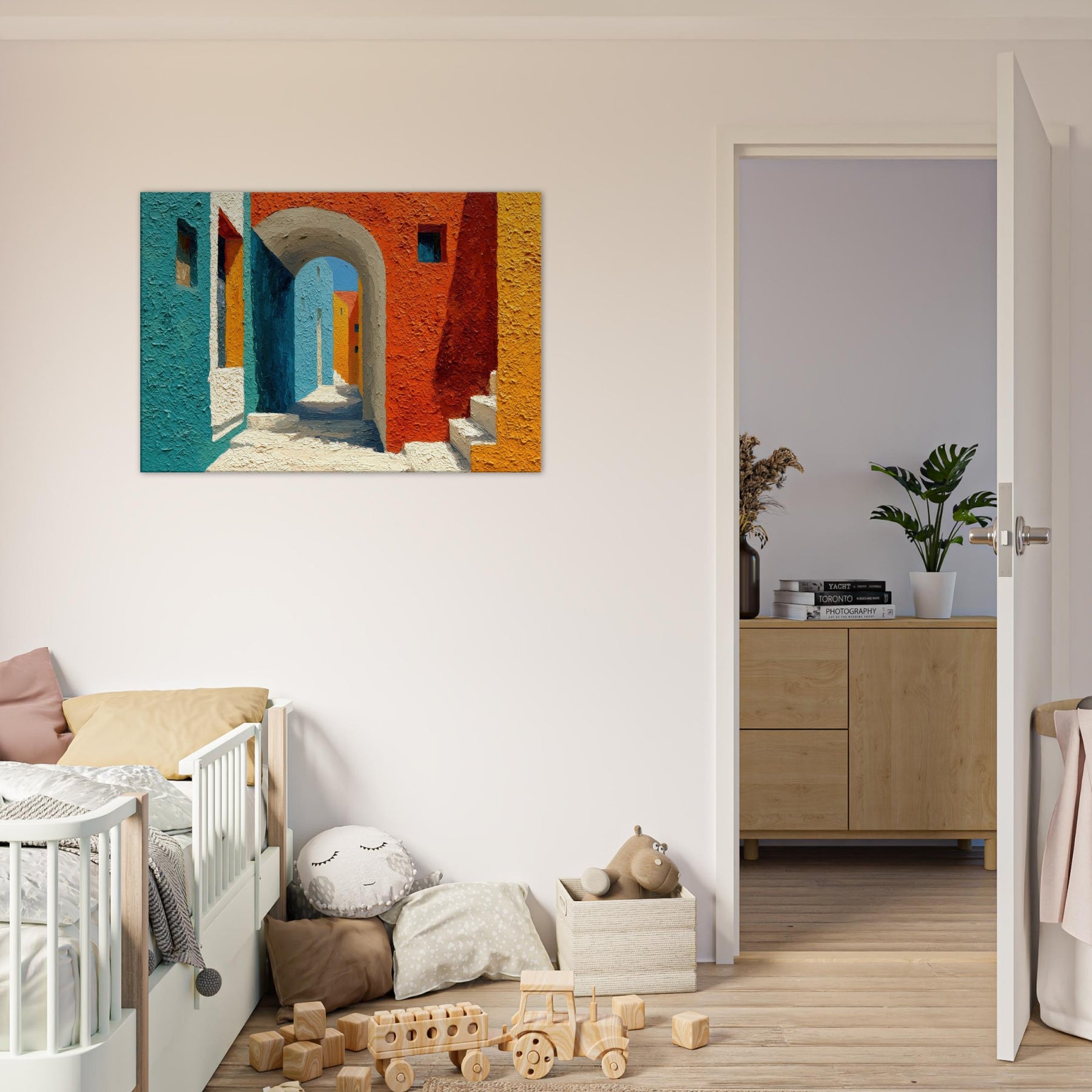Let the Archway lead your gaze into a sun drenched corridor where teal, cobalt, and terracotta meet. This piece stitches cityscapes into a soft, architectural dream, inviting quiet, contemplative breaths between walls of color. The textured surface catches light as if the street itself were breathing; you’ll feel the warmth of midday and the cool shadow beyond the arch. Hang it in a living room or foyer to awaken conversations, spark imagination, and turn everyday passages into a living, luminous moment.