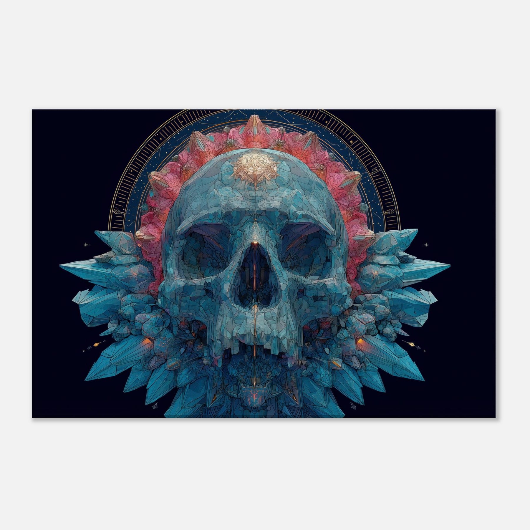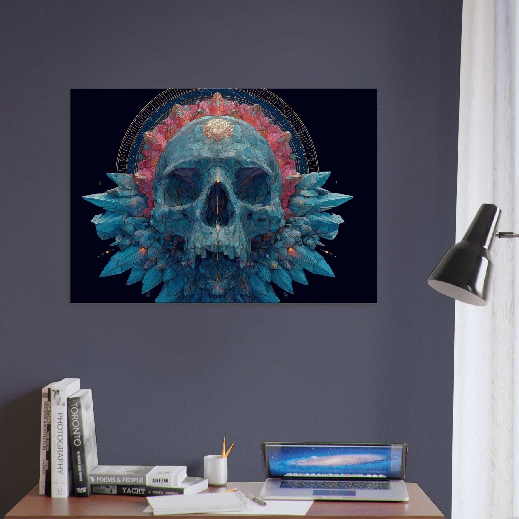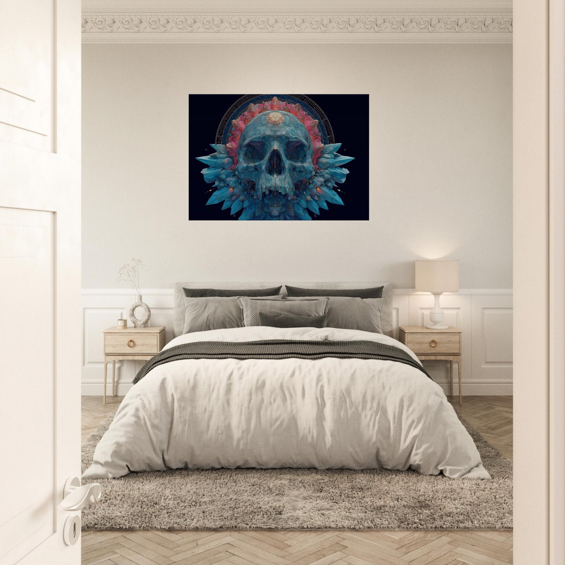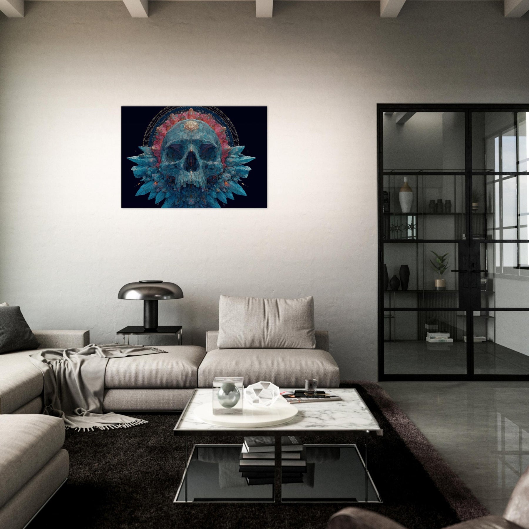 Mystical Skull rises from a velvet midnight, a sculpted beacon of color and quiet intensity. Its facets glow in teal and cobalt, with a pink crystalline halo breathing above, inviting the eye to wander. This enigmatic centerpiece transforms a living space into a sanctuary of mood and imagination, where light plays on jagged edges and soft shadows alike. Pair it with warm textiles or a sleek frame, and the room feels both grounded and transcendent. The Mystical Skull becomes a whisper of arcane beauty in any modern home.