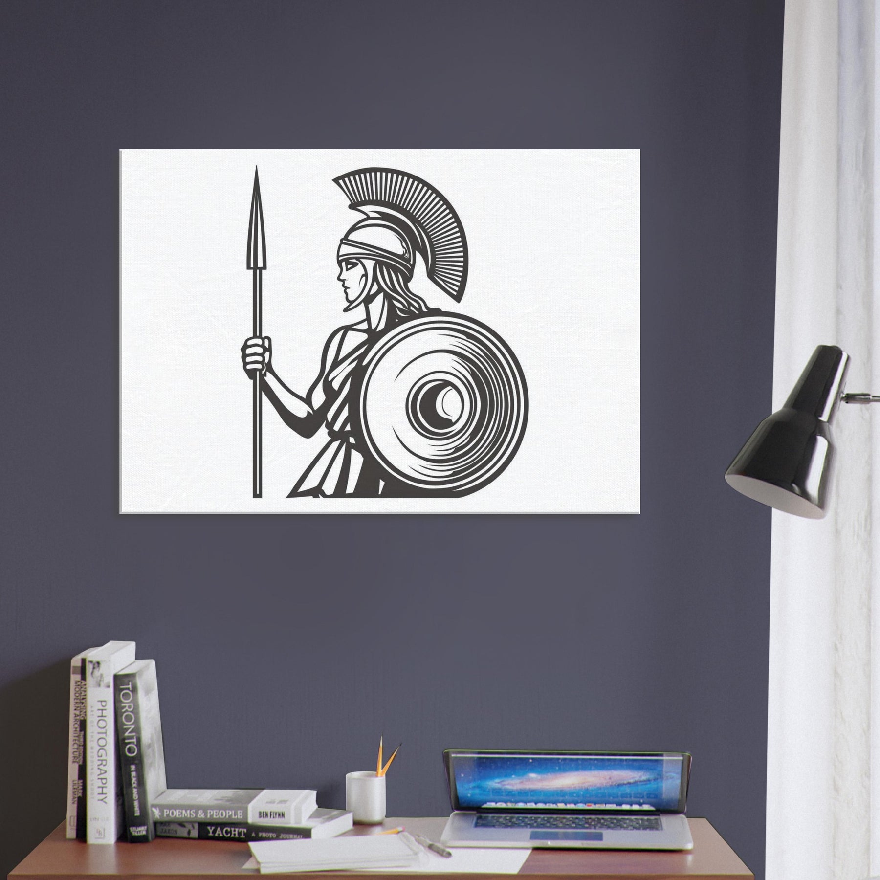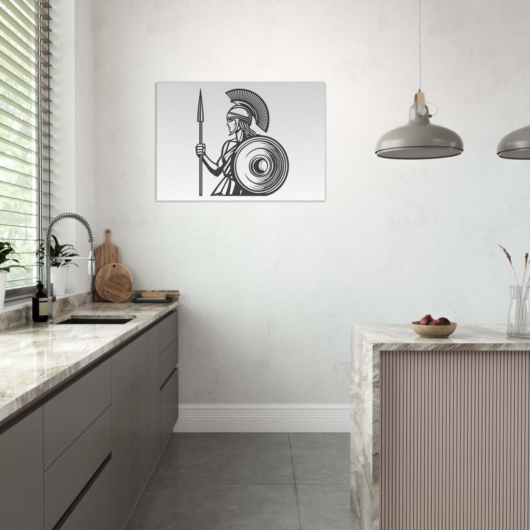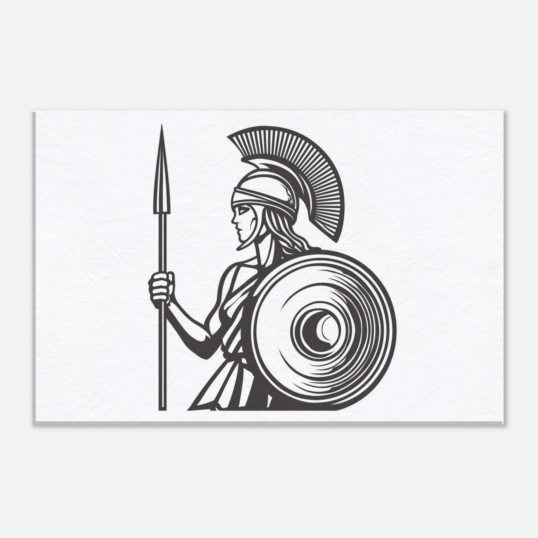 Immerse your space in the measured grace of Athena, Goddess of Wisdom and Strategy, rendered in clean line and shadow. This monochrome silhouette moves with quiet resolve, a Spartan helm catching a soft reflection as a spear and shield carve elegant arcs. Perfect above a desk or in a reading nook, it invites contemplation and steady breath, turning a wall into a sanctuary of focus and inspiration. Let the room speak in disciplined calm and ancient resolve.