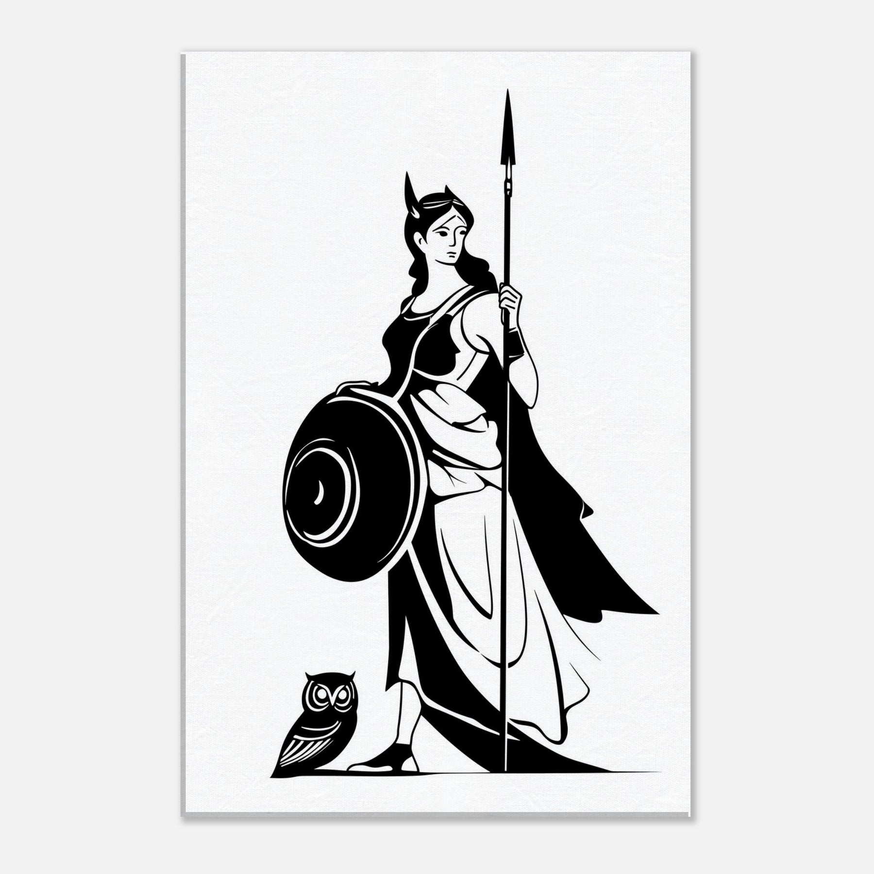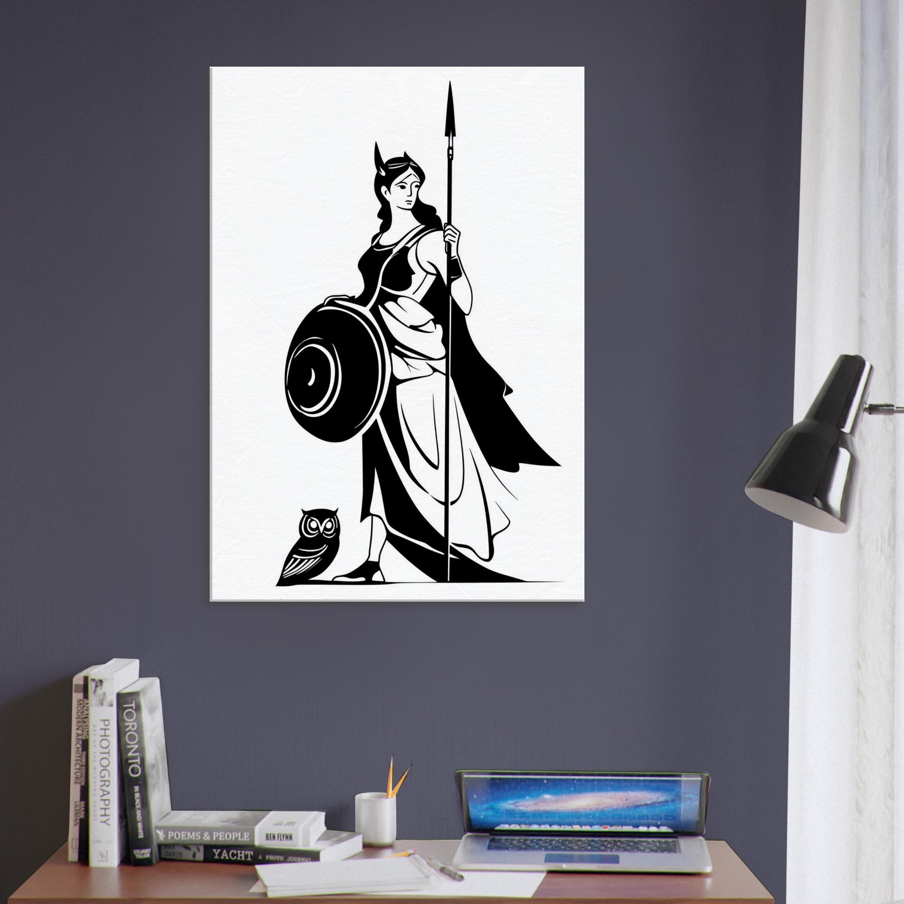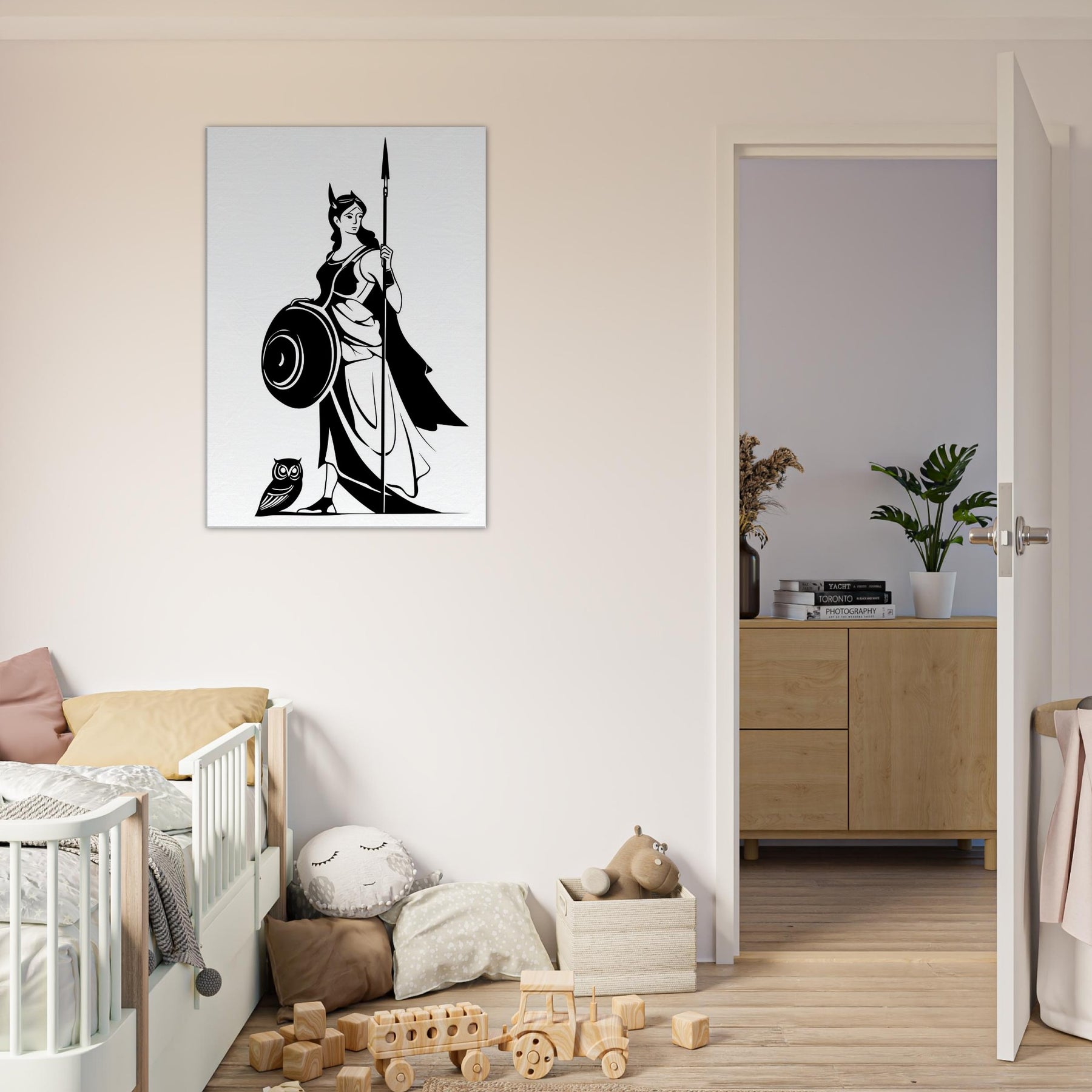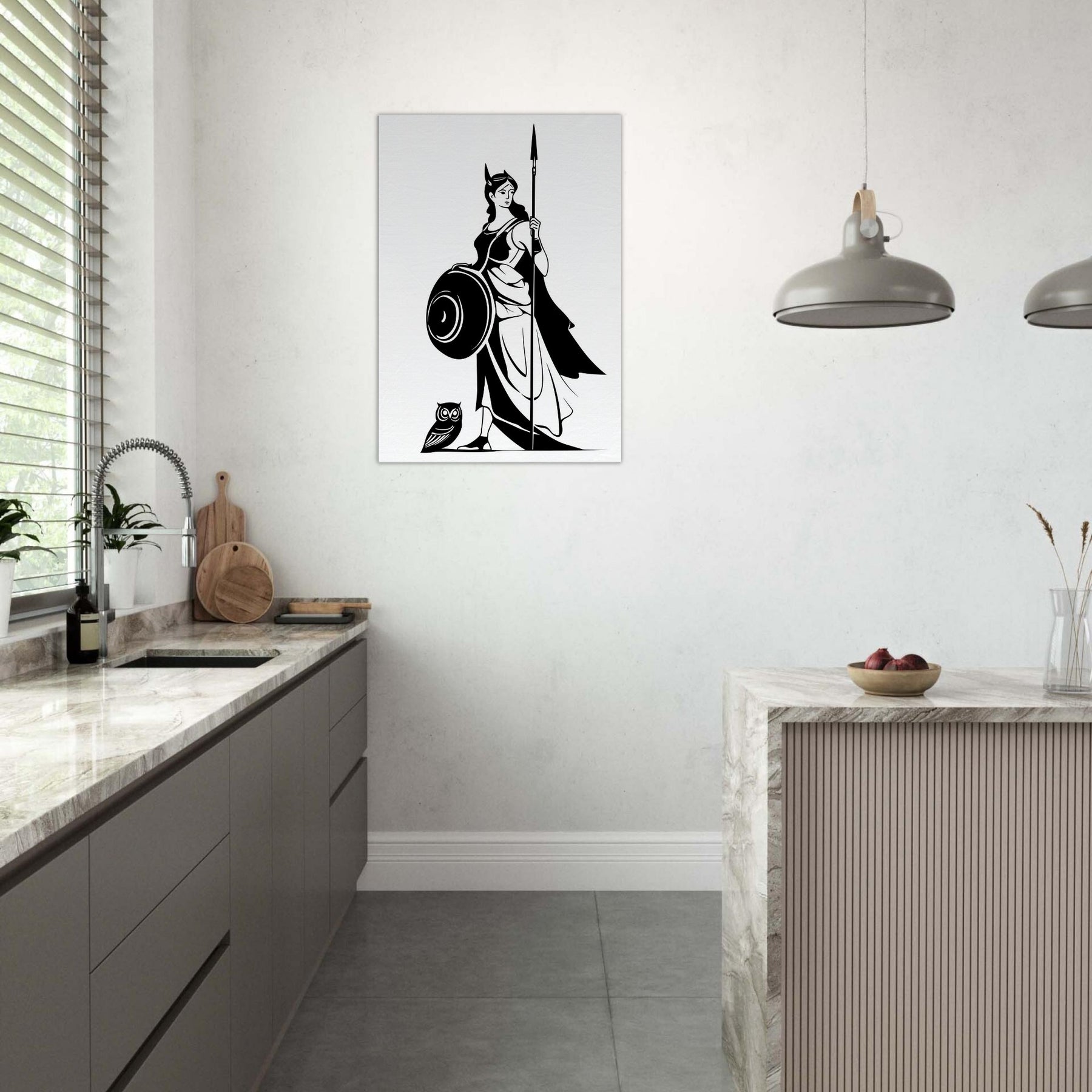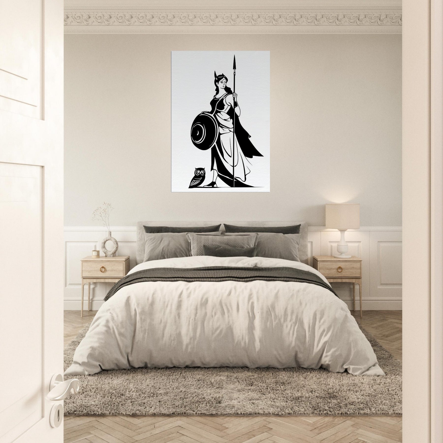 Athena, goddess of wisdom and strategy, steps into your room as a study in restraint and grace. This bold line drawing captures her poised strength shield held low, spear upright, cloak flowing with quiet energy. The minimalist composition invites calm focus, turning a living space into a sanctuary for ideas, strategy, and bold decisions. In the glow of morning light, her presence lends clarity to study corners, creative sessions, and late night problem solving.
