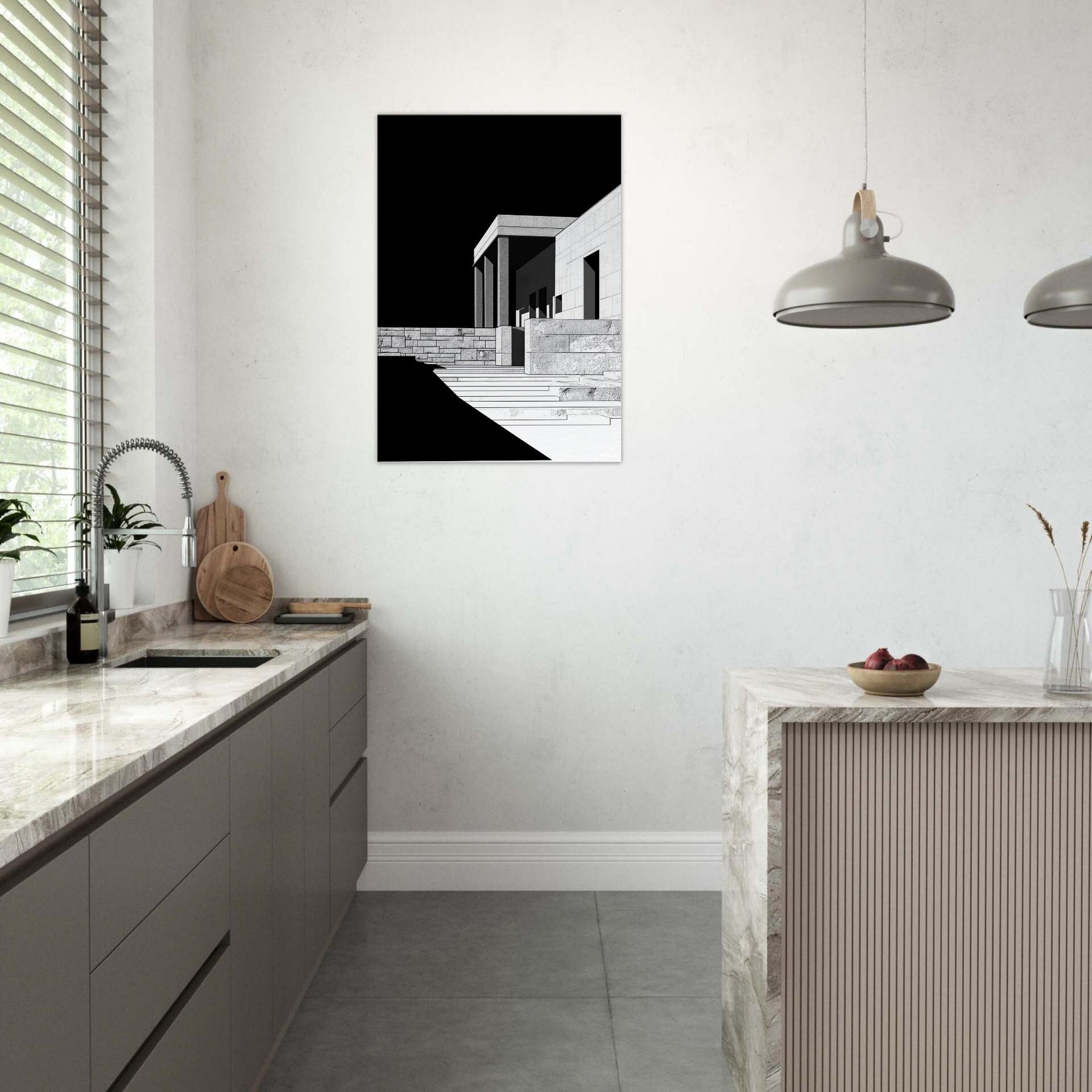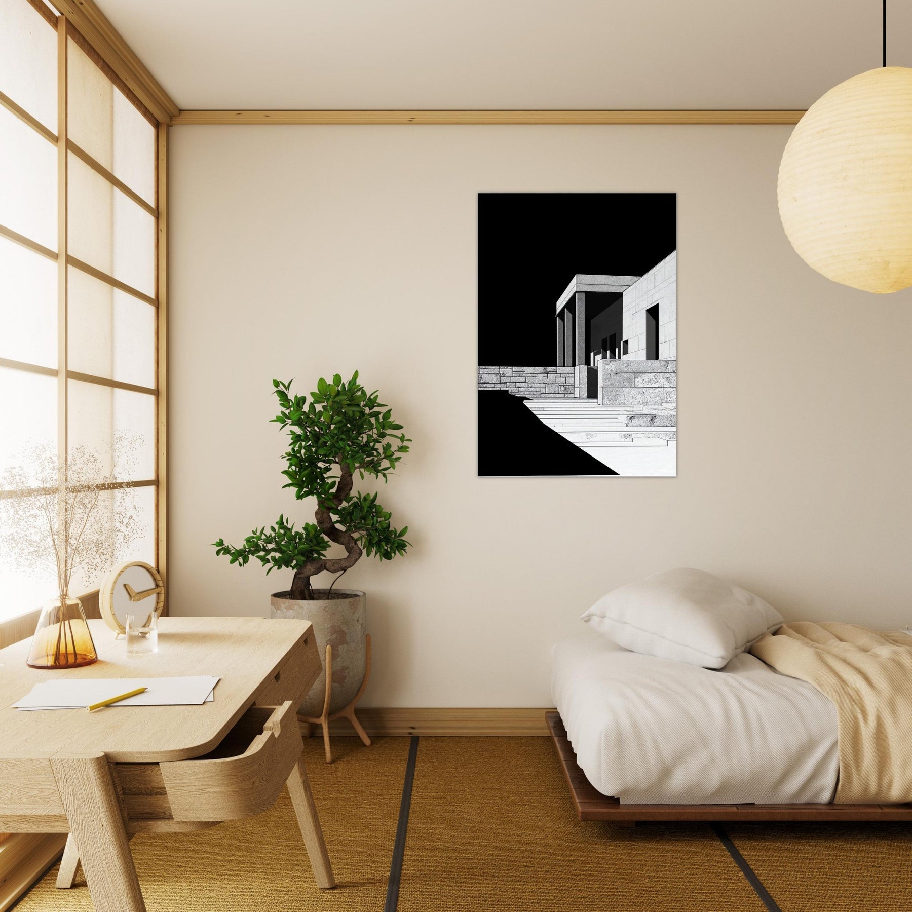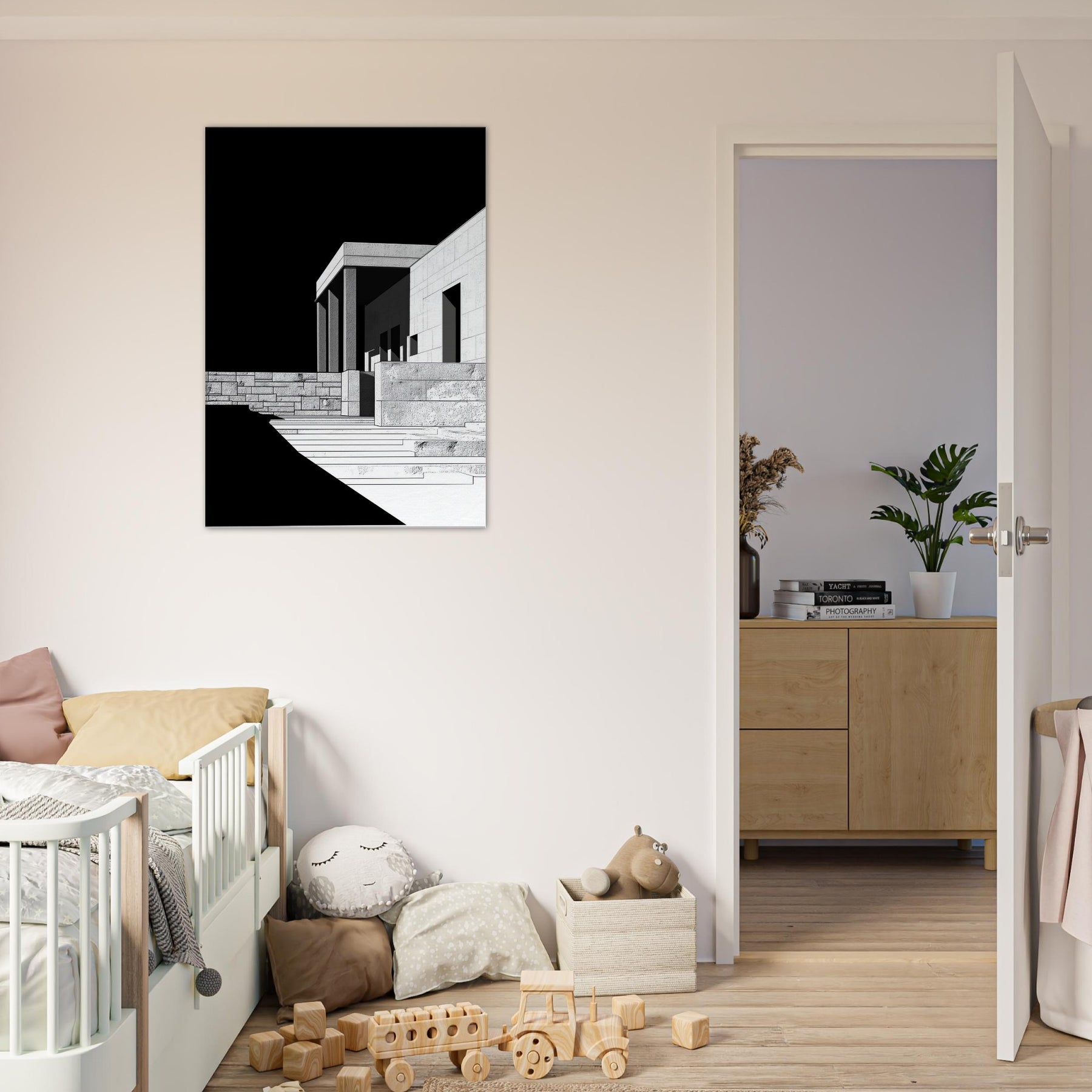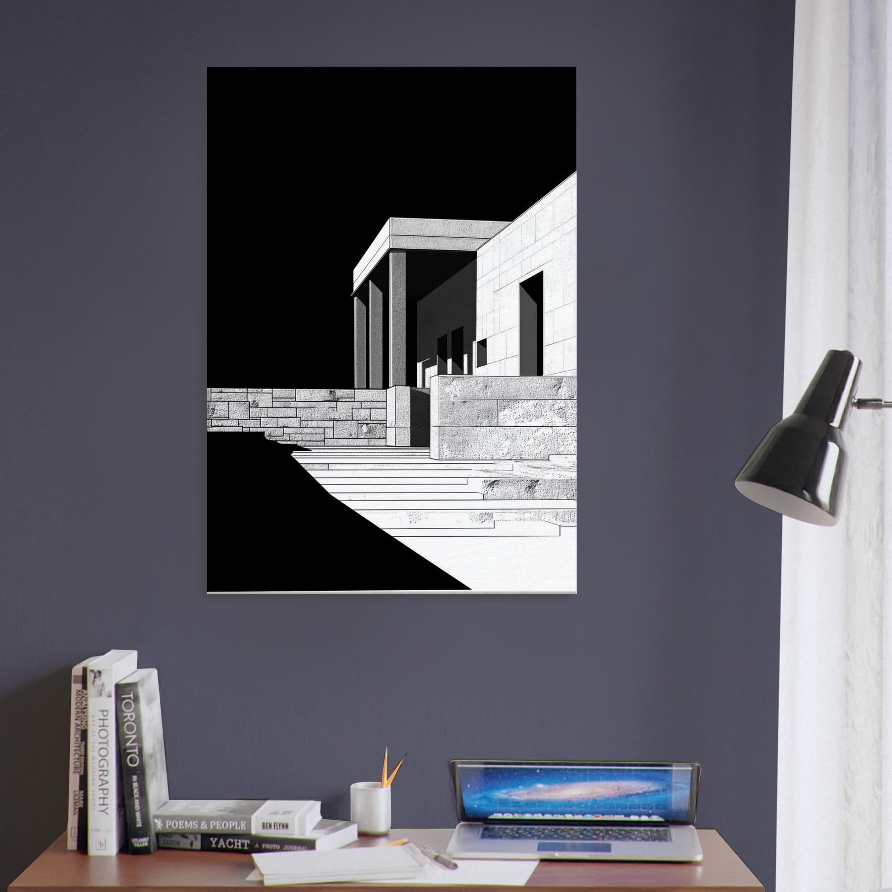 An architectural promenade rendered in crisp black and white, this line art study of Athens invites the eye to stroll along stepped terraces and colonnades. The bold negative space and precise angles create a quiet, contemplative mood that pairs perfectly with a living room or study. The piece lends a sense of structure and calm, echoing timeless city shadows while remaining utterly modern. Hang it where light meets form to elevate daily rituals into a moment of museum like stillness.