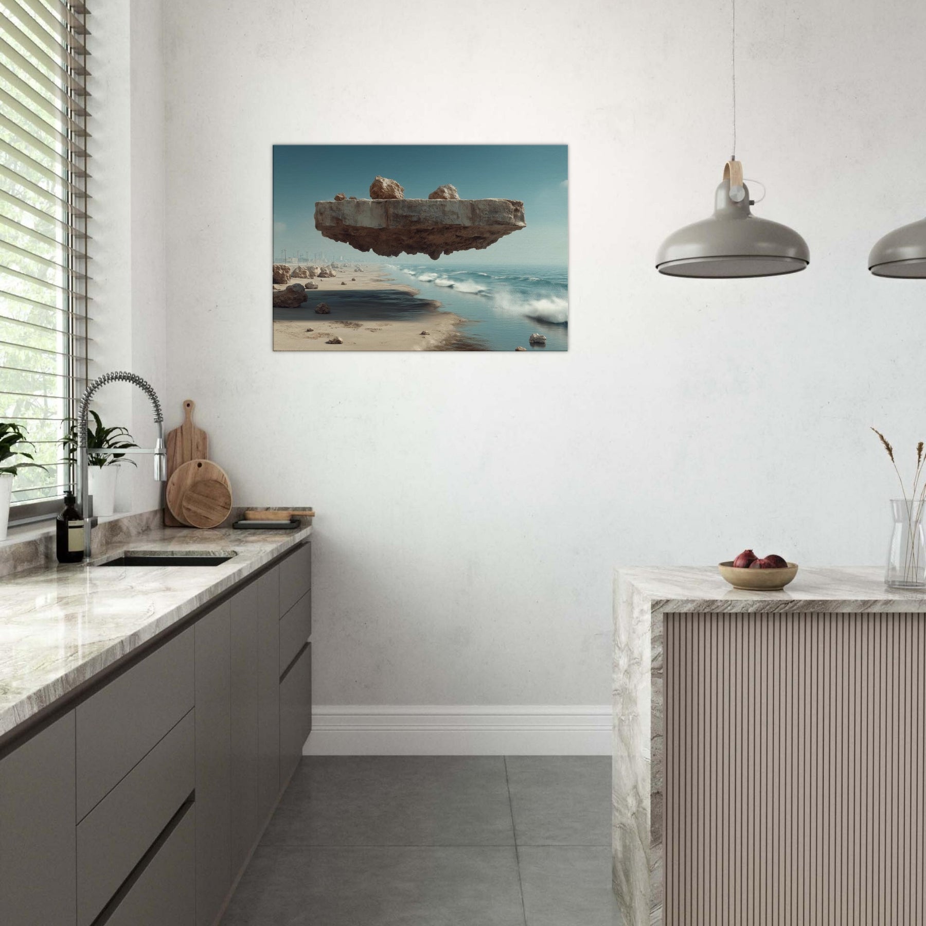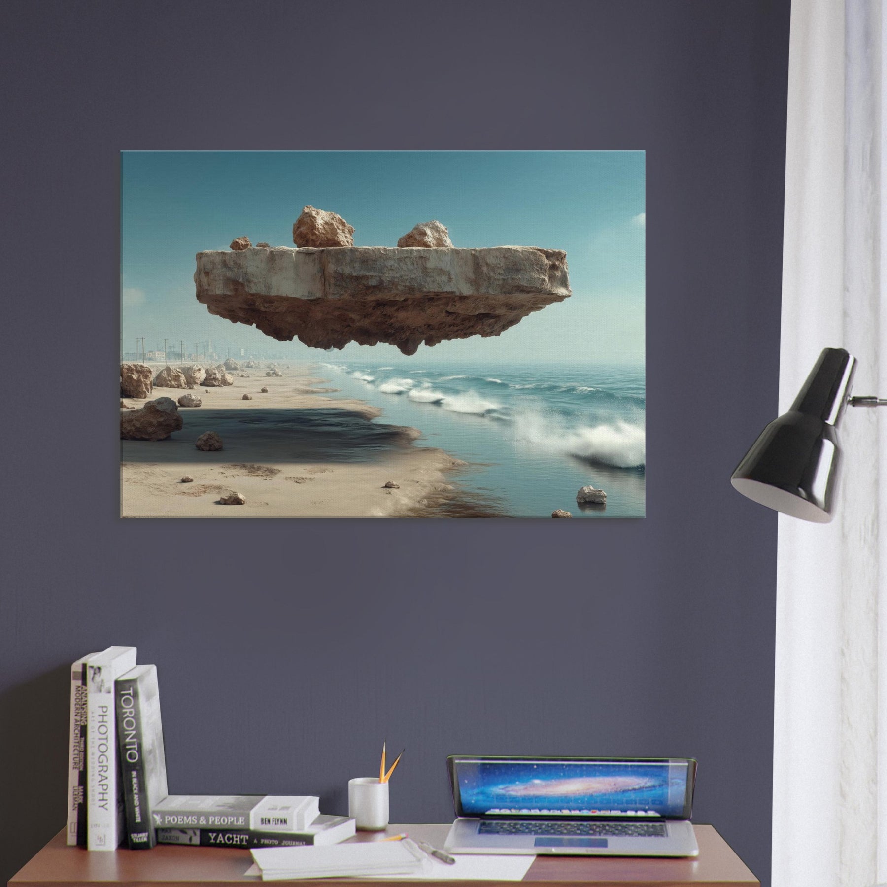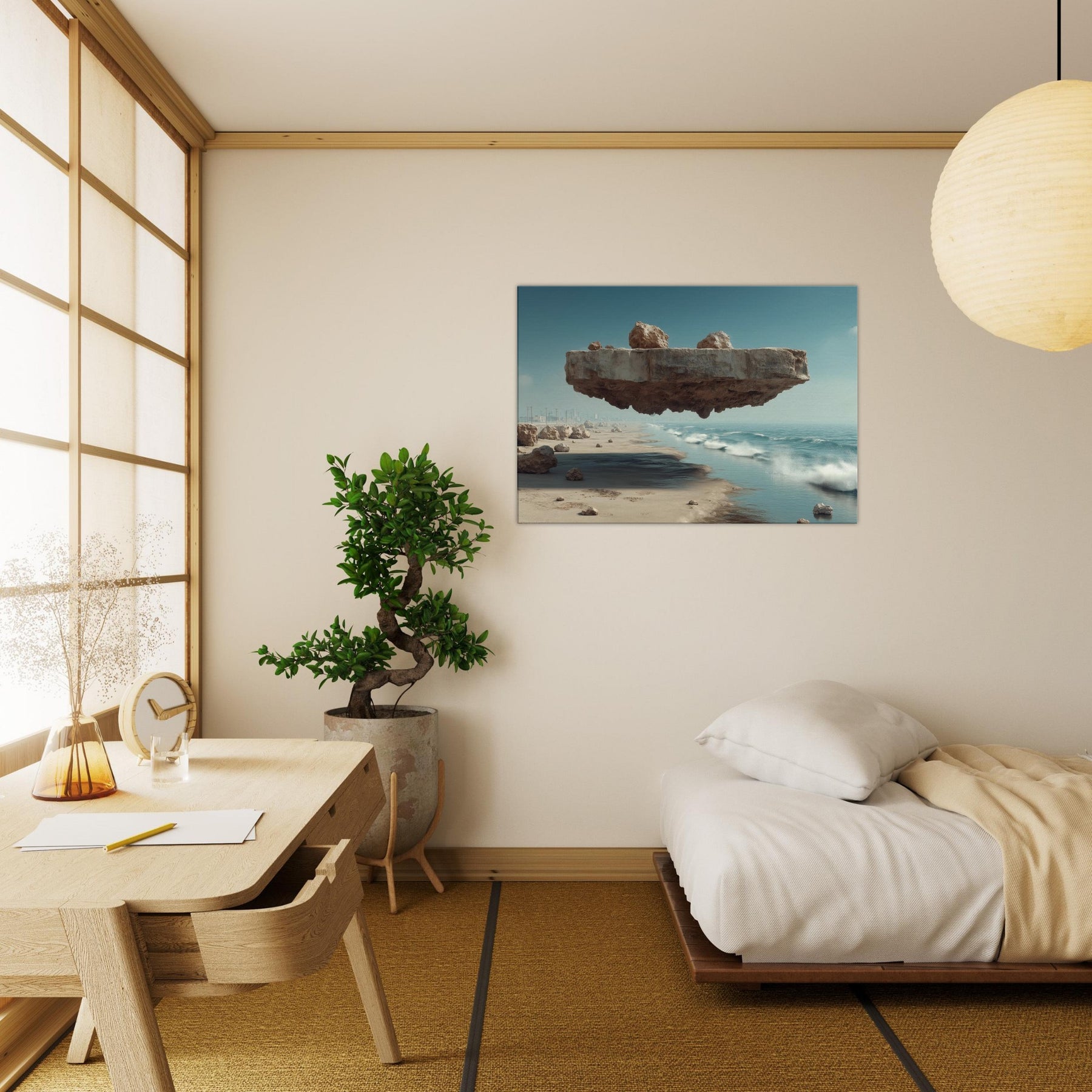 An otherworldly hush settles over a hushed coastline as a colossal rock defies gravity and drifts above the shore. The scene merges a dreamlike aurora with a sculptural horizon, casting pale greens and jade across water and sand. Its surreal stillness invites quiet contemplation, turning a living room into a window seat to an impossible . Hang in a sunlit corner or by a reading chair, and let the Aurora Borealis inspired glow soften edges, spark imagination, and create a space that feels both serene and infinitely possible.