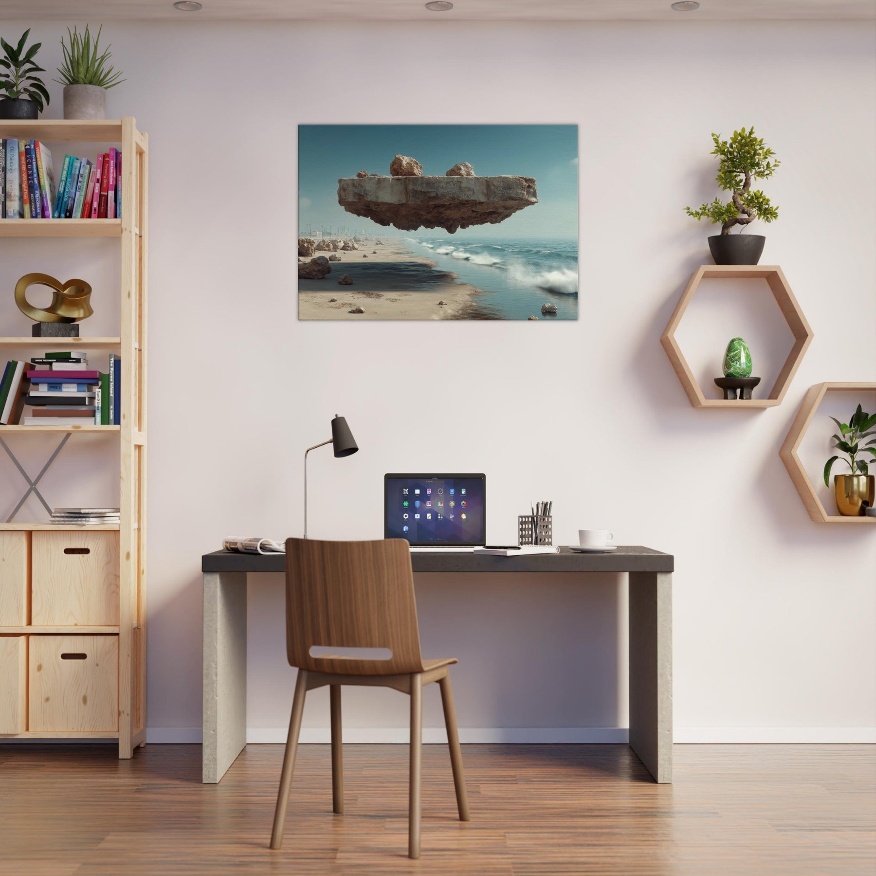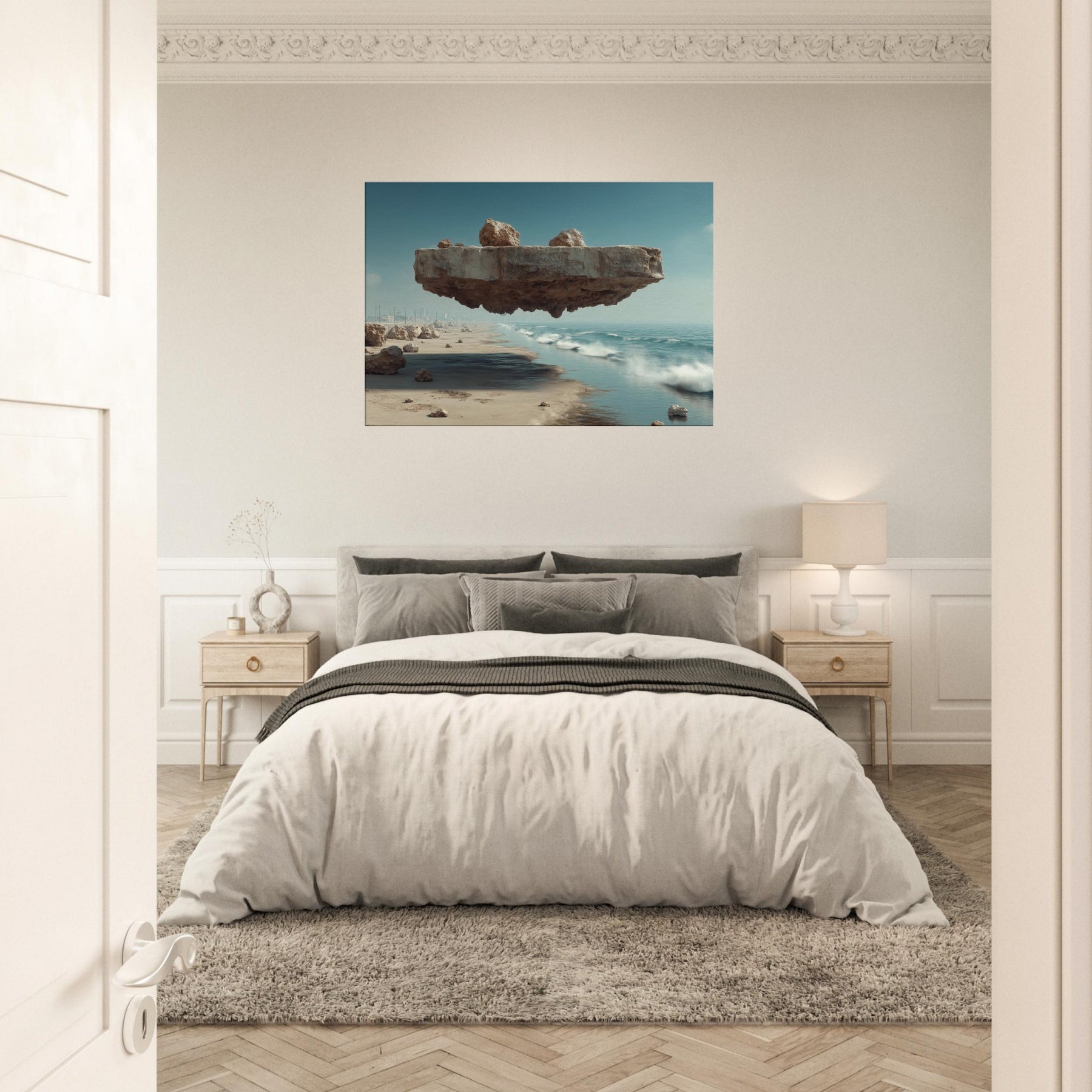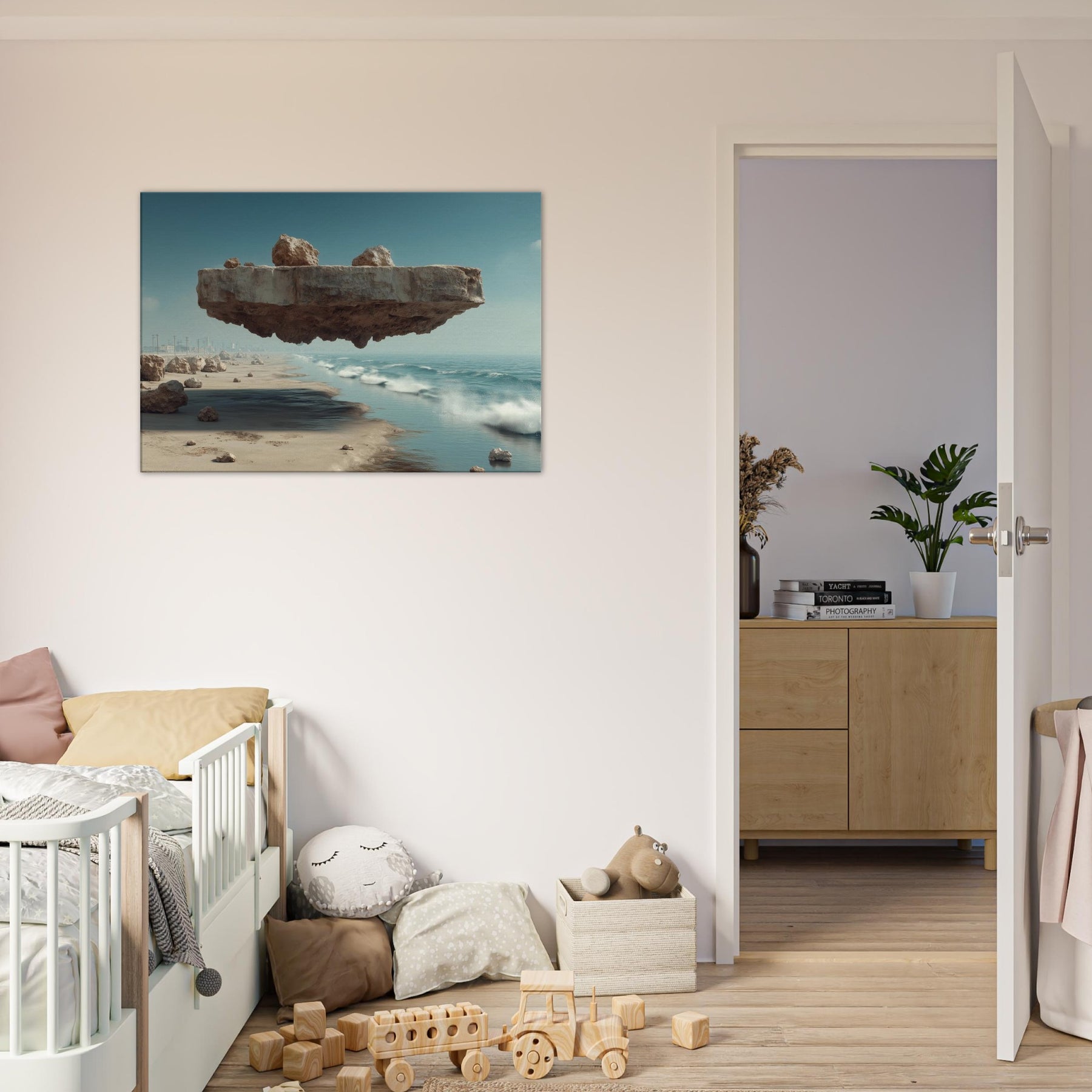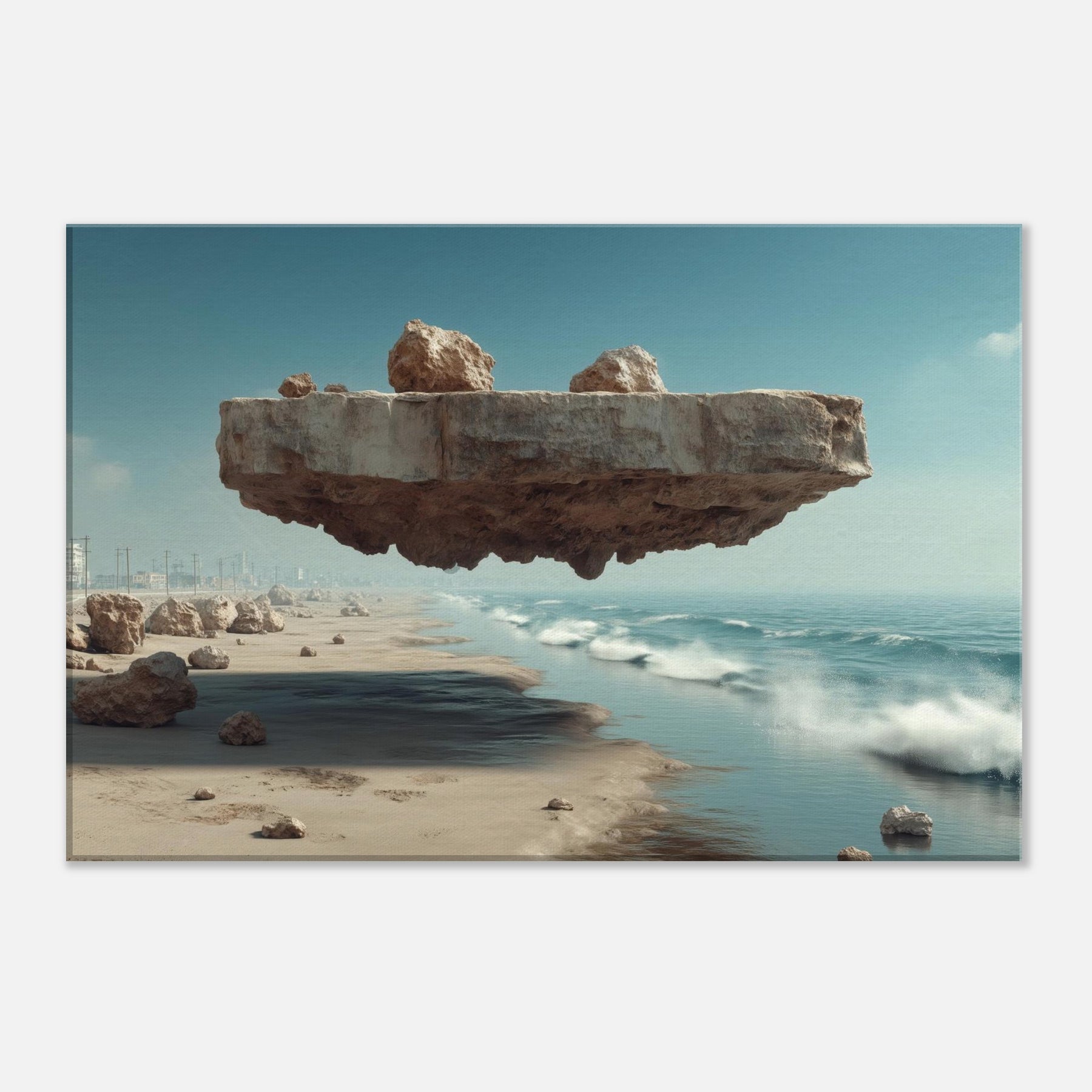An otherworldly hush settles over a hushed coastline as a colossal rock defies gravity and drifts above the shore. The scene merges a dreamlike aurora with a sculptural horizon, casting pale greens and jade across water and sand. Its surreal stillness invites quiet contemplation, turning a living room into a window seat to an impossible . Hang in a sunlit corner or by a reading chair, and let the Aurora Borealis inspired glow soften edges, spark imagination, and create a space that feels both serene and infinitely possible.
