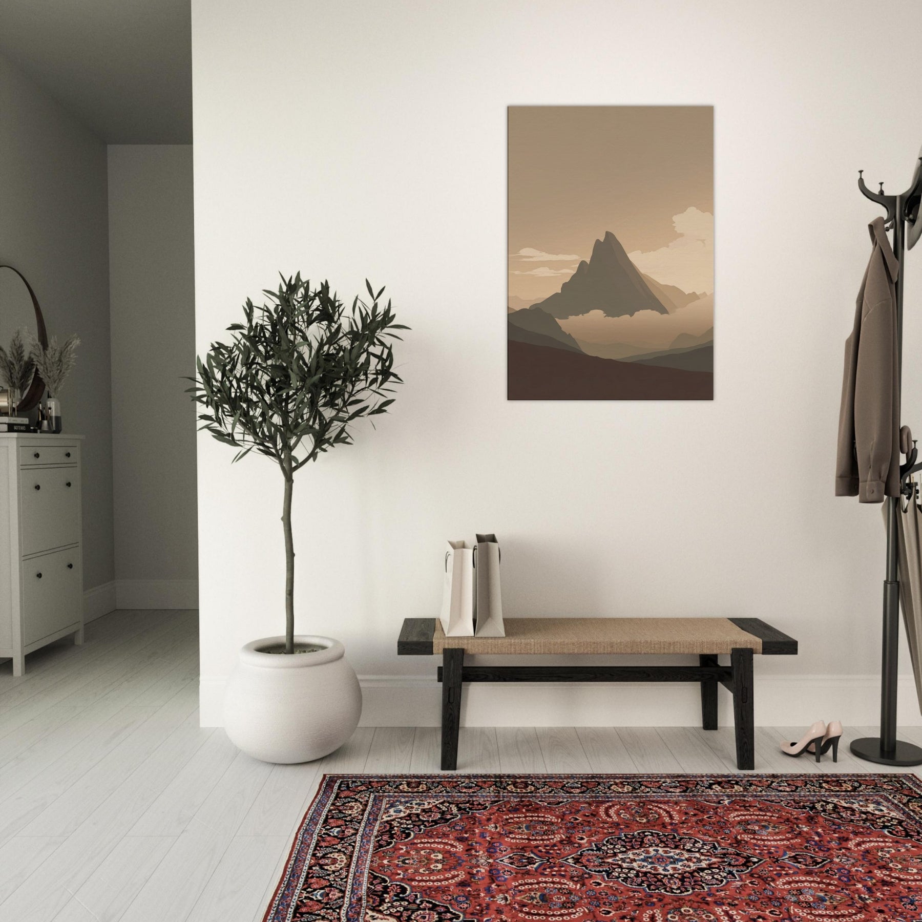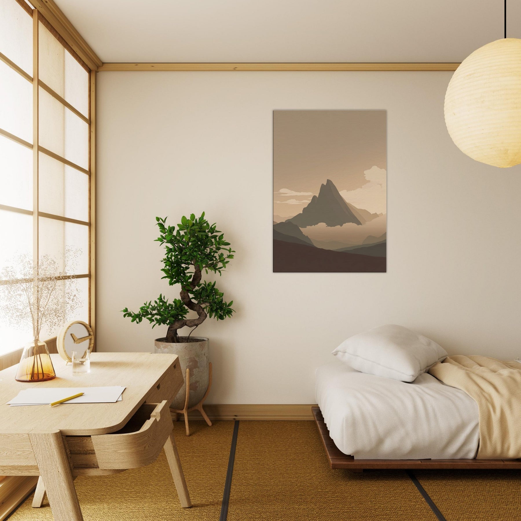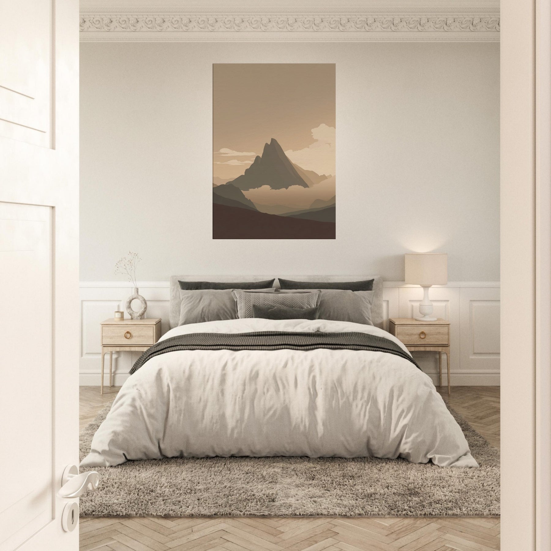 Immerse your space in the quiet glow of the Aurora Borealis, reimagined in a minimalist study of light and shadow. This piece breathes with soft gradients, where the primary subject glides over tranquil ranges and a hushed horizon. The atmosphere is serene, almost hush like, inviting slow mornings and relaxed evenings. Perfect above a sofa or in a hallway, it lends expansive air, gentle warmth, and a contemplative mood that elevates contemporary living spaces with subtle, nature inspired poetry.