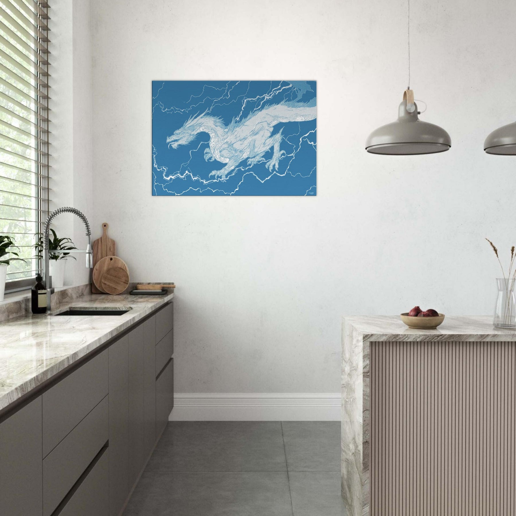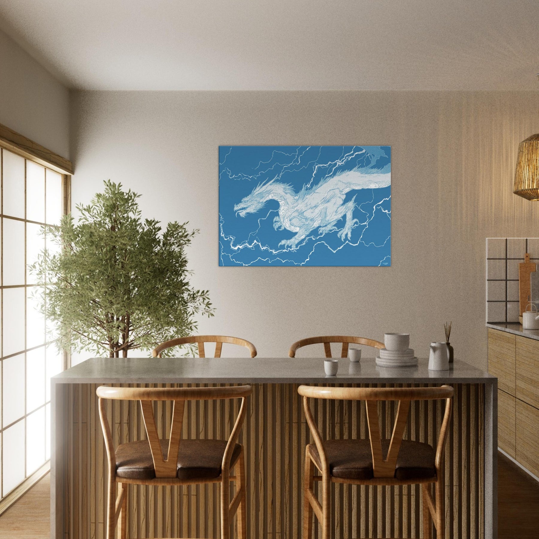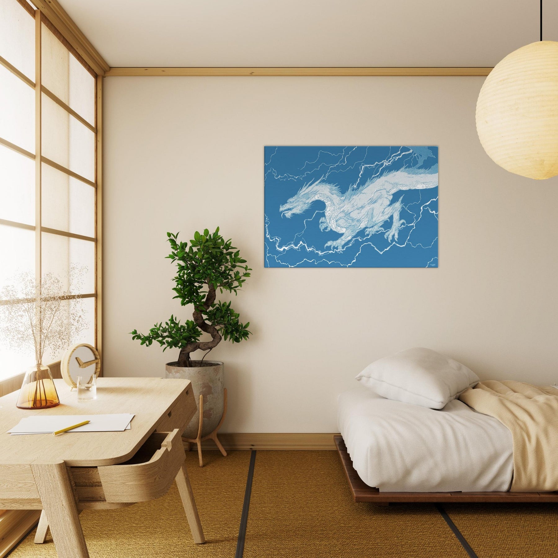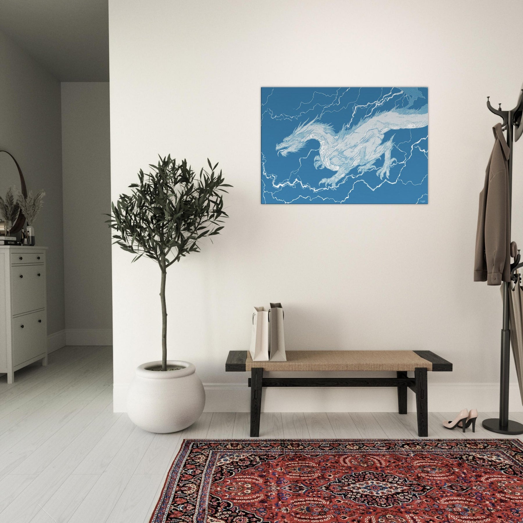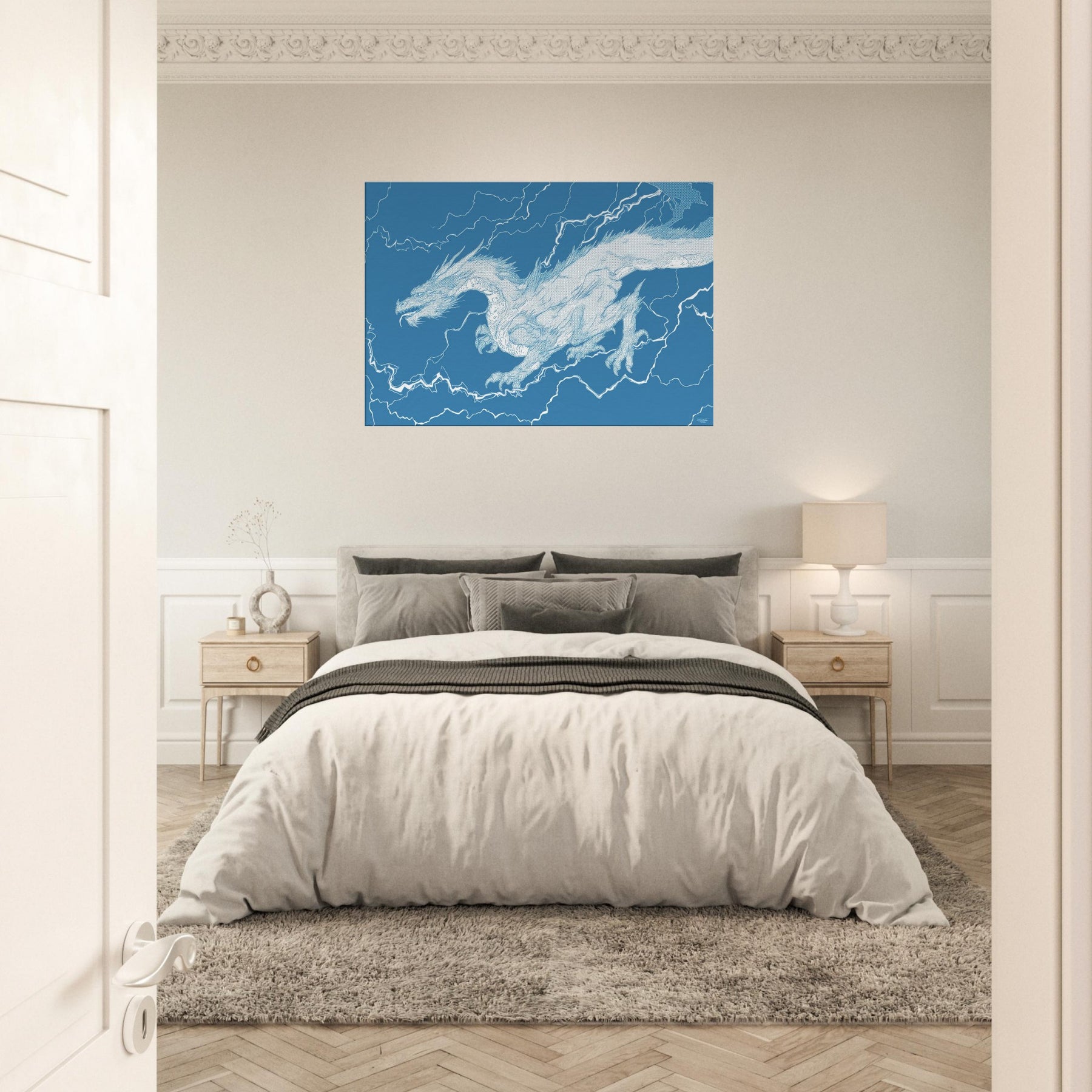 Let this line art tableau carry the heartbeat of a storm into your room. The Azure Dragon of the East Flying Through Thunderous Skies glides on delicate, ink thin lines, its scales catching rain like glass and its breath tracing argent lightning. The monochrome drama opens a doorway to myth, shaping a space with motion, wind, and mystique. Hang it in a living room or study to invite focus, wonder, and a refined, nocturnal energy.