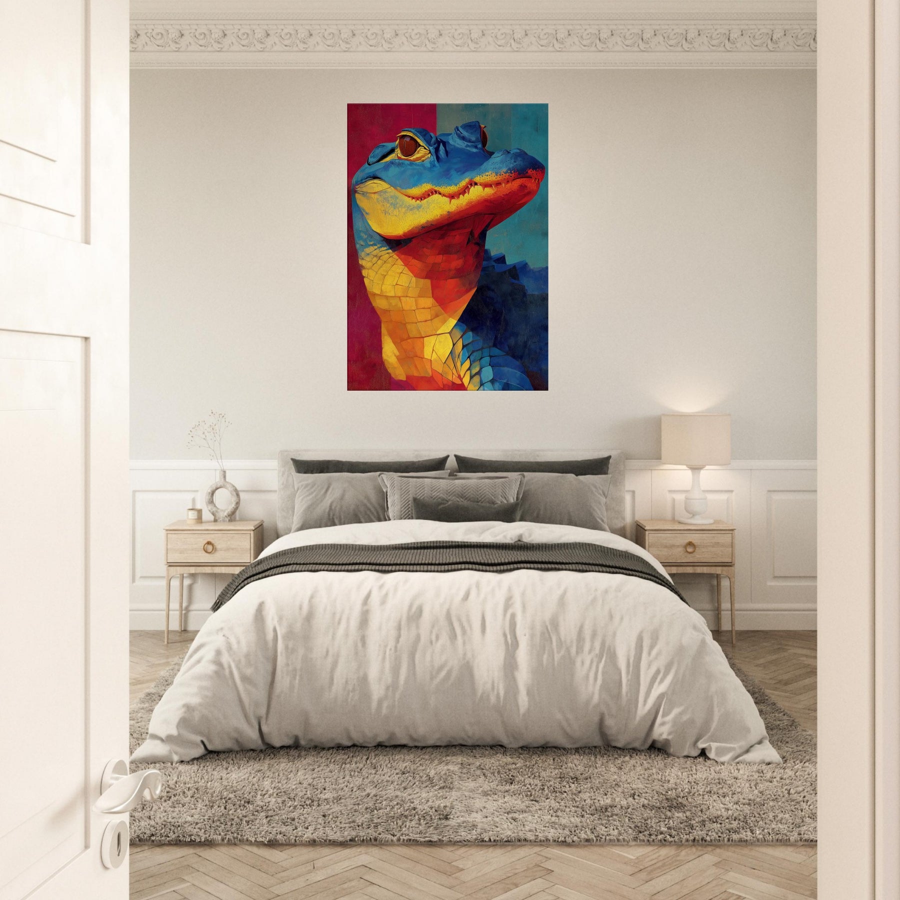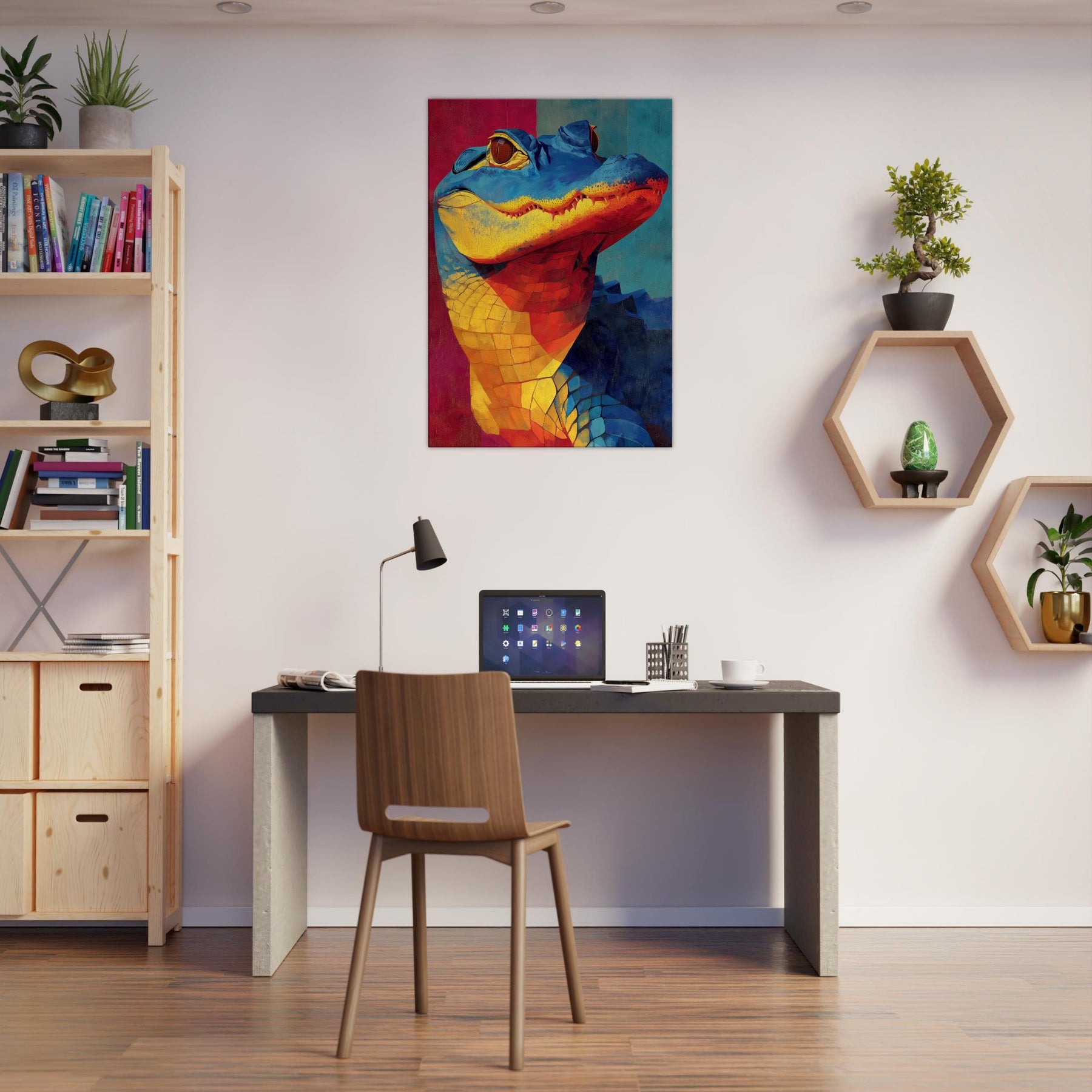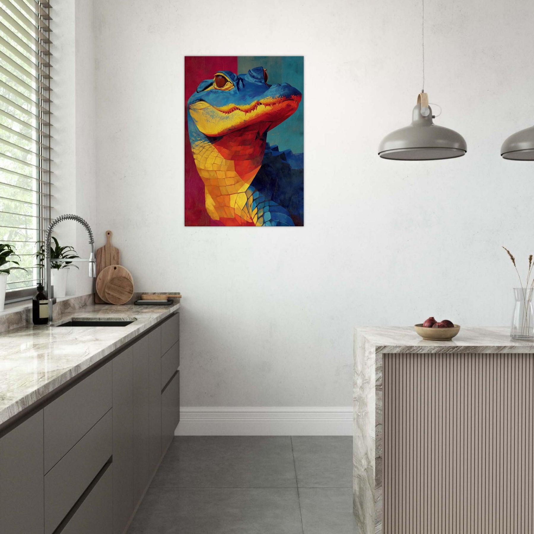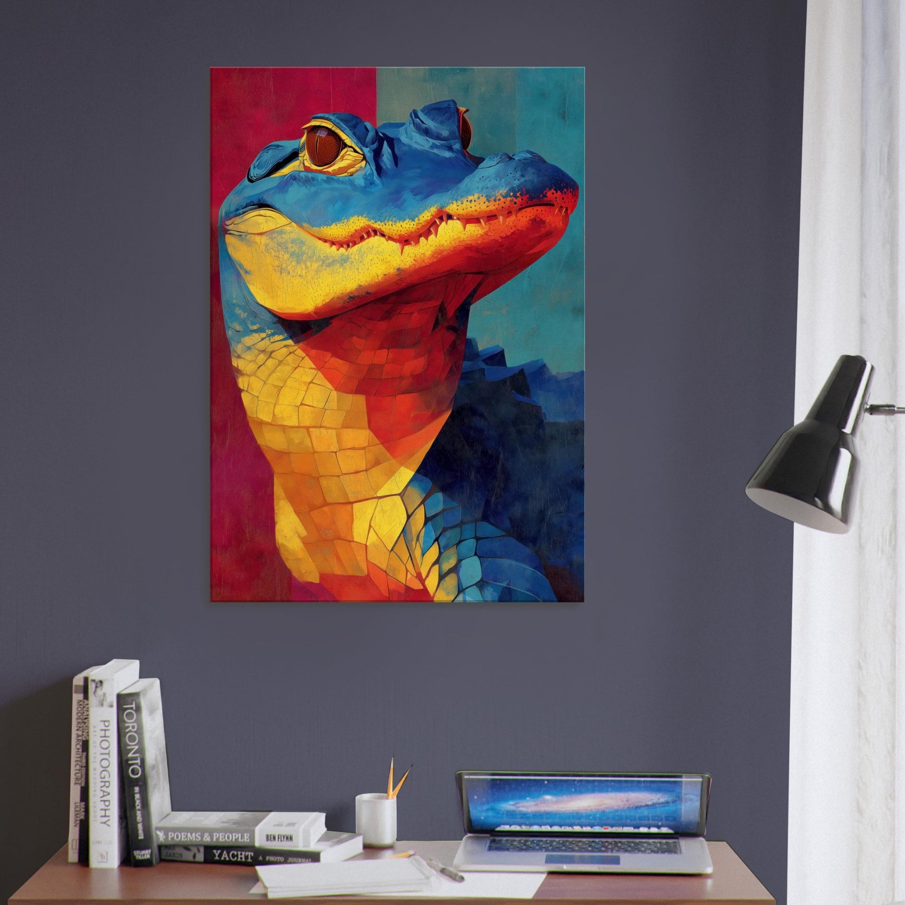 An electric fusion of scales and color, this Alligator leaps from the canvas in a tide of blues, yellows, and crimson. The abstract forms fold and shimmer, inviting the eye to wander across its armored neck and sunlit maw. In a living room or studio, it becomes a heartbeat of warmth and daring a conversation piece that threads tropical heat with modern minimalism, turning ordinary walls into a dynamic, cinematic backdrop.