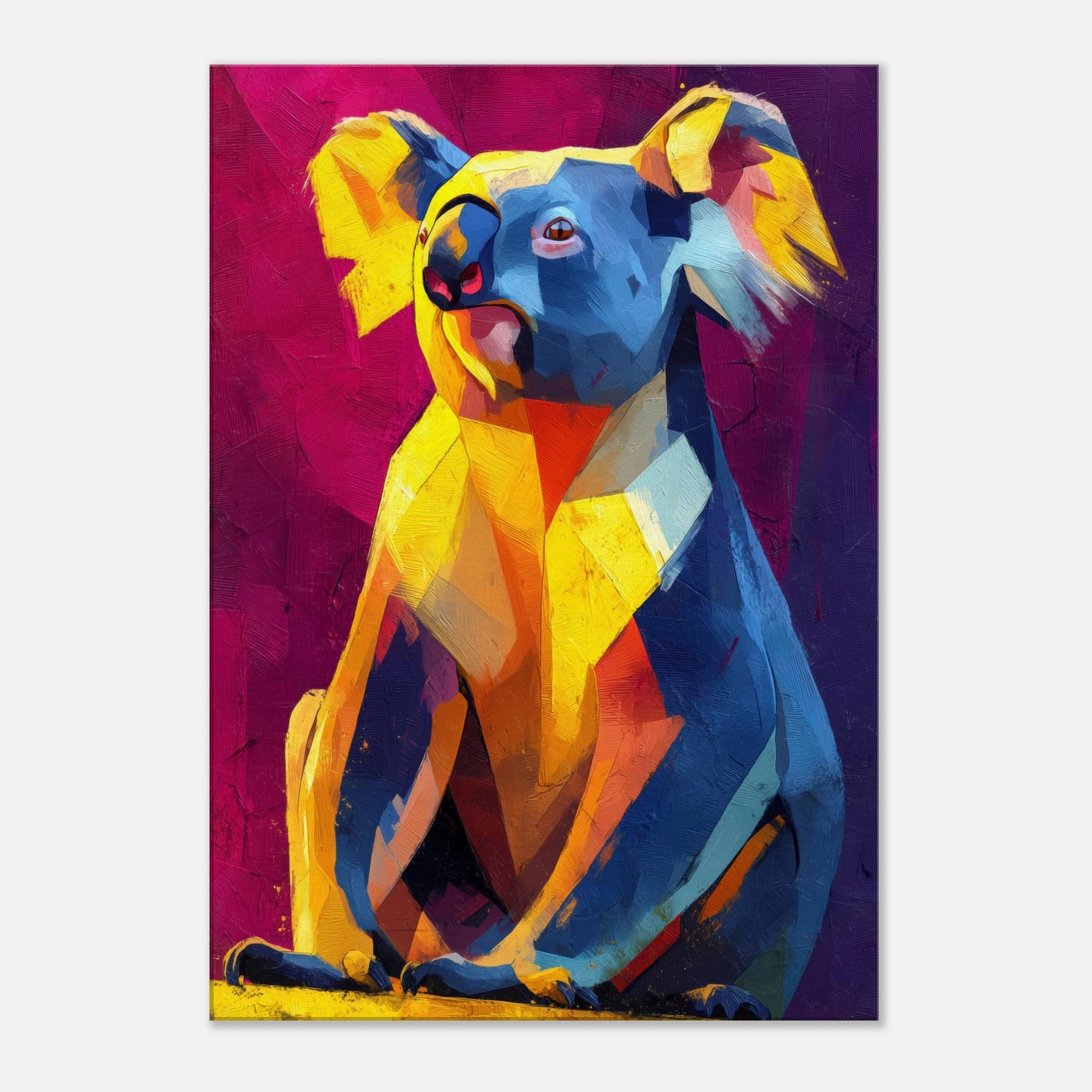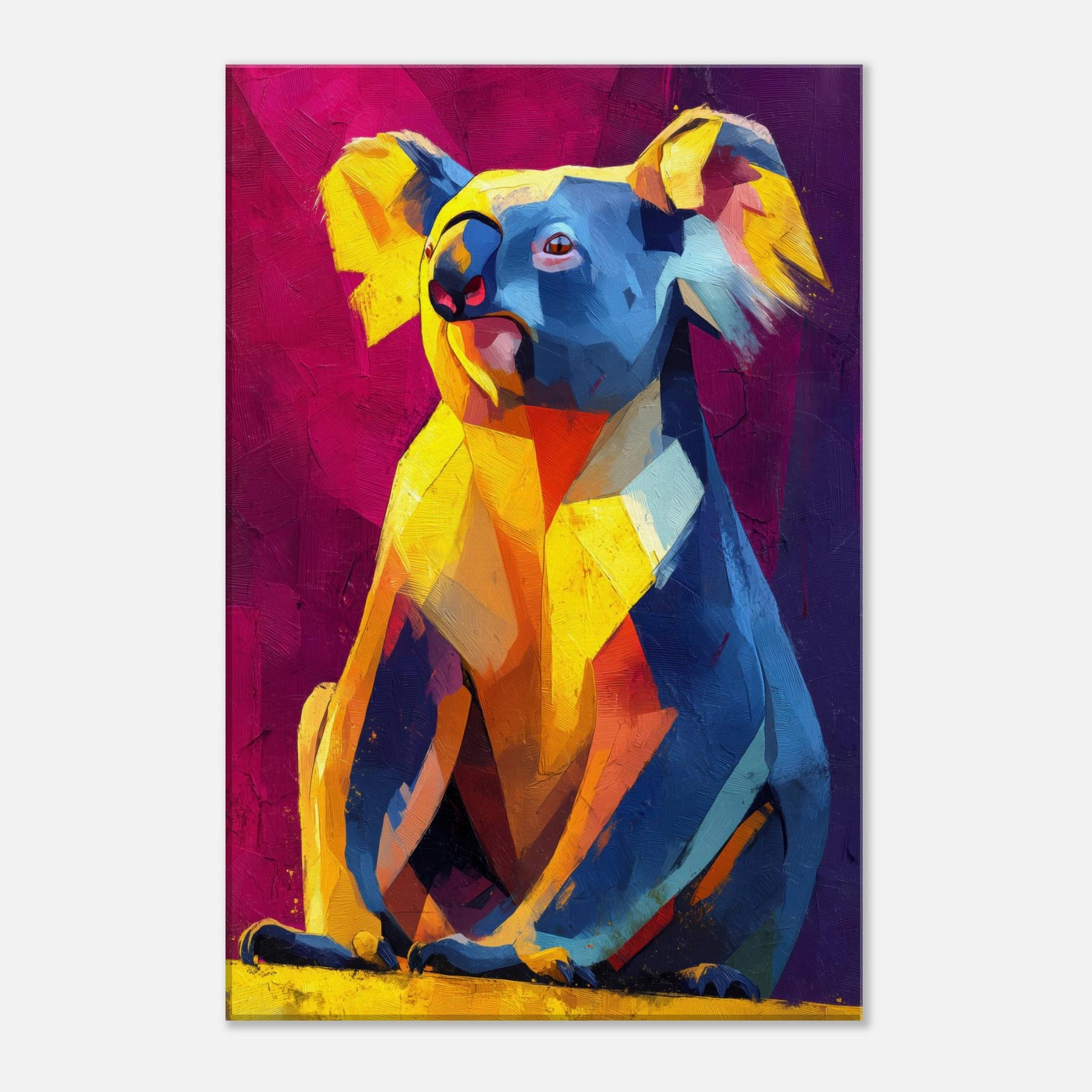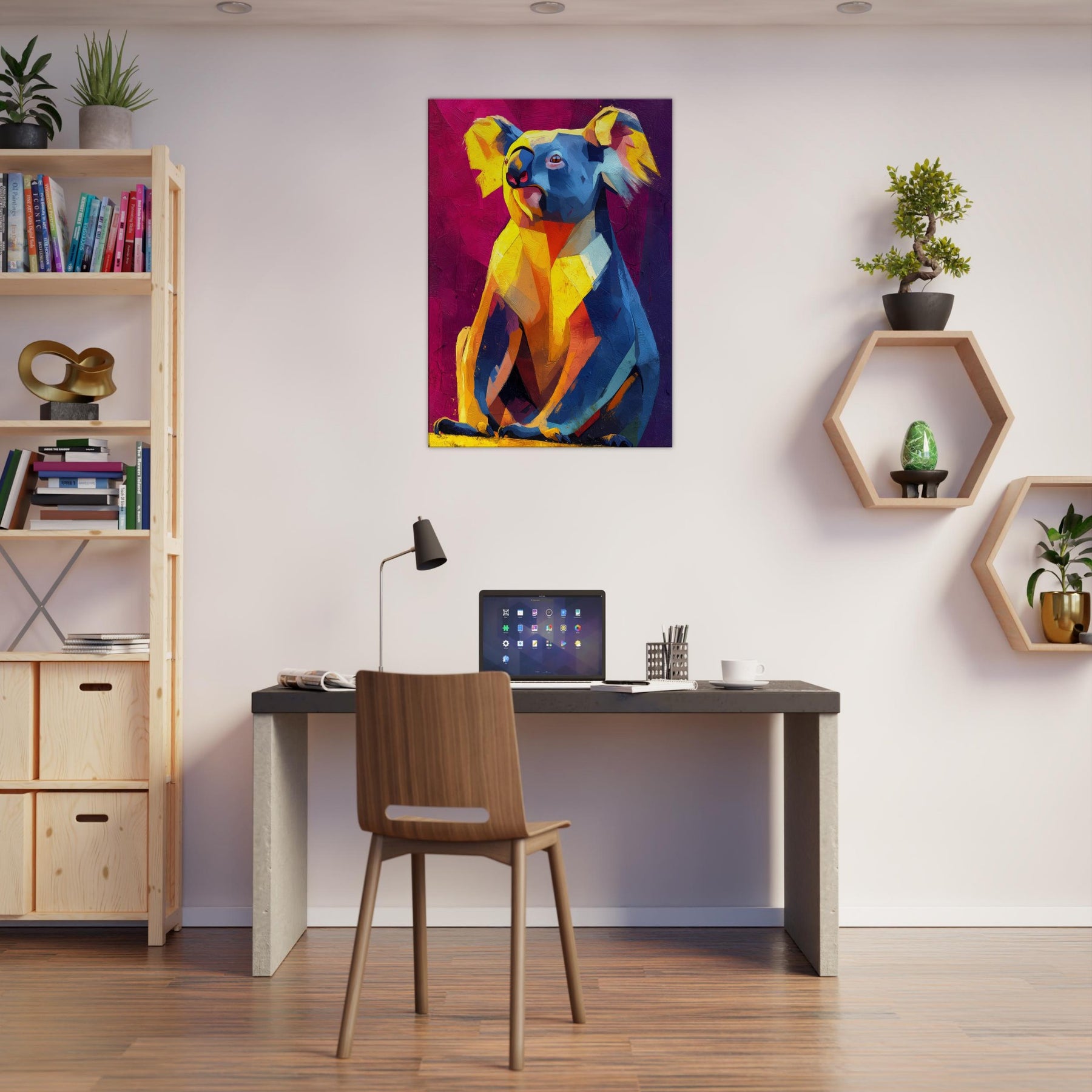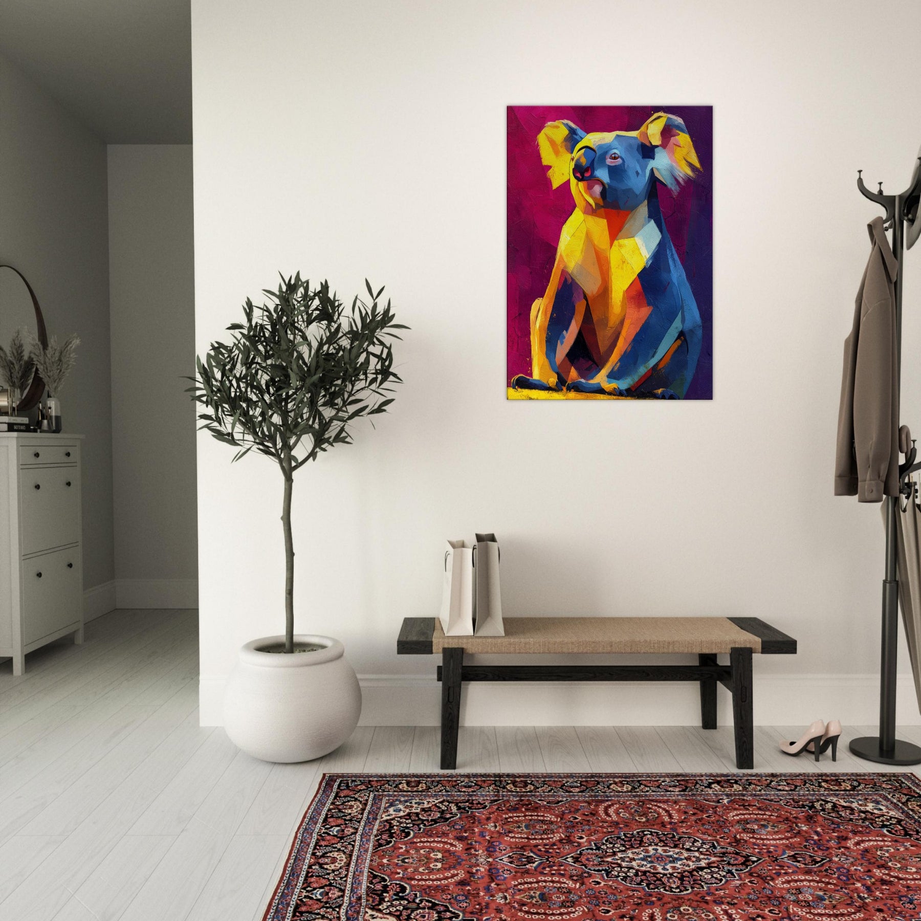 Let the Koala sit buoyant in a blaze of color, and your room becomes a warm, sunlit canopy. This abstract inspired composition glows with electric blues, radiant yellows, and smoky magentas that sweep across the walls like a heartbeat. The Koala's serene gaze anchors the space while the geometric planes ripple with energy, inviting quiet curiosity. It pairs beautifully with modern furnishings and soft textures, turning a living area into a playful refuge where conversation blooms, and art feels as comforting as a held breath.