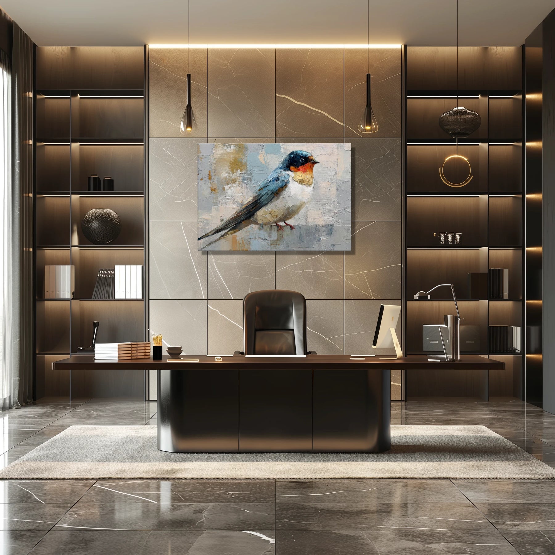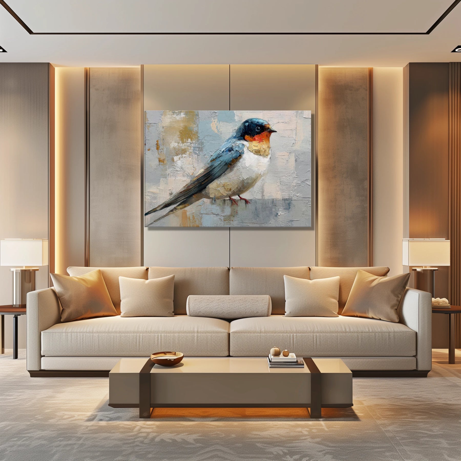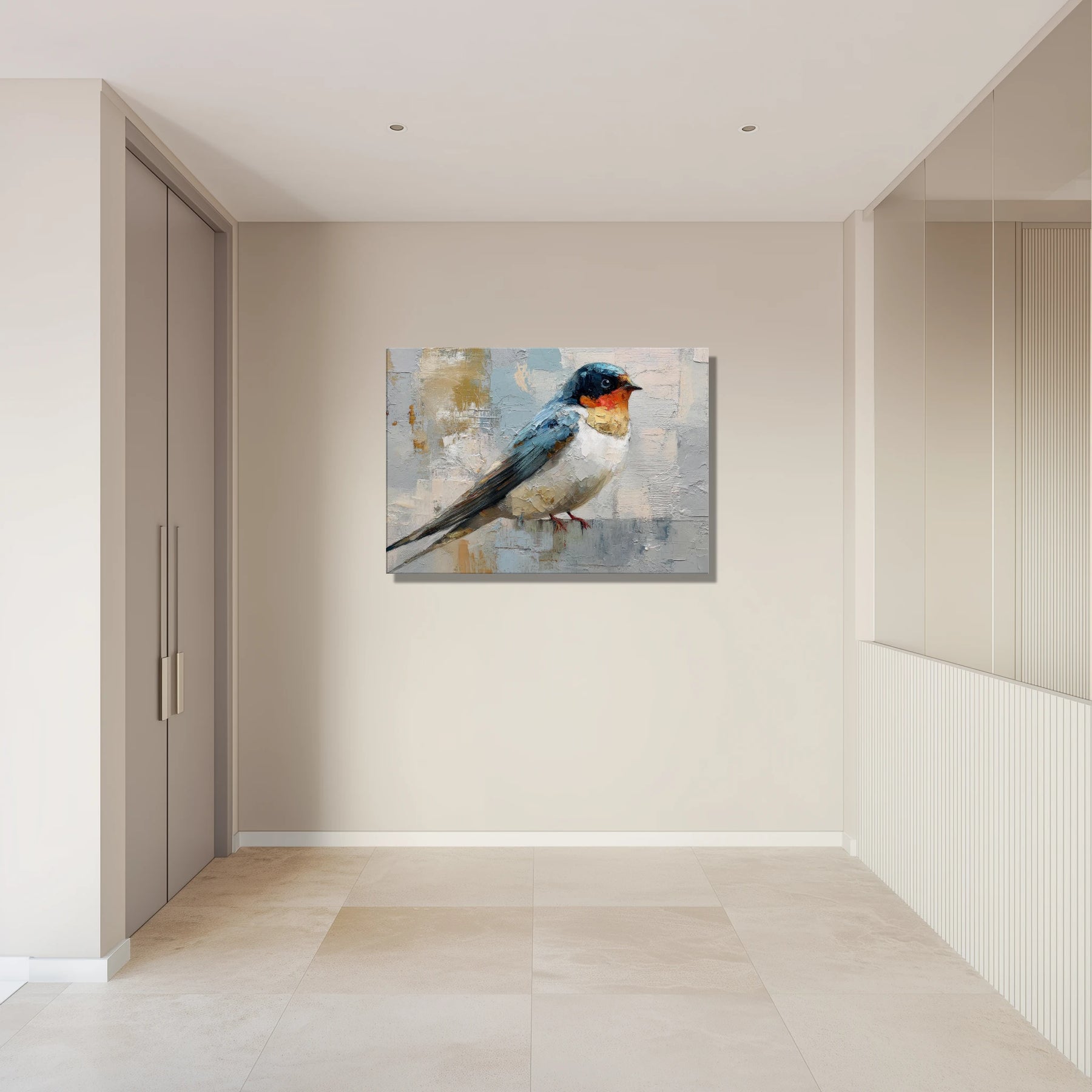 This contemporary swallow brings a quiet, airy calm to your space, like opening a window to soft morning light. Its poised presence invites you to pause, breathe, and feel a little more grounded at the start or end of your day.
