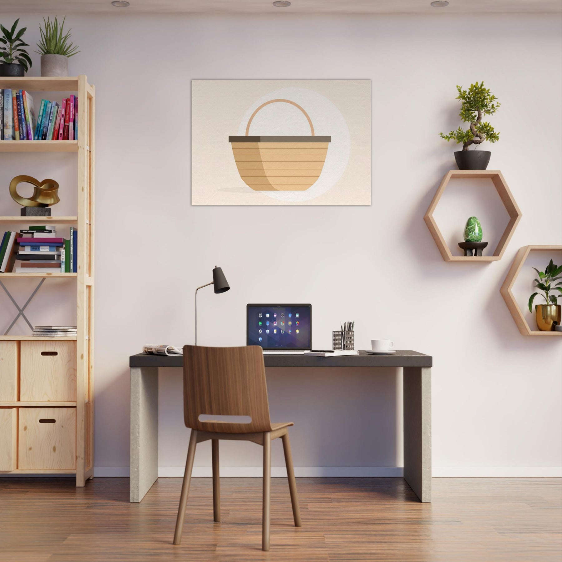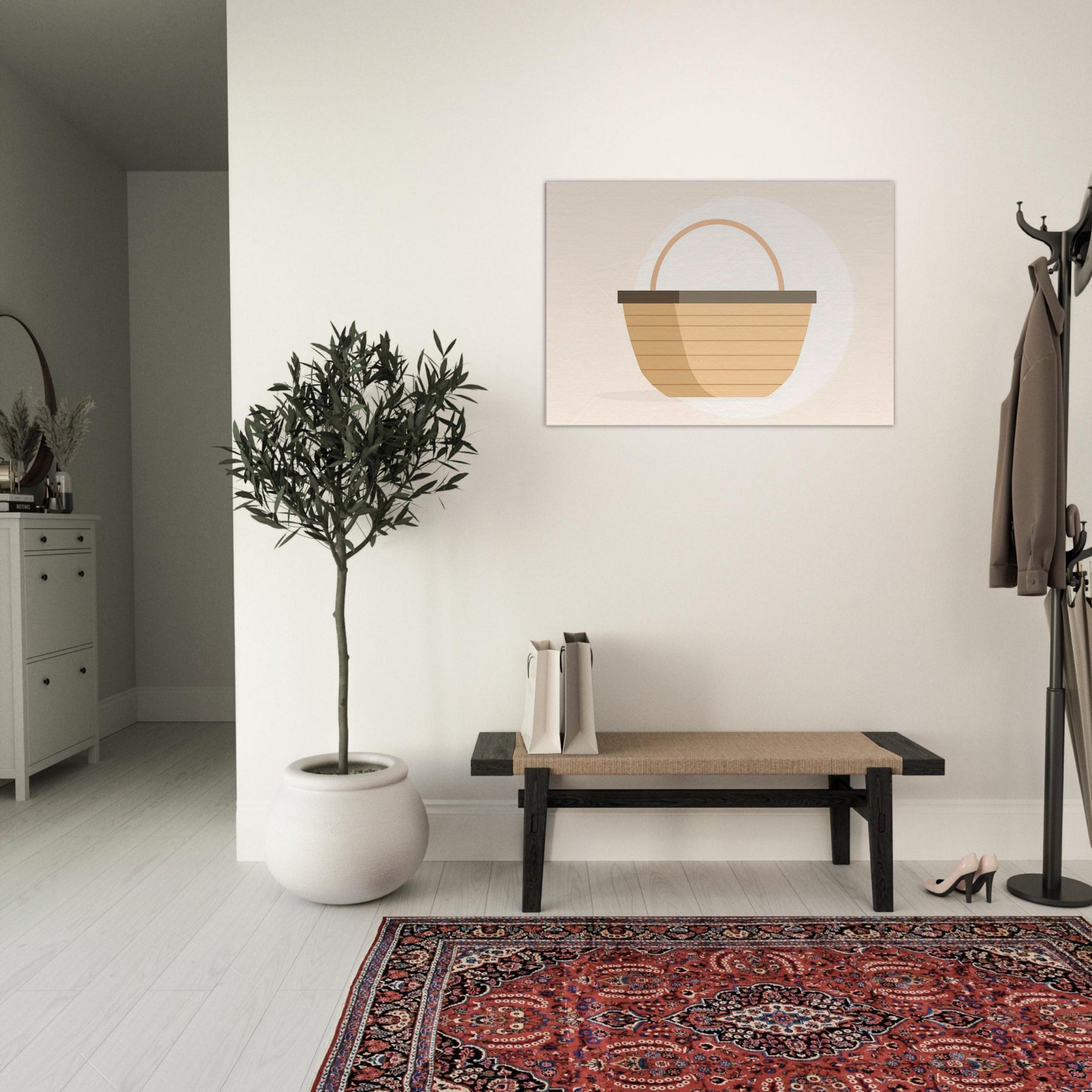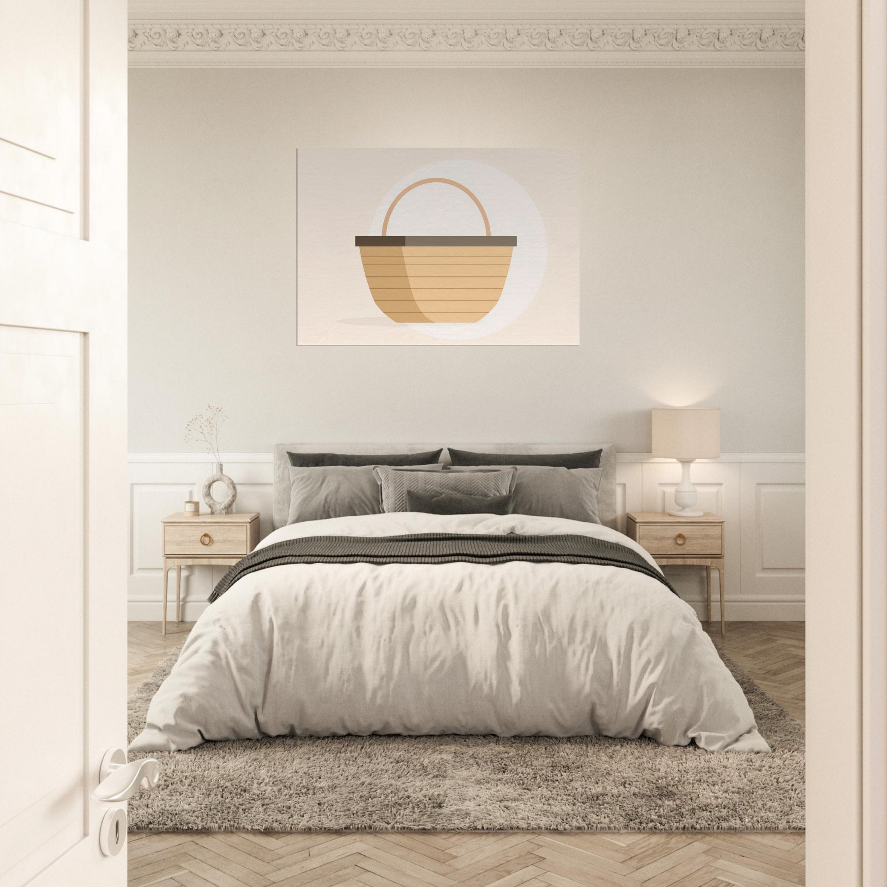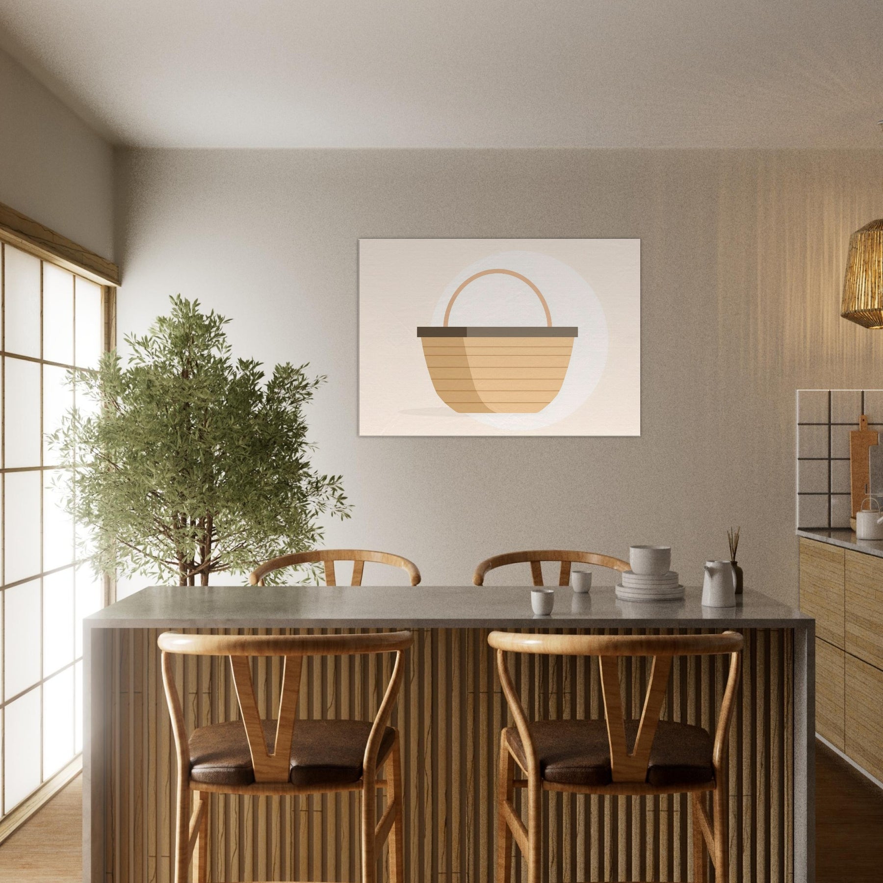 Bamboo Basket radiates quiet warmth, inviting a moment of stillness into any room. In soft, sunlit tones, the minimalist composition traces its curved silhouette and evenly spaced slats, casting delicate shadows that shift with the day. This piece is neither loud nor fussy; it hums with everyday ritual a reminder of mornings gathering light and evenings spent in quiet reflection. Hang it in a living area or entryway to elevate restraint into presence, letting Bamboo Basket breathe ease and grace across the space.