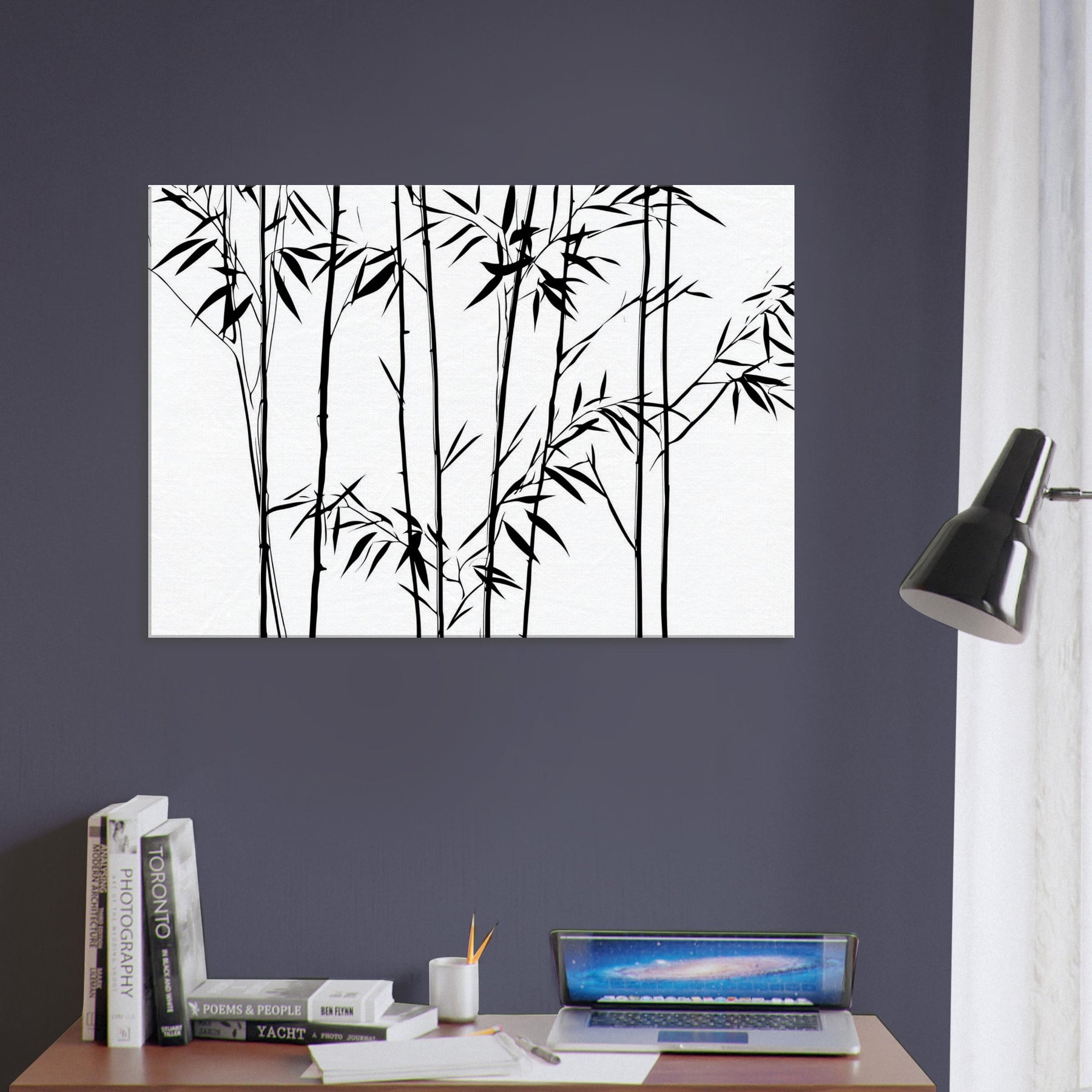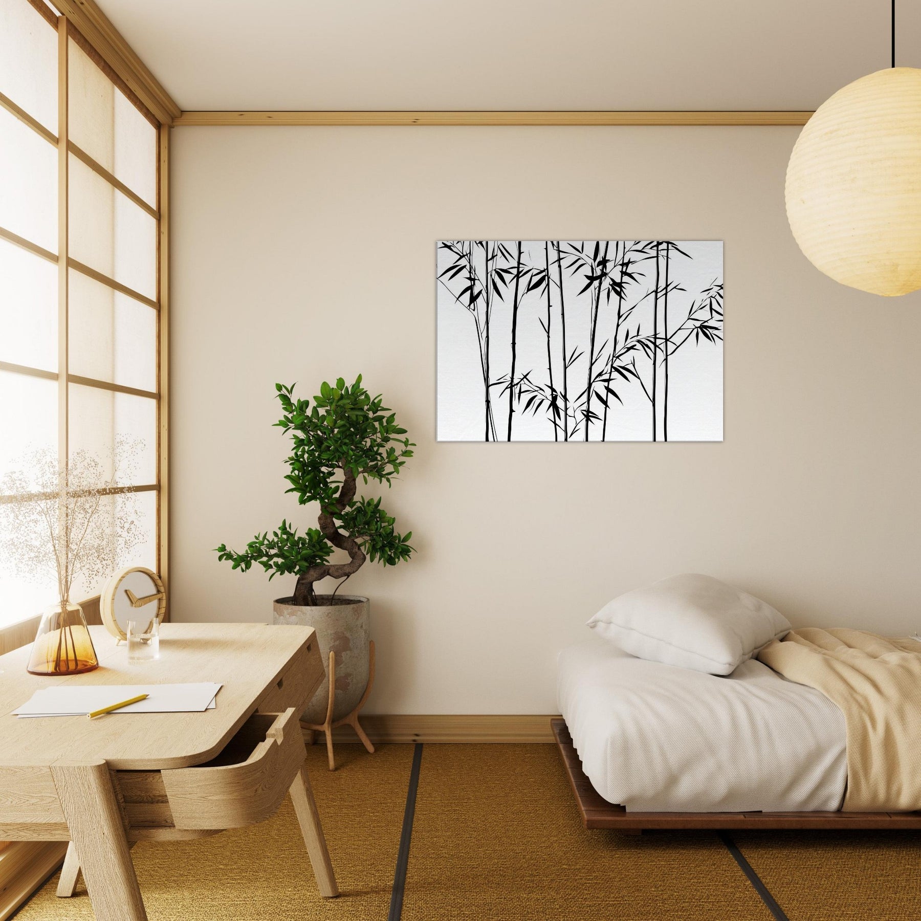 Bamboo Stalks unfurl in a quiet rhythm of line and shadow, inviting calm into the room. This slender, monochrome study of nature captures movement with ink dark silhouettes, turning walls into a gentle canopy. The simplicity of the bamboo stalks hints at resilience and grace, while generous negative space sighs with breath. Hang it where morning light or evening glow can caress the lines, and let the artwork become a subtle focal point that quiets the mind and elevates everyday living.