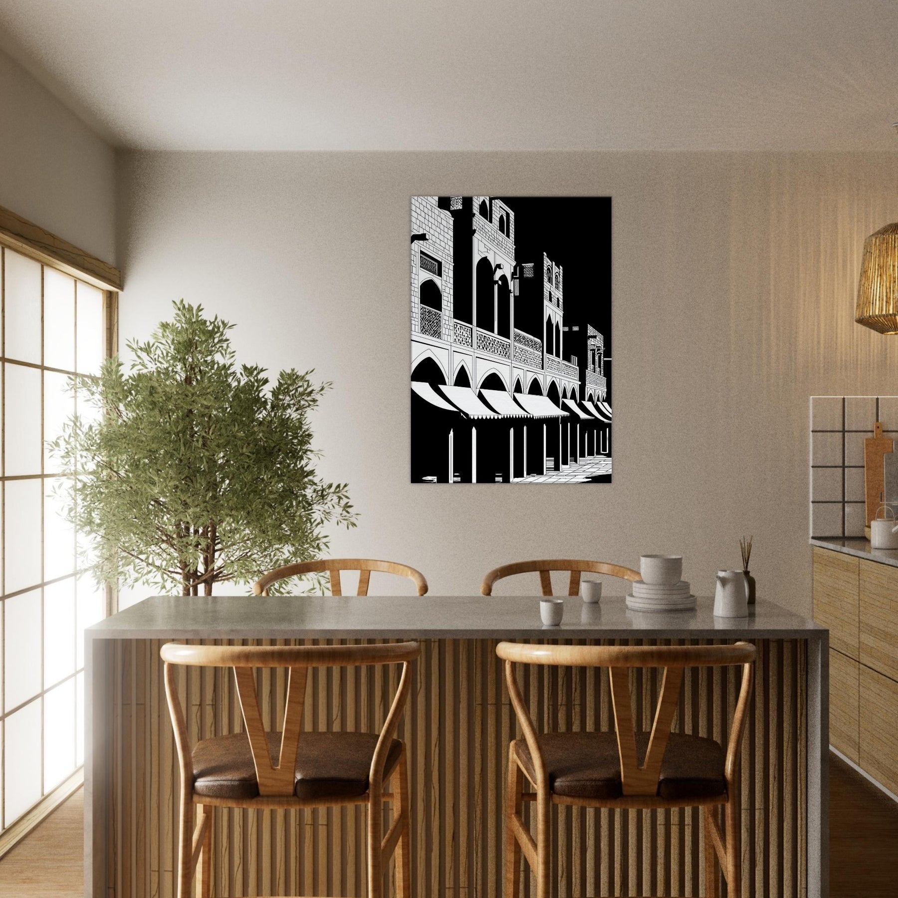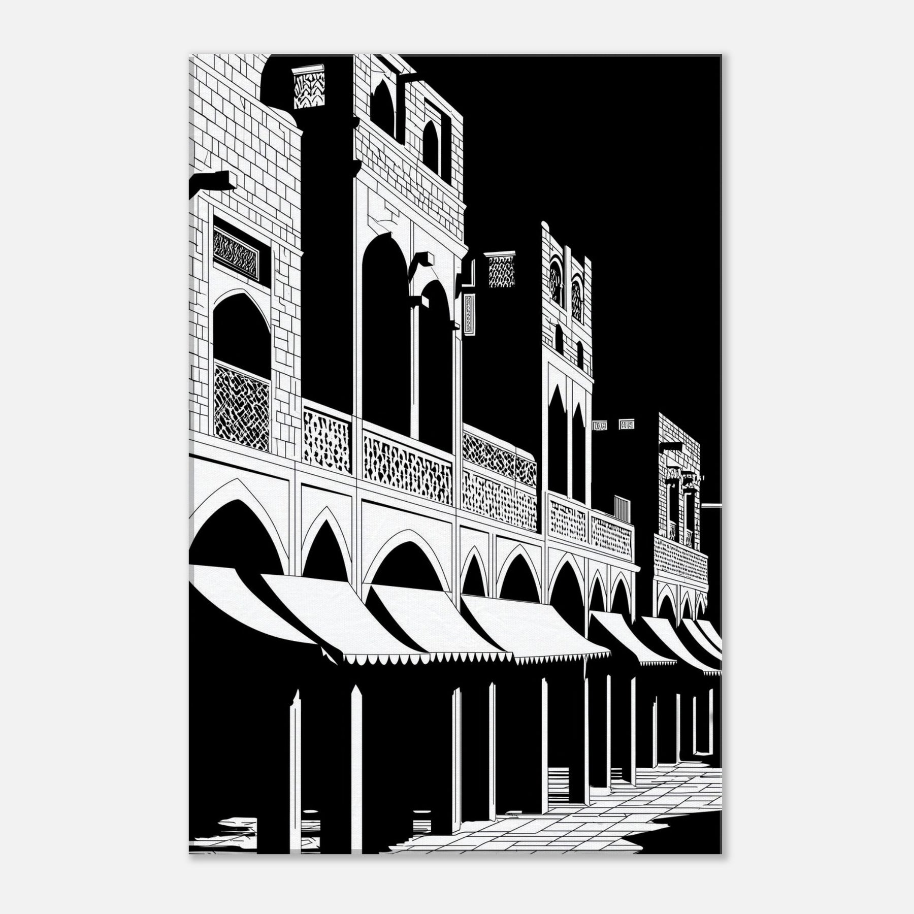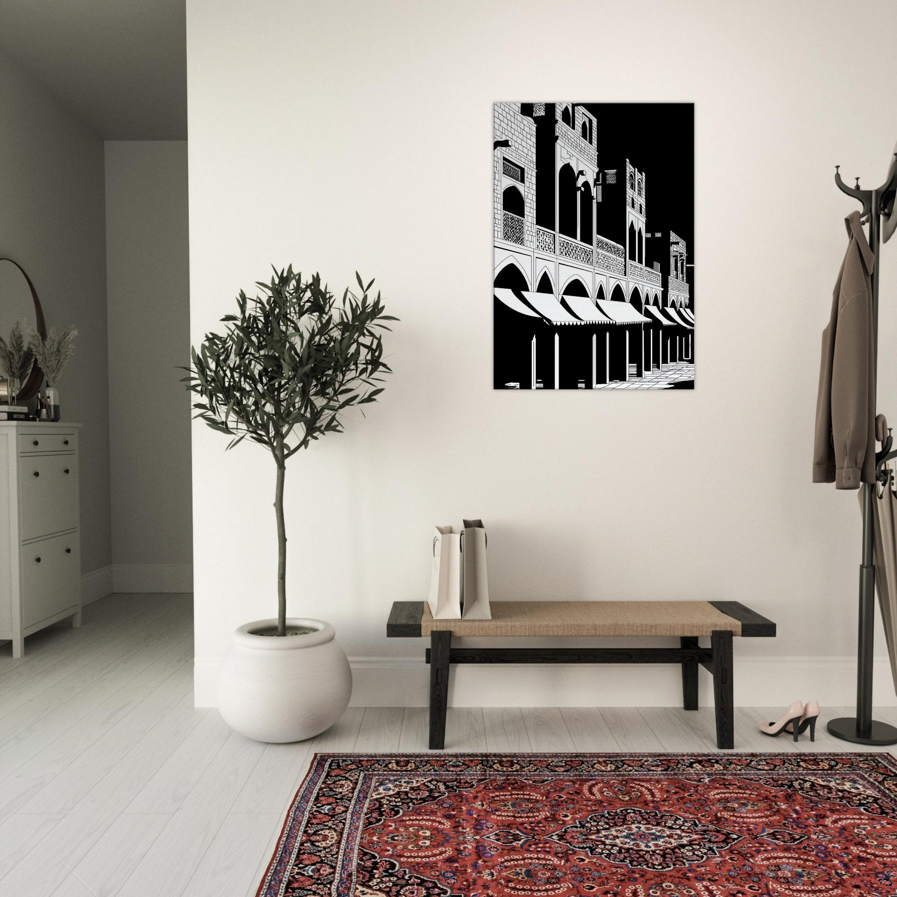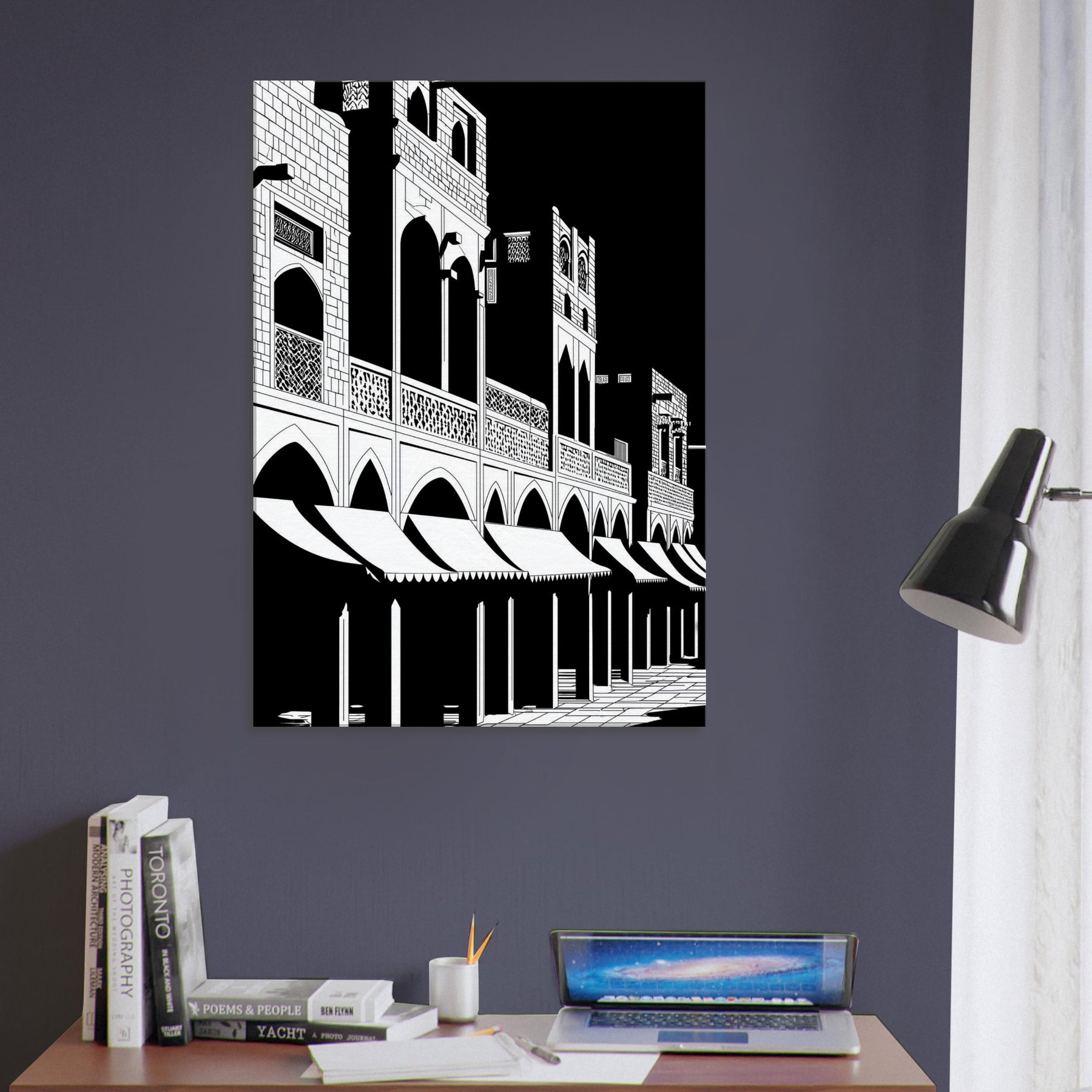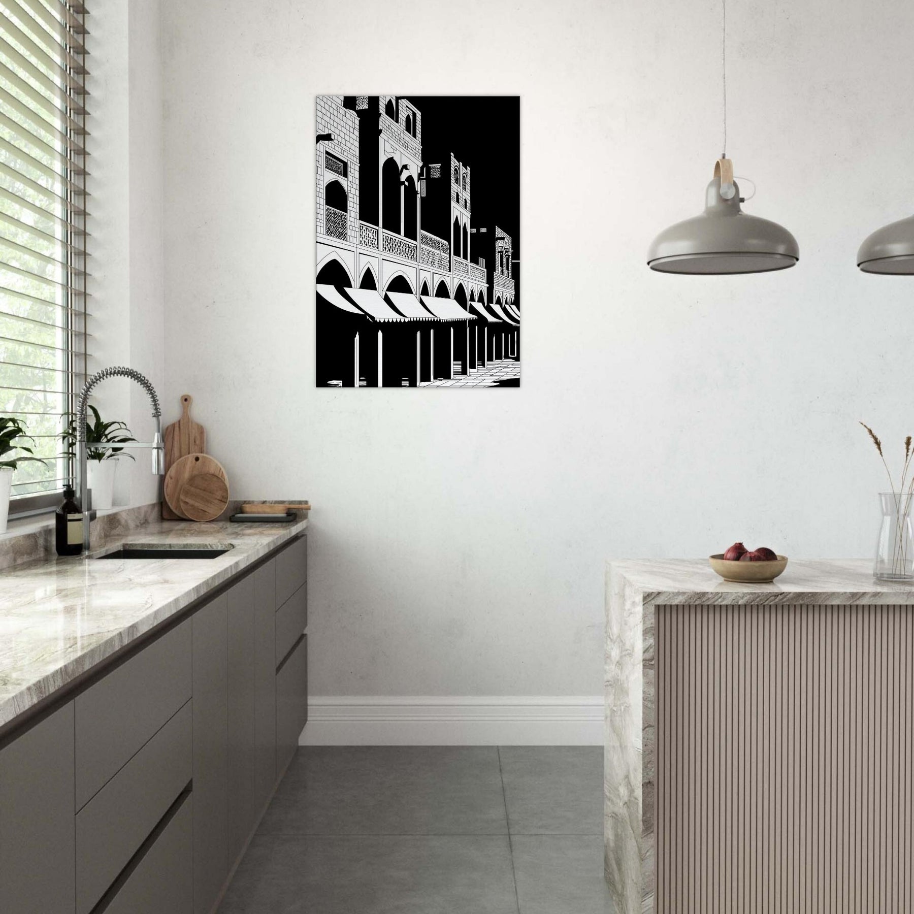 Immerse your space in the quiet grandeur of the Arabian Bazaar, rendered in clean line art that glides across walls like a whispered memory. The architecture arched arcades, balconies, and repeating silhouettes creates a calm rhythm, evoking timeless markets and late day light. In a living room or study, this piece invites quiet focus and expansive space, pairing beautifully with warm woods and soft textures. The Arabian Bazaar line art becomes a conversation starter, a touch of exotic polish without shouting.