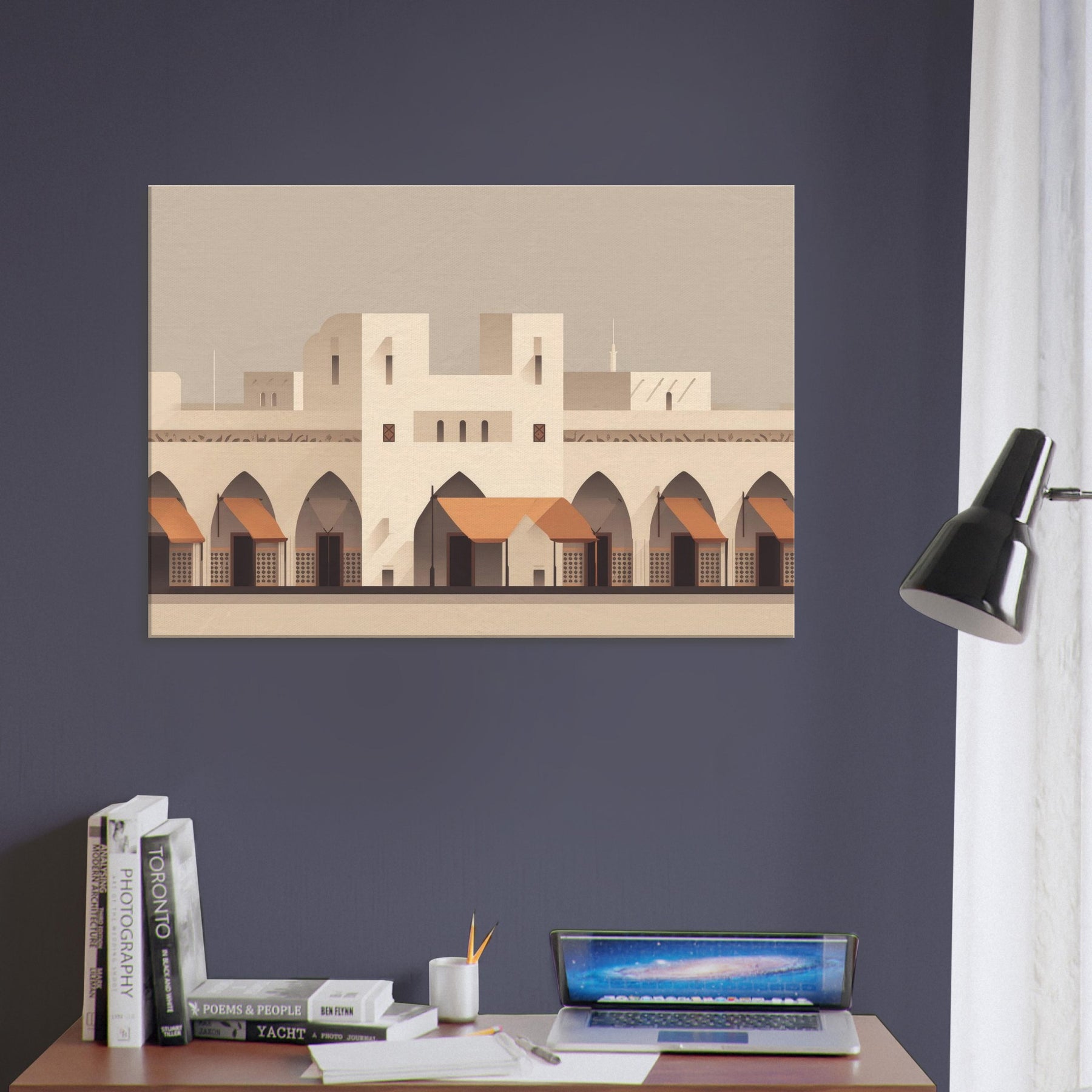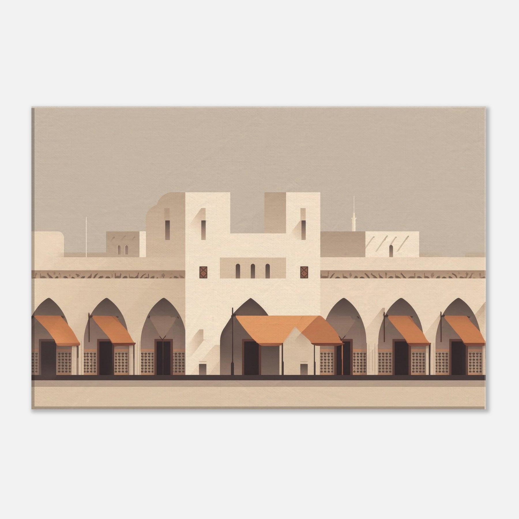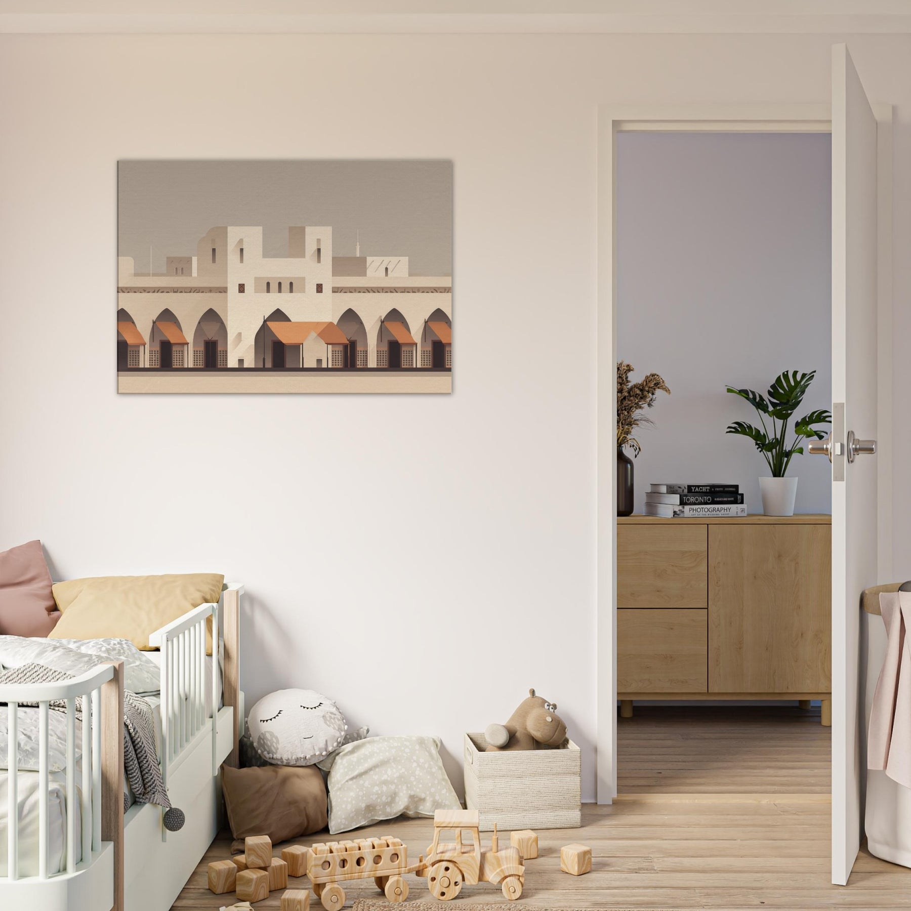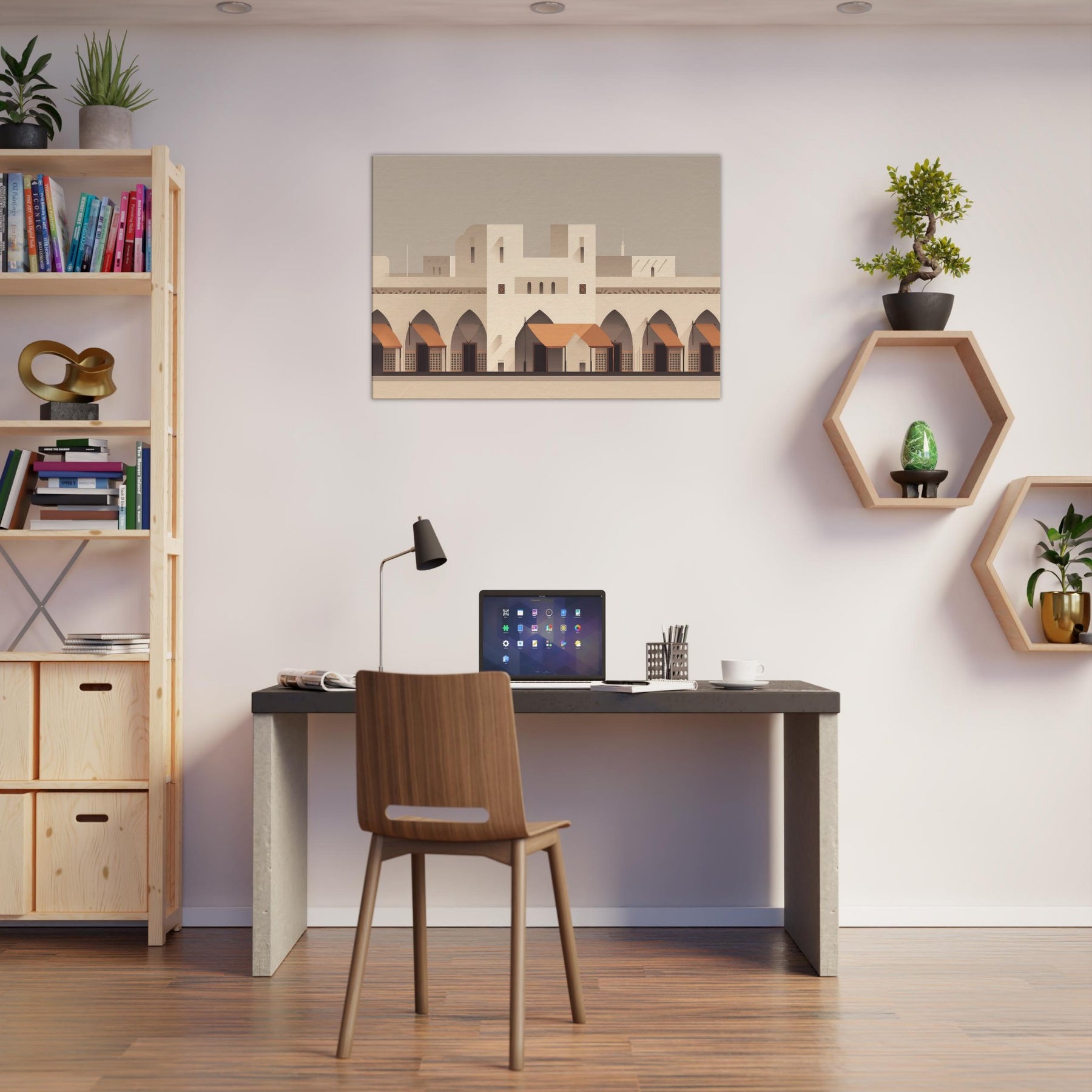 Immerse your living space in the quiet grandeur of the Arabian Bazaar, rendered in a restrained palette of sand, ochre, and ivory. The clean arches and soft horizons invite a calm, meditative mood, as if dawn light spills across the courtyard. Each linear form suggests movement and memory without crowding the room, turning a wall into a window for reflection. This minimalist rendering celebrates timeless architecture, inviting conversations, warmth, and a serene backdrop for everyday moments.