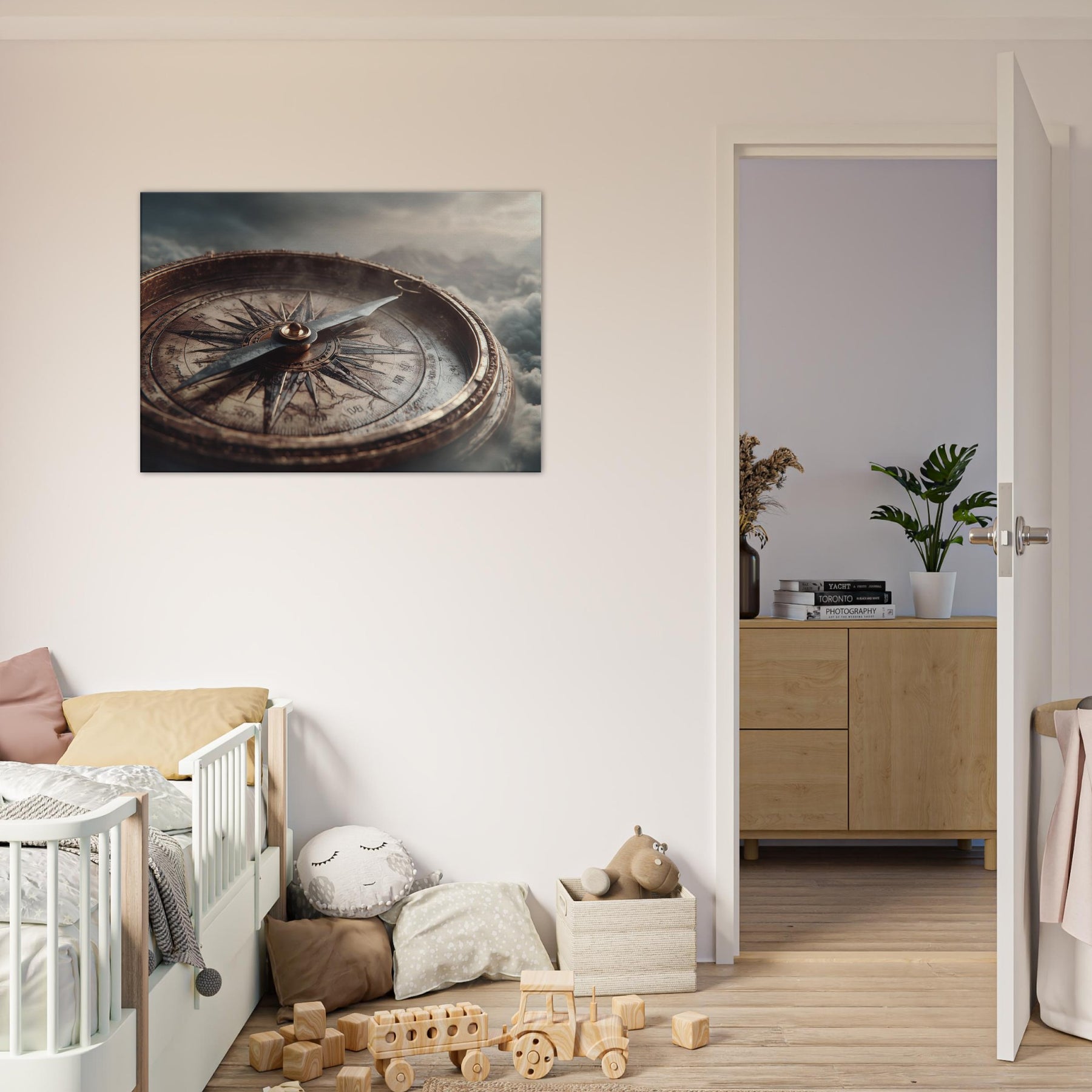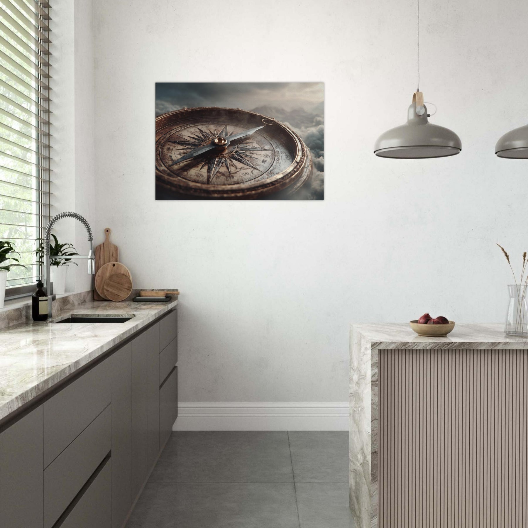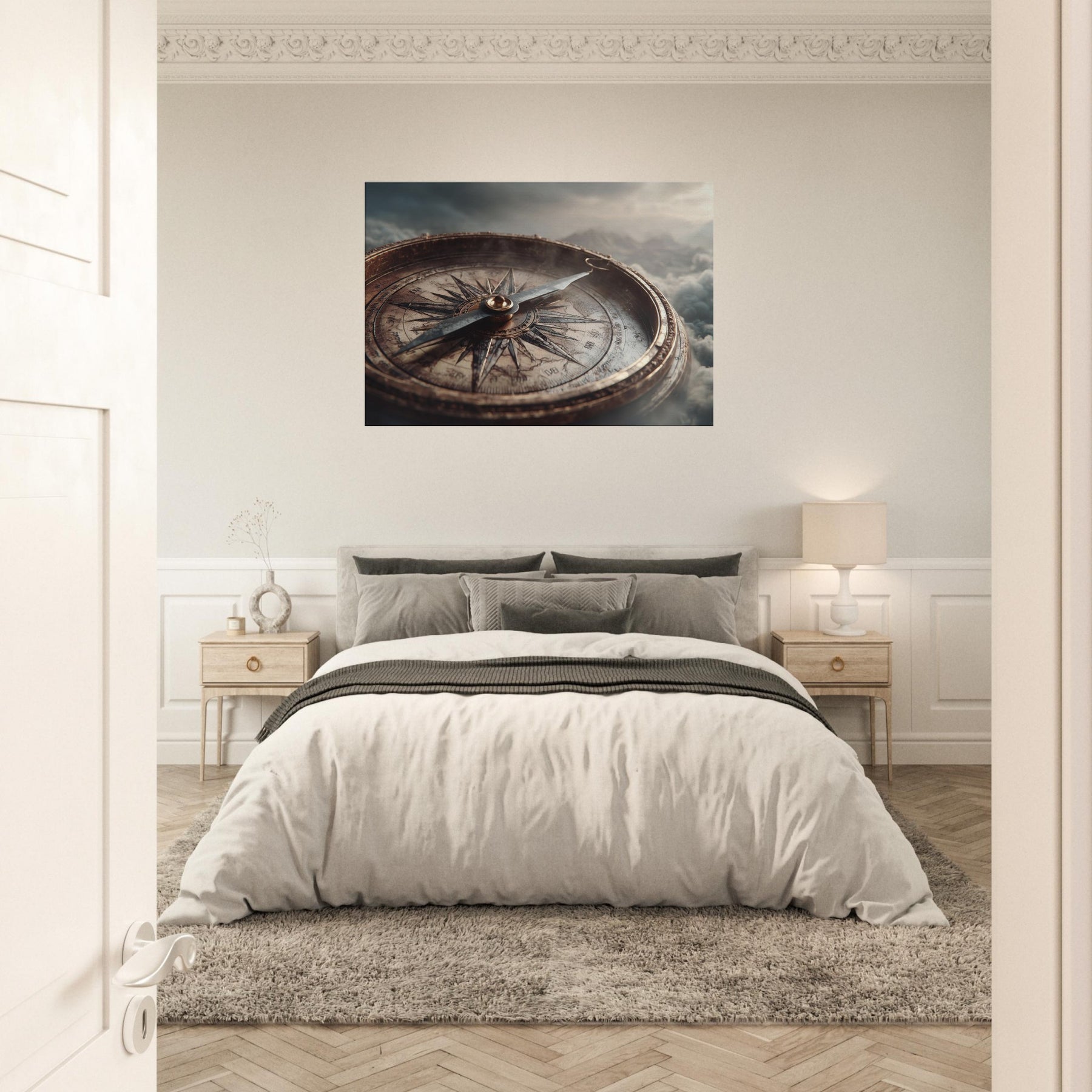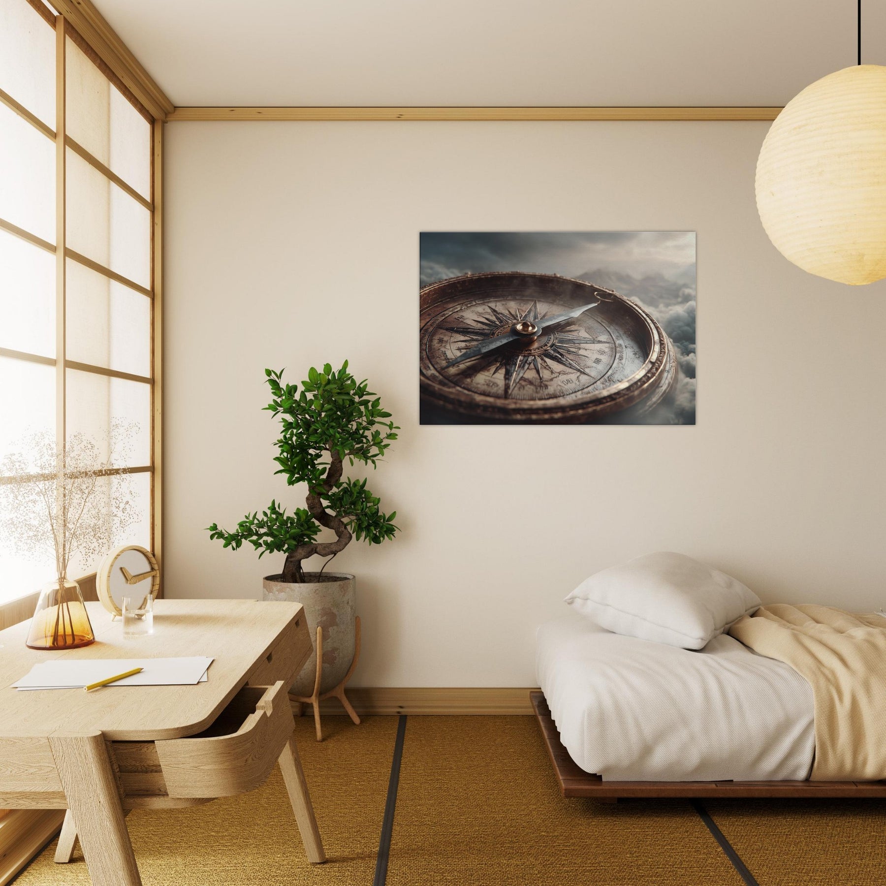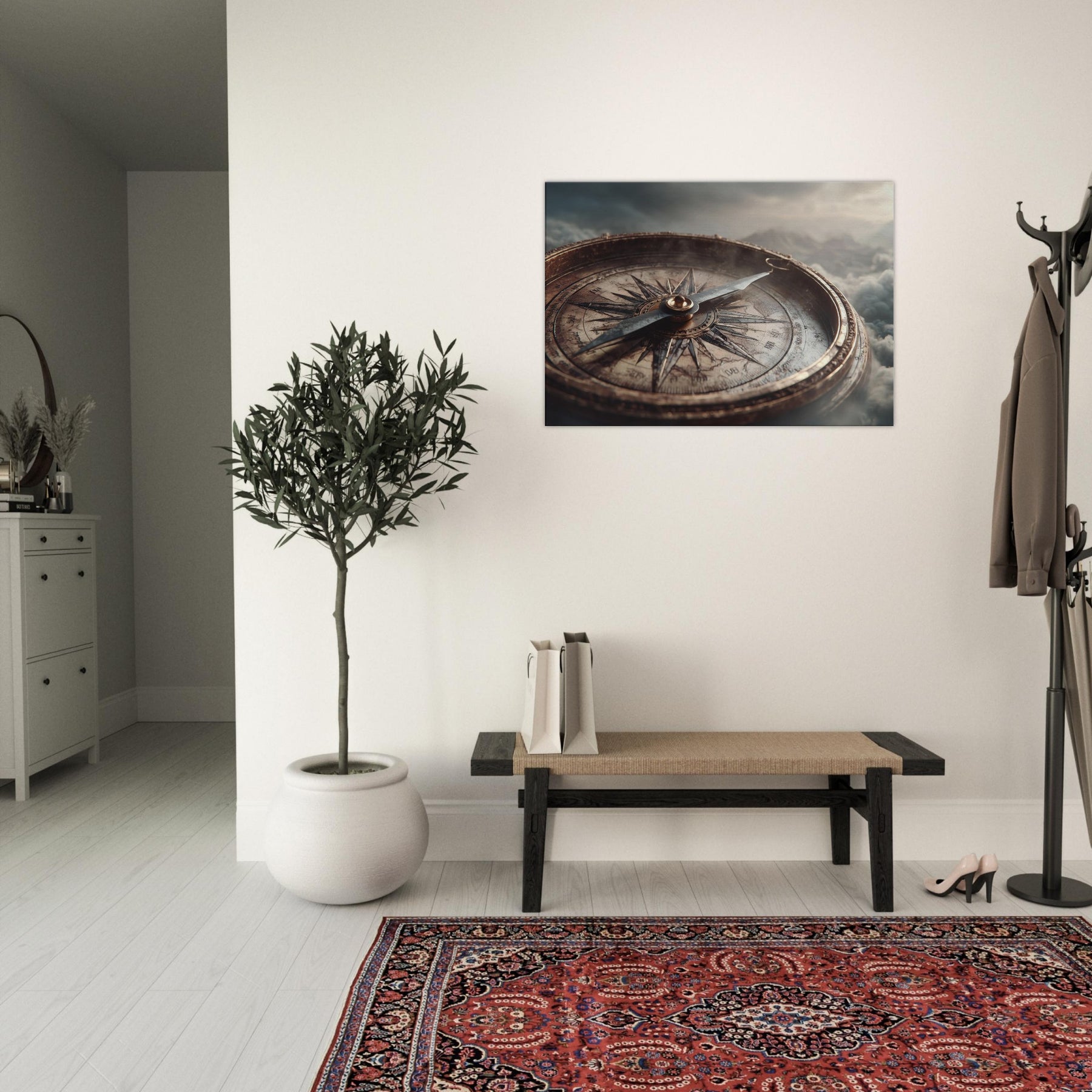 This surreal Compass invites stillness into a modern space, turning navigation into a meditation. The brass dial seems to hover above a veiled horizon, its spokes extending like sunbursts through a clouded sky. Each etched symbol whispers of distant routes and inner directions, guiding the eye with a gentle gravity. Hang it in a living room or study, and the atmosphere shifts from routine to horizon touched possibility a quiet invitation to slow down, breathe, and choose your next turning point.