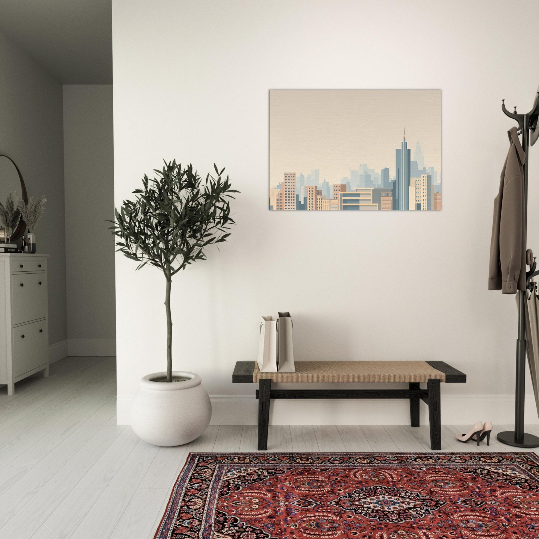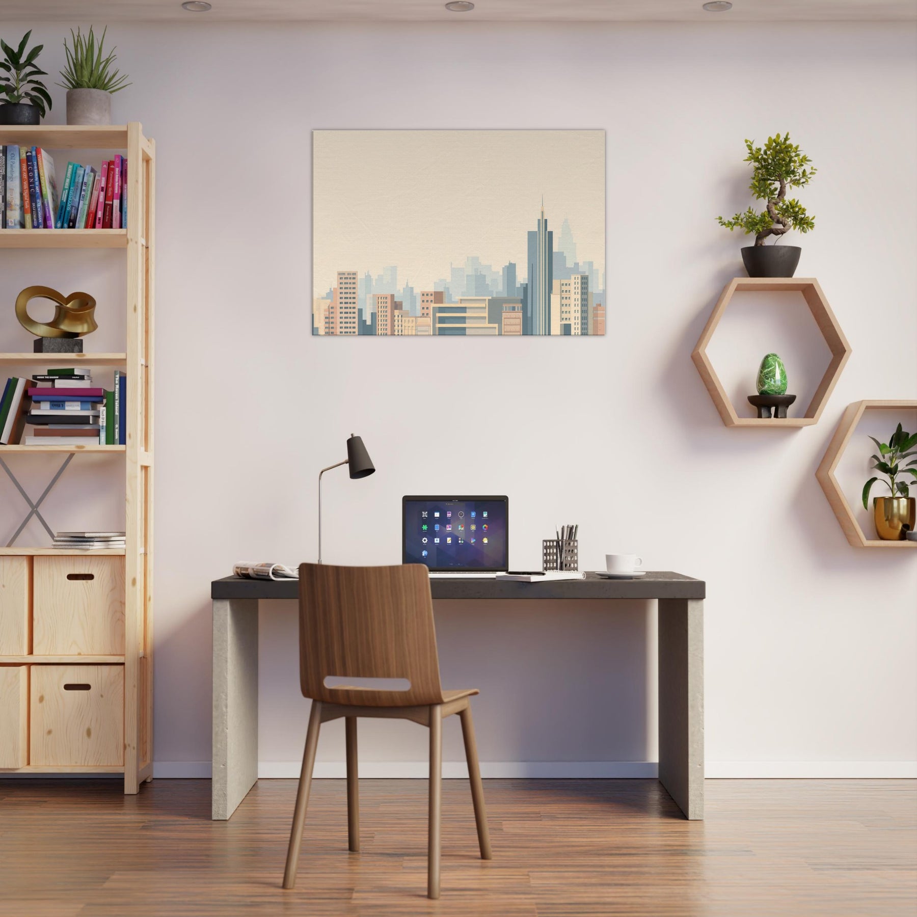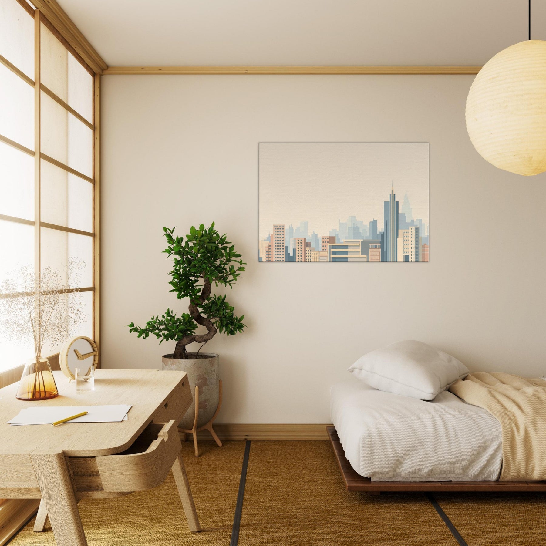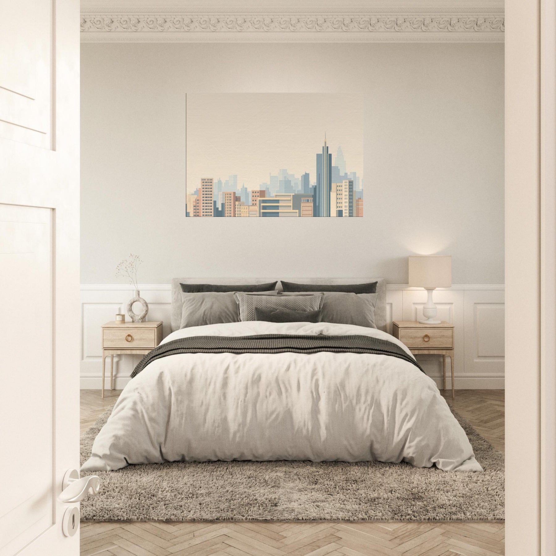 An essential line drawing of Cairo unfurls in soft, sun washed tones. The skyline simplifies into calm planes and slender spires, inviting the eye to rest where the city breathes in quiet. This minimalist cityscape carries the warmth of early light, the hush of a morning street, and the precise geometry of towers and rooftops. Hung in a living room or bedroom, it becomes a tranquil horizon balm for conversation, a focal point that enriches space with atmosphere, memory, and timeless urban poetry.