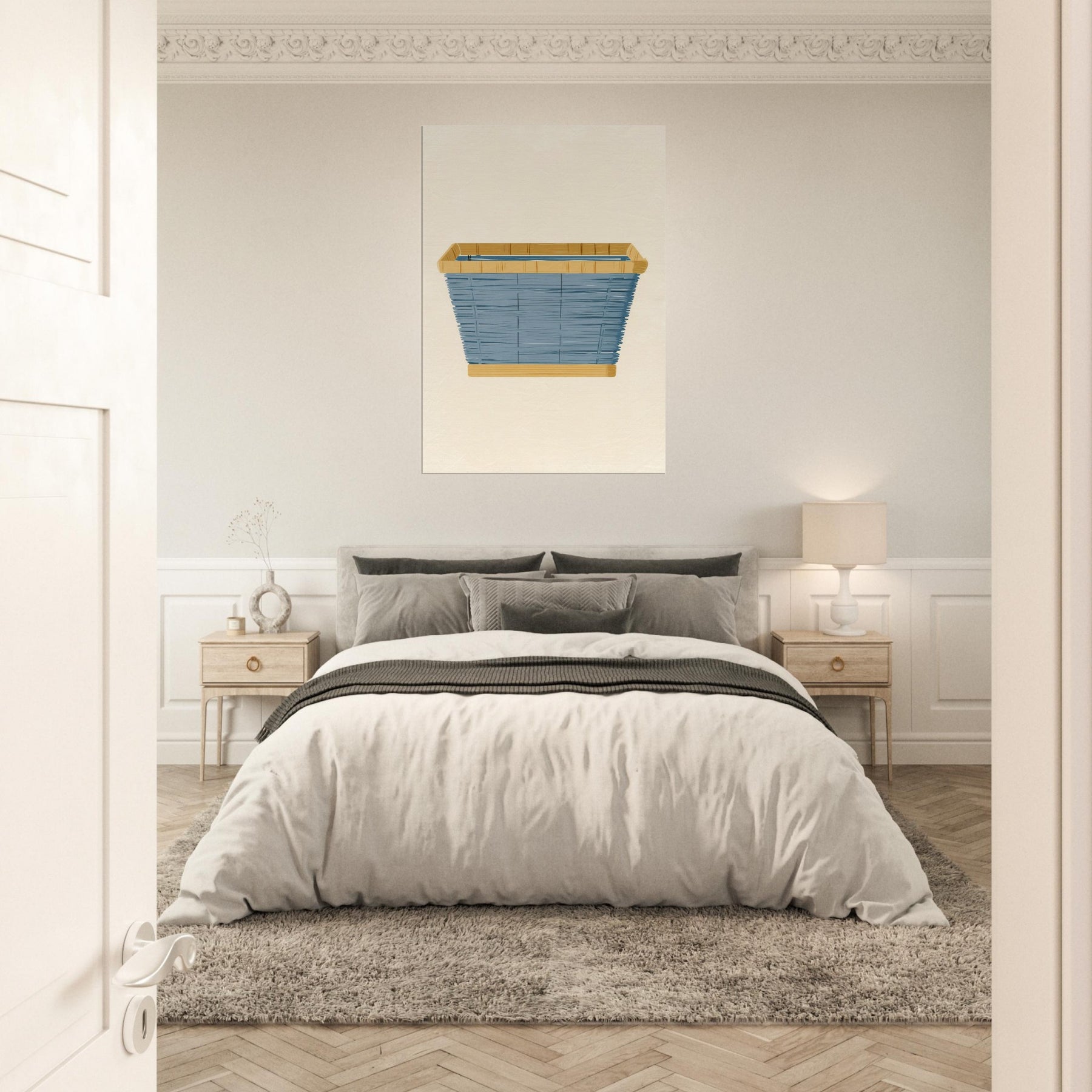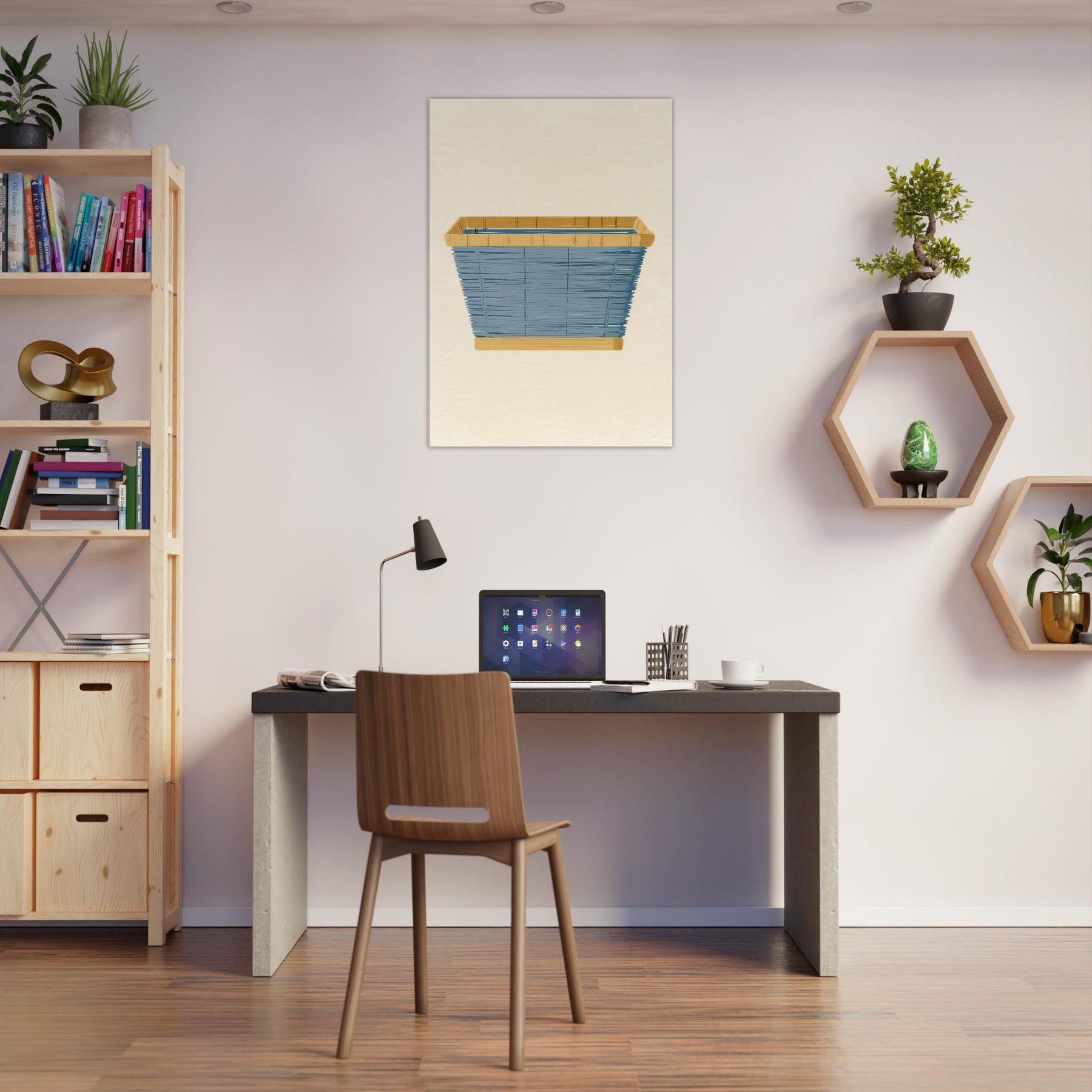 Like a quiet breath rendered in geometry, this Bamboo Basket rests with serene elegance. Its slender, woven bands in blue gray contrast softly with warm wood tones and pale walls, shaping a gentle focal point without shouting. The minimalist form invites slow, contemplative viewing and shifts the mood of a room toward calm, collected space. Place it beside a window to catch seasonal light or in a reading nook to soften shadows; the Bamboo Basket turns everyday living into a quiet ritual.