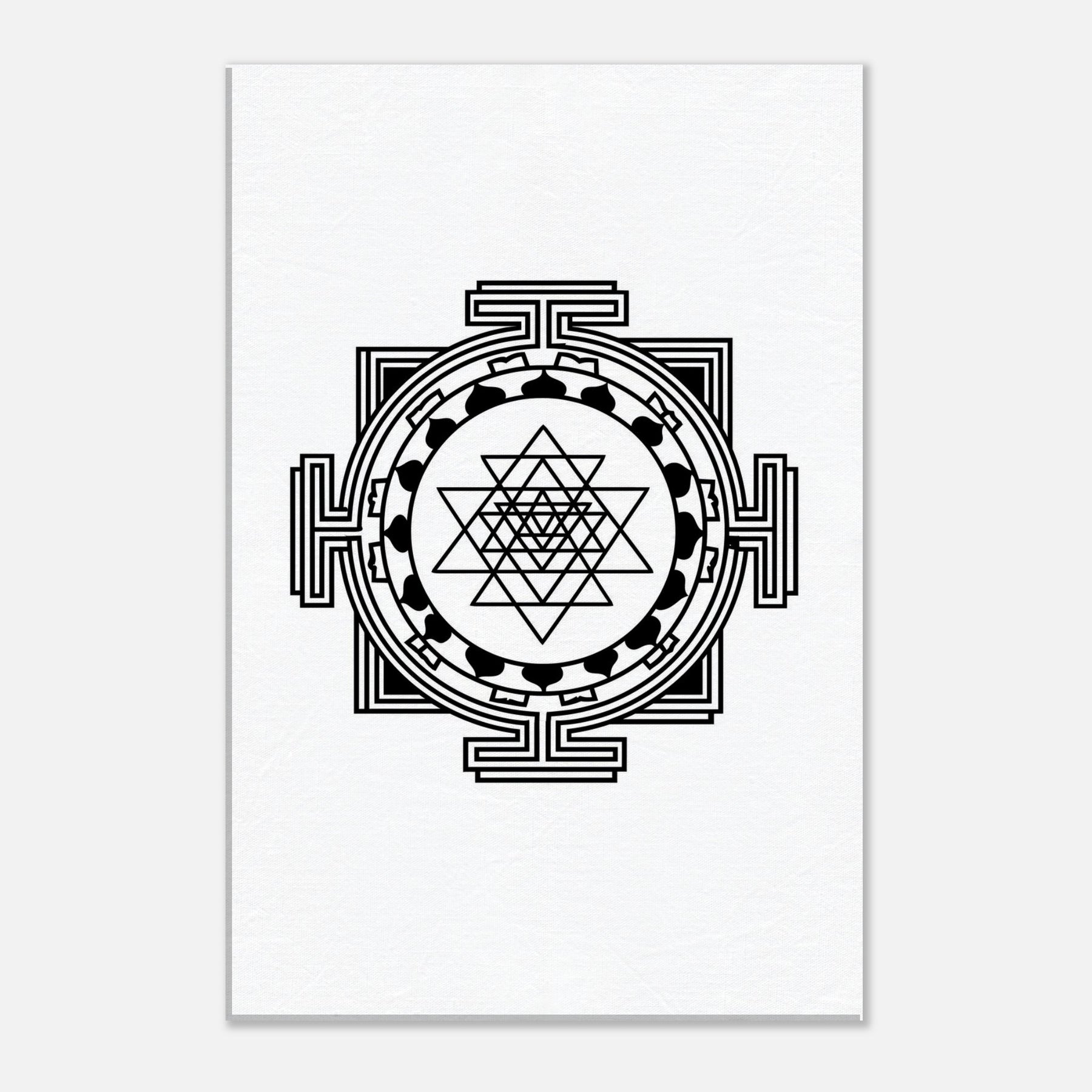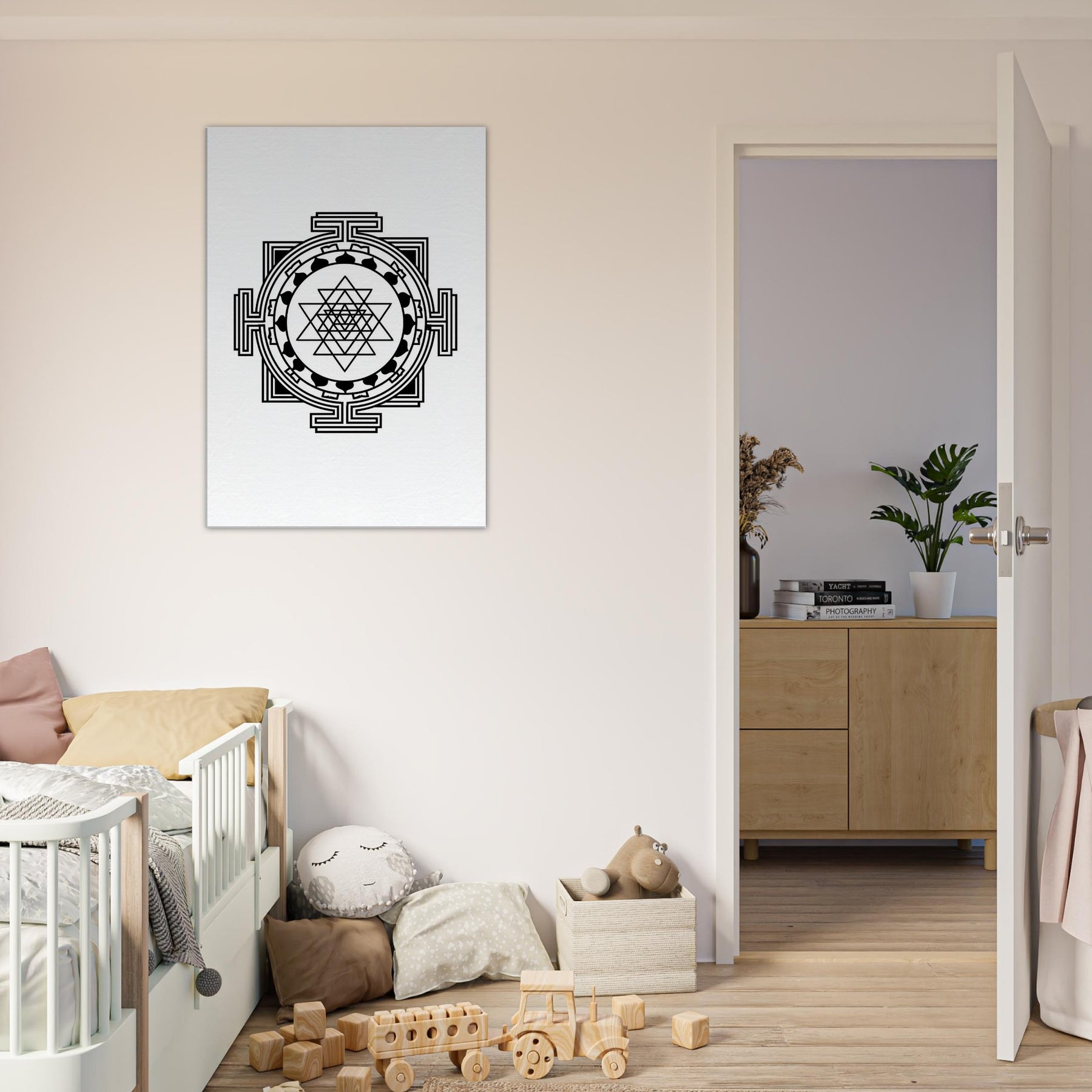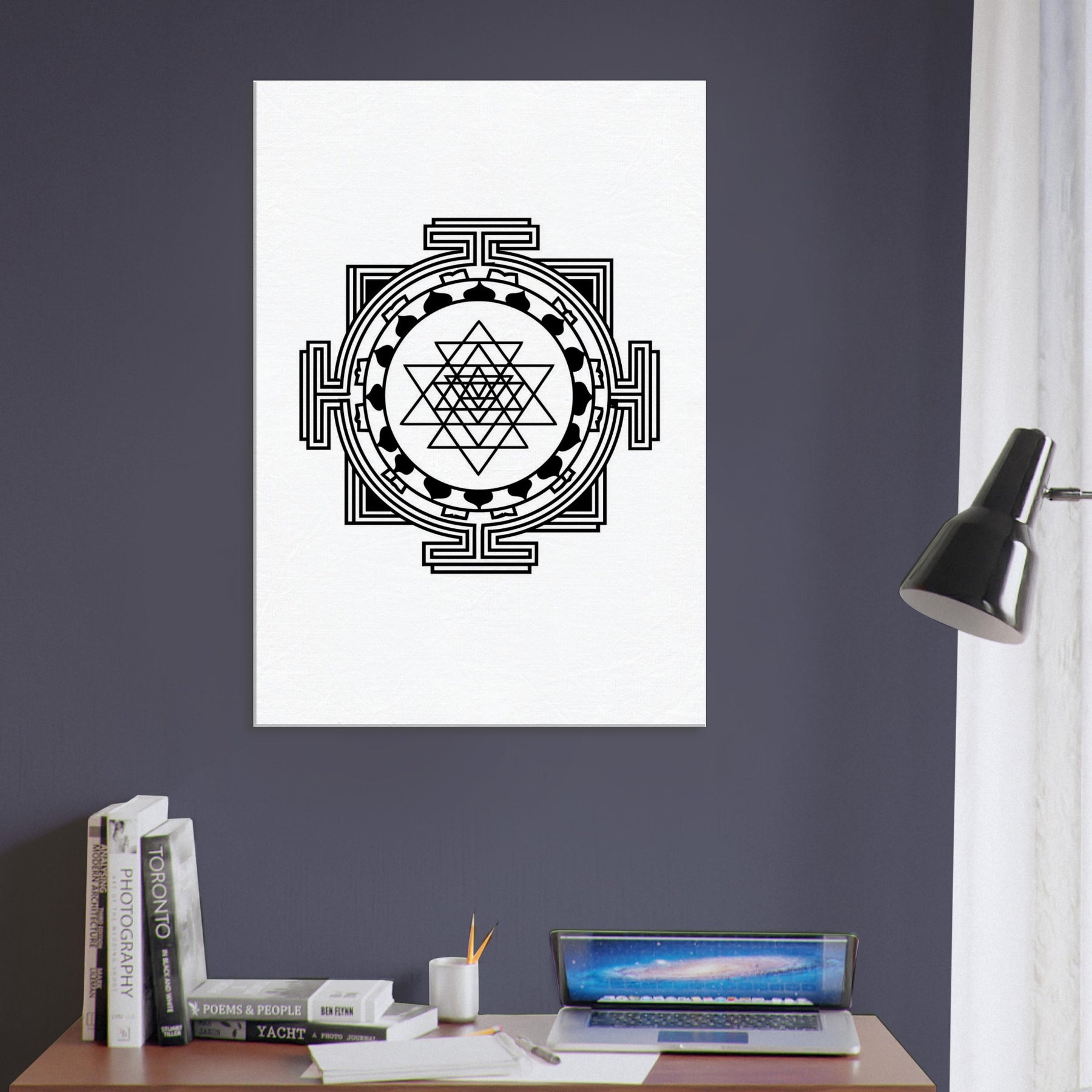 Rendered in delicate line art, this Sri Yantra invites stillness into the room, a whispered focal point that refines any living space with its precise symmetry. The concentric circles and interlocking triangles unfold like a breath, tracing a path from bustle to quiet, from daylight to candlelight. Printed in stark black and white, it becomes a modern meditation calming walls, sparking contemplation, and inviting slower moments. Hang it where light meets shadow and watch the atmosphere shift into clarity, balance, and subtle wonder.