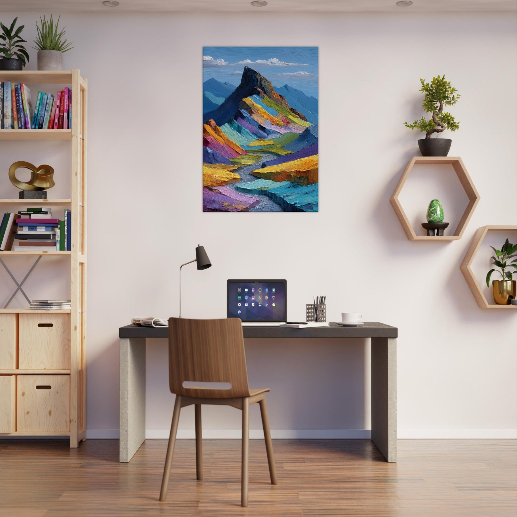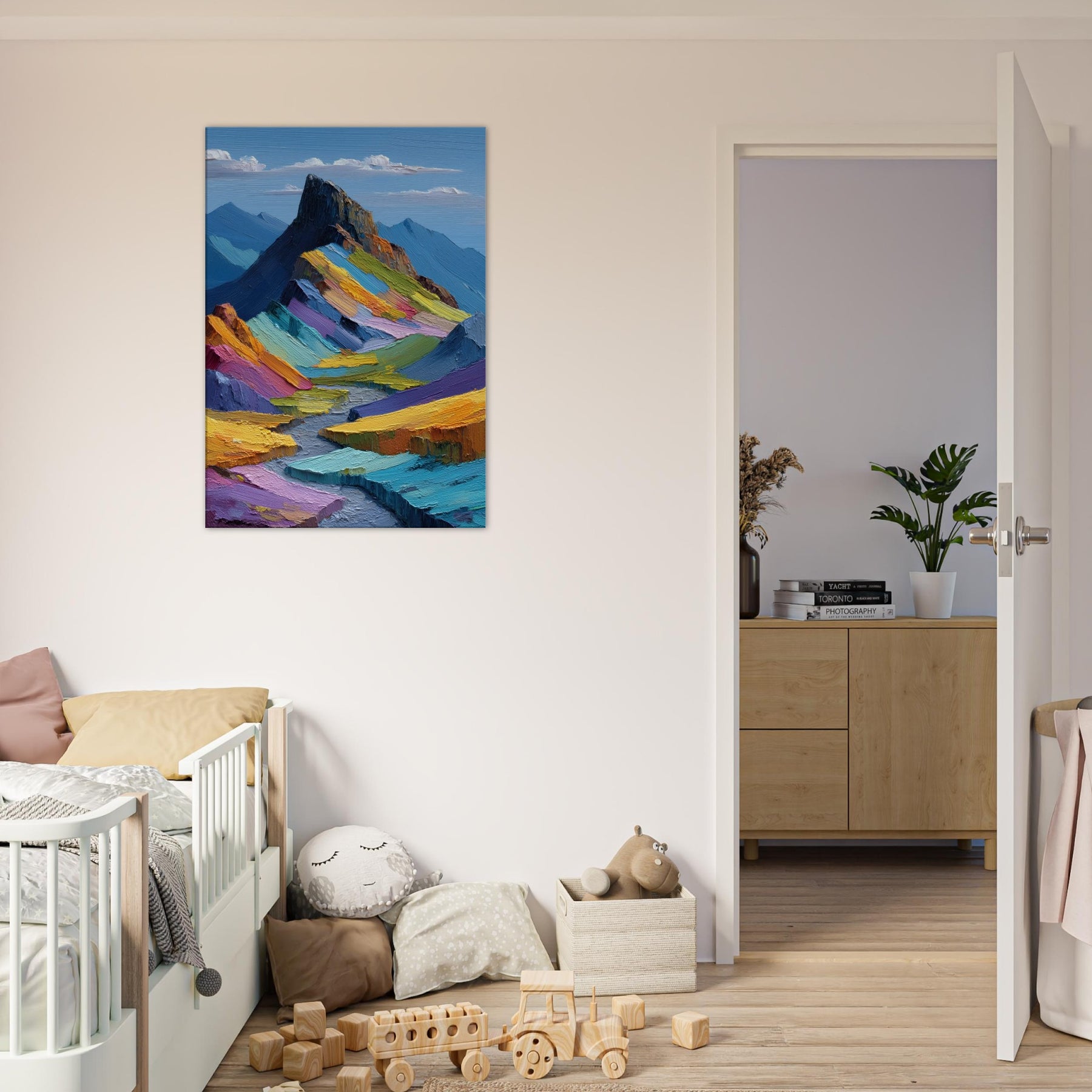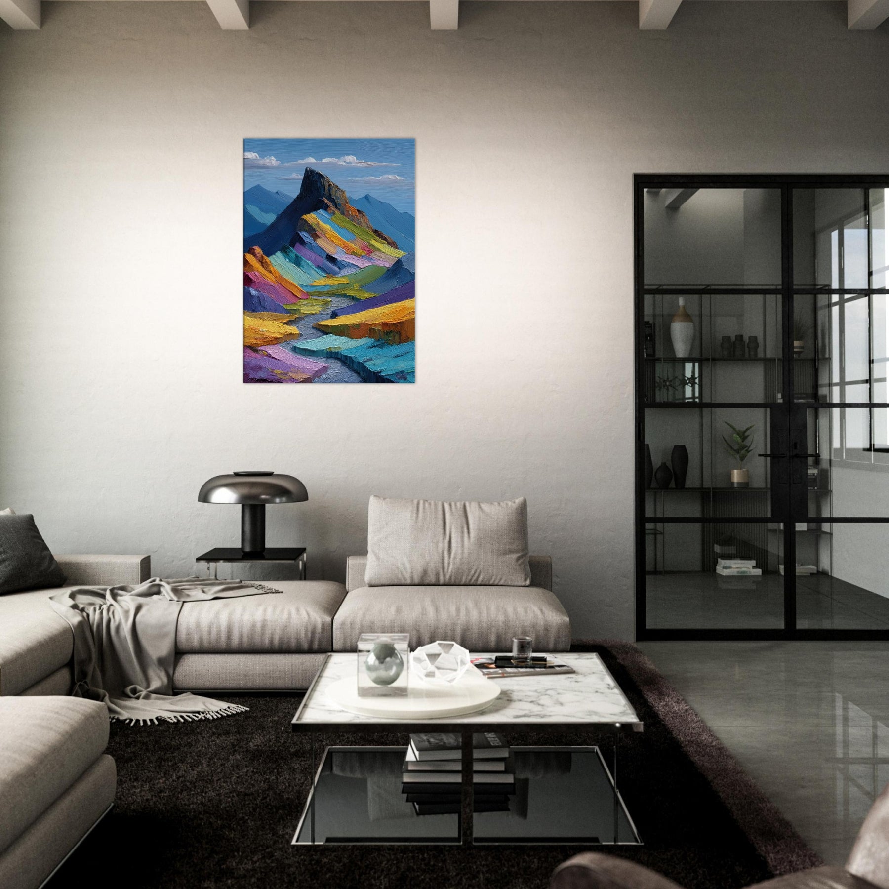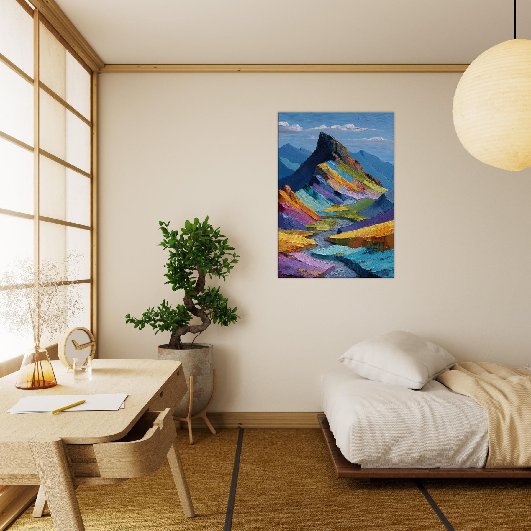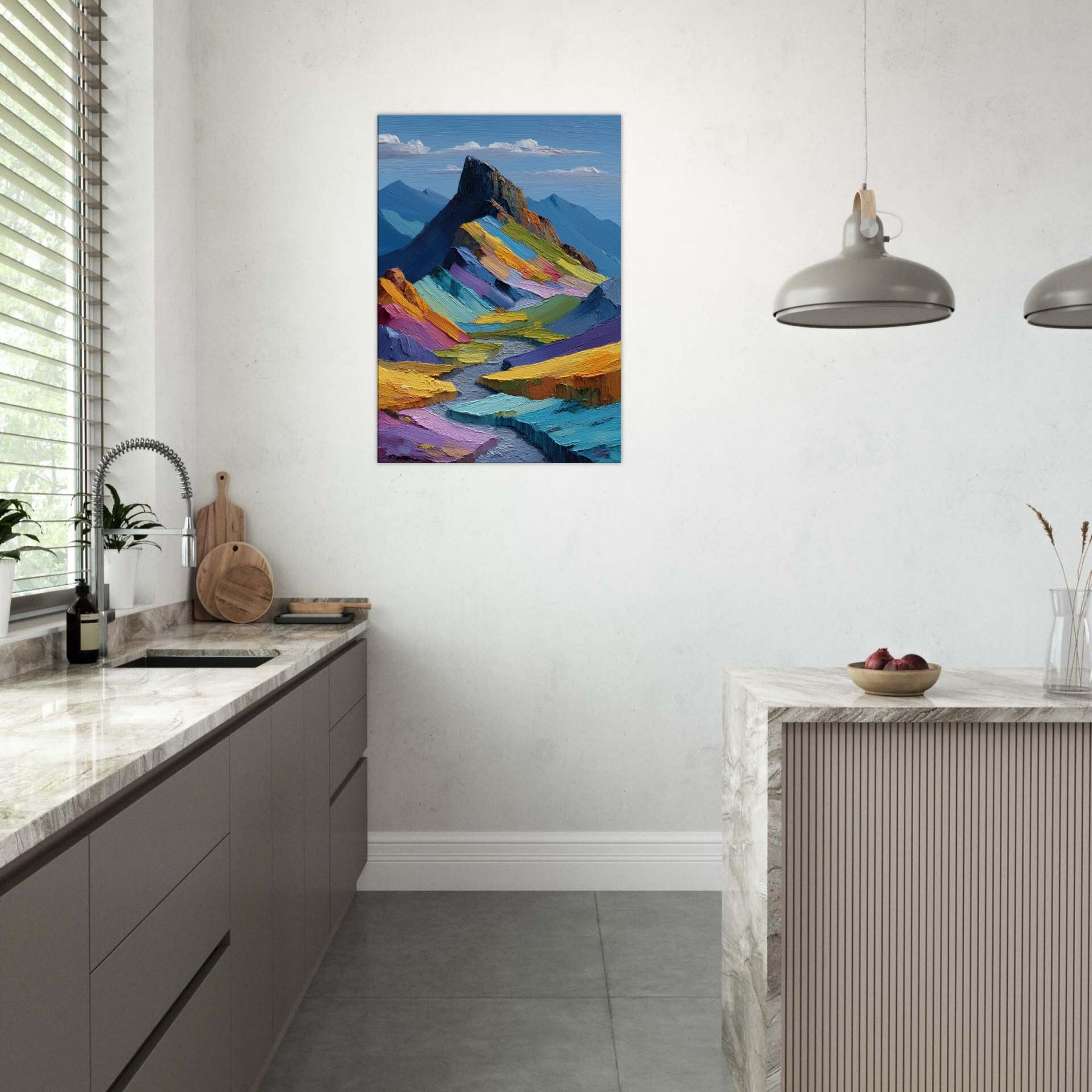Let your space breathe with the luminous reckoning of Hills transformed into color. This abstract seethes with bold planes and undulating textures, where warm ochres mingle with cool blues and magentas. The composition hums with movement, as if the Hills are shifting under a living light, inviting calm focus and playful curiosity. Hang it in a lounge or bedroom to add depth, vibrancy, and a subtle, nature inspired energy that enriches conversation and atmosphere.