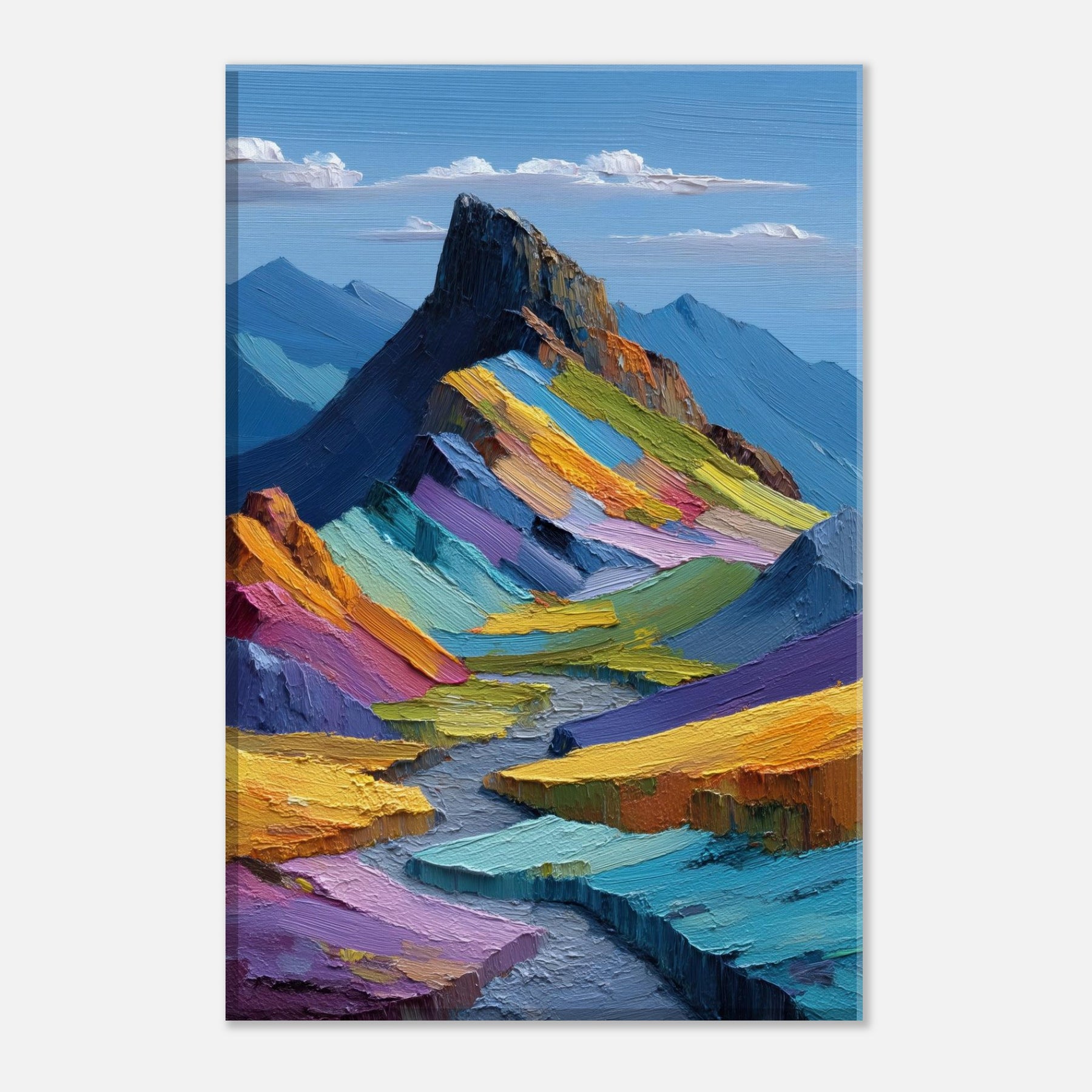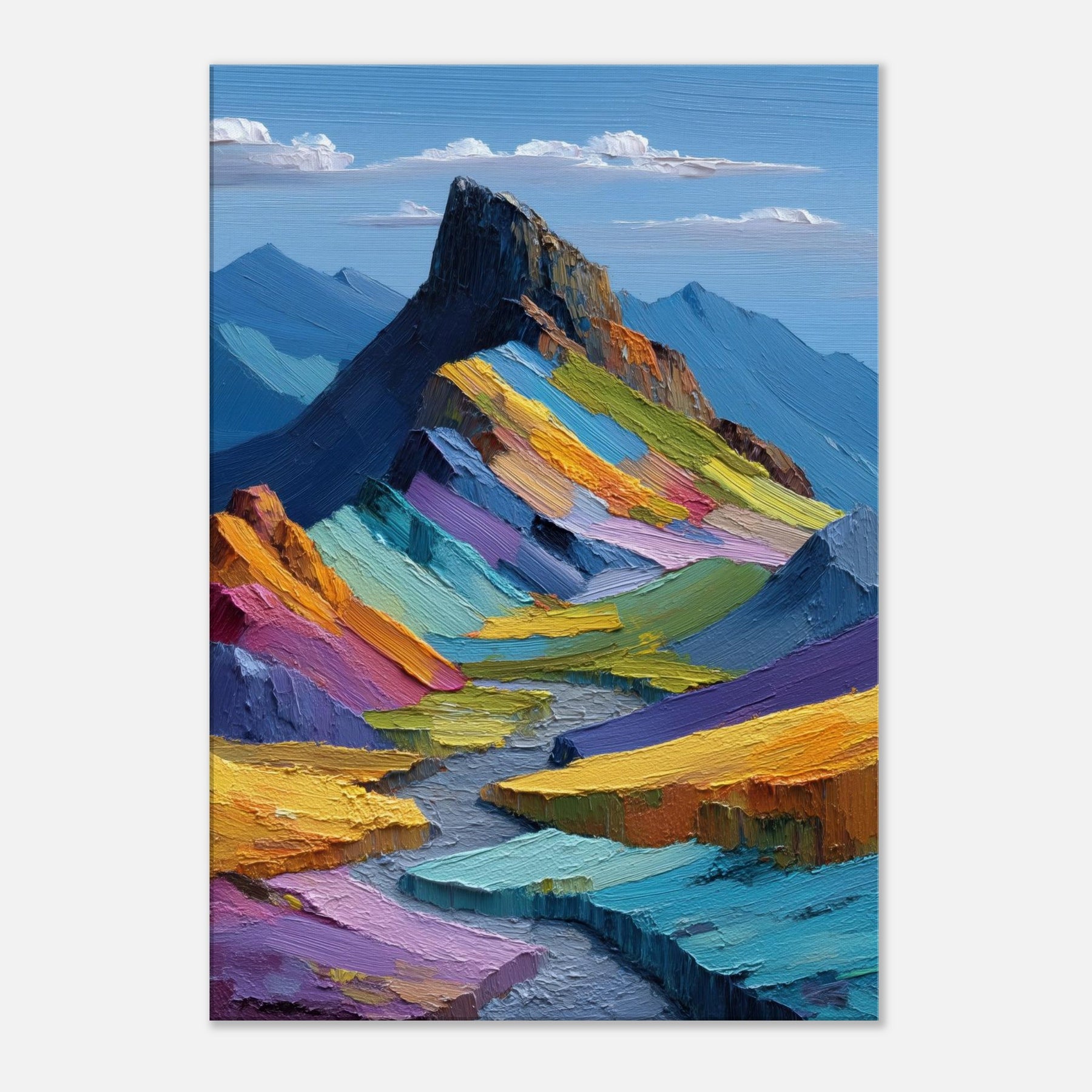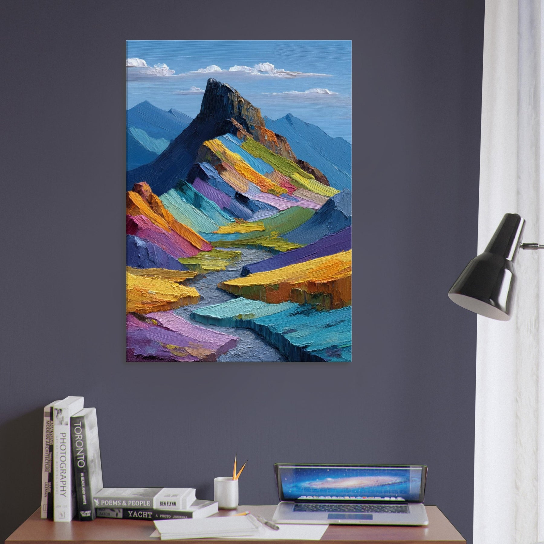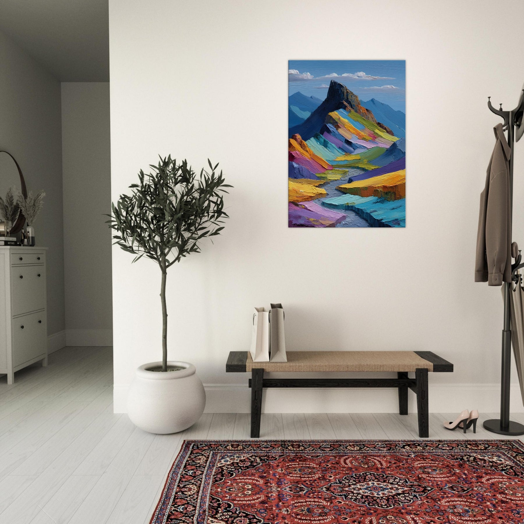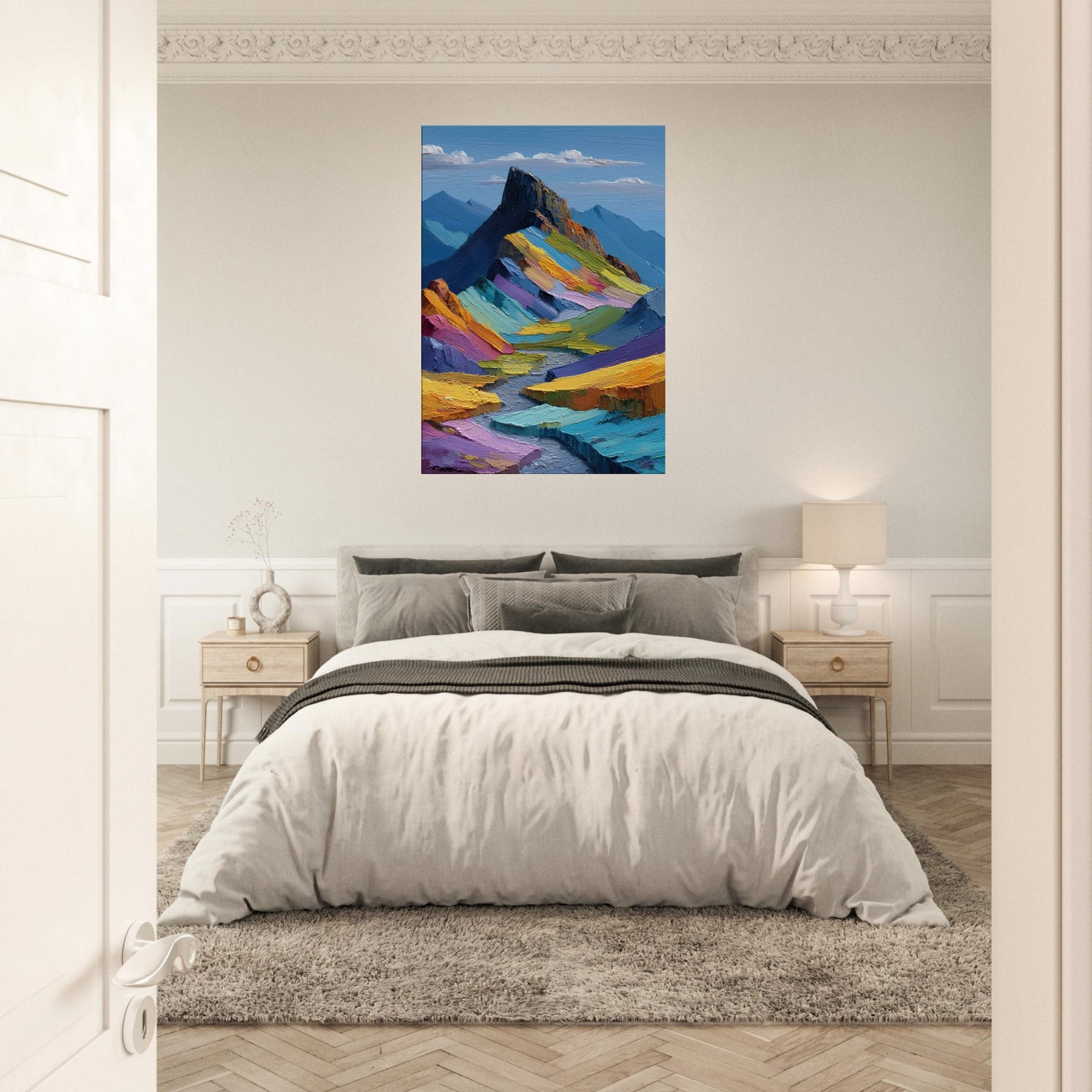 Let your space breathe with the luminous reckoning of Hills transformed into color. This abstract seethes with bold planes and undulating textures, where warm ochres mingle with cool blues and magentas. The composition hums with movement, as if the Hills are shifting under a living light, inviting calm focus and playful curiosity. Hang it in a lounge or bedroom to add depth, vibrancy, and a subtle, nature inspired energy that enriches conversation and atmosphere.