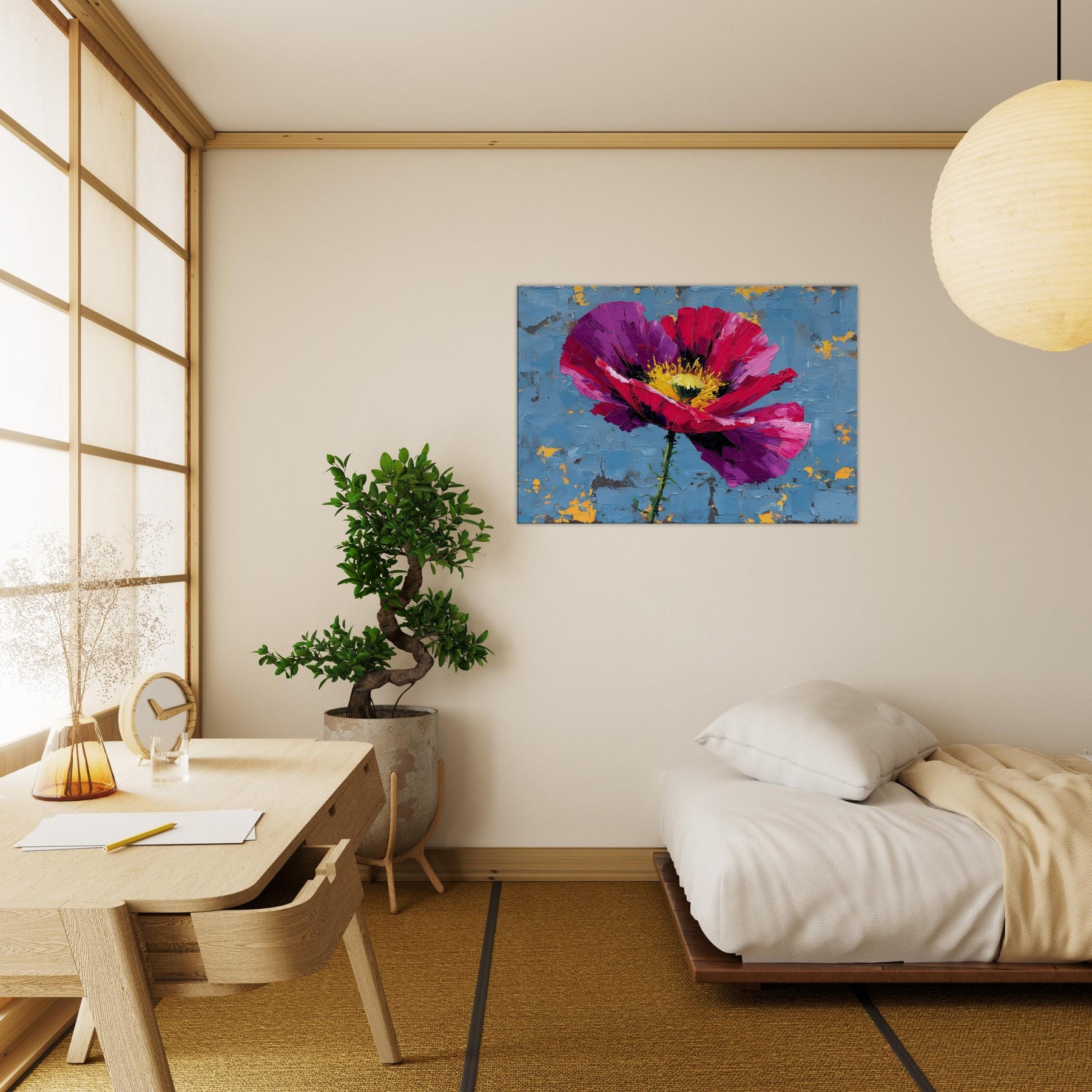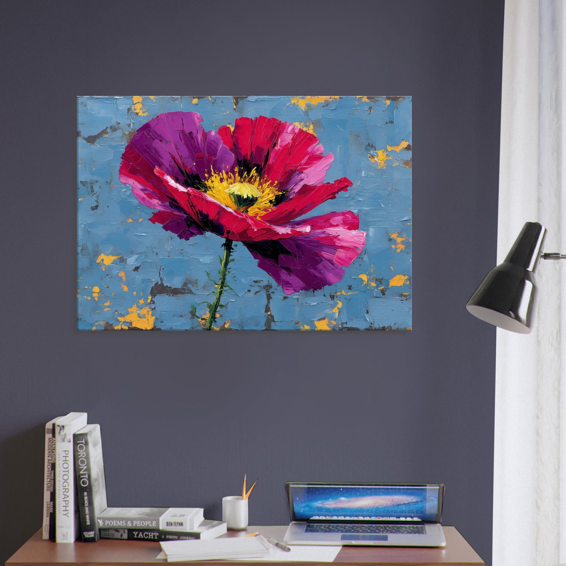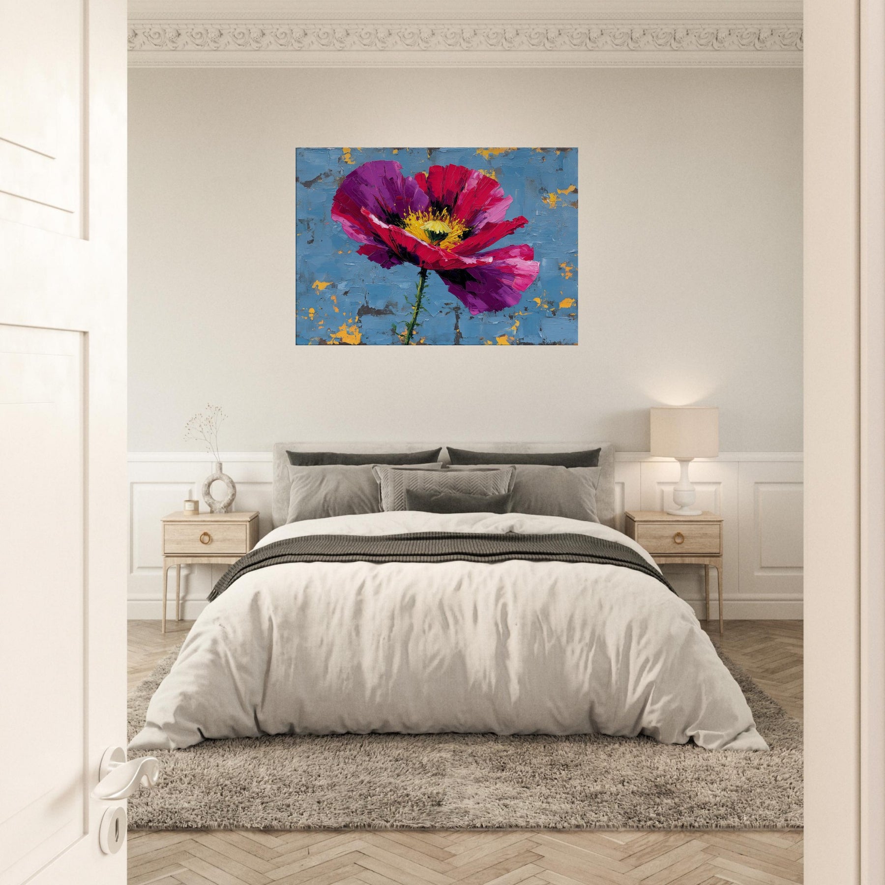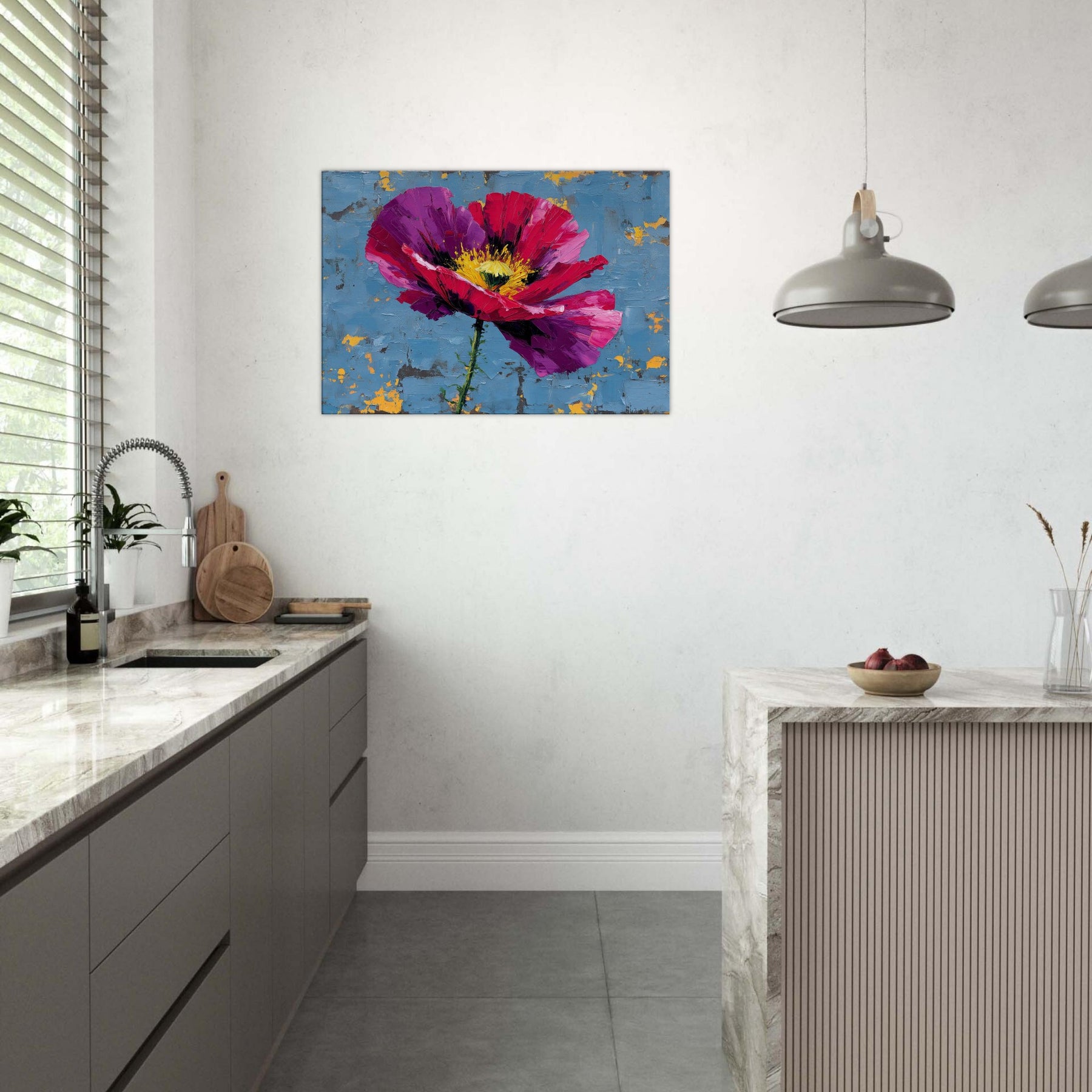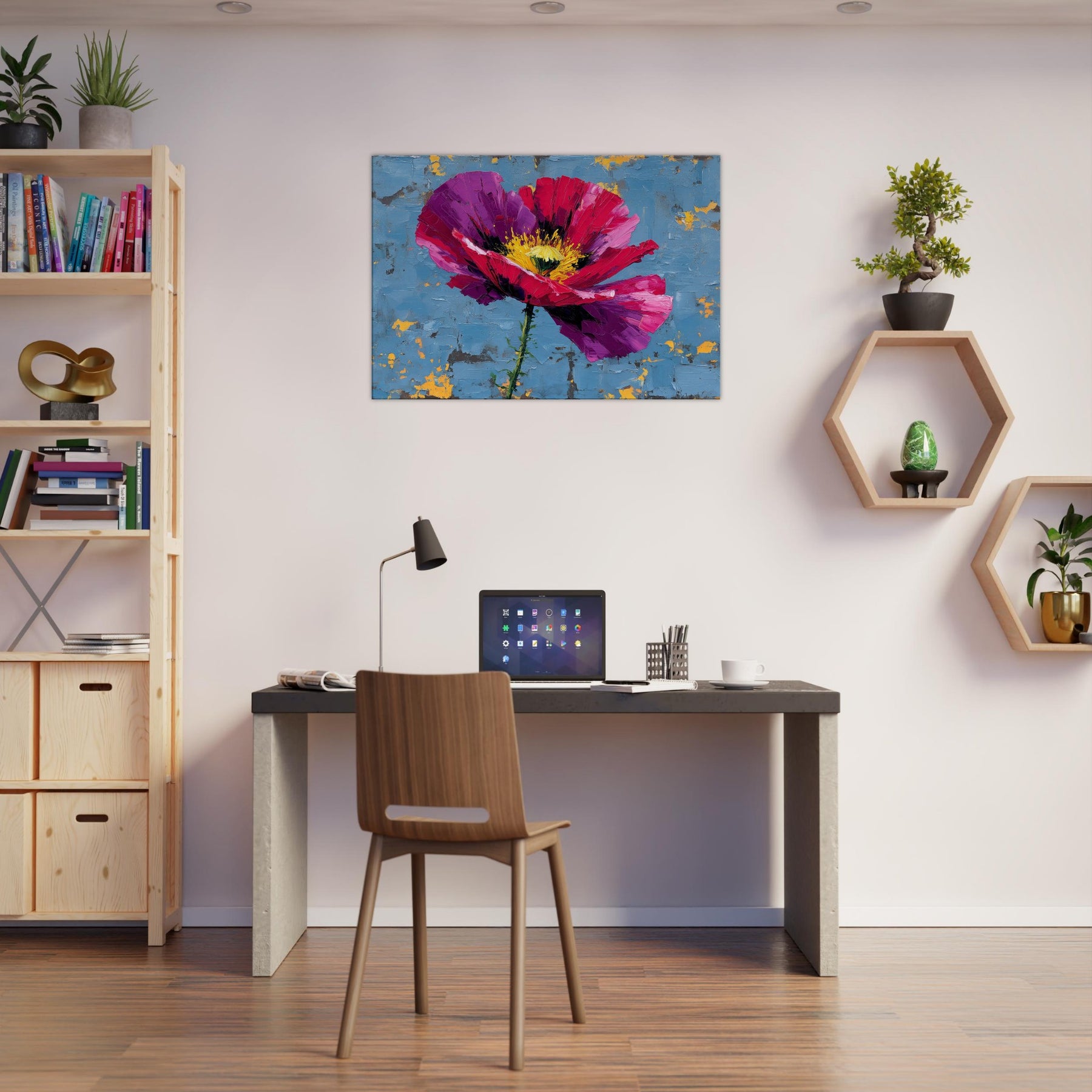 Let this Poppy rise from a field of texture and color, a radiant bloom that infuses the room with sunlit energy. The abstract strokes ripple like petals catching wind, revealing a bold center of yellow and green that hums with life. In living spaces, its generous scale and luminous contrasts invite touch and conversation, turning walls into a quiet celebration of nature. A statement piece that warms, soothes, and elevates daily moments.