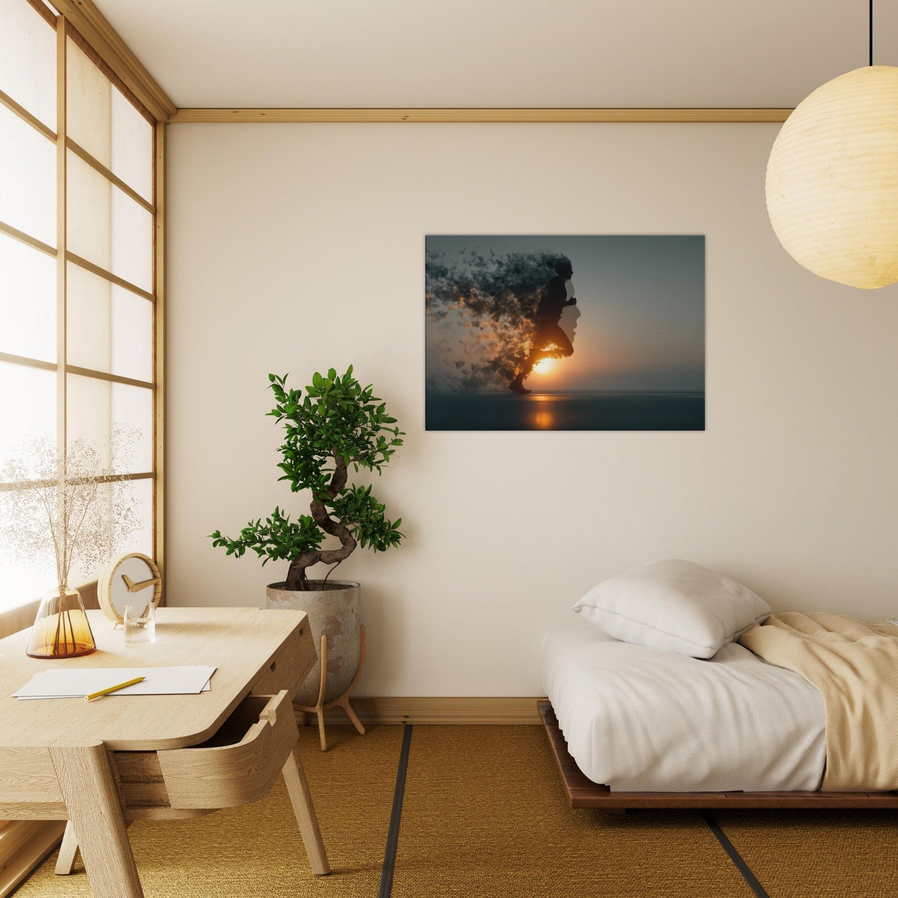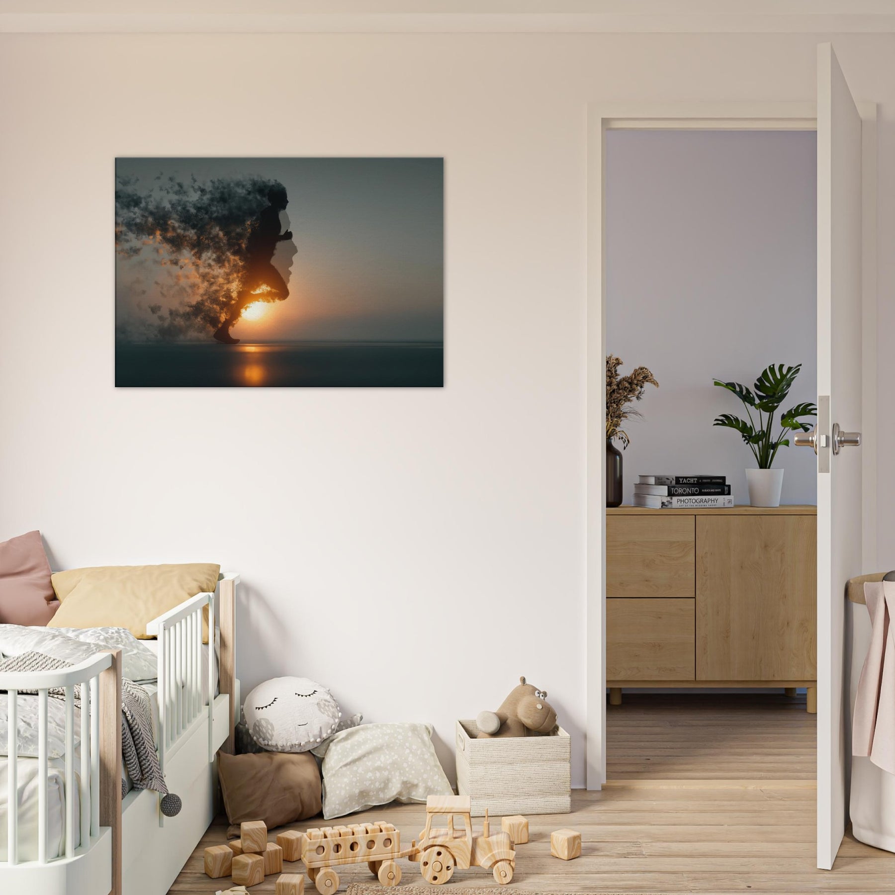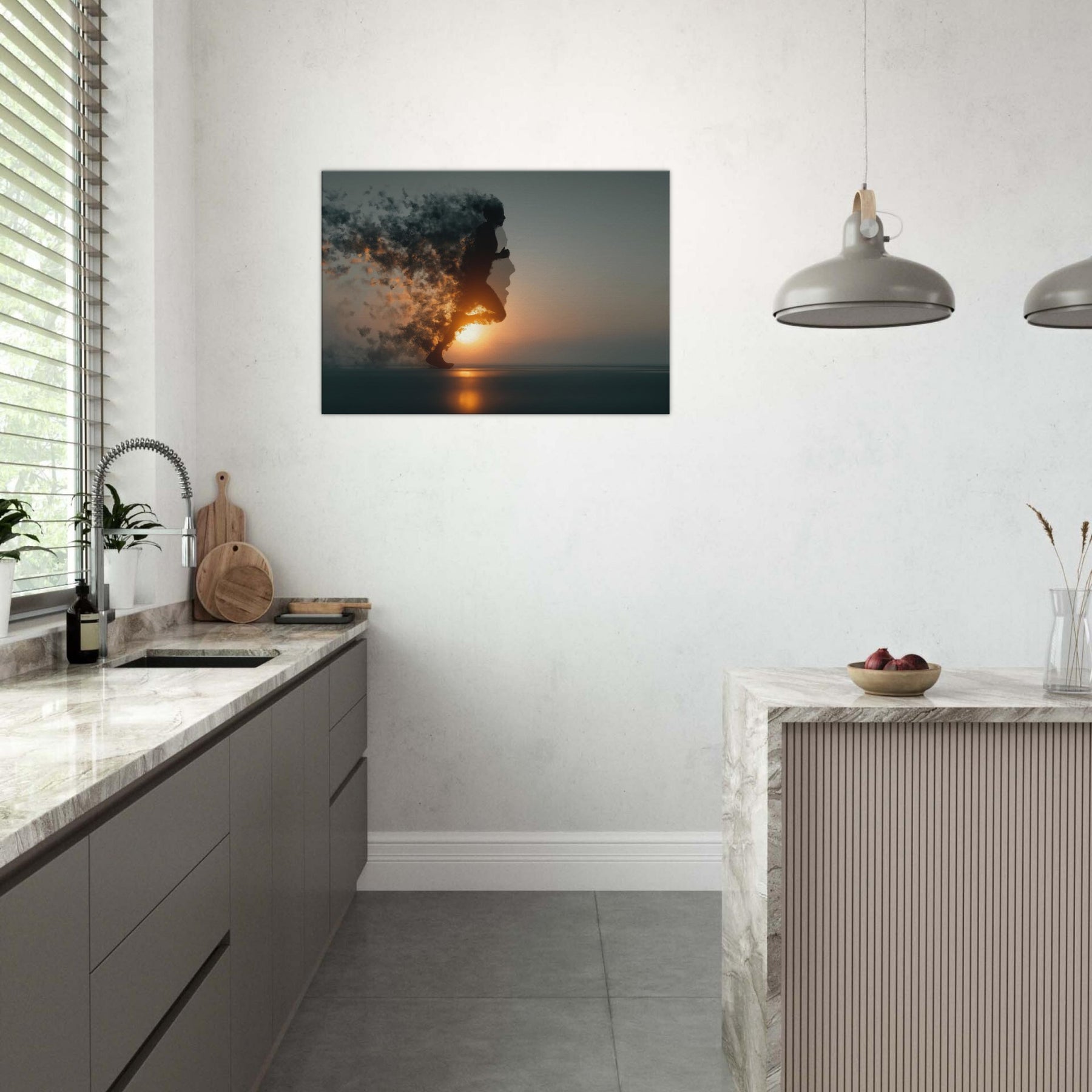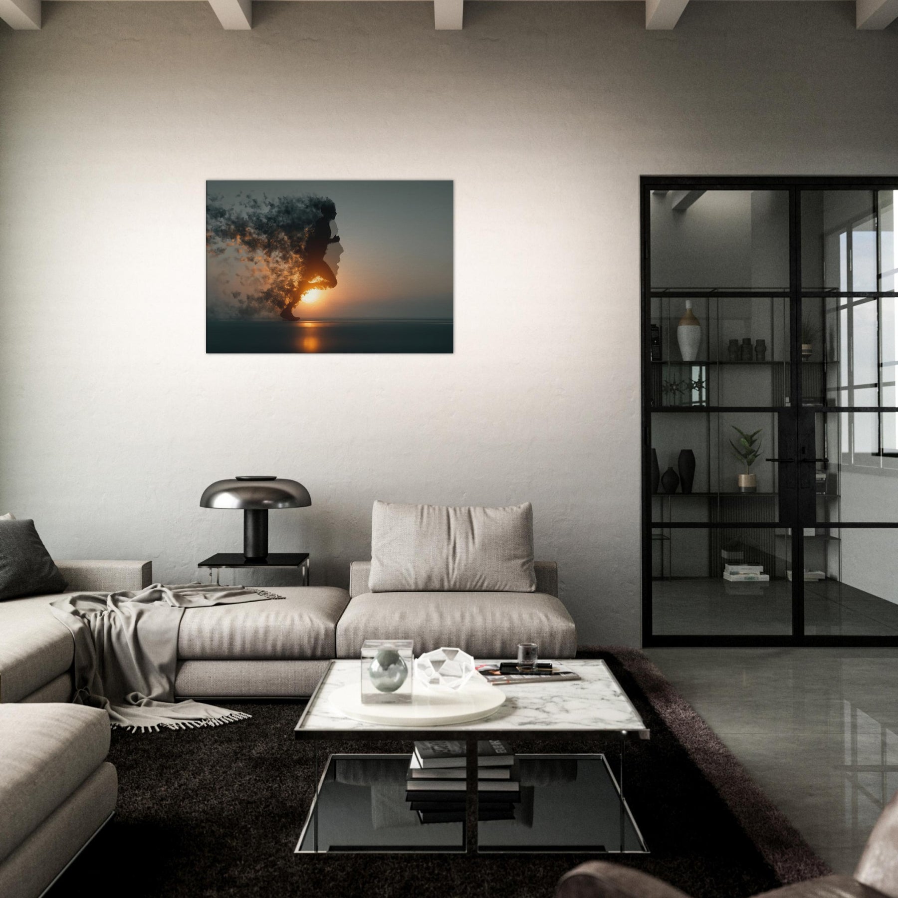 A luminous meditation on velocity and presence, this piece suspends gravity as the Runner in Motion dissolves into smoke and light. The surreal fusion of chasing shadows and a sleeping figure creates a living room air of dawn and memory; it glows with sunset hues and a soft, metallic hush. Hang it where morning light licks the edge of the frame; the artwork invites breath, rhythm, and conversation, turning walls into a quiet stage for ambition and tenderness alike.
