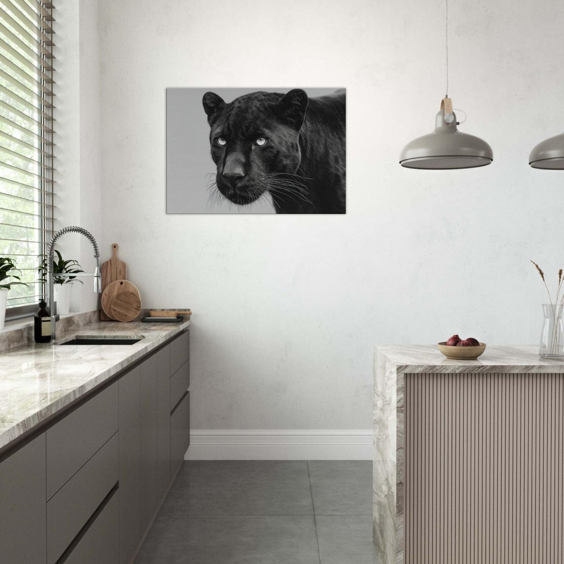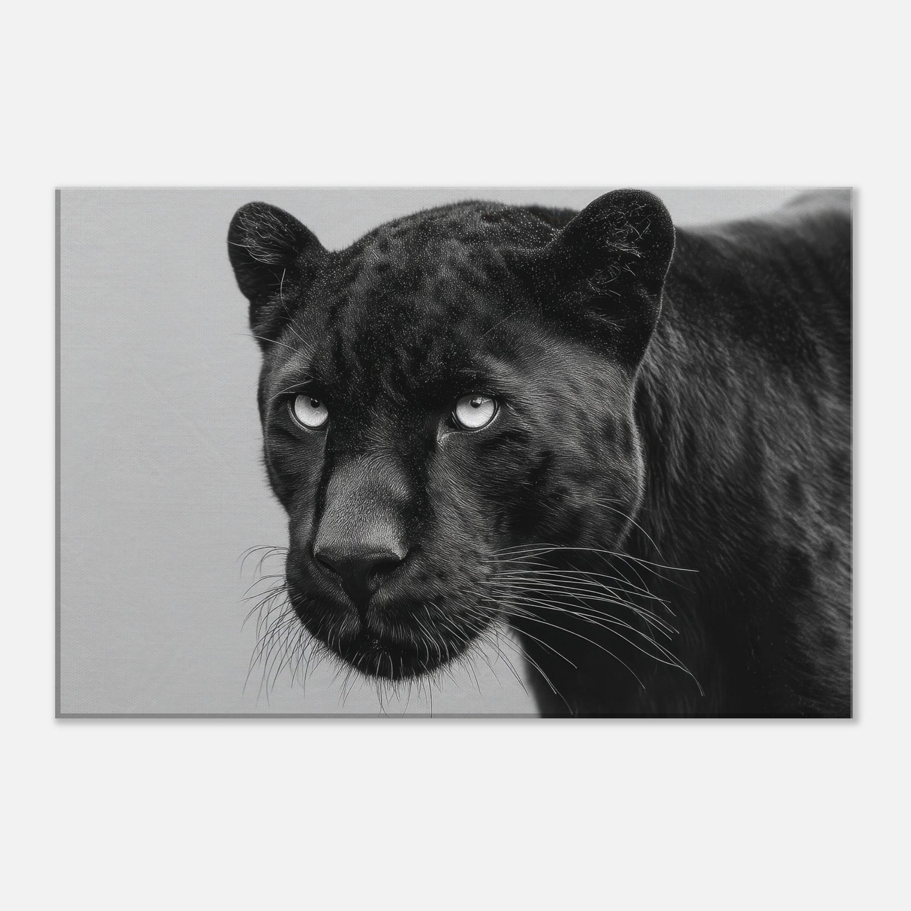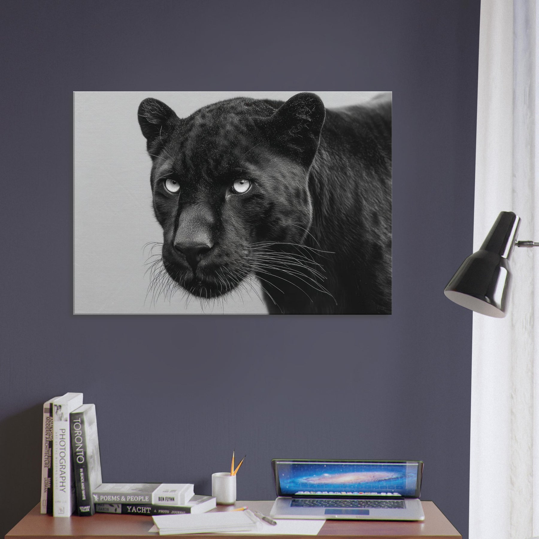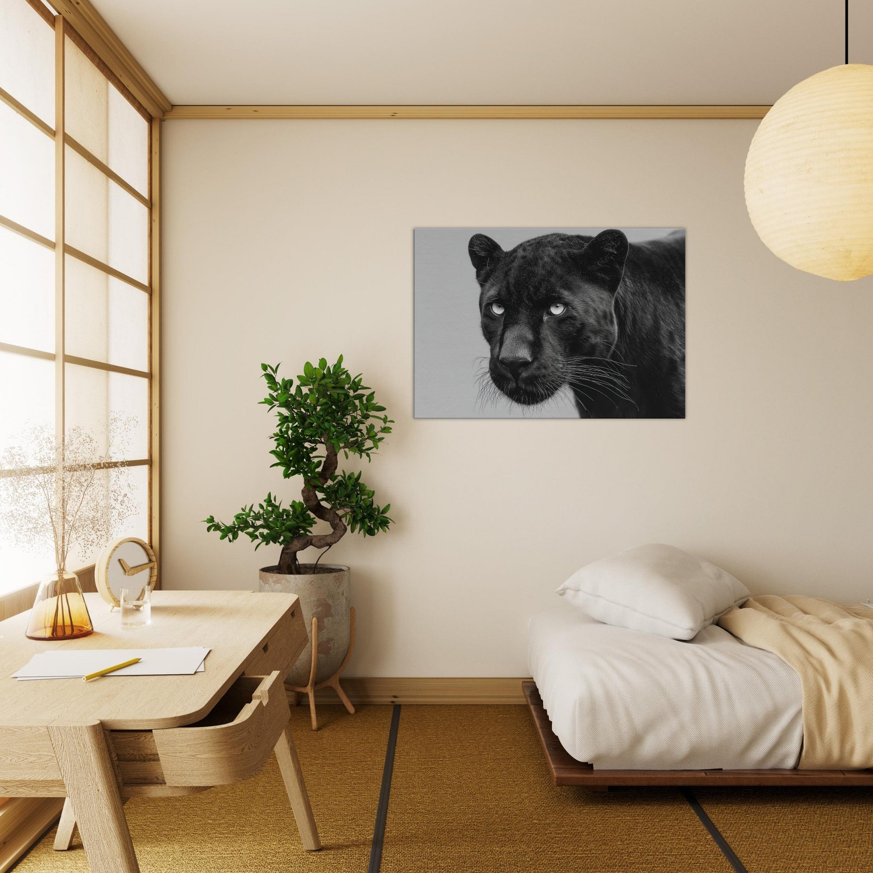With stark, moonlit contrast, this Panther in monochrome invites quiet focus and reflection. The black and white tonality heightens every contour of its sleek silhouette, every whisker catching light as if suspended in air. Hang it in a living room or study to anchor the room with primal grace and timeless drama; the image seems to lean into the room, then retreat, inviting conversation, grounding energy, and a sense of nocturnal elegance that makes spaces feel larger and more intentional.